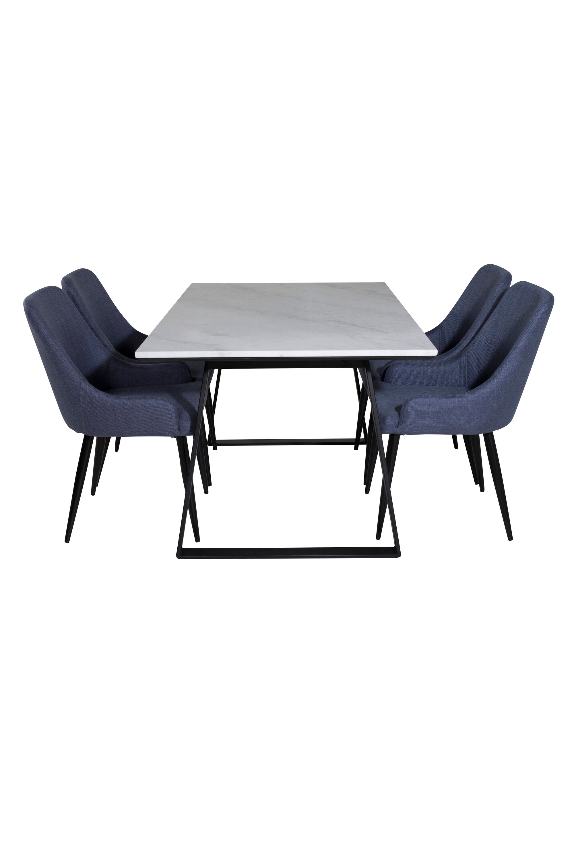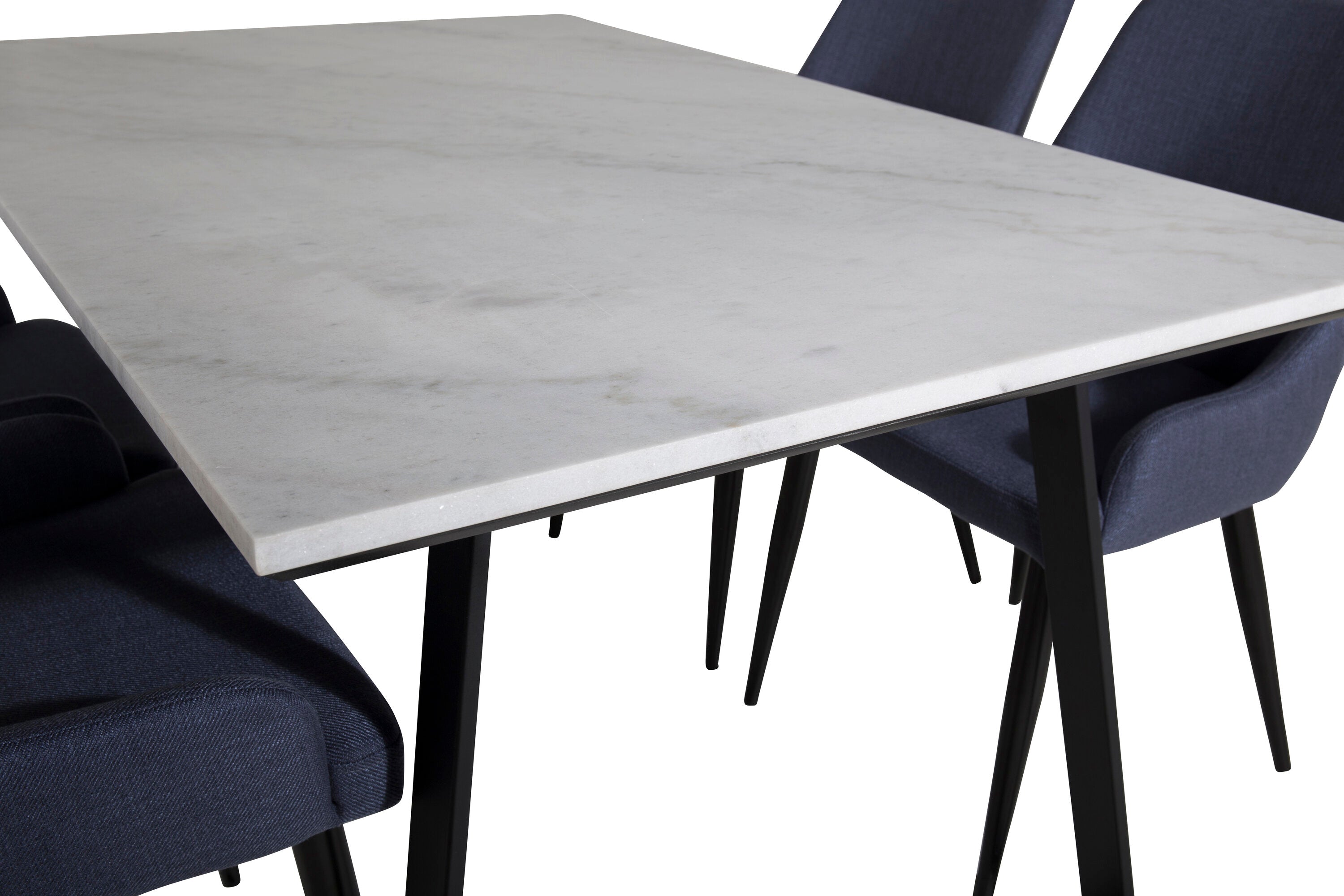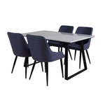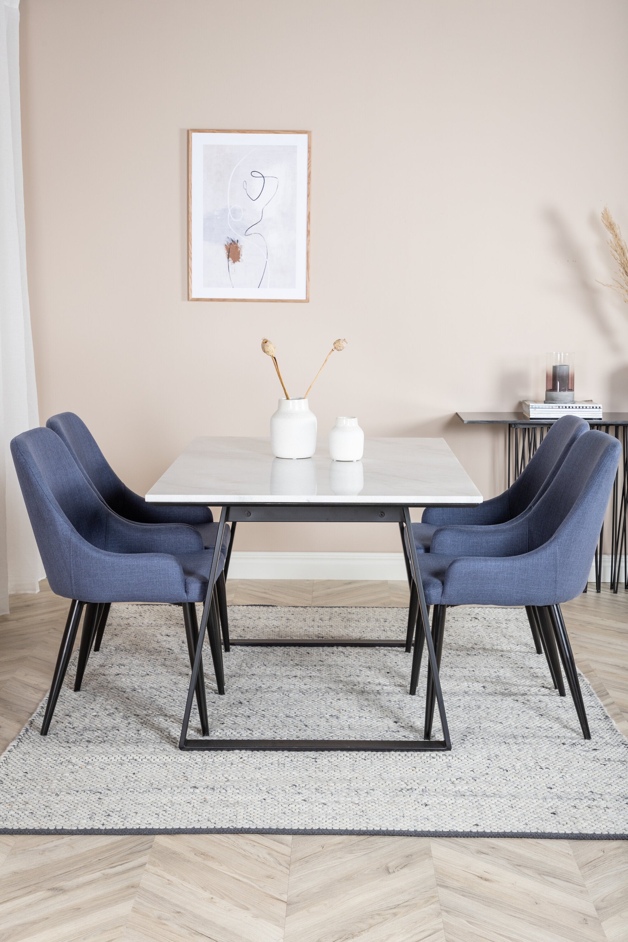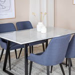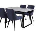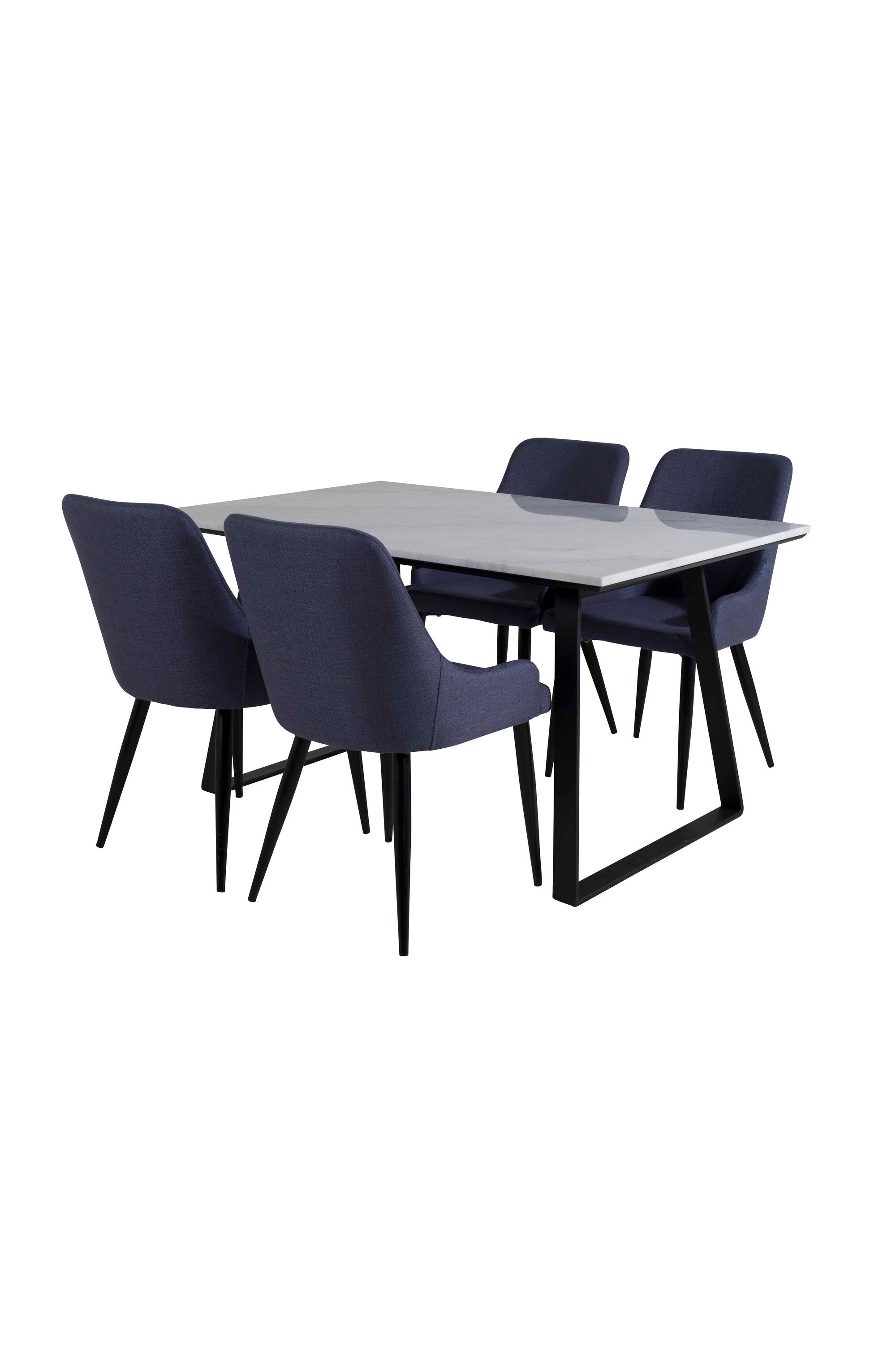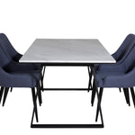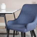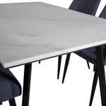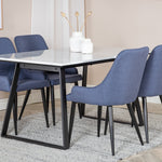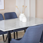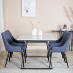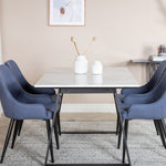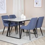 Jídelní stůl Estelle 140*90 – Bílá / Černá+Jídelní židle Plaza – Černé nohy – Modrá látka_4