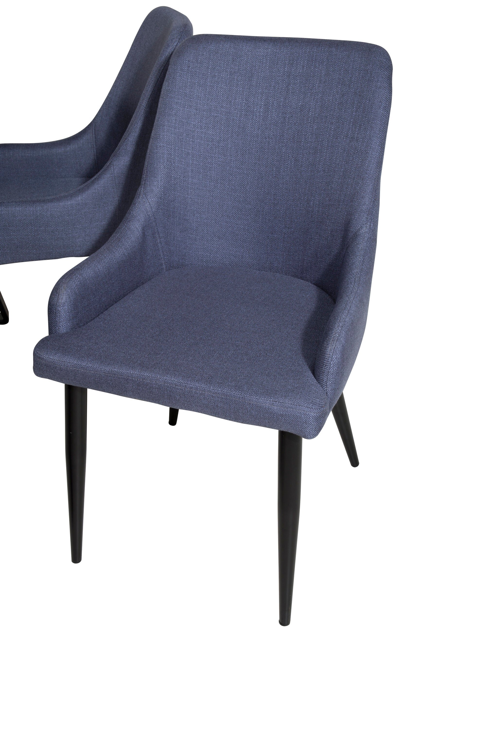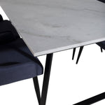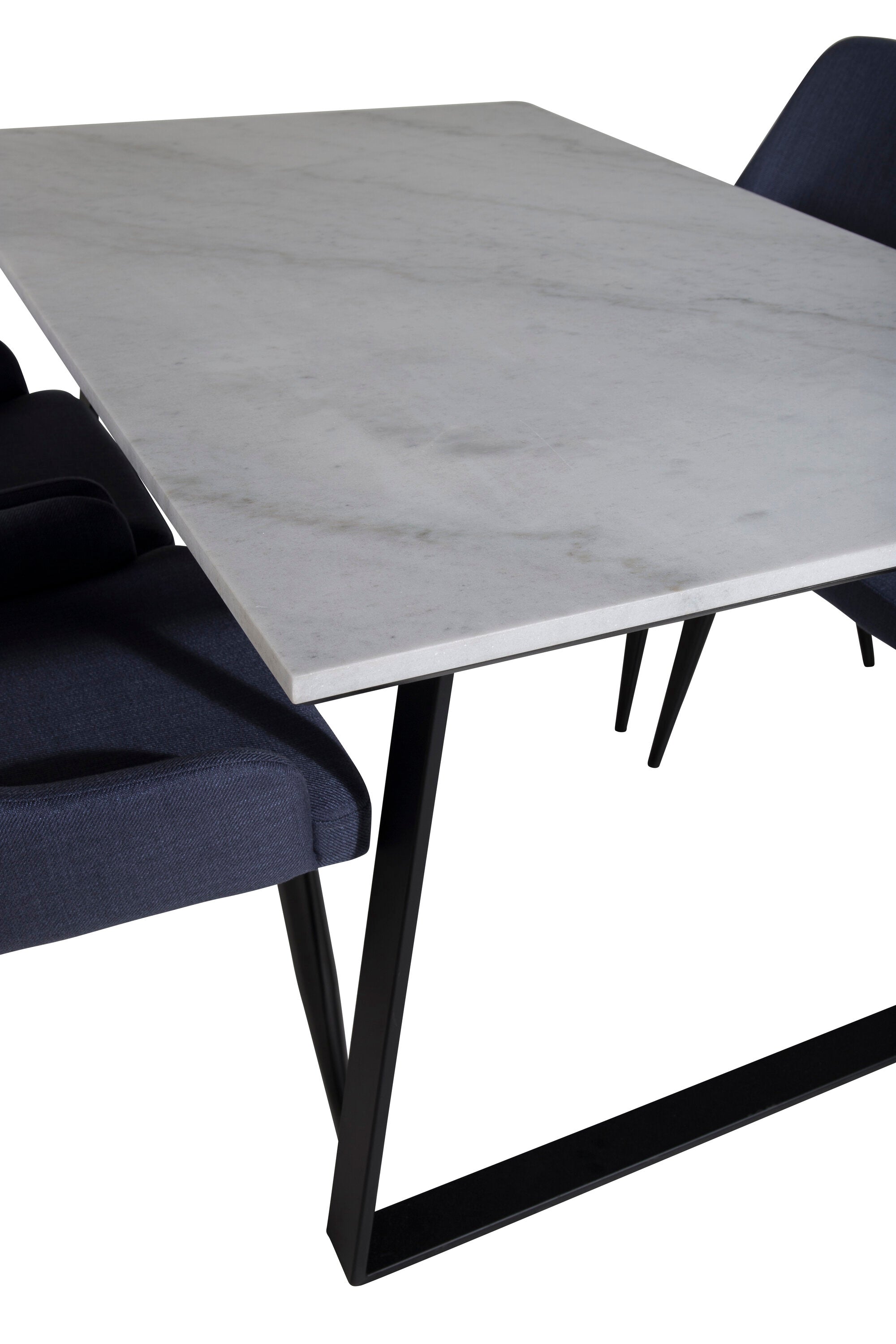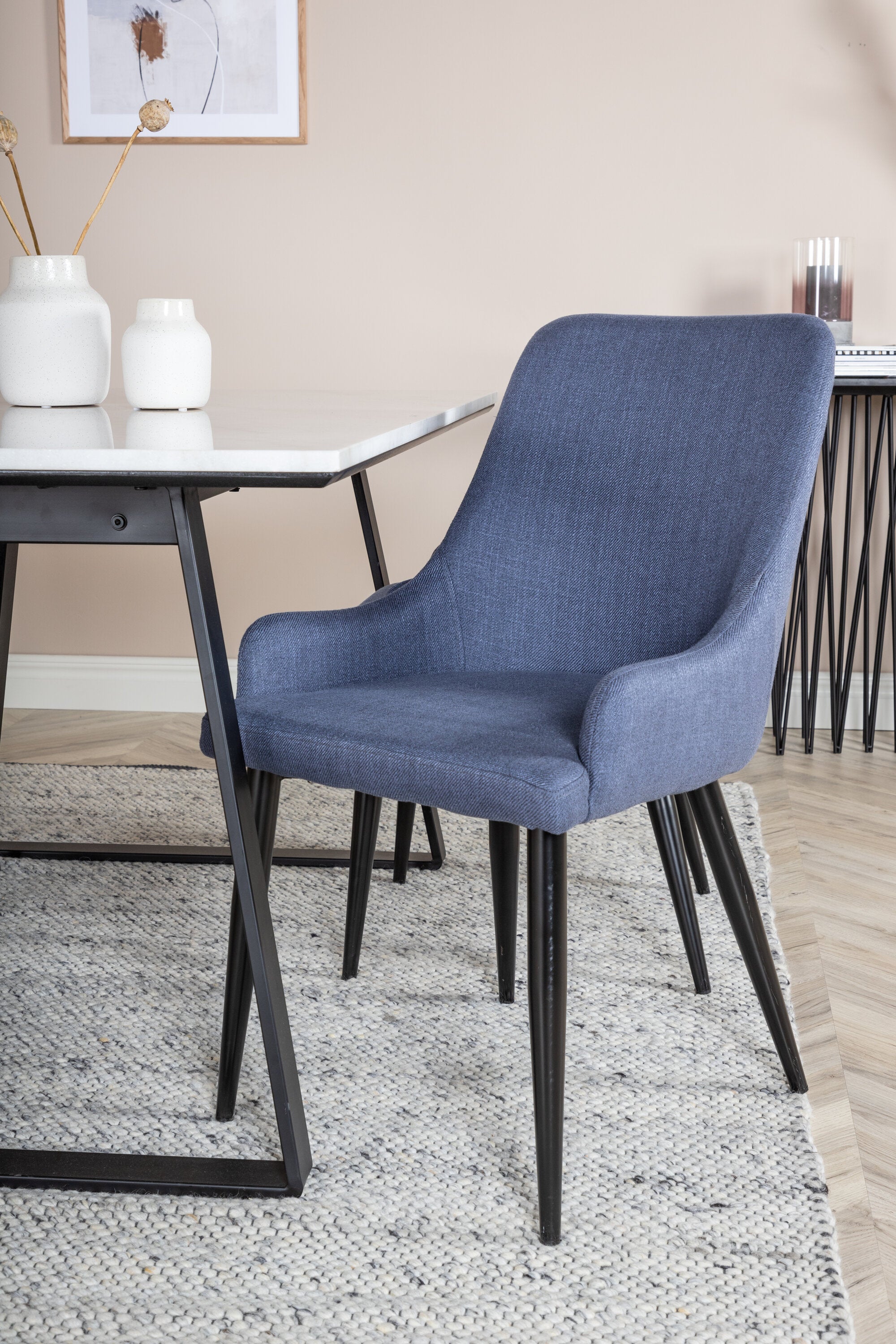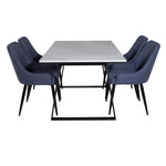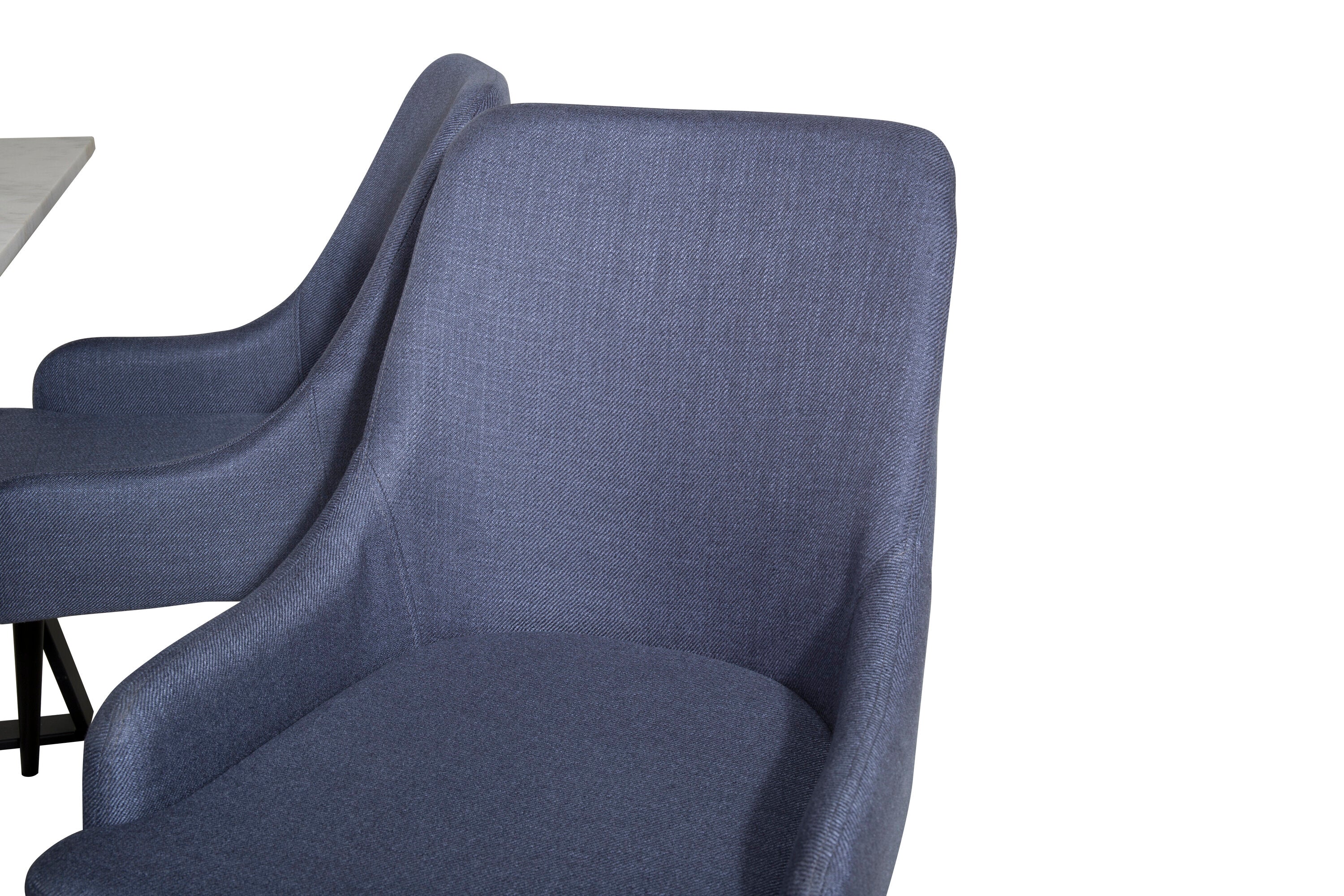 Jídelní stůl Estelle 140*90 – Bílá / Černá+Jídelní židle Plaza – Černé nohy – Modrá látka_4