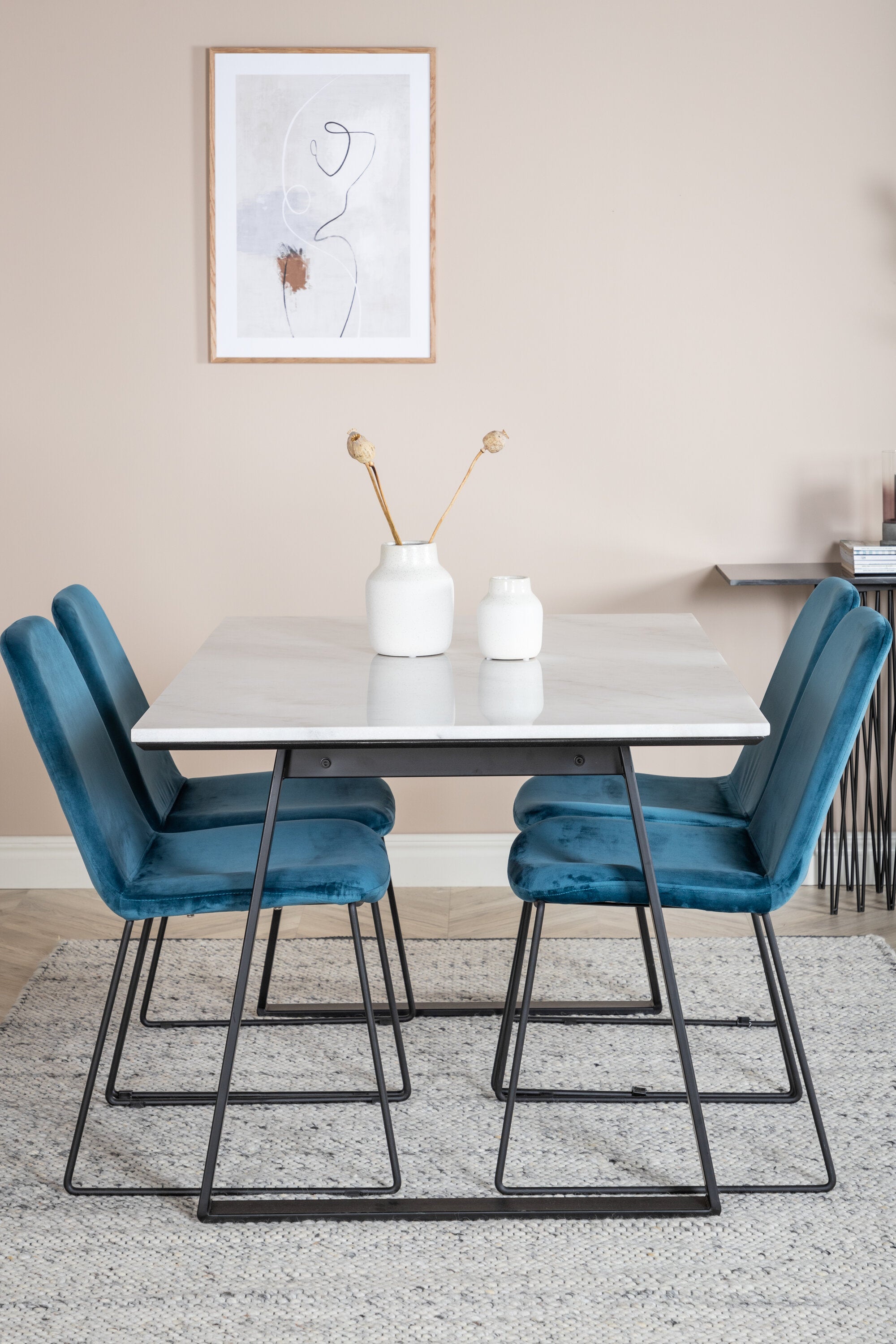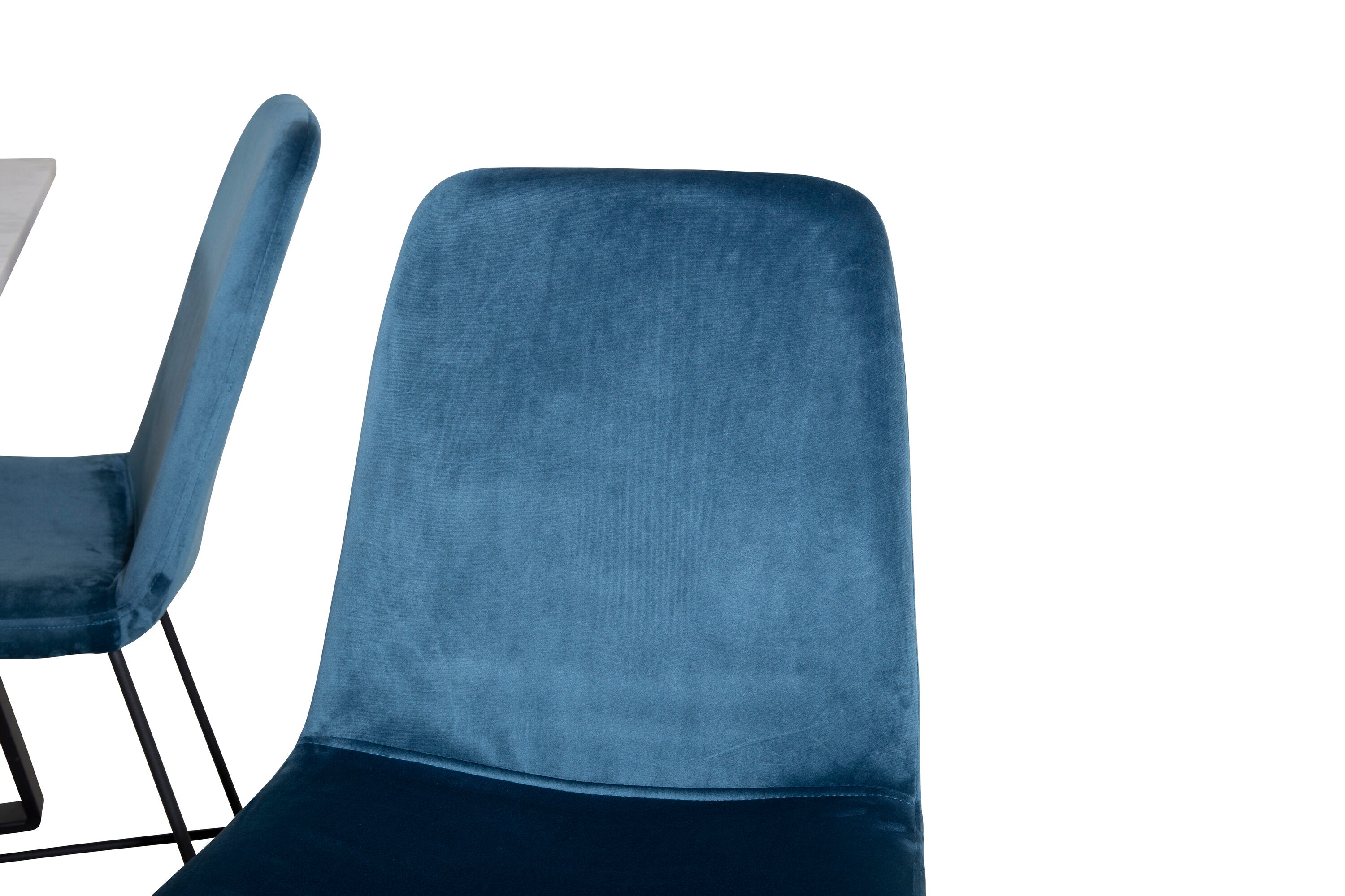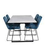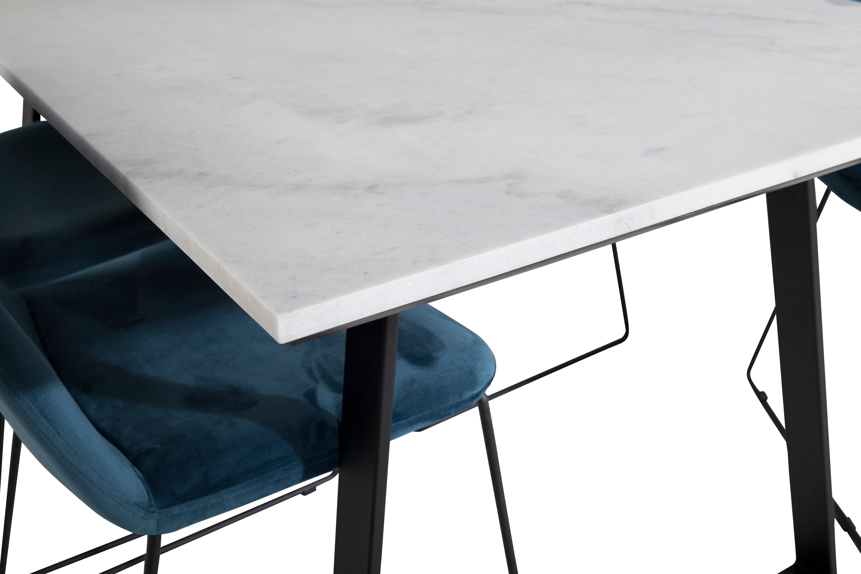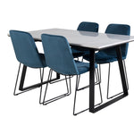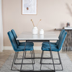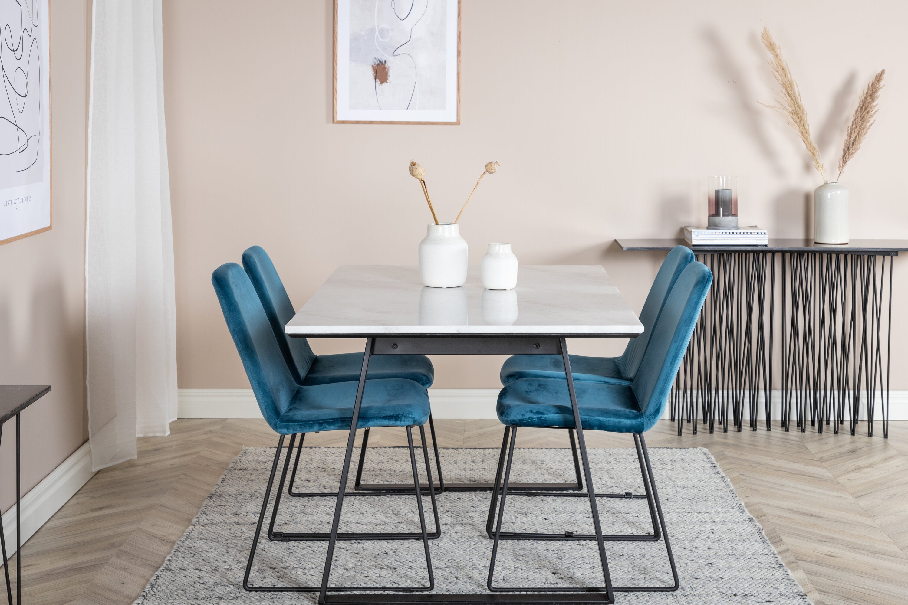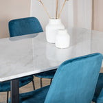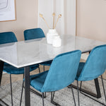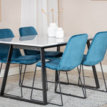 Jídelní stůl Estelle 140*90 - Bílá / Černá + Muce Jídelní židle - Černé nohy - Modrá Velvet_4