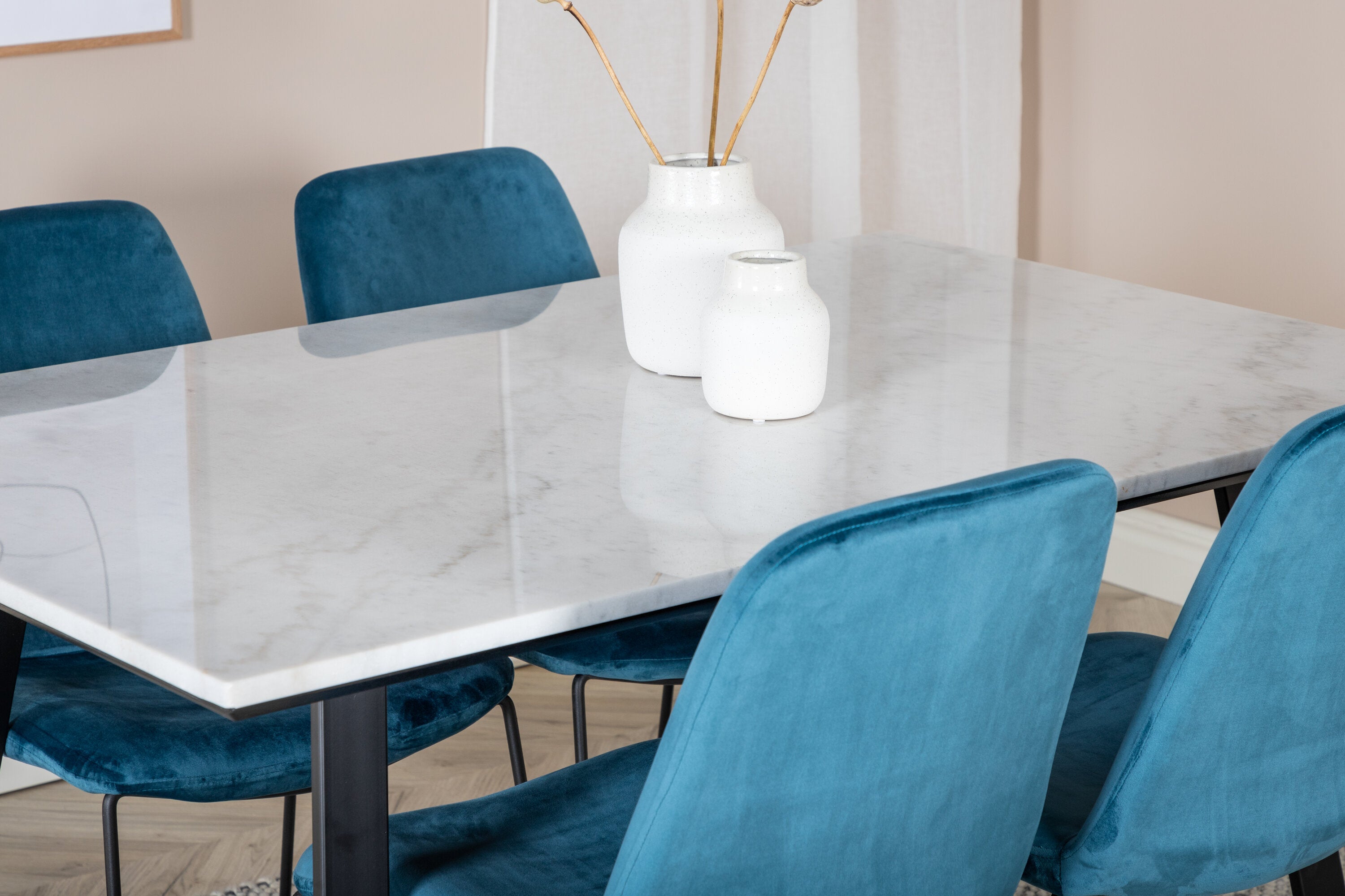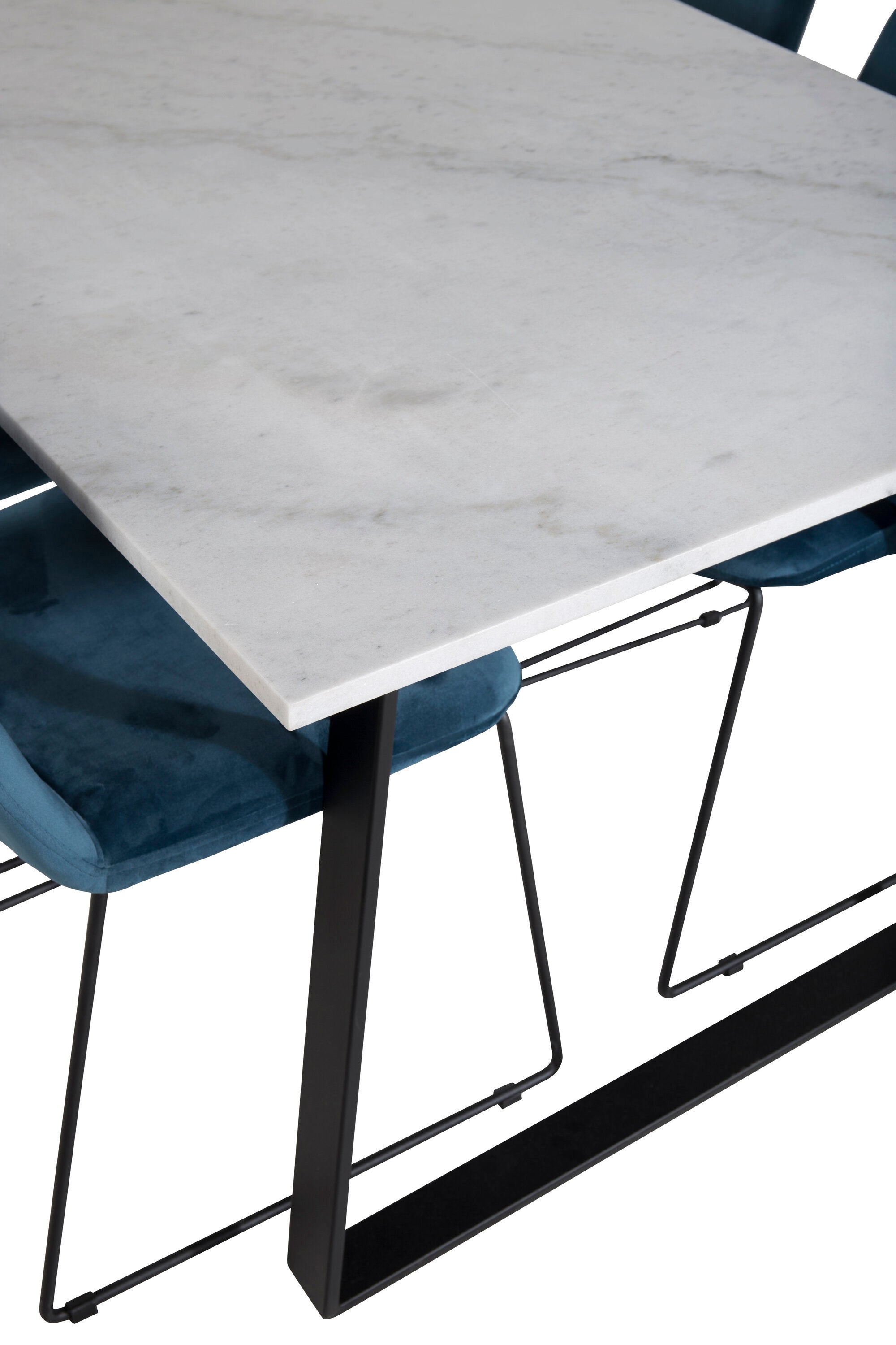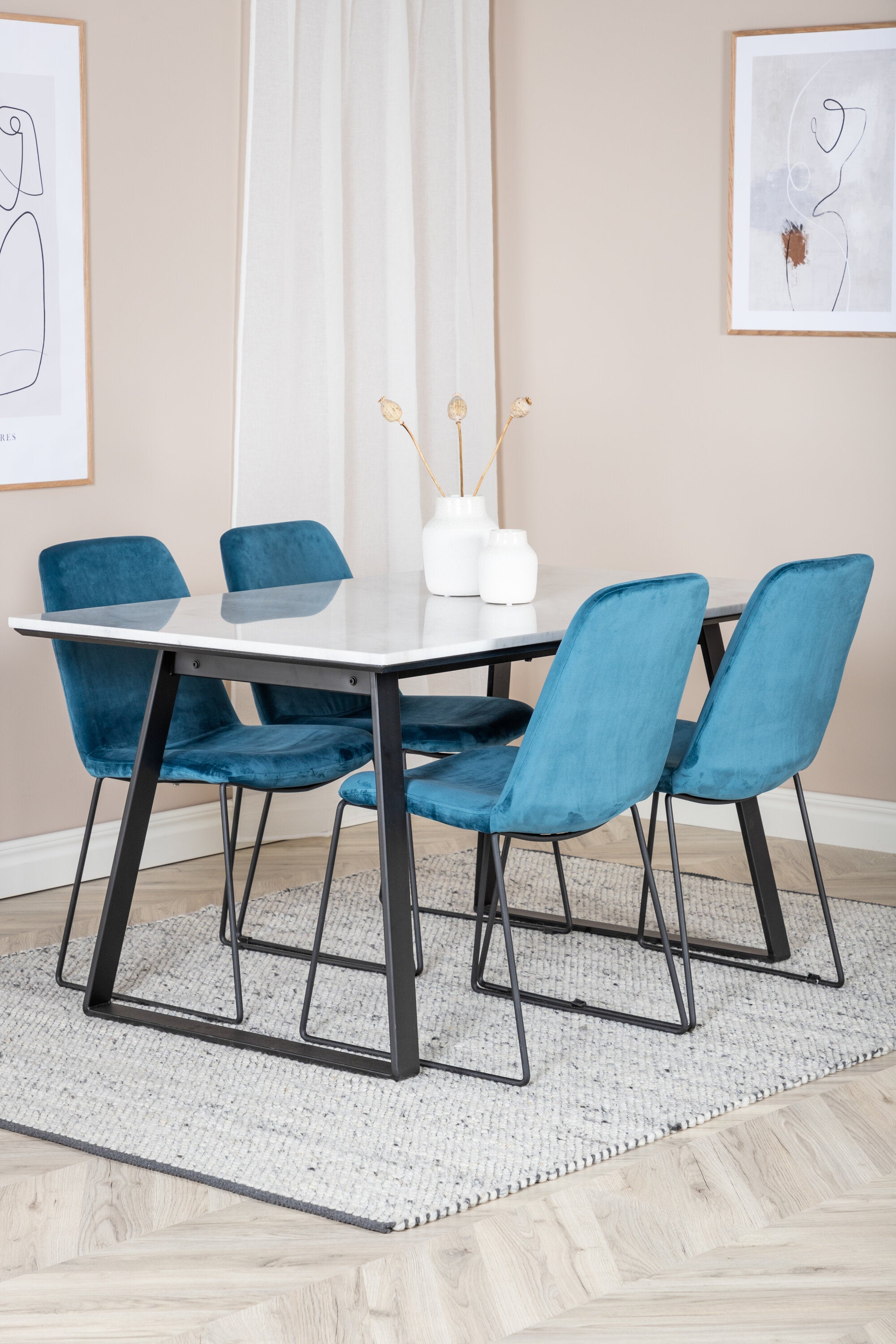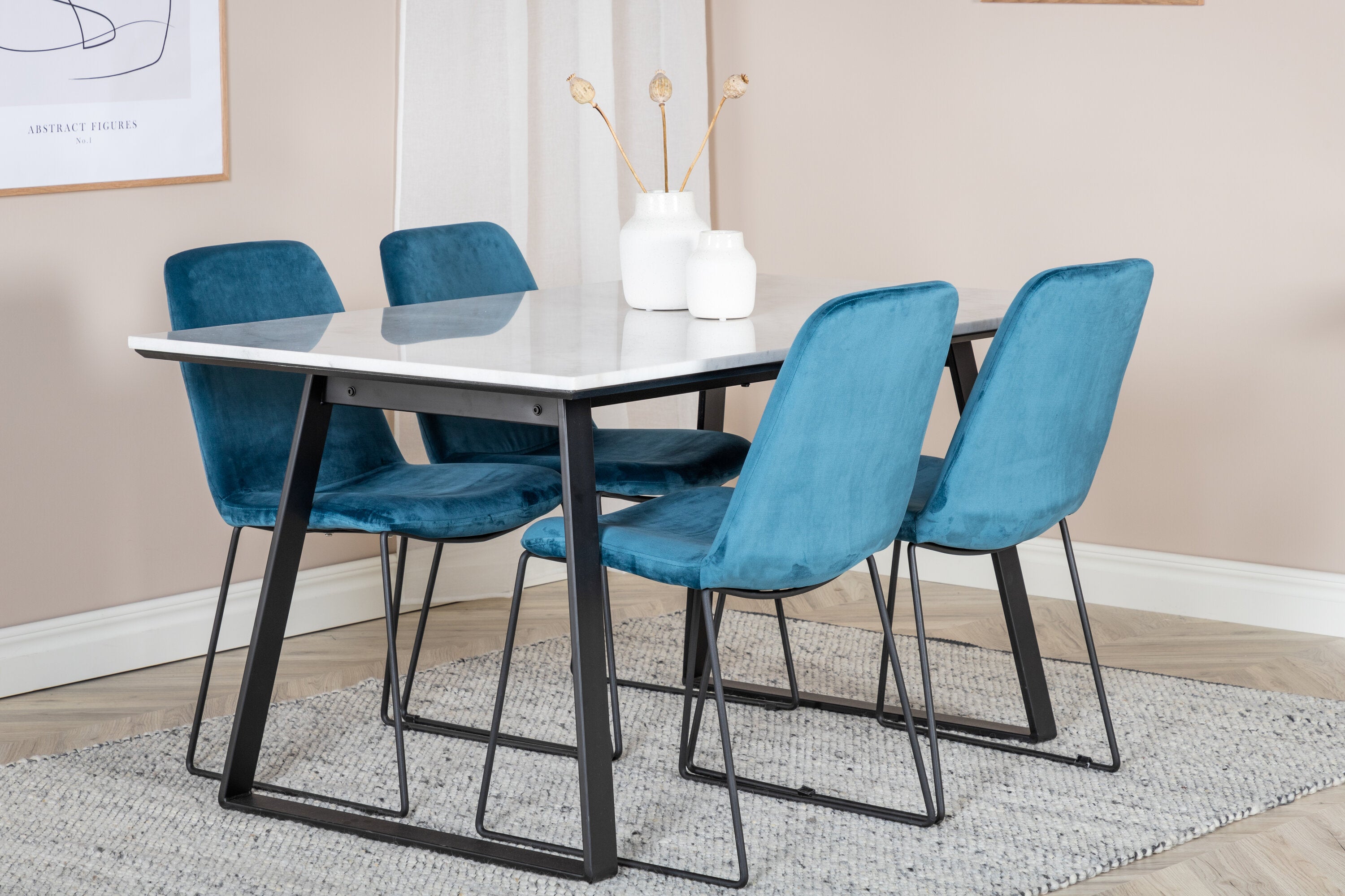 Jídelní stůl Estelle 140*90 - Bílá / Černá + Muce Jídelní židle - Černé nohy - Modrá Velvet_4