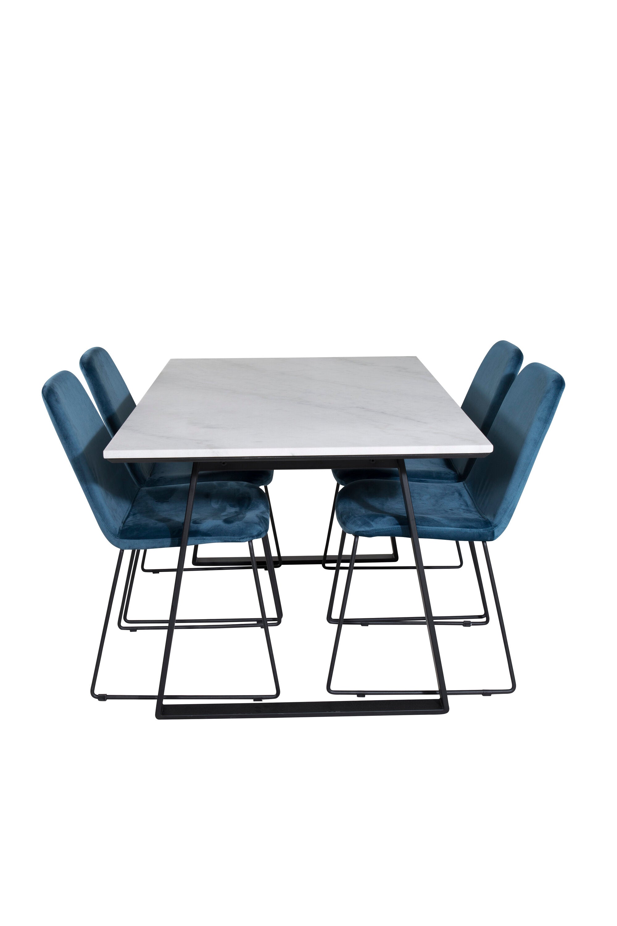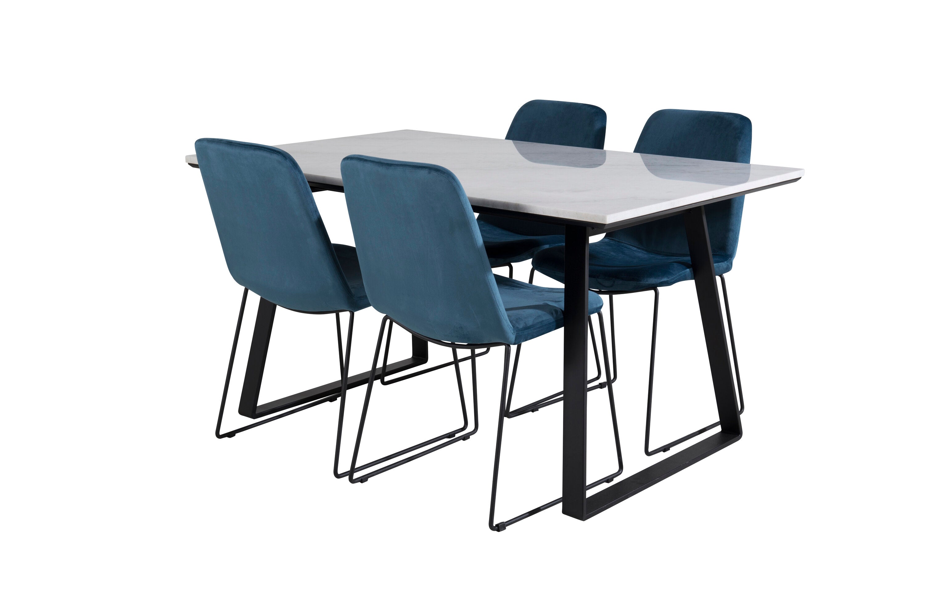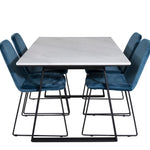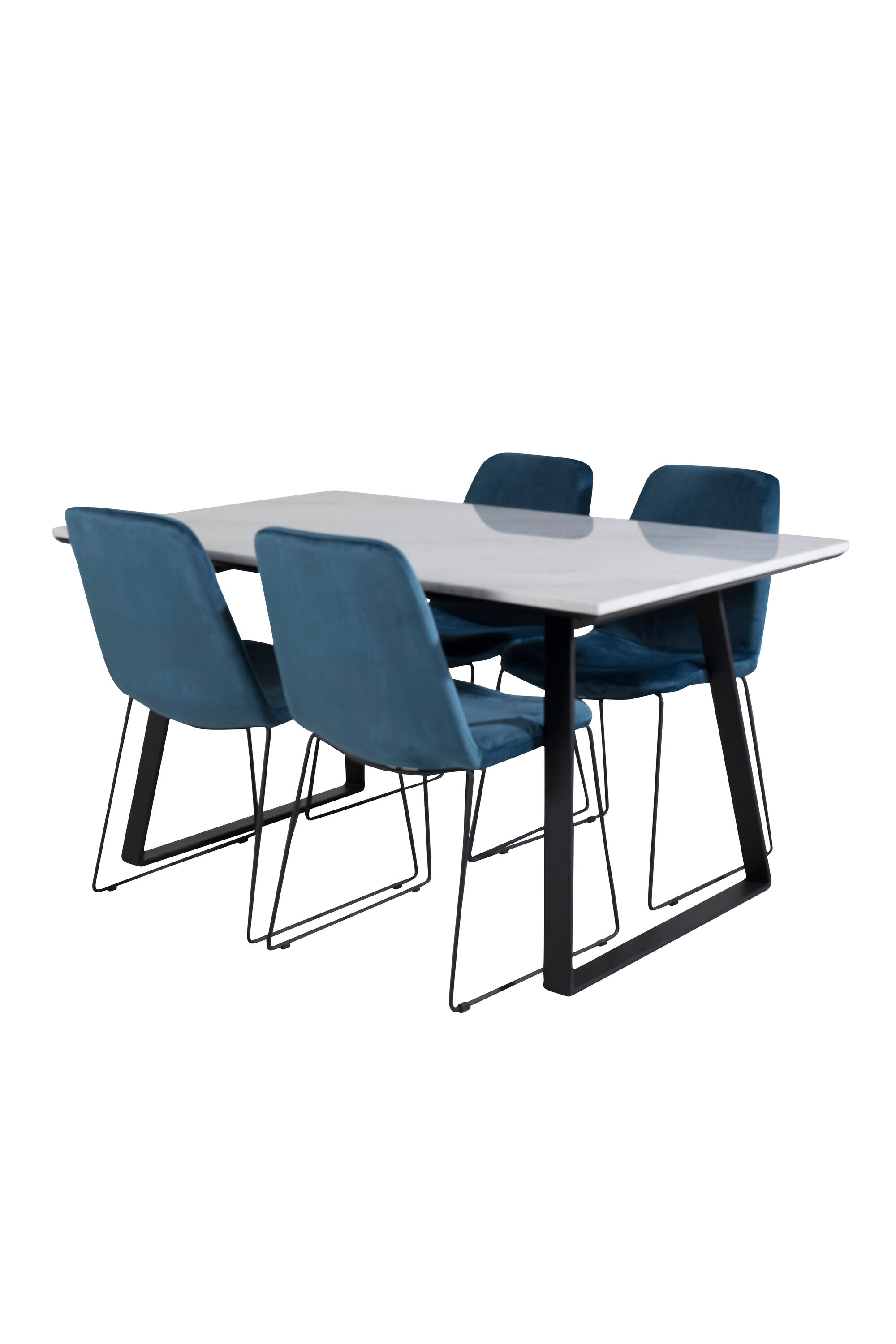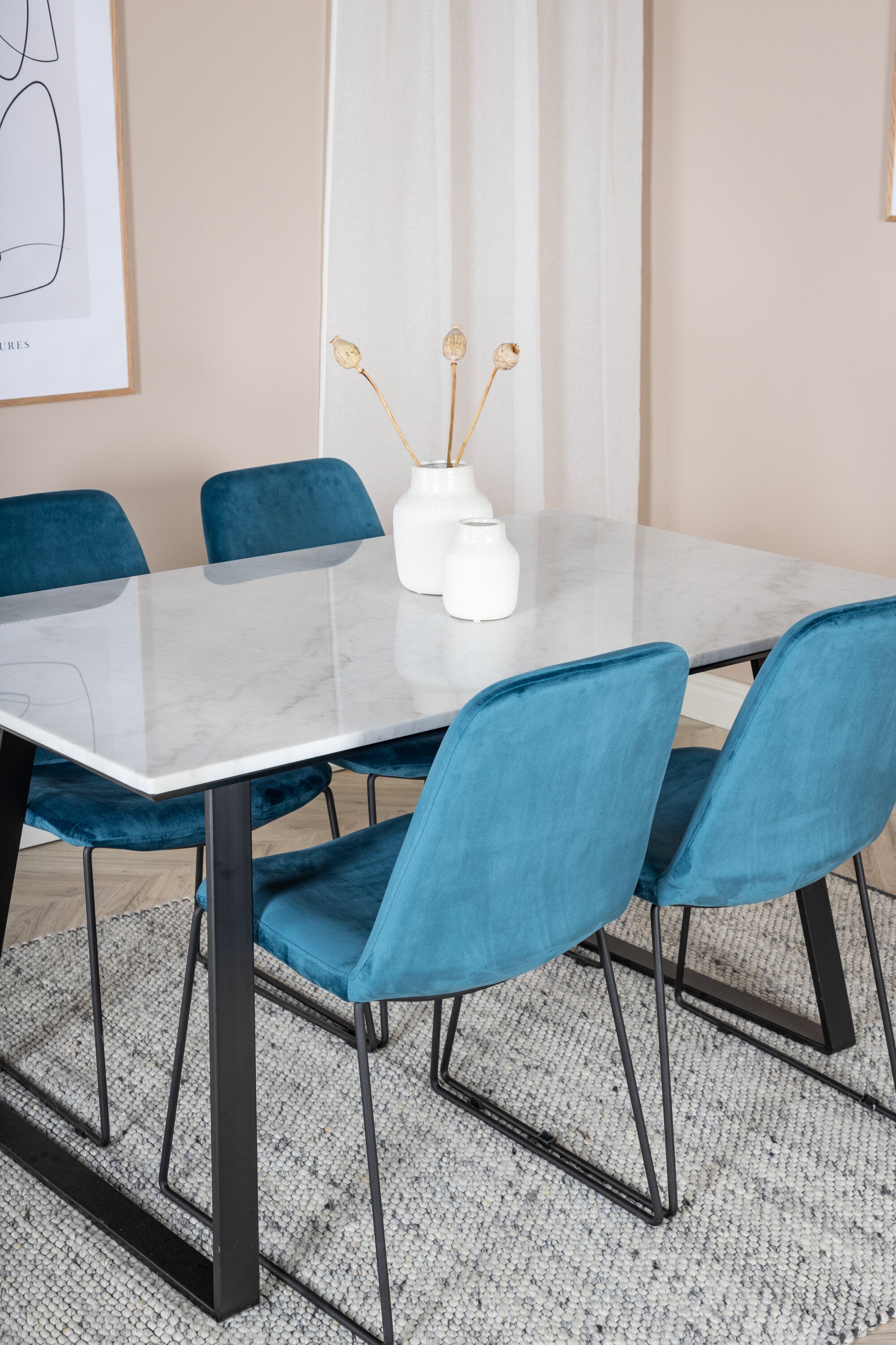 Jídelní stůl Estelle 140*90 - Bílá / Černá + Muce Jídelní židle - Černé nohy - Modrá Velvet_4