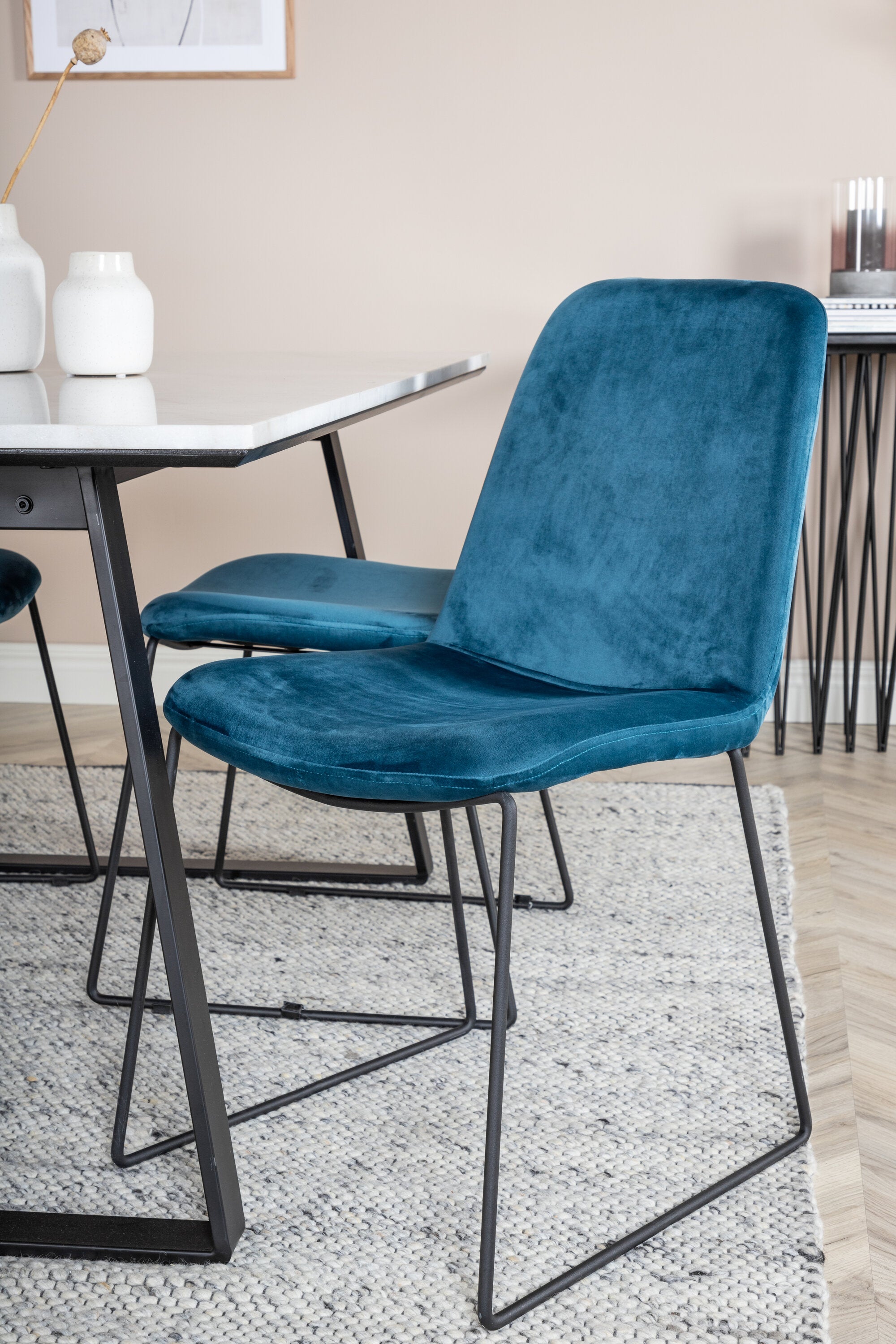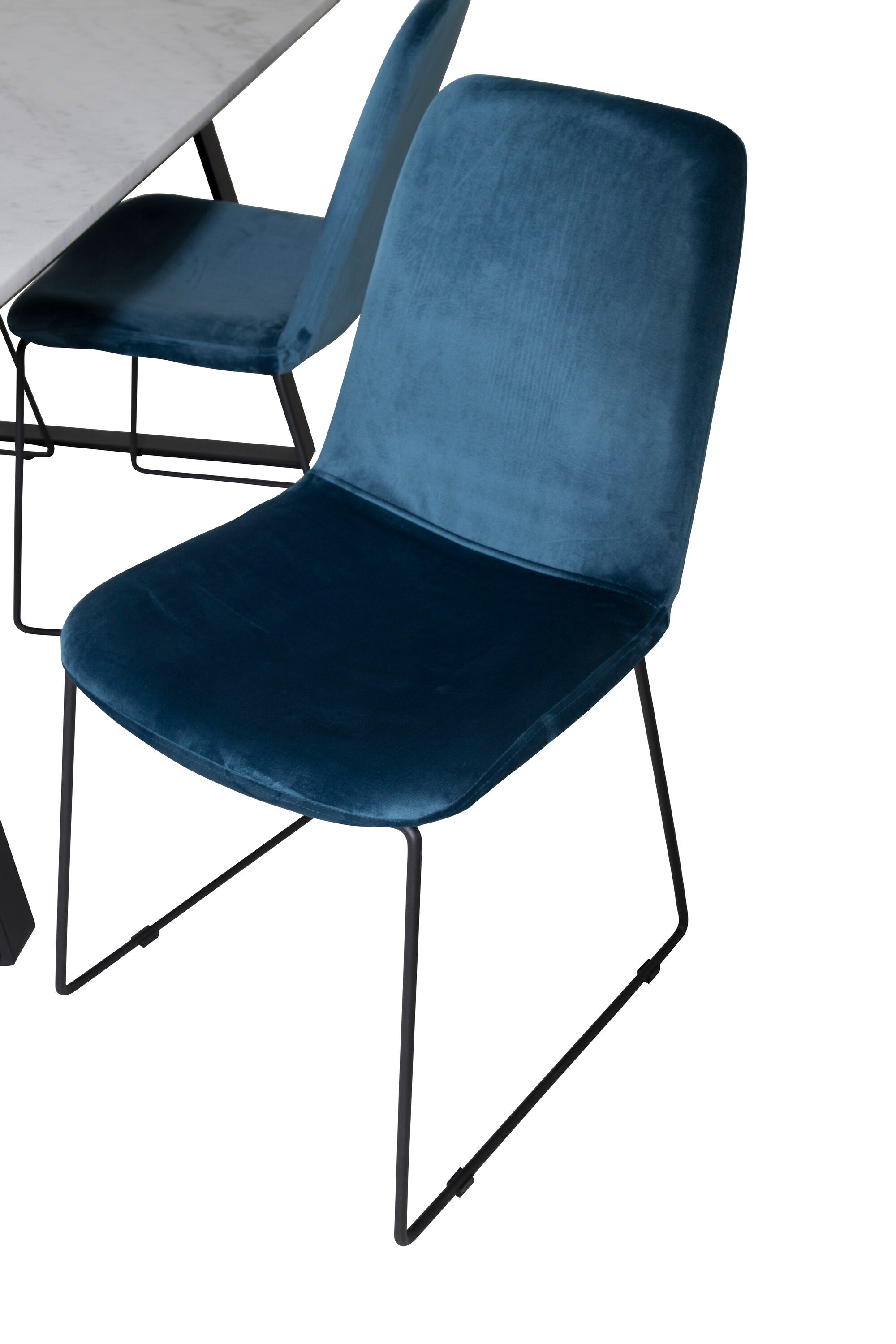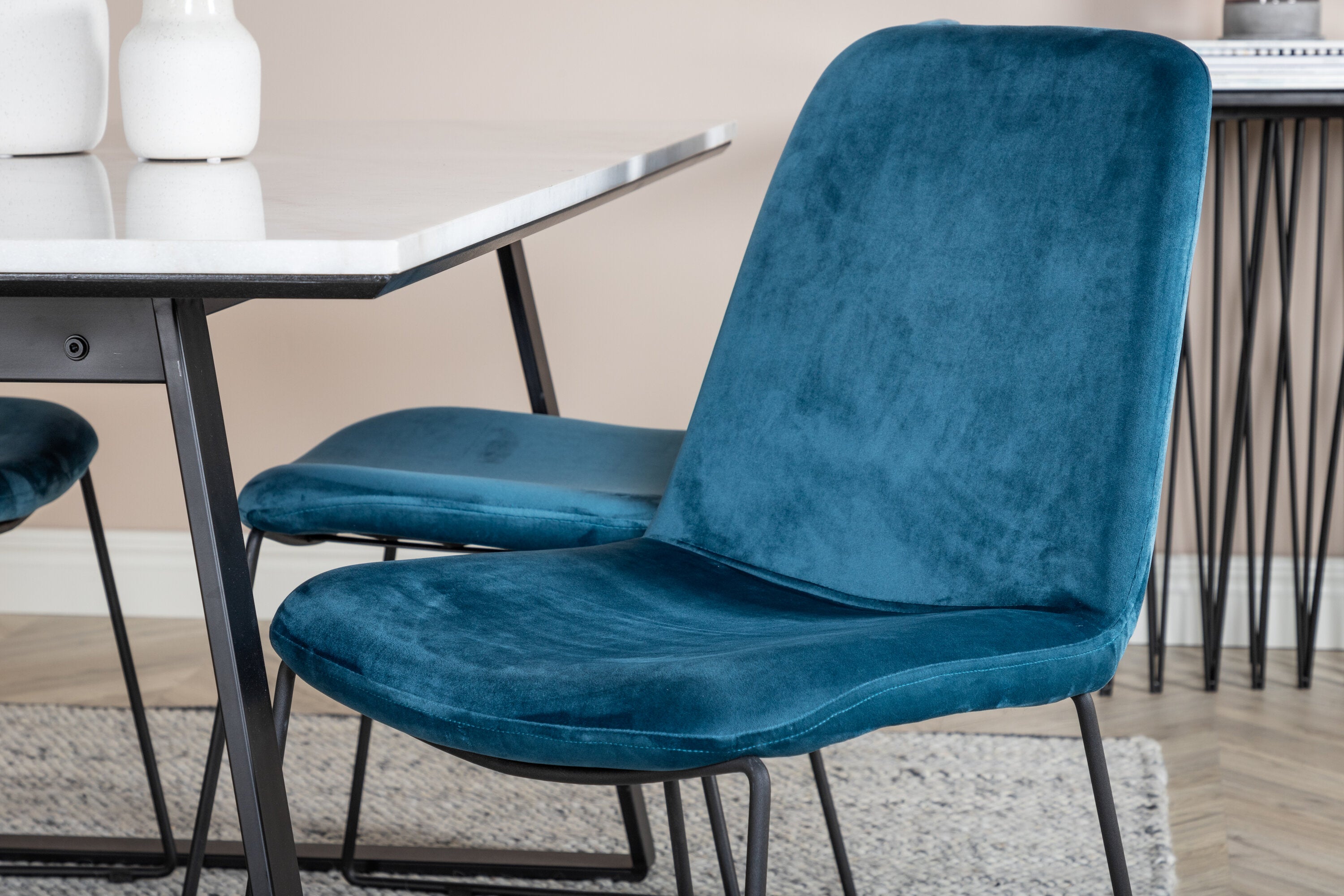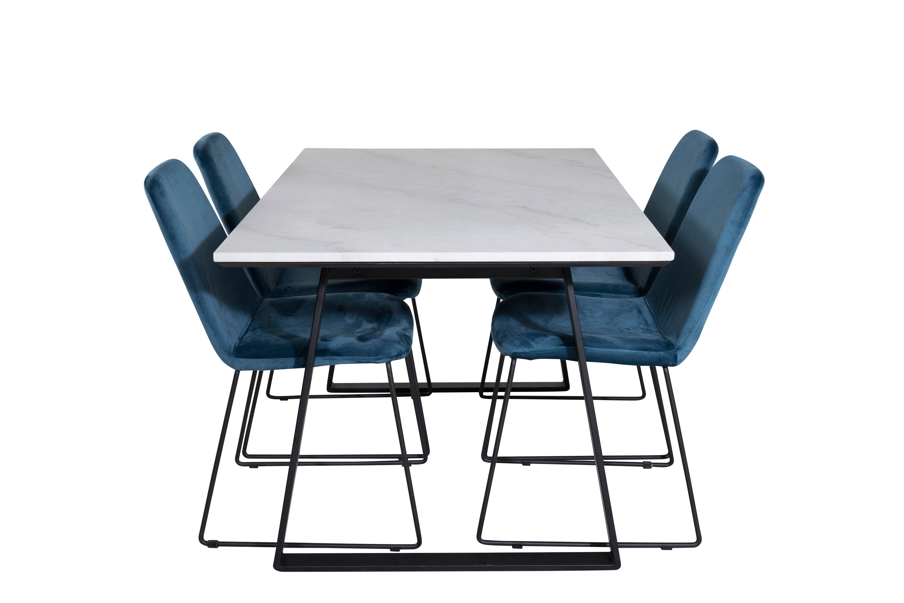Jídelní stůl Estelle 140*90 - Bílá / Černá + Muce Jídelní židle - Černé nohy - Modrá Velvet_4