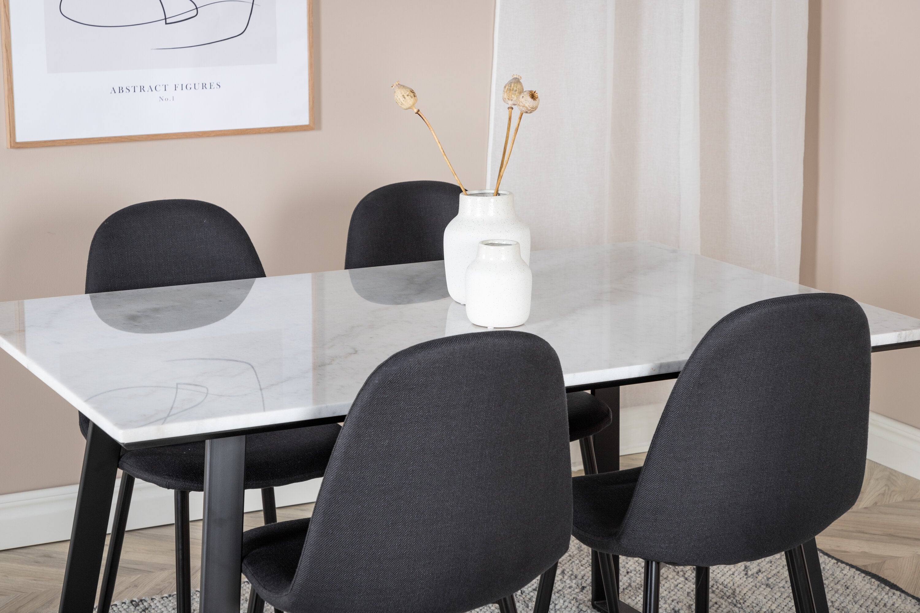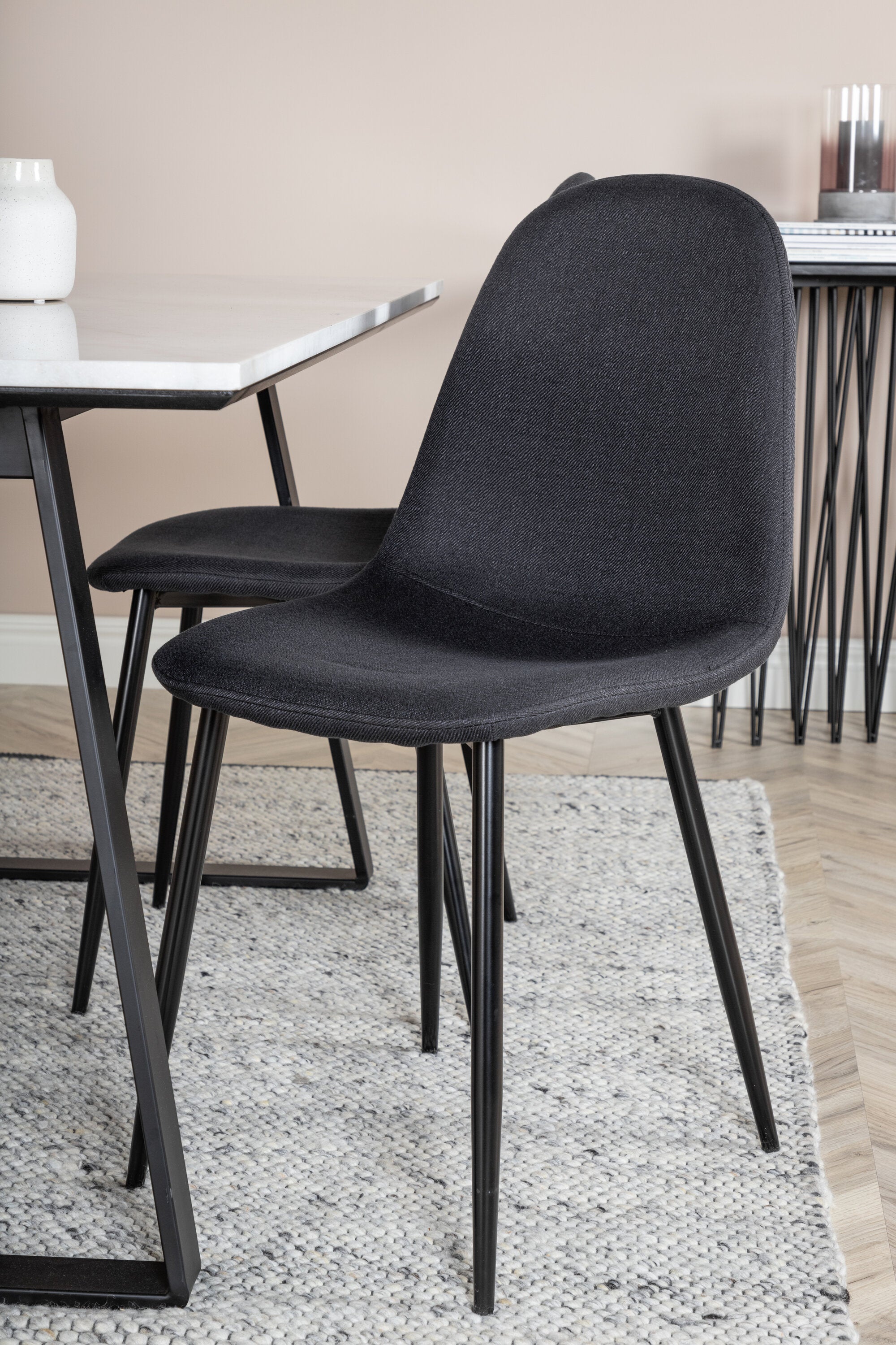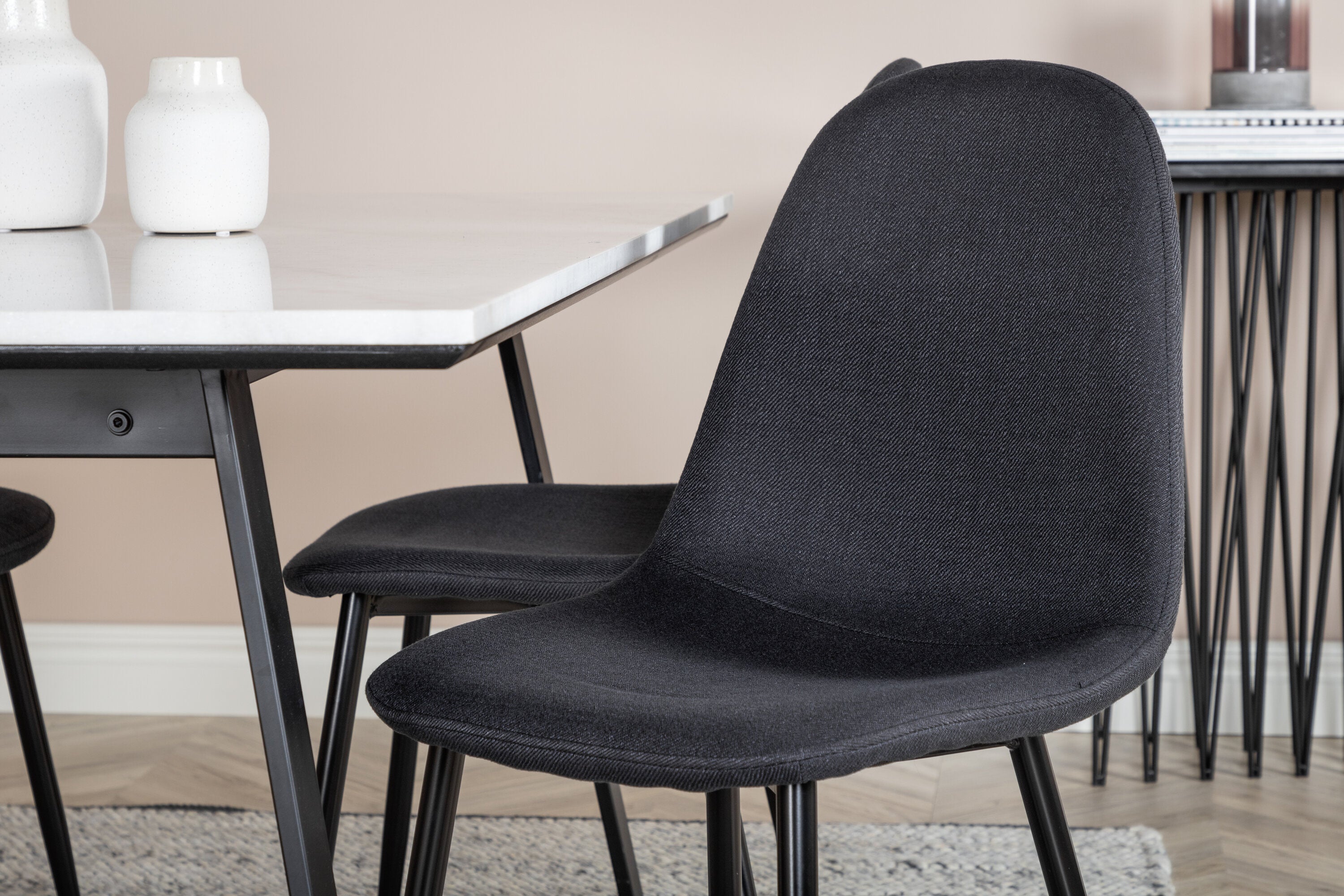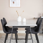 Jídelní stůl Estelle ve štíhlém designu spolu s jídelními židlemi Polar - perfektní kombinace pro ty, kteří chtějí trendy skupinu jídel. Vysoký komfort sezení křesel zve k dlouhým a úžasným chvilkám společenského života!