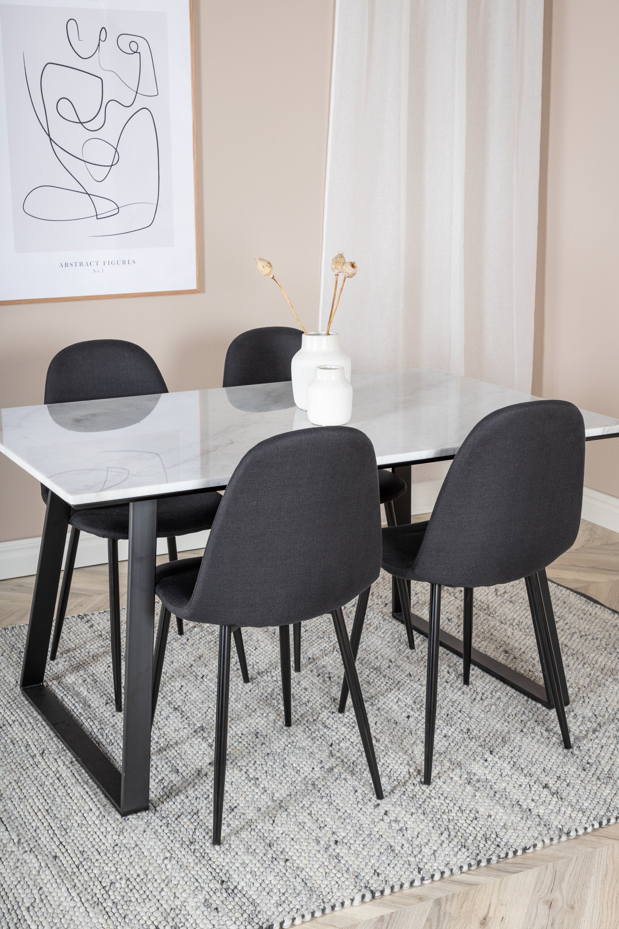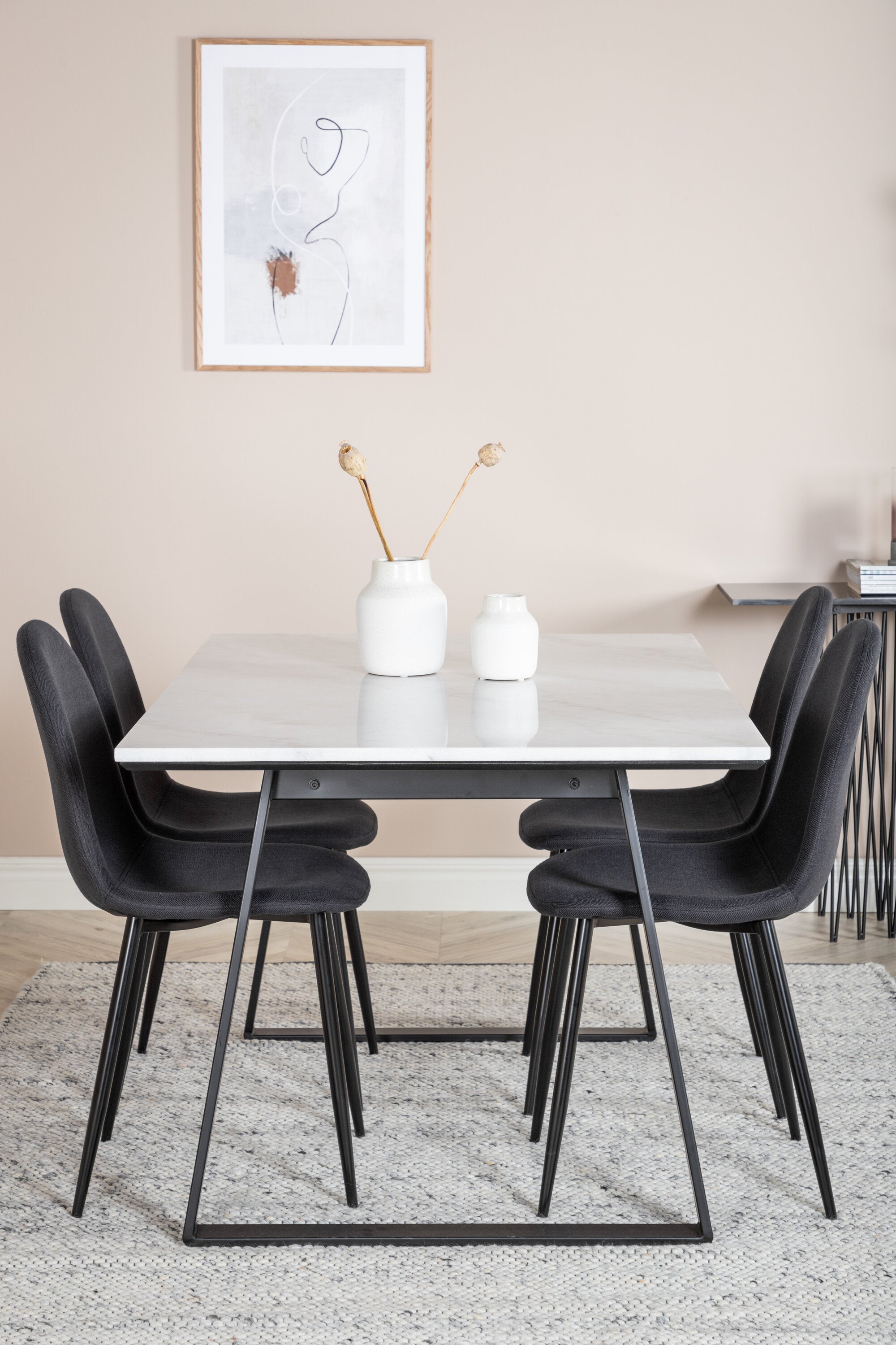 Jídelní stůl Estelle 140*90 - Bílá / Černá + Polární jídelní židle - Černé nohy - Černá látka_4