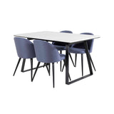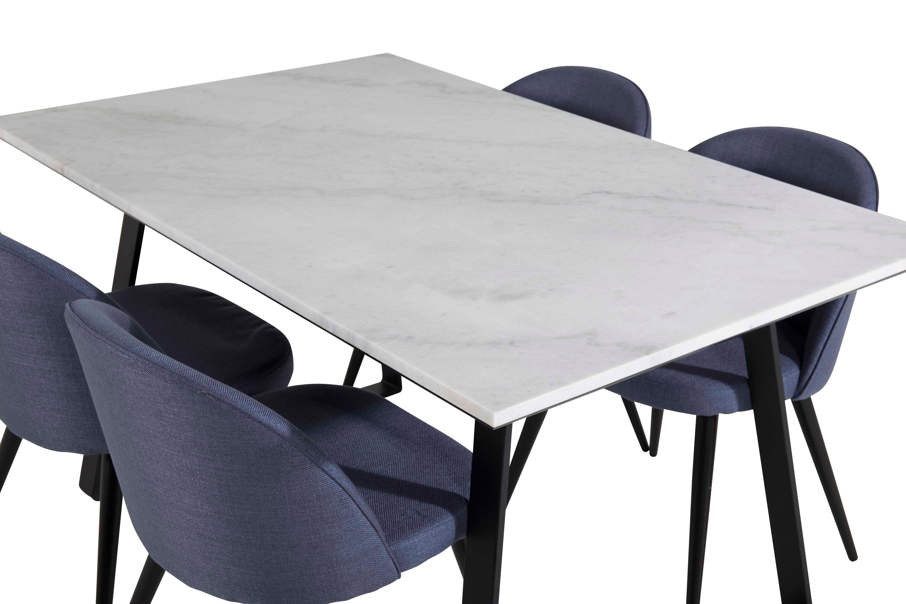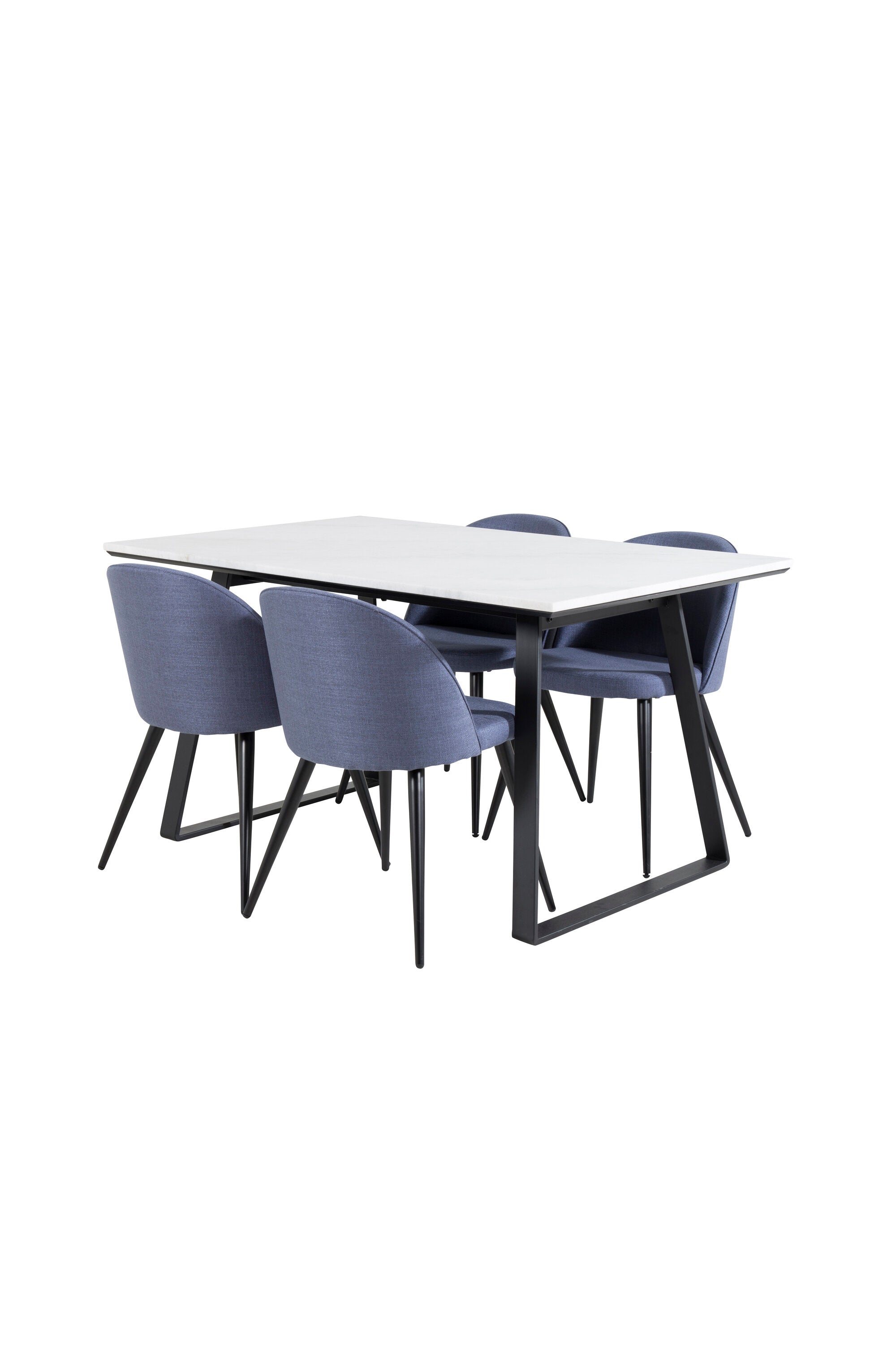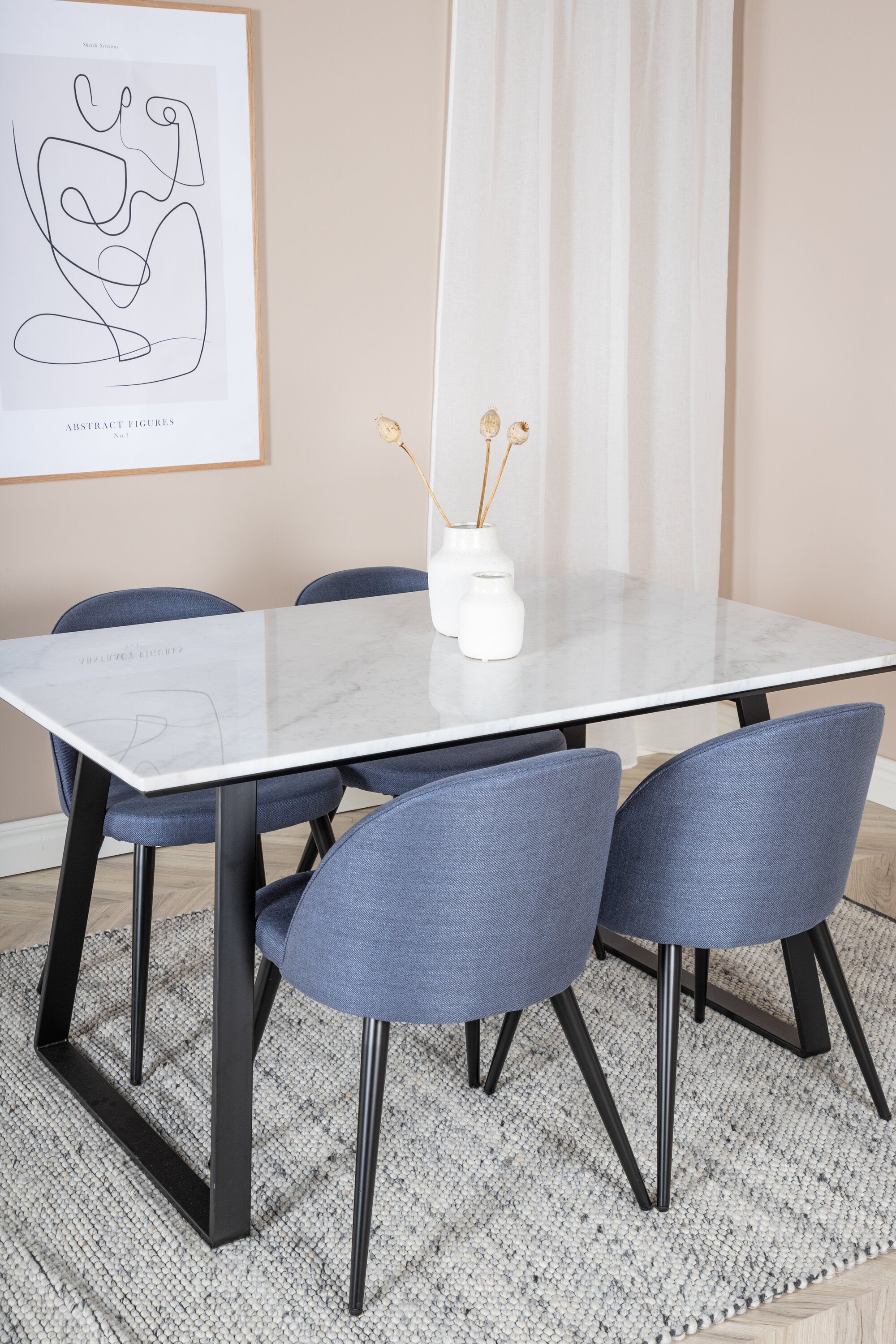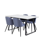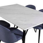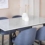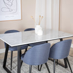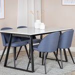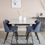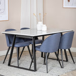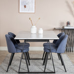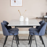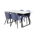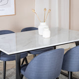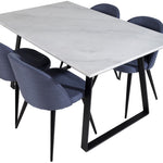 Jídelní stůl Estelle 140*90 - Bílá / Černá + Sametová jídelní židle - Černé nohy - Modrá látka_4