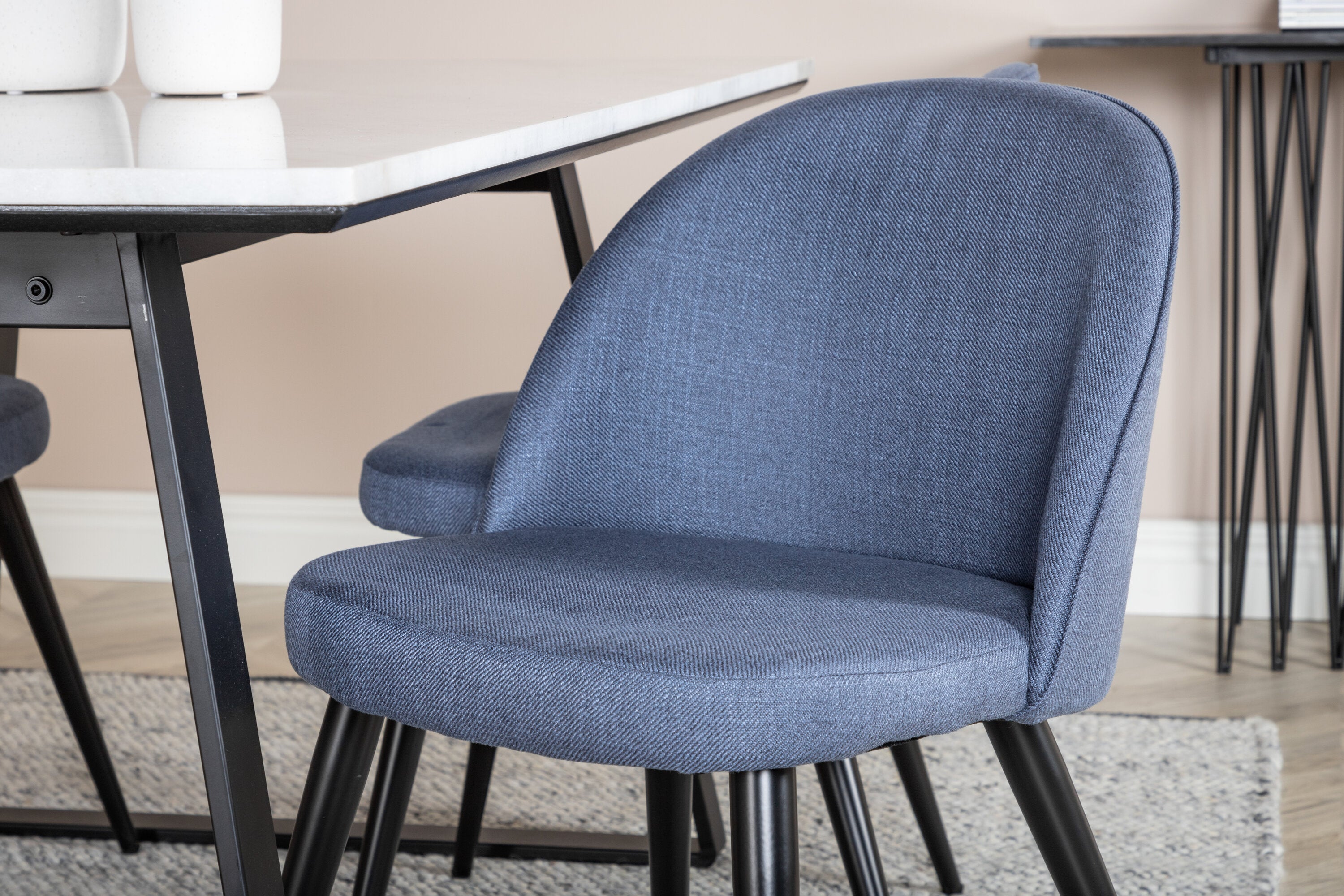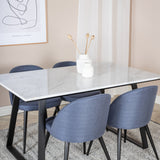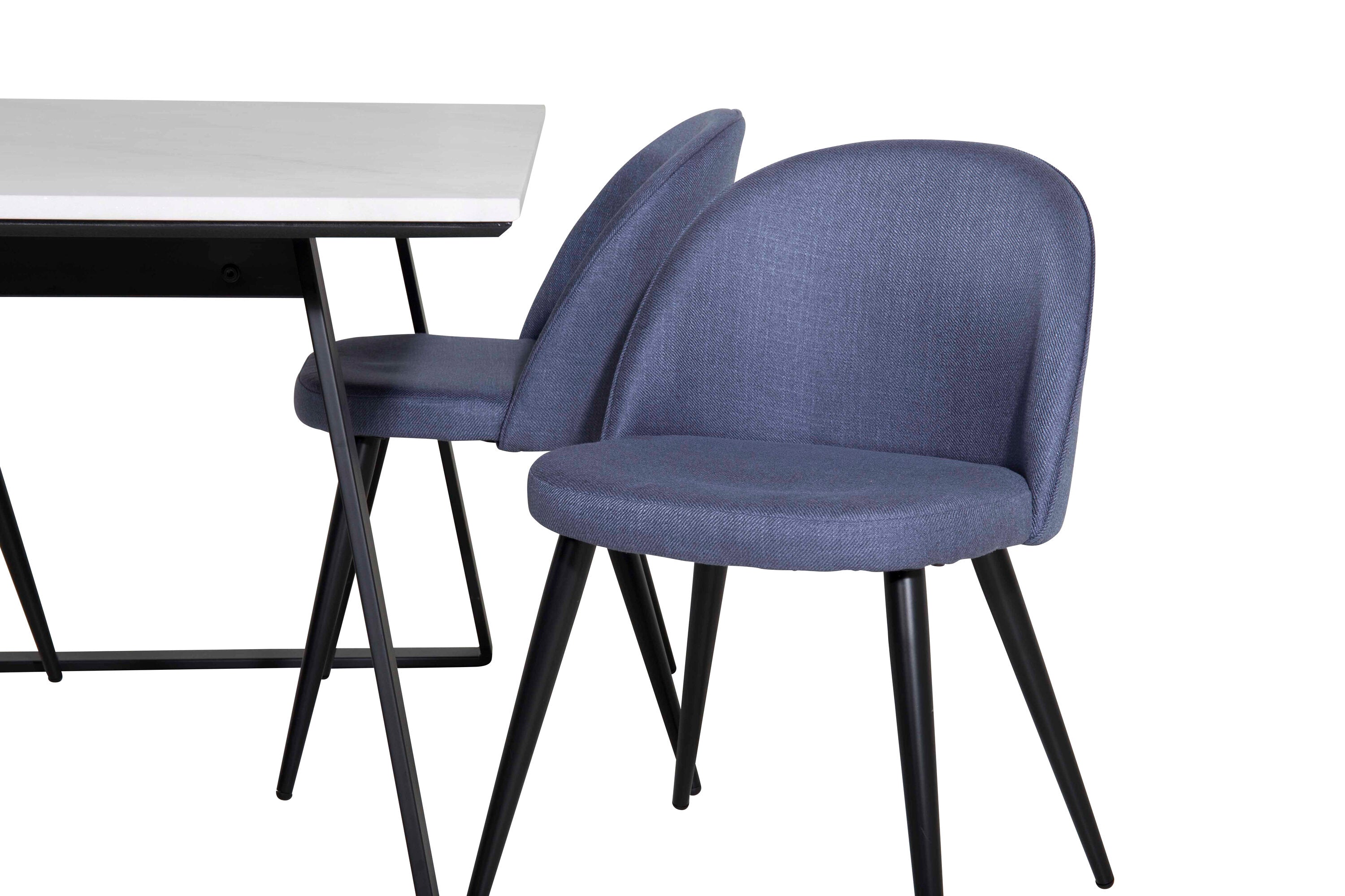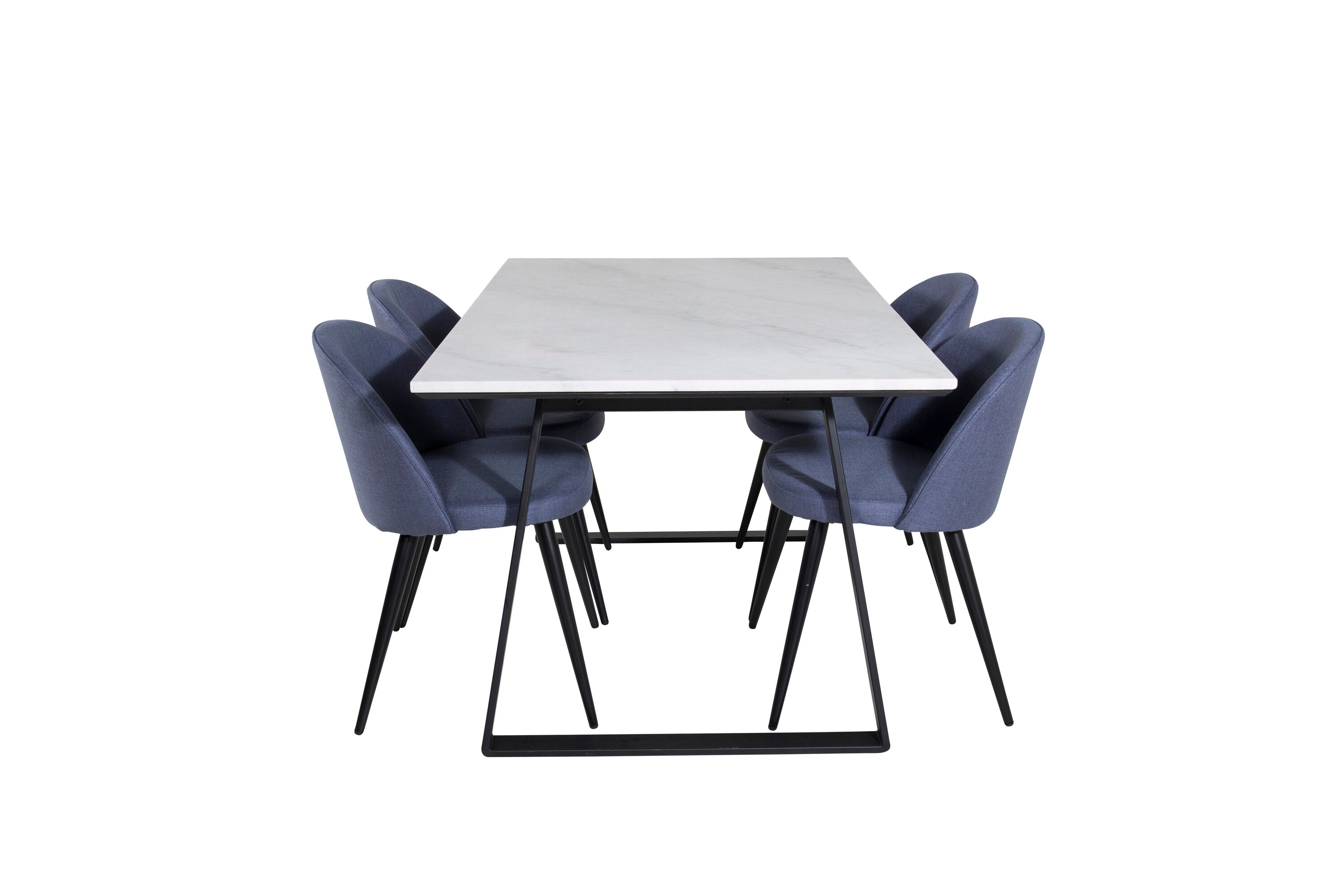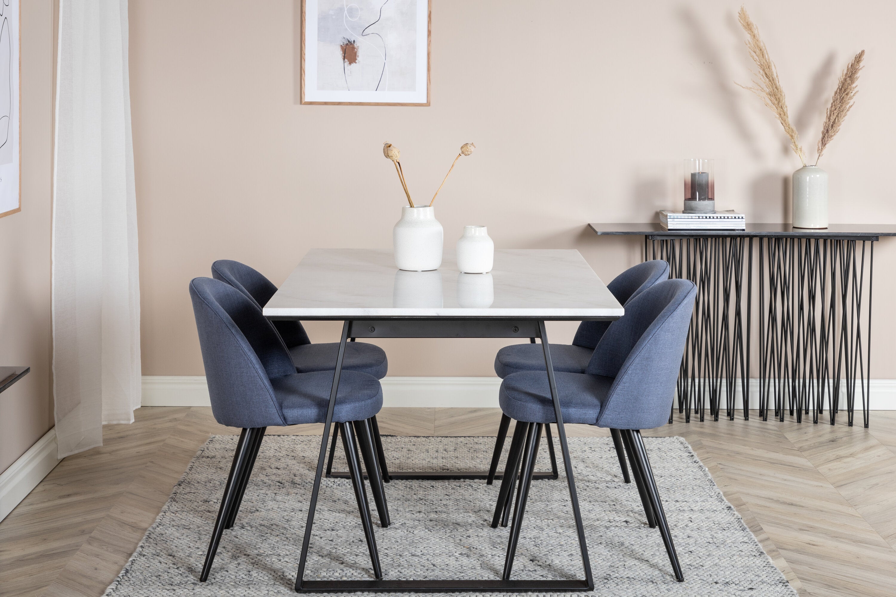 Jídelní stůl Estelle 140*90 - Bílá / Černá + Sametová jídelní židle - Černé nohy - Modrá látka_4