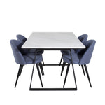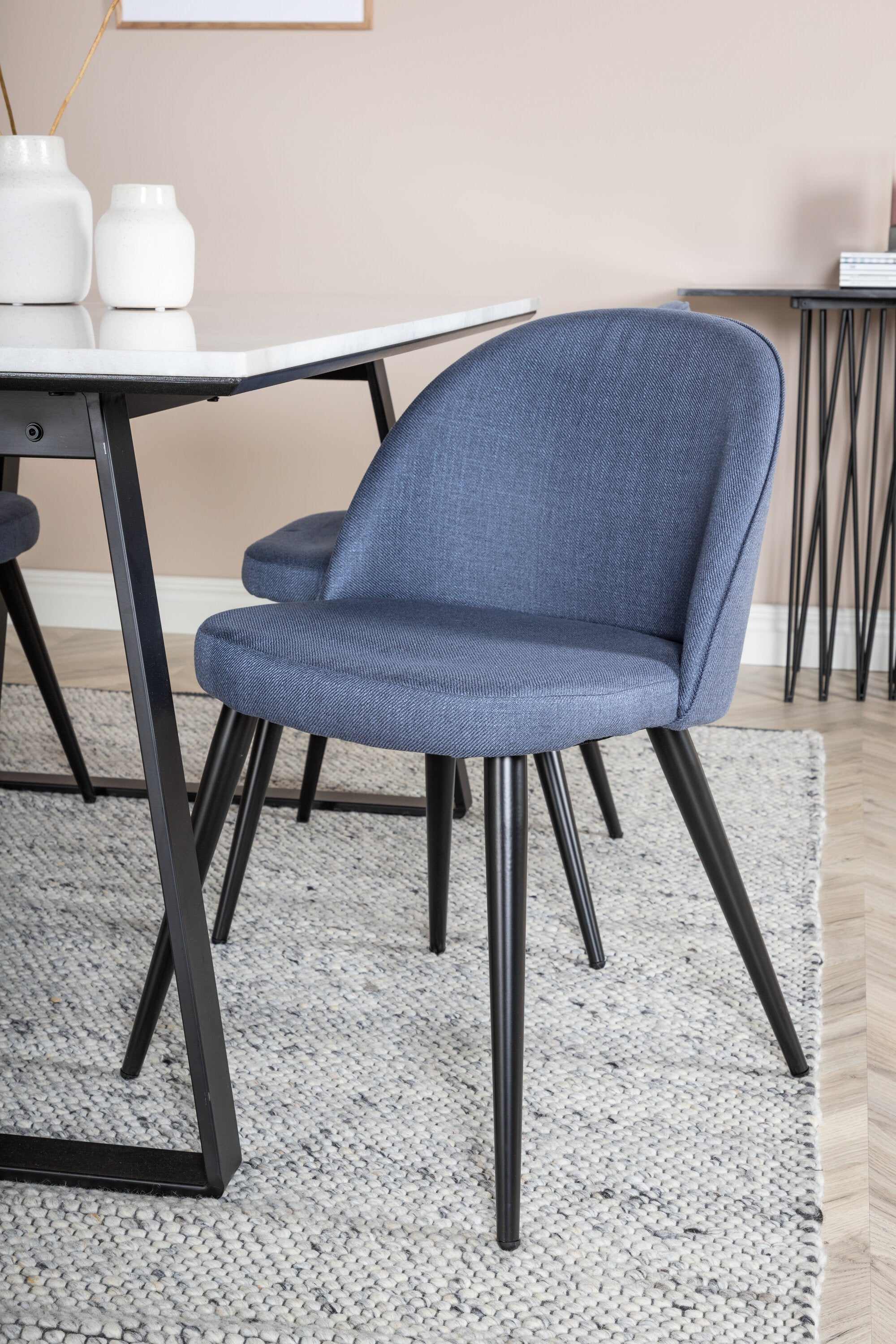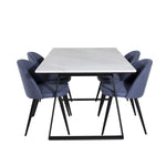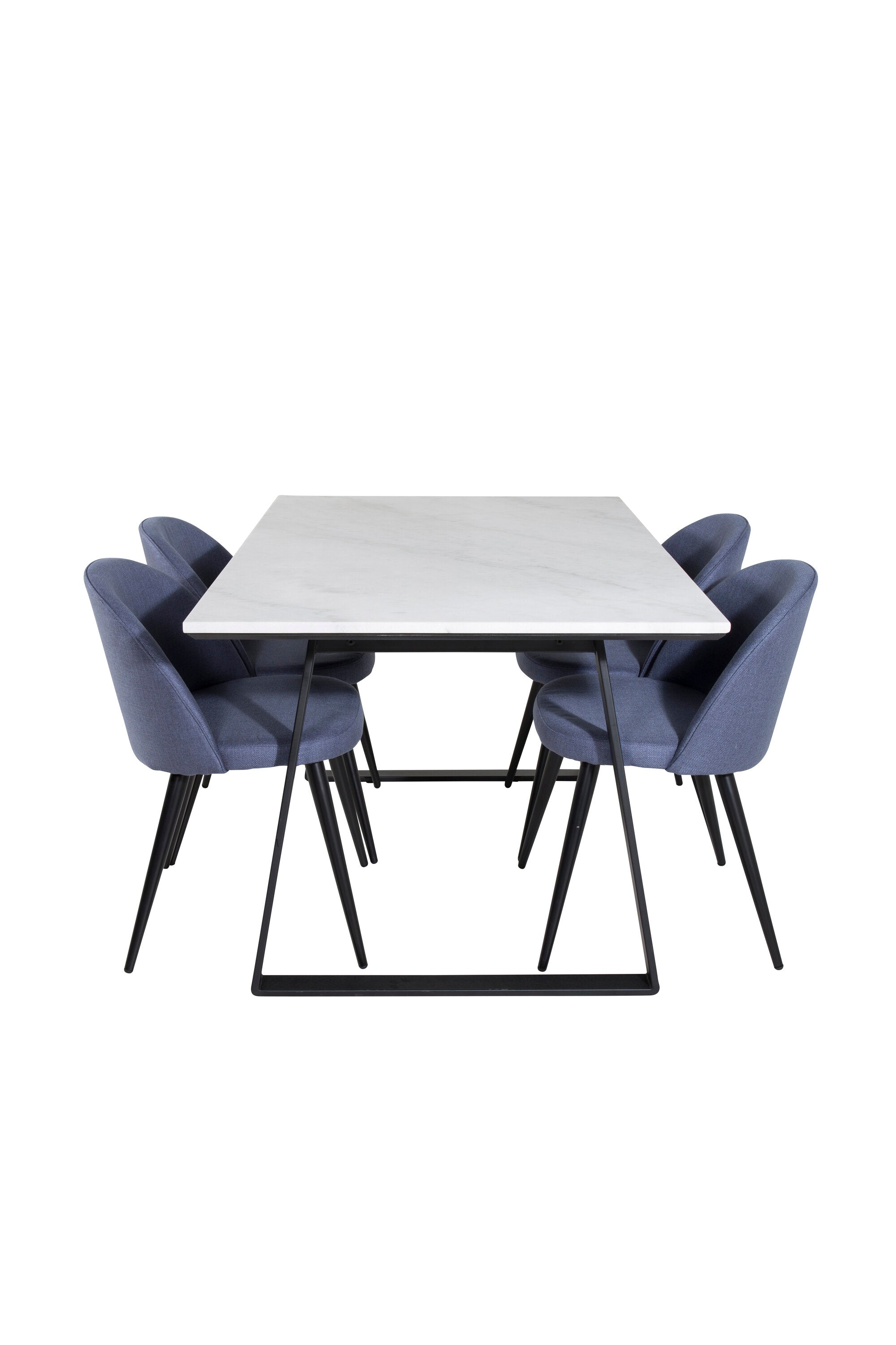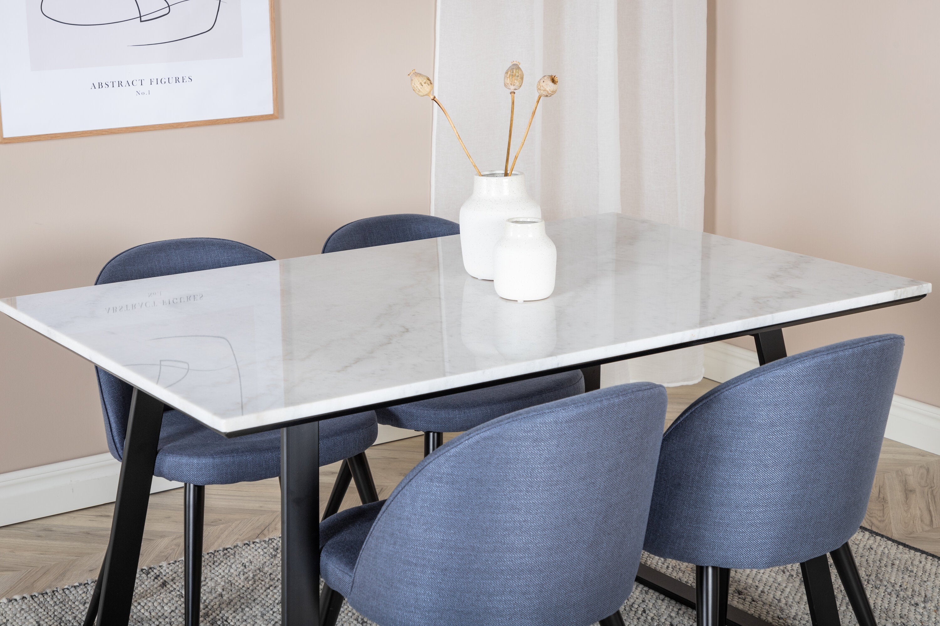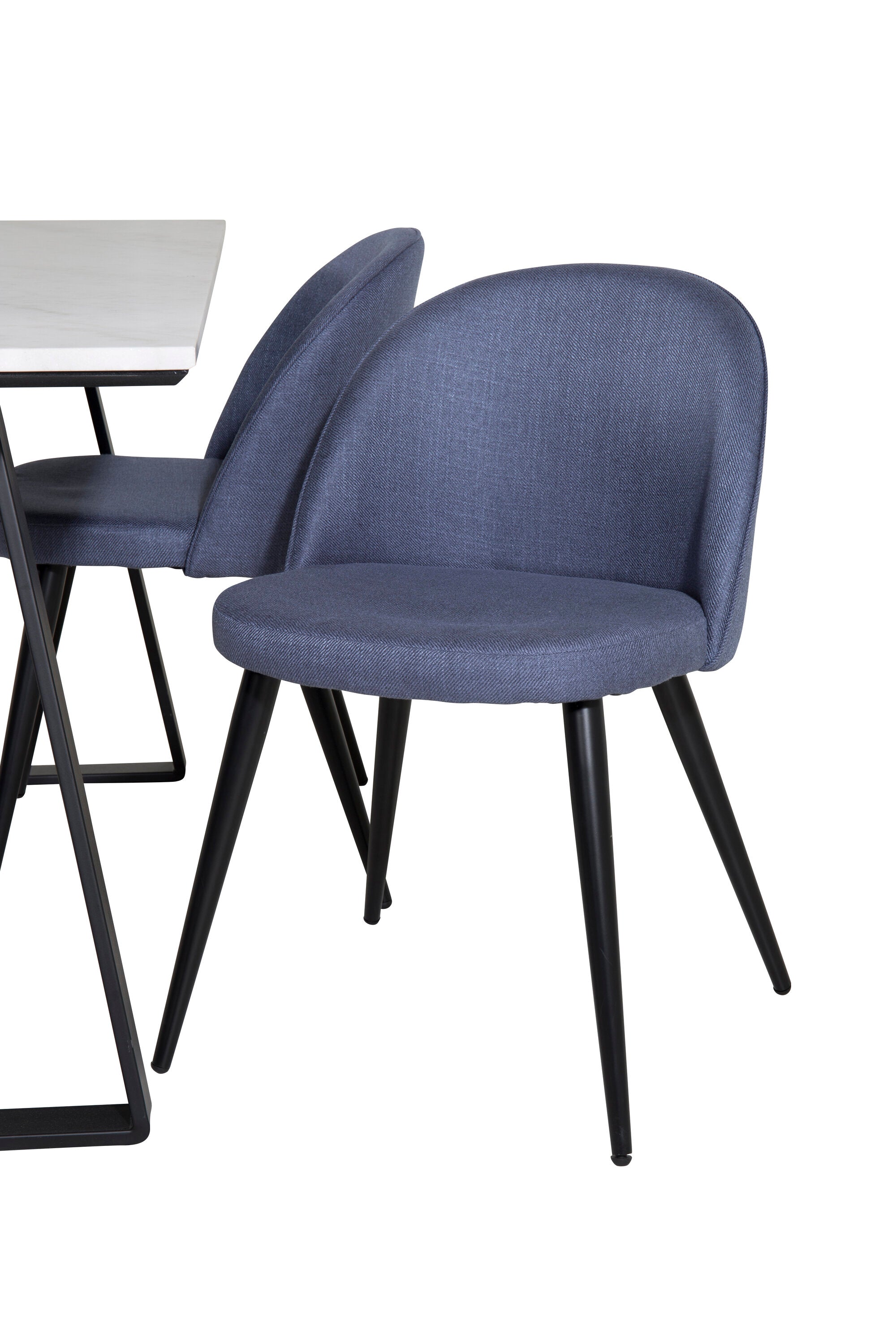 Jídelní stůl Estelle 140*90 - Bílá / Černá + Sametová jídelní židle - Černé nohy - Modrá látka_4