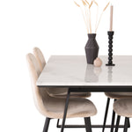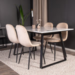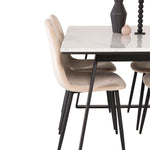 Jídelní stůl Estelle 140*90 – bílý mramor / černé nohy+jídelní židle Polar – černé nohy / béžový samet_4