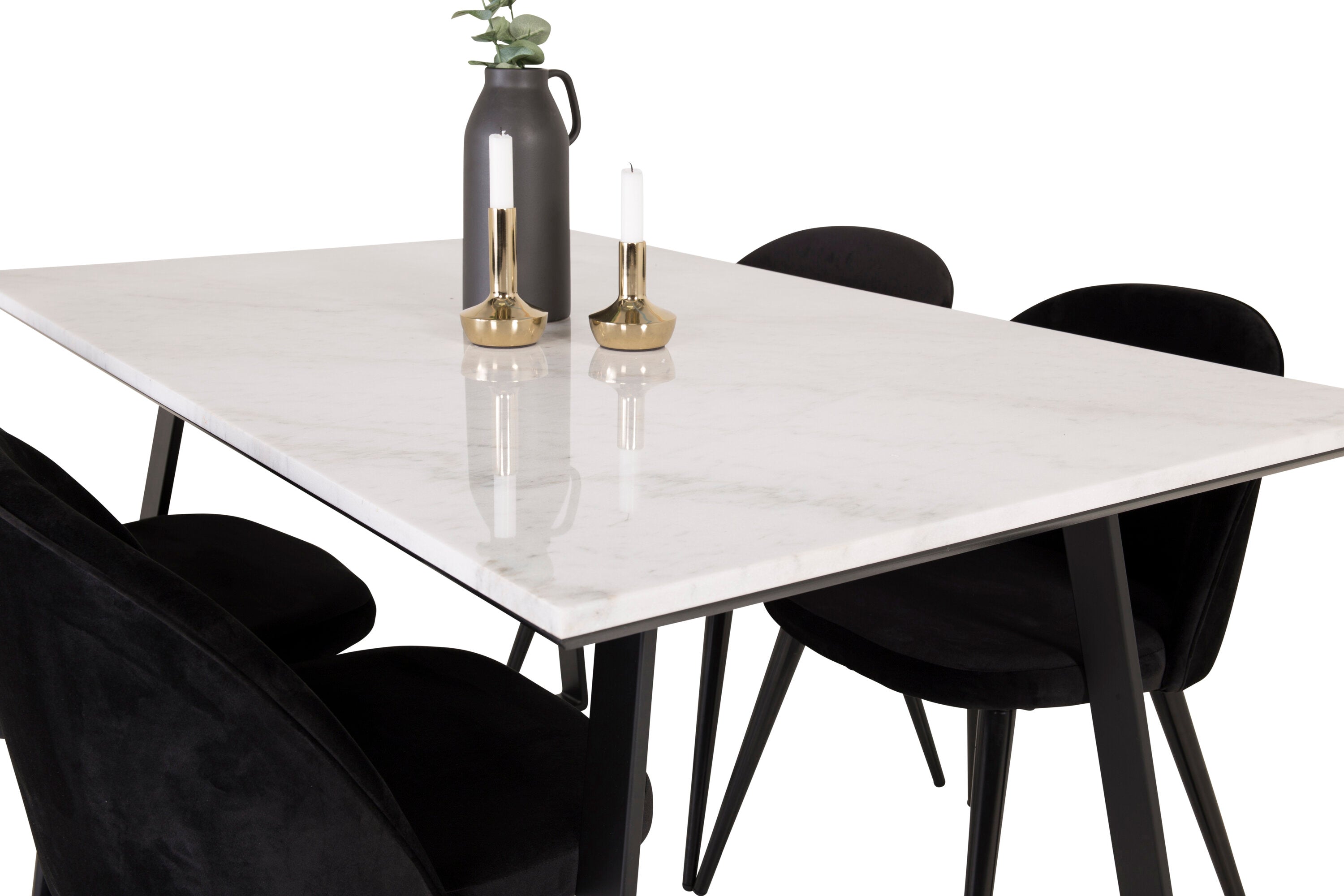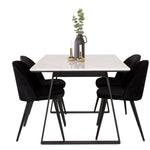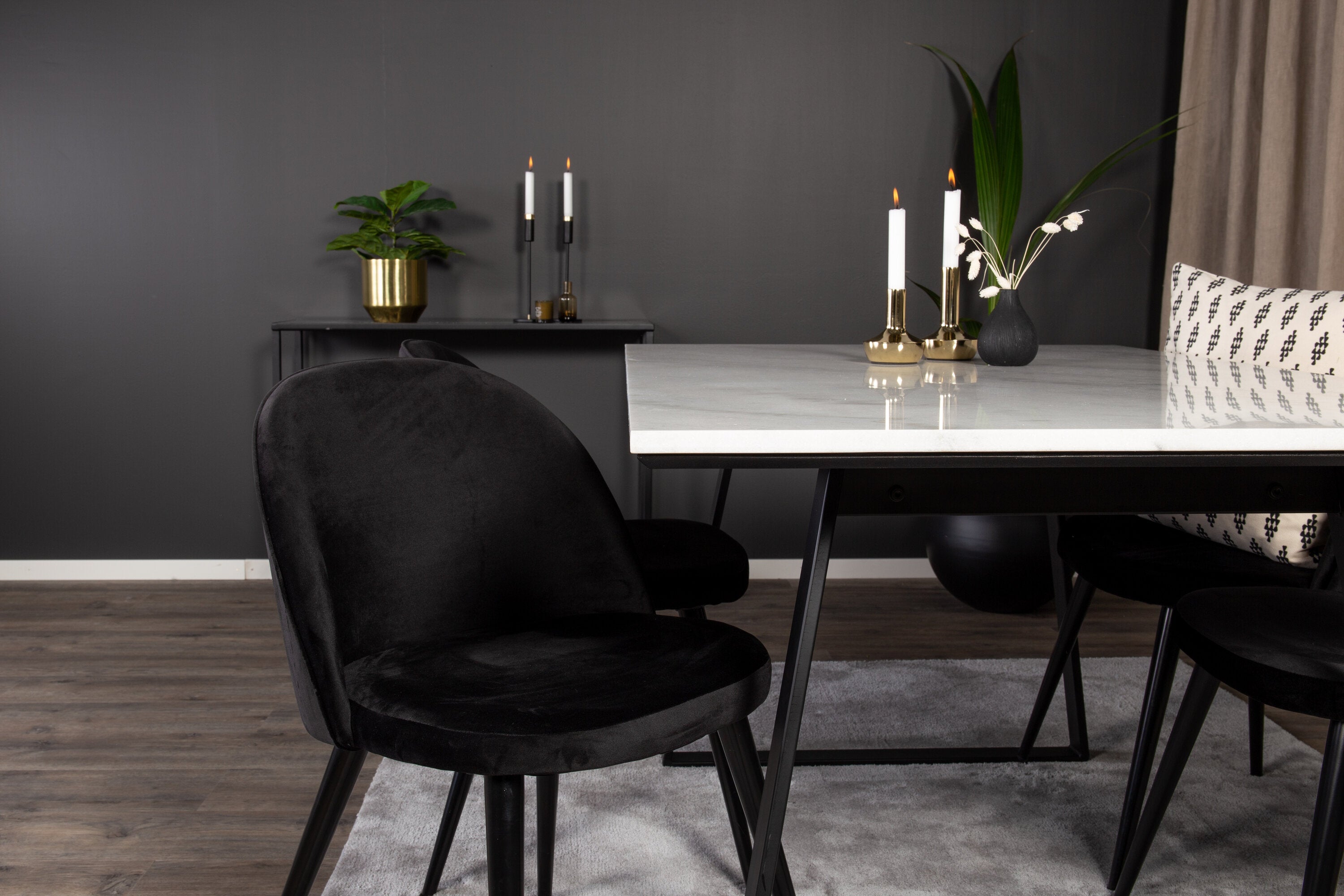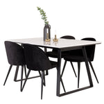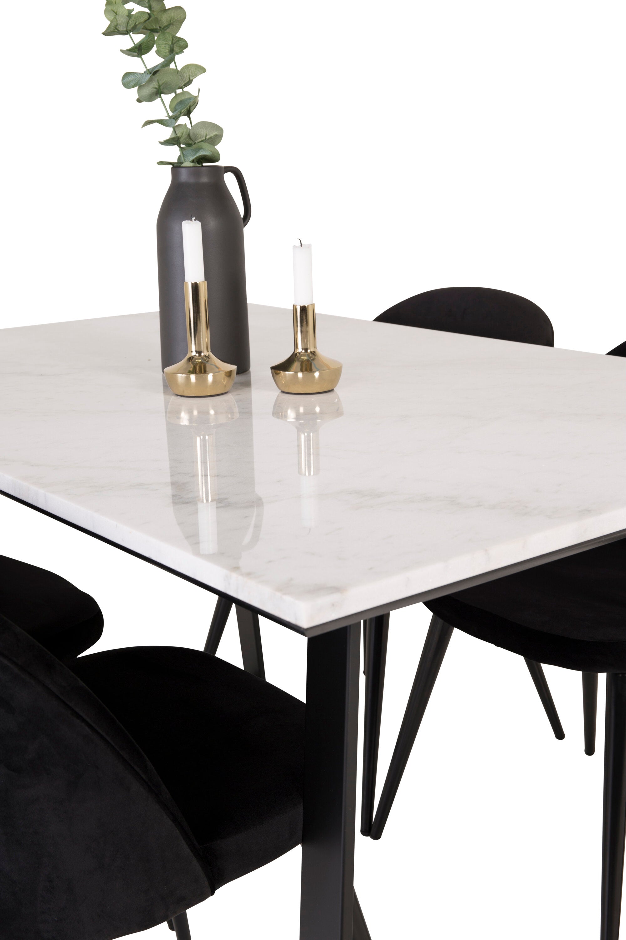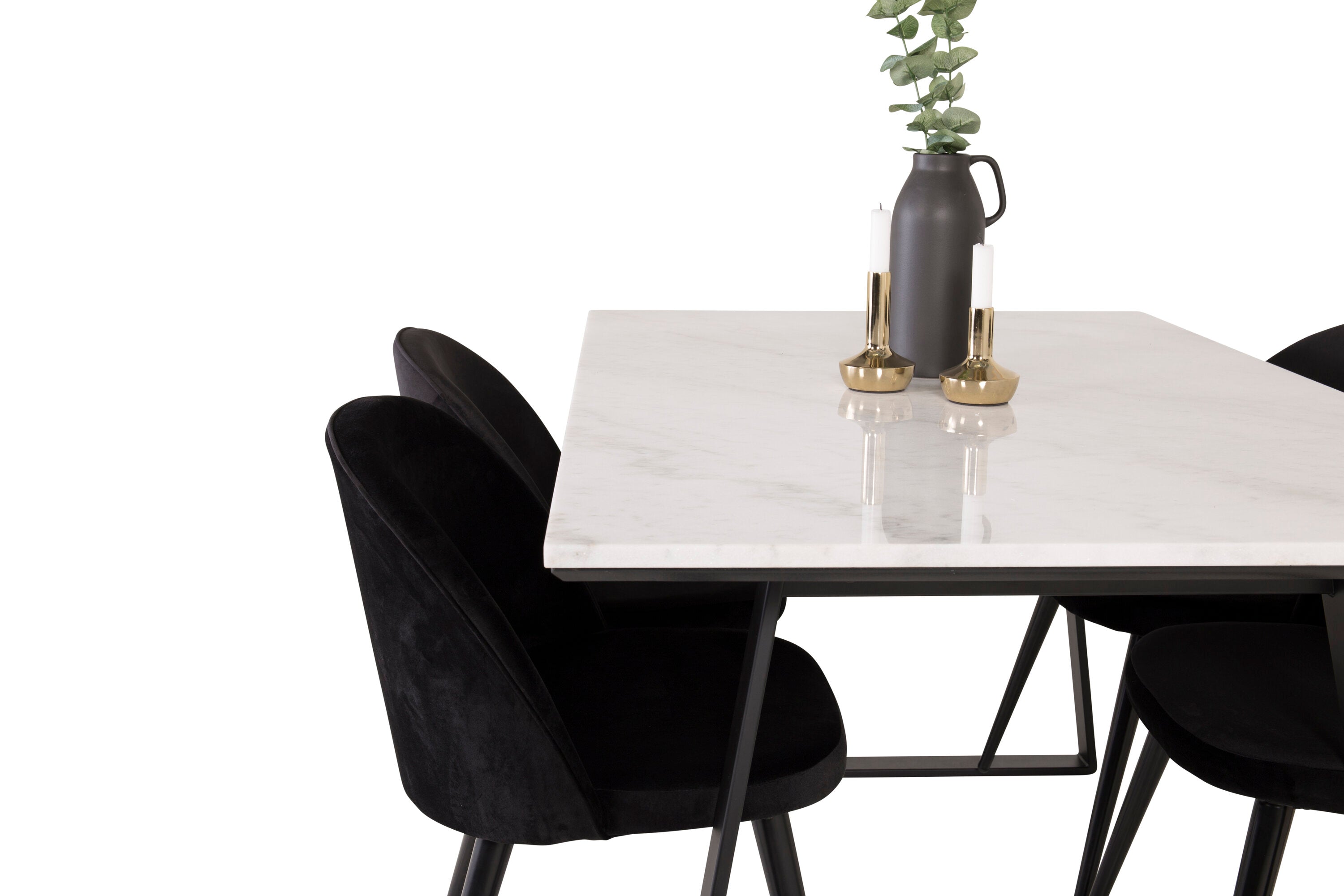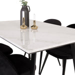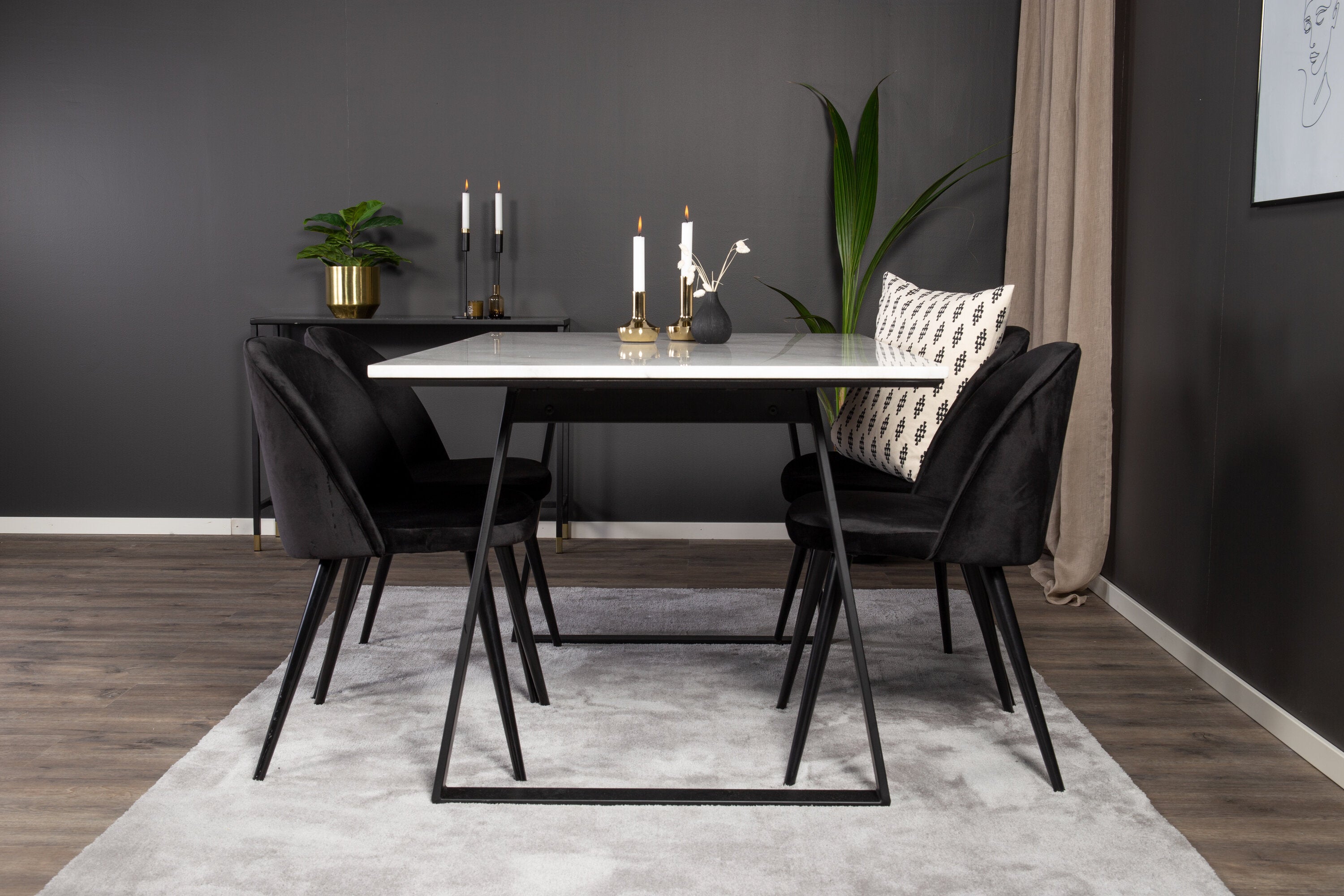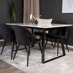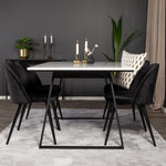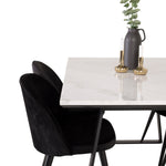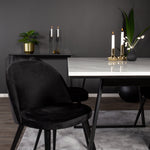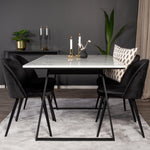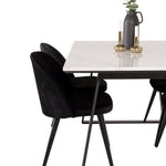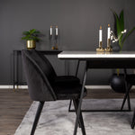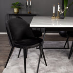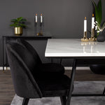 Jídelní stůl Estelle 140*90 – bílý mramor / černé nohy – sametová jídelní židle – černá / černá 4