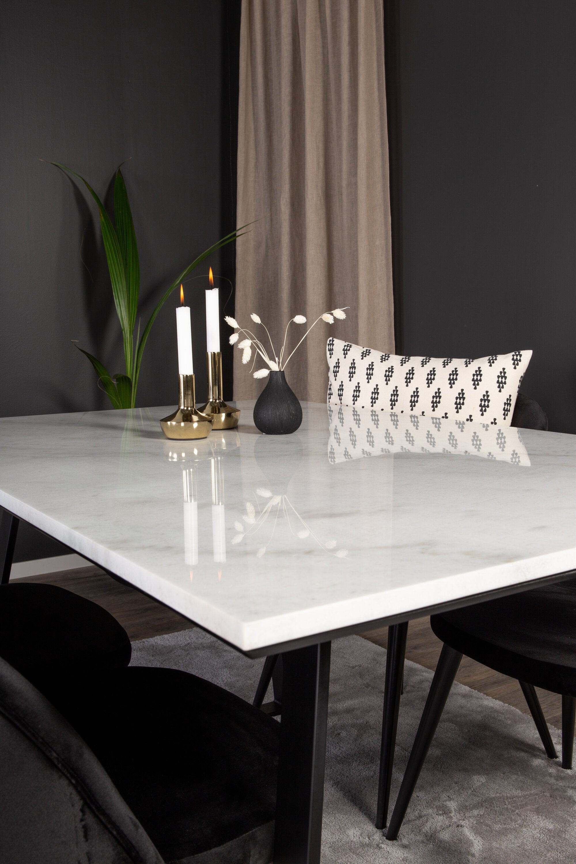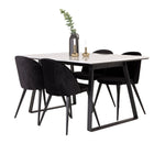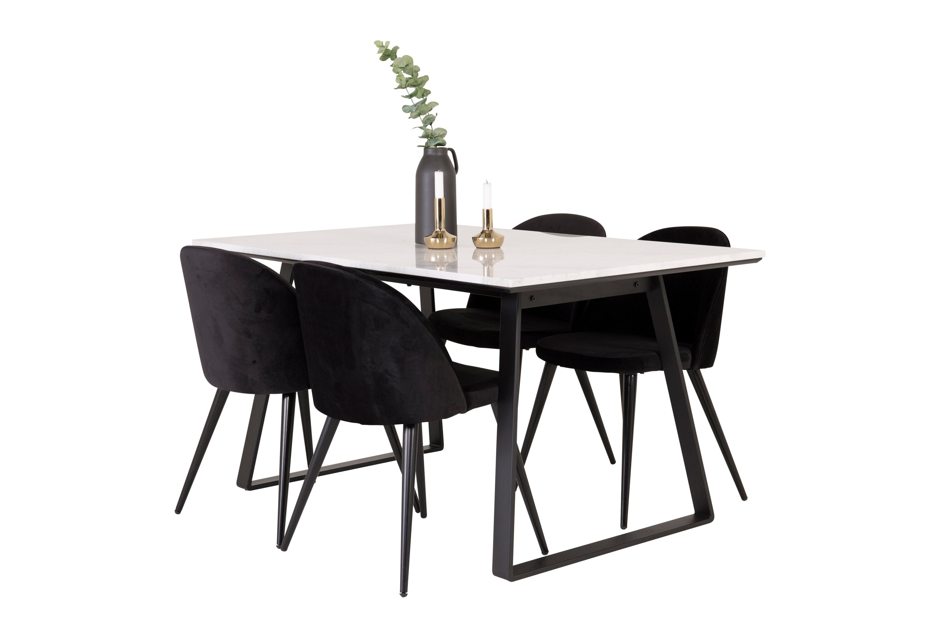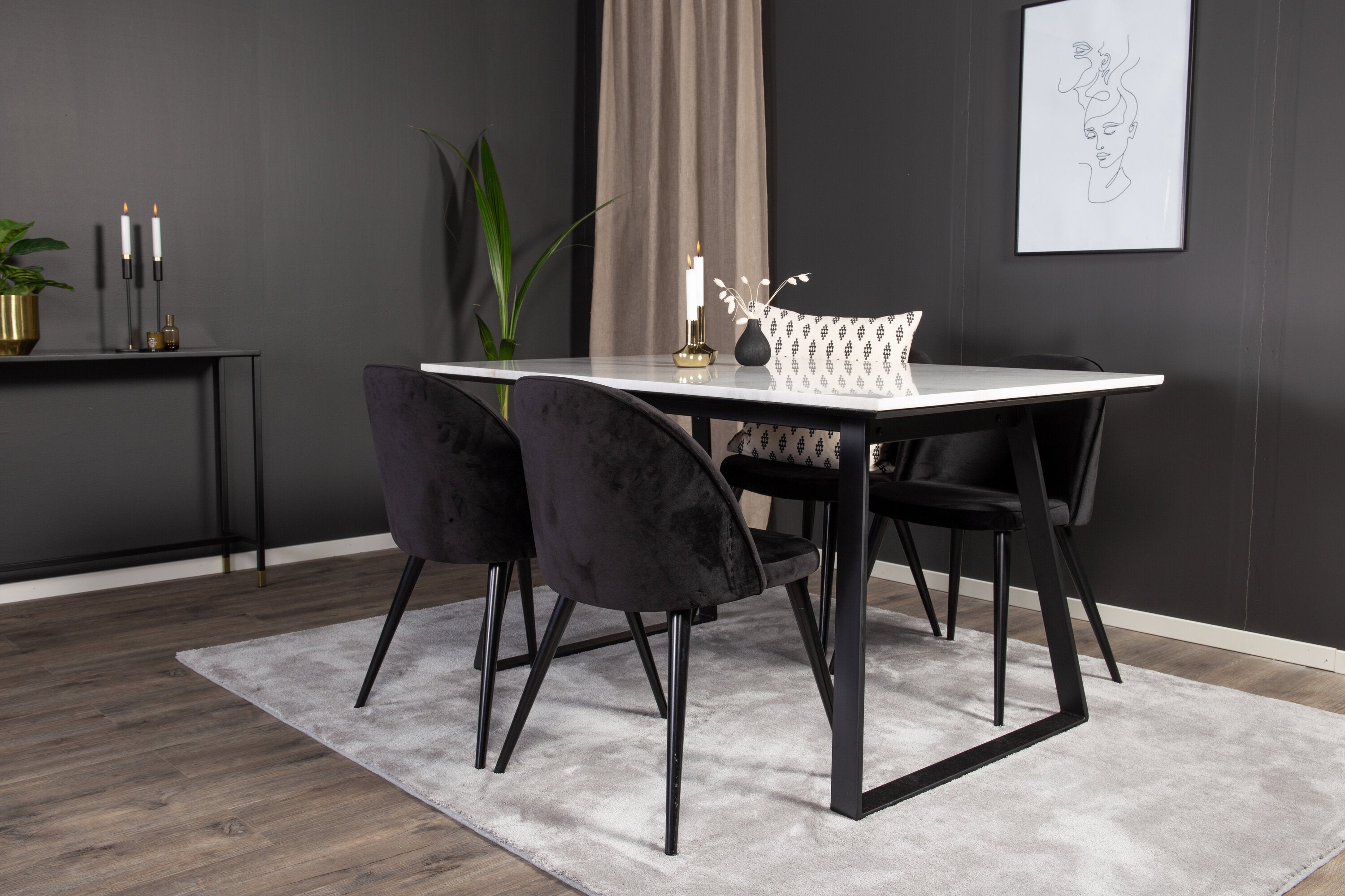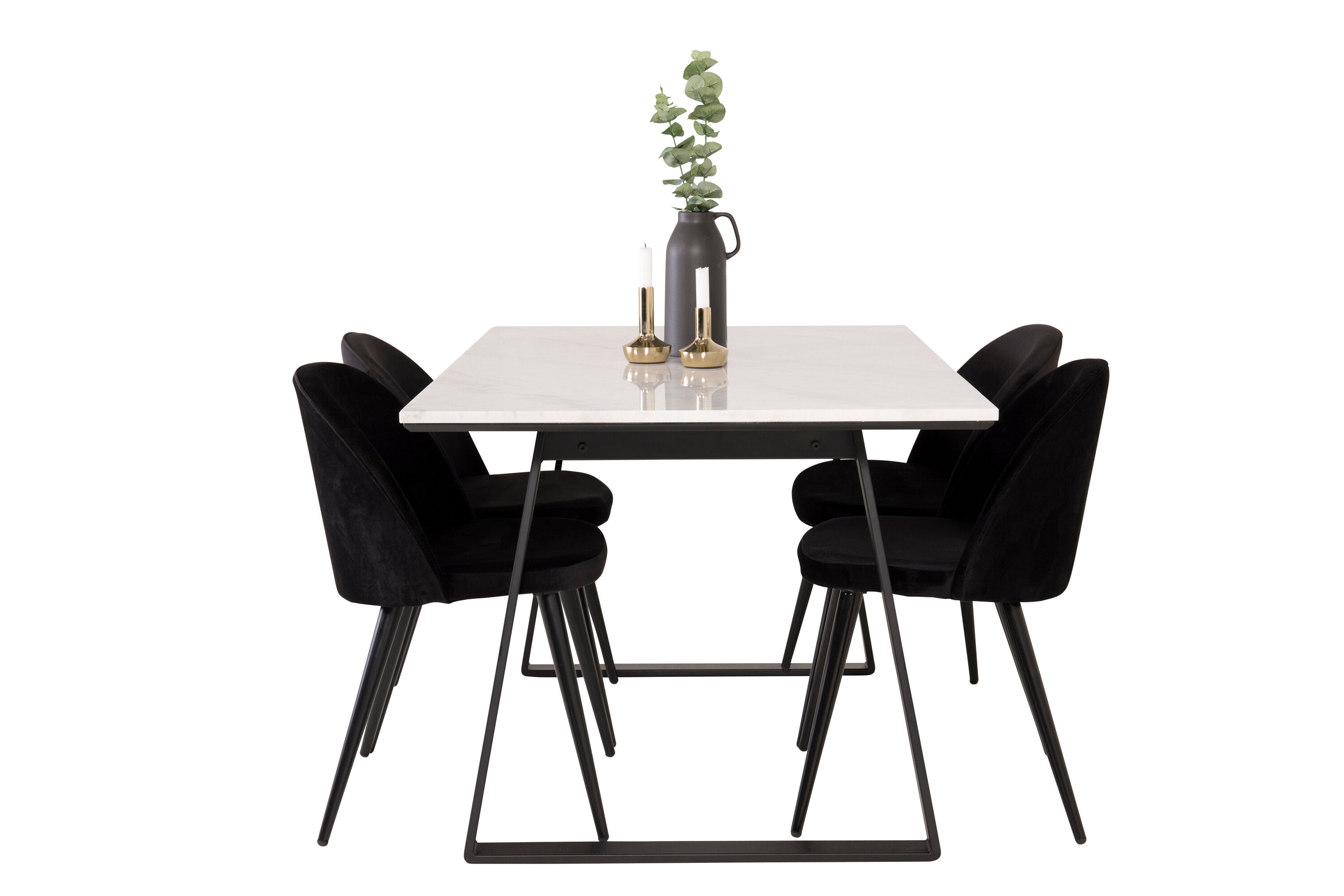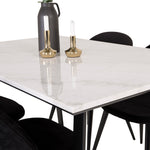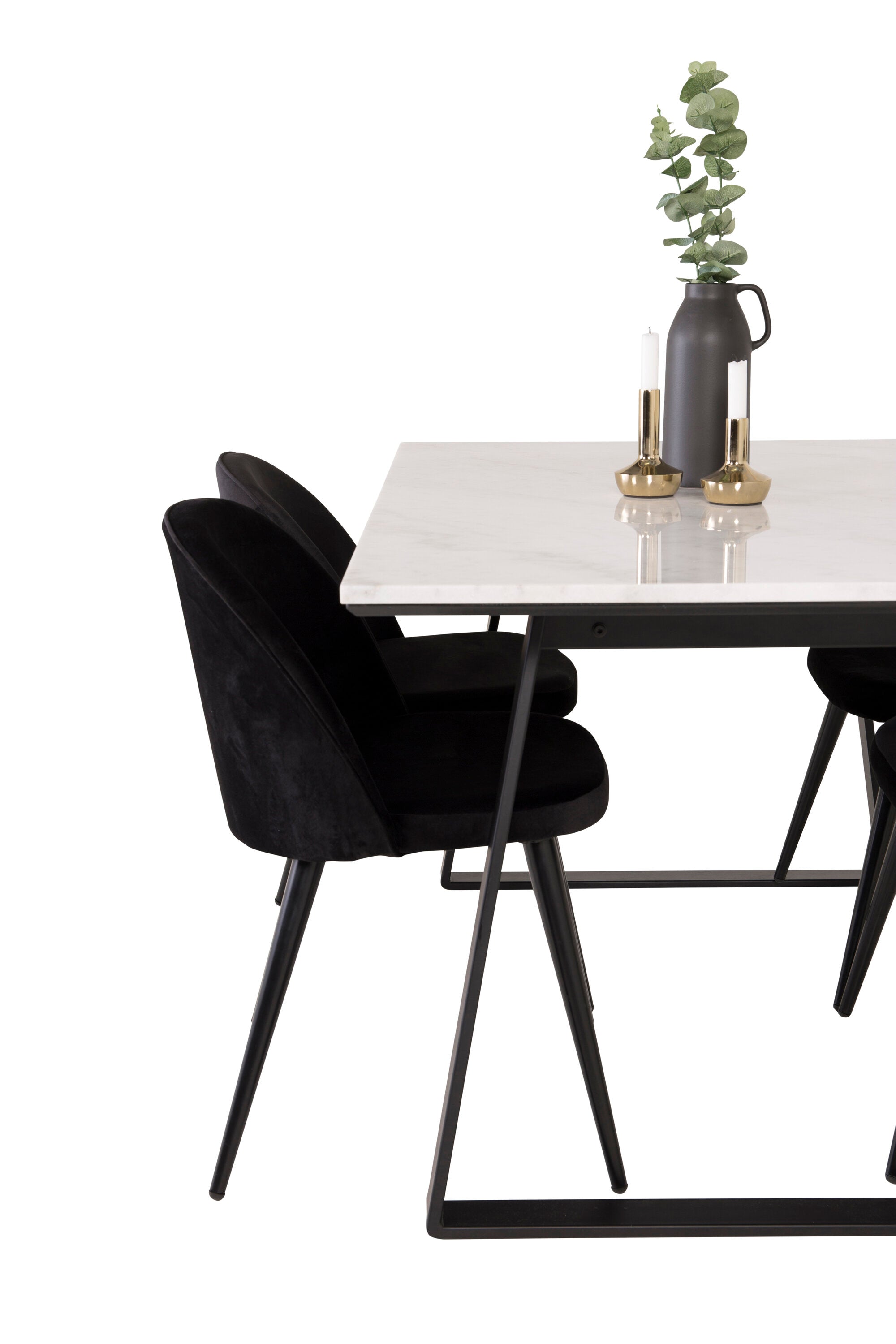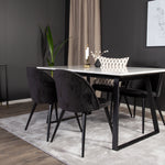 Jídelní stůl Estelle 140*90 – bílý mramor / černé nohy – sametová jídelní židle – černá / černá 4