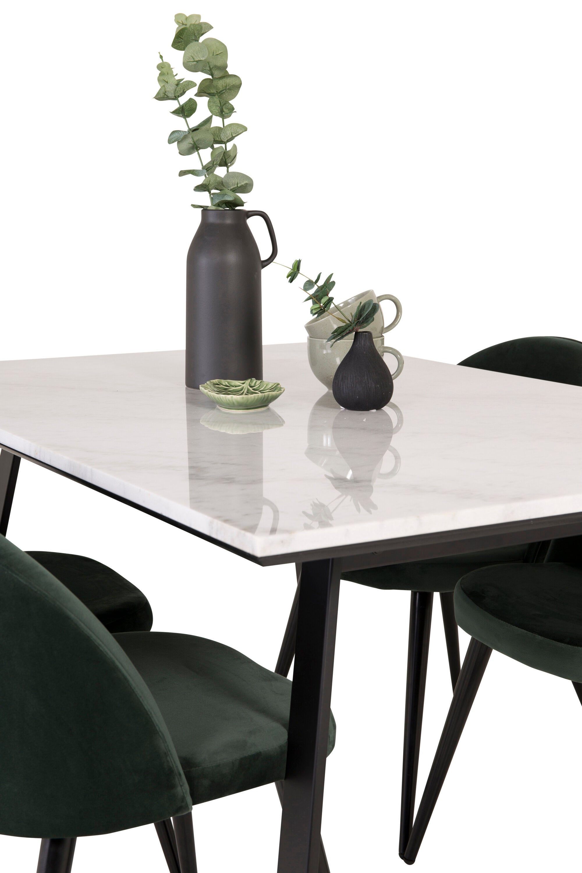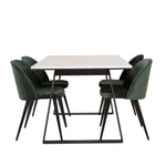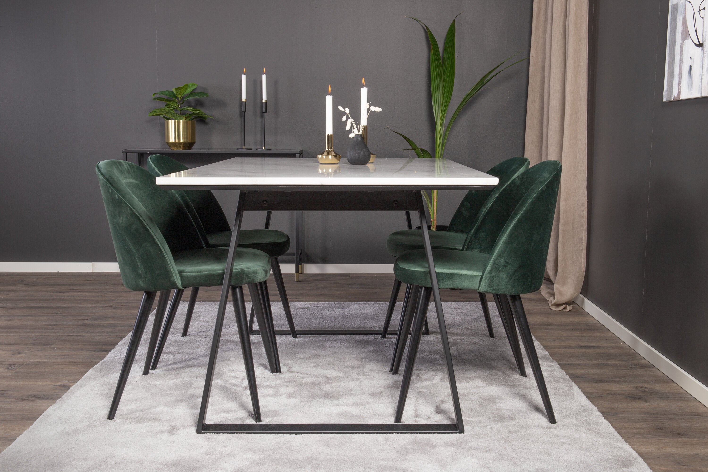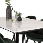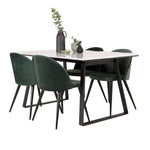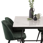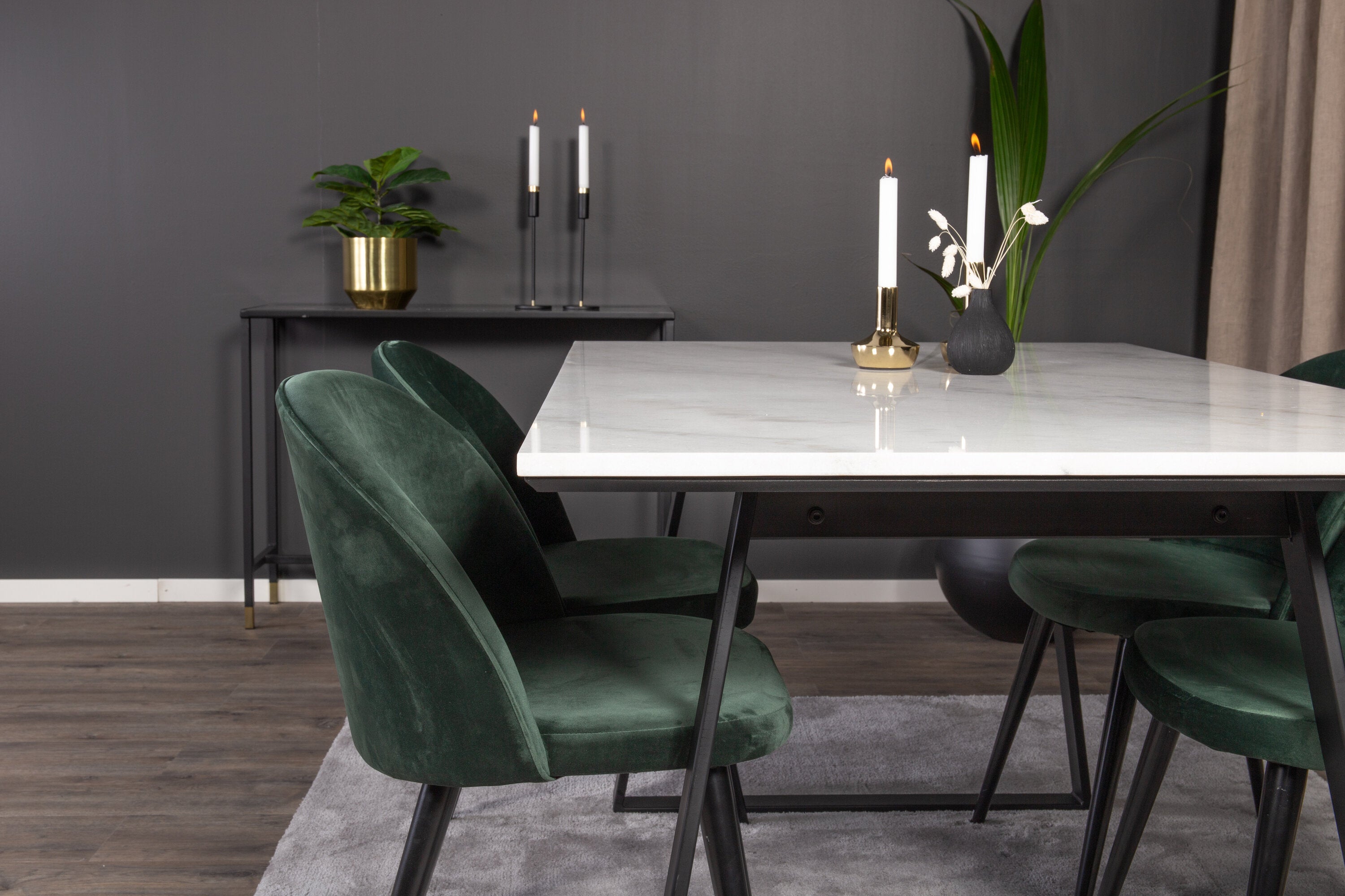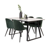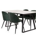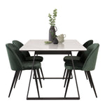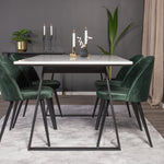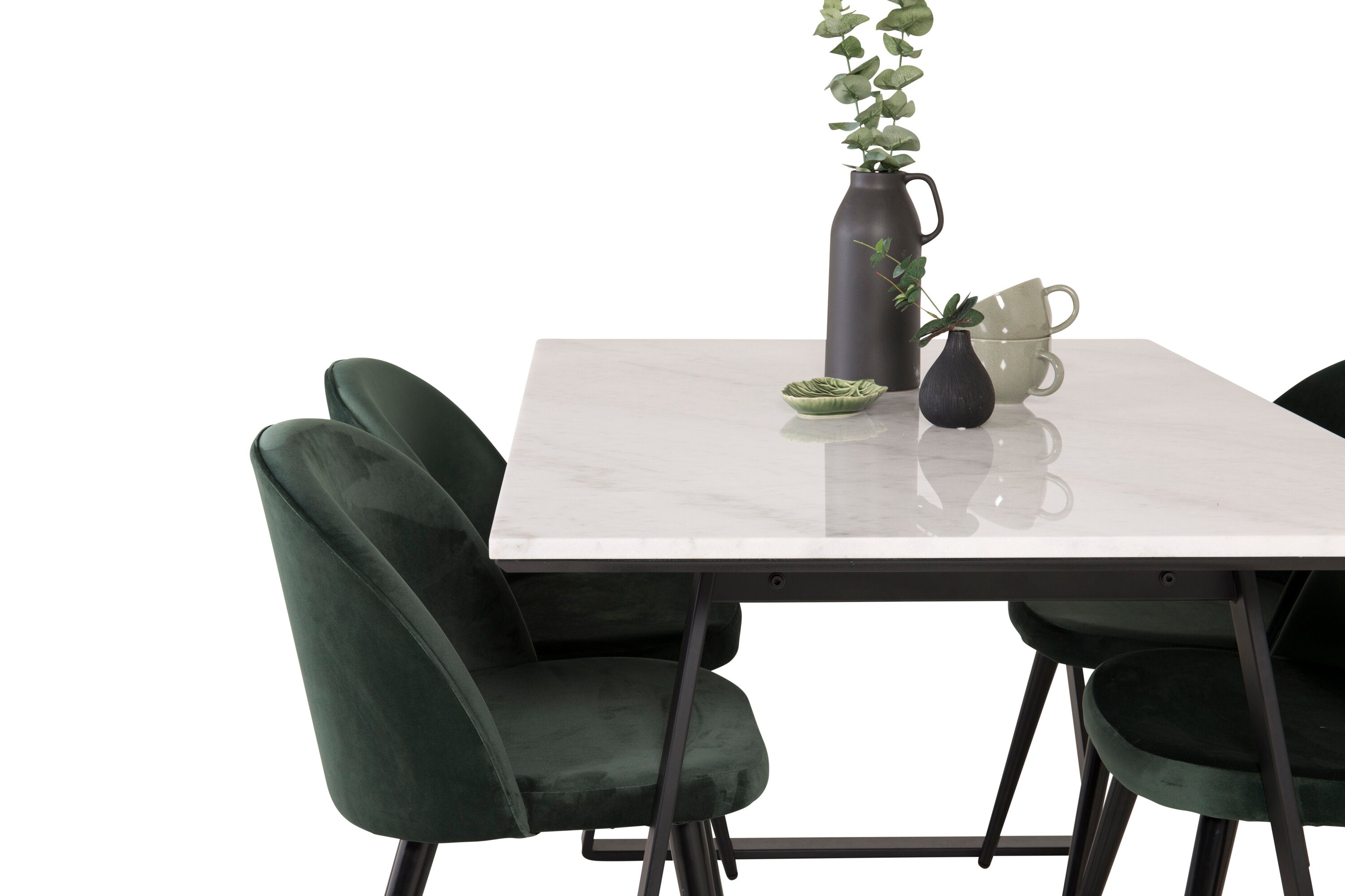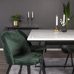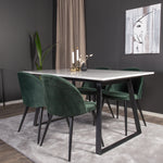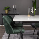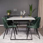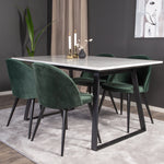 Jídelní stůl Estelle 140*90 – bílý mramor / černé nohy – sametová jídelní židle – zelená / černá 4