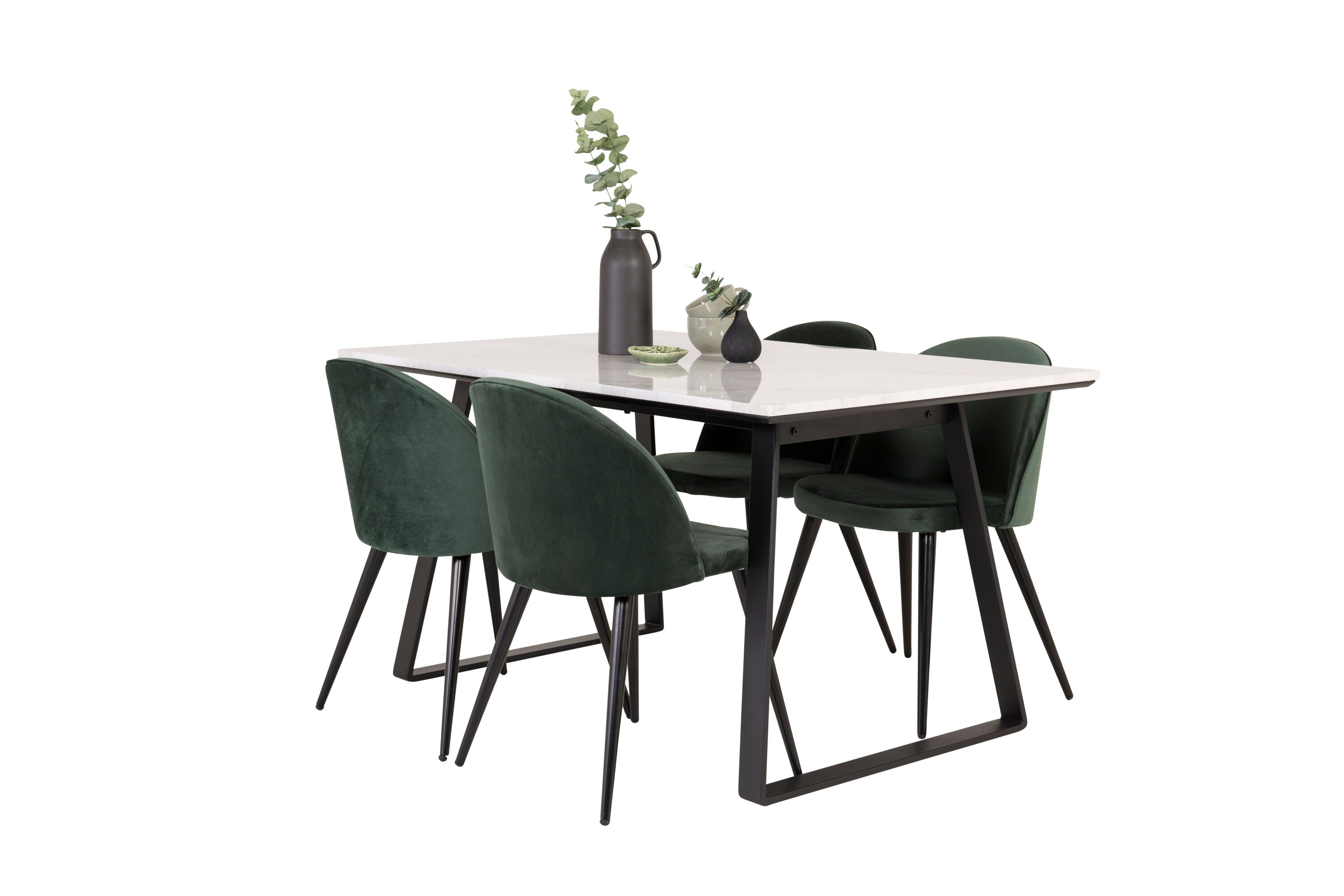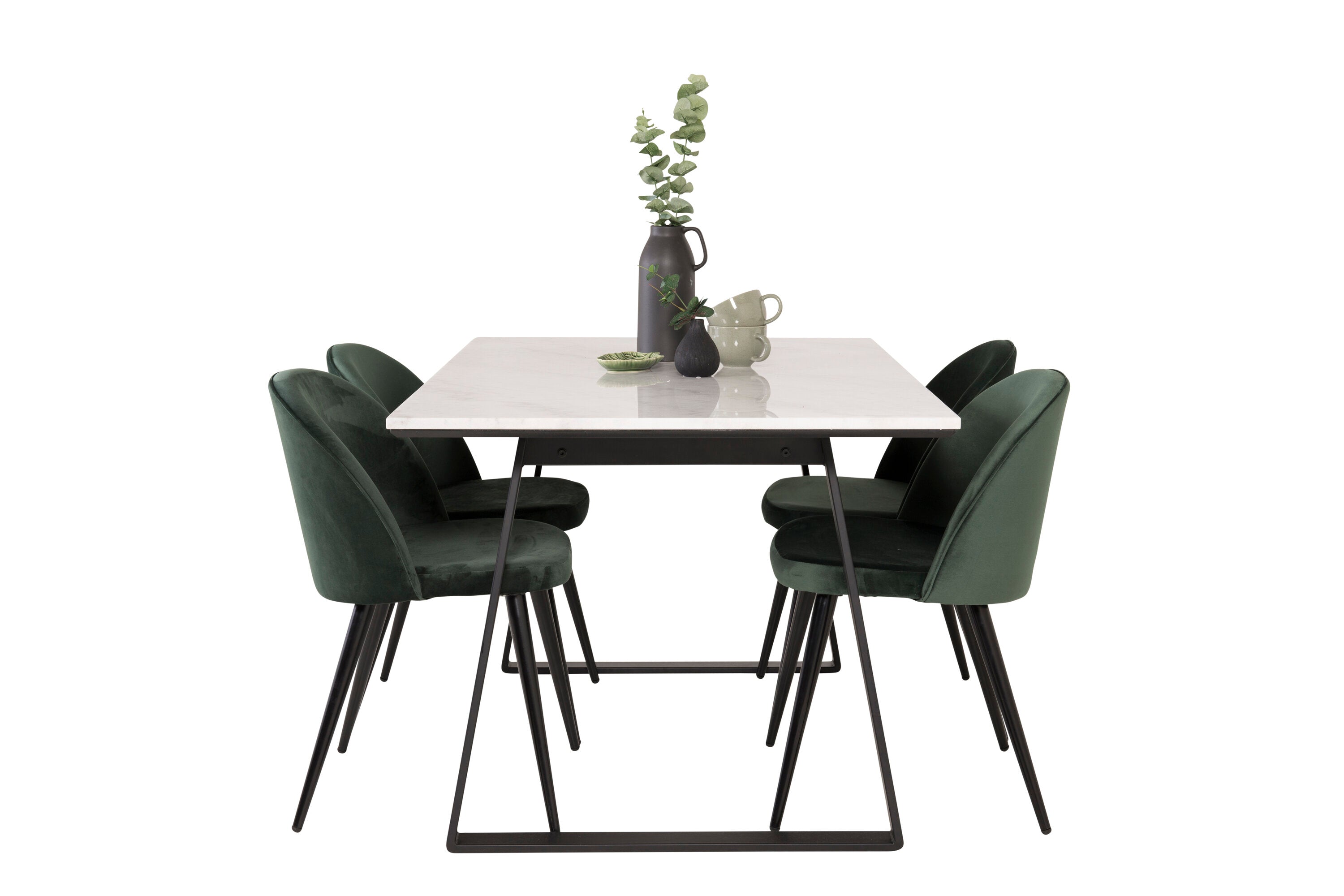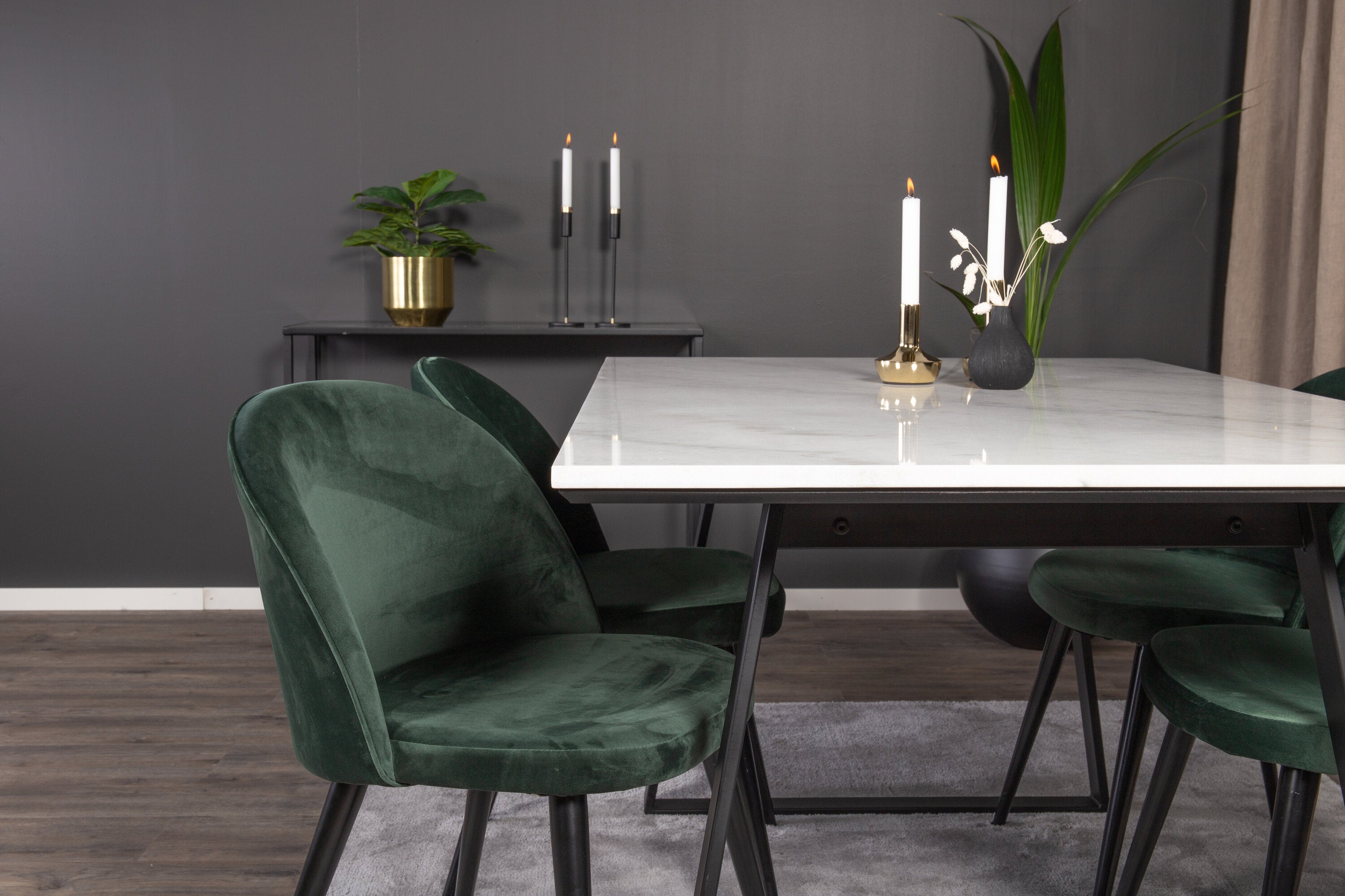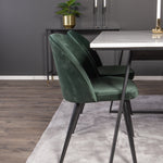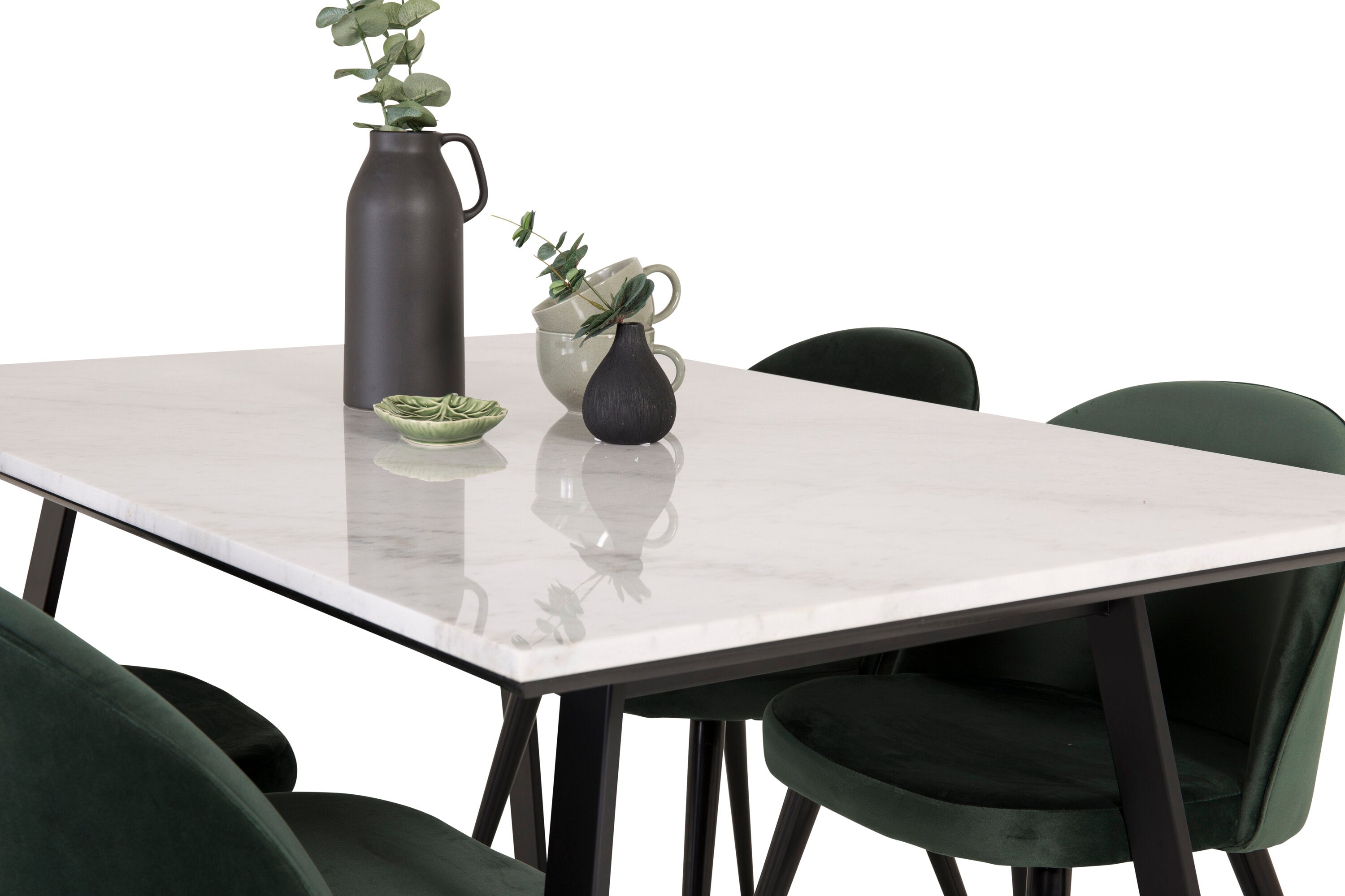 Jídelní stůl Estelle 140*90 – bílý mramor / černé nohy – sametová jídelní židle – zelená / černá 4