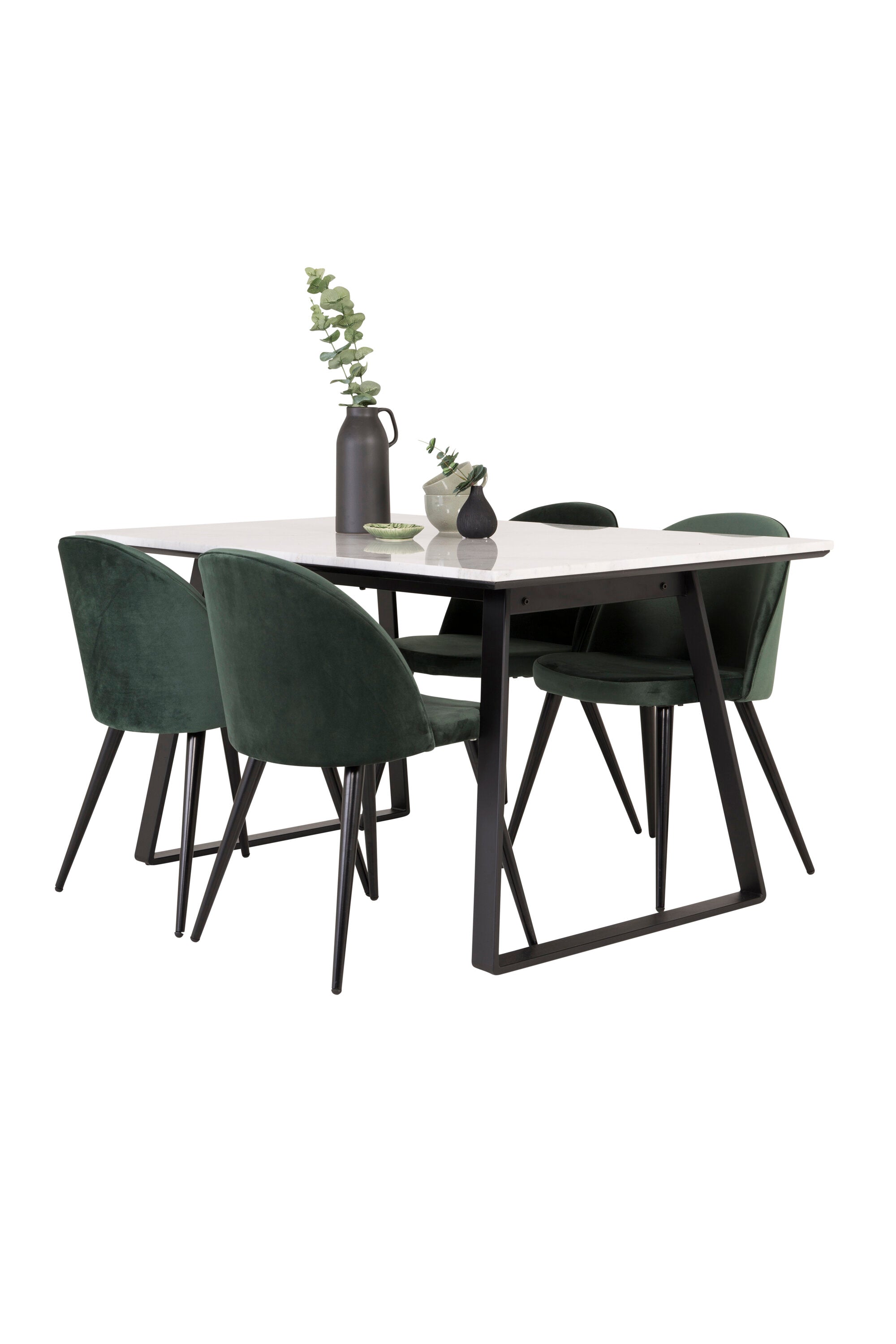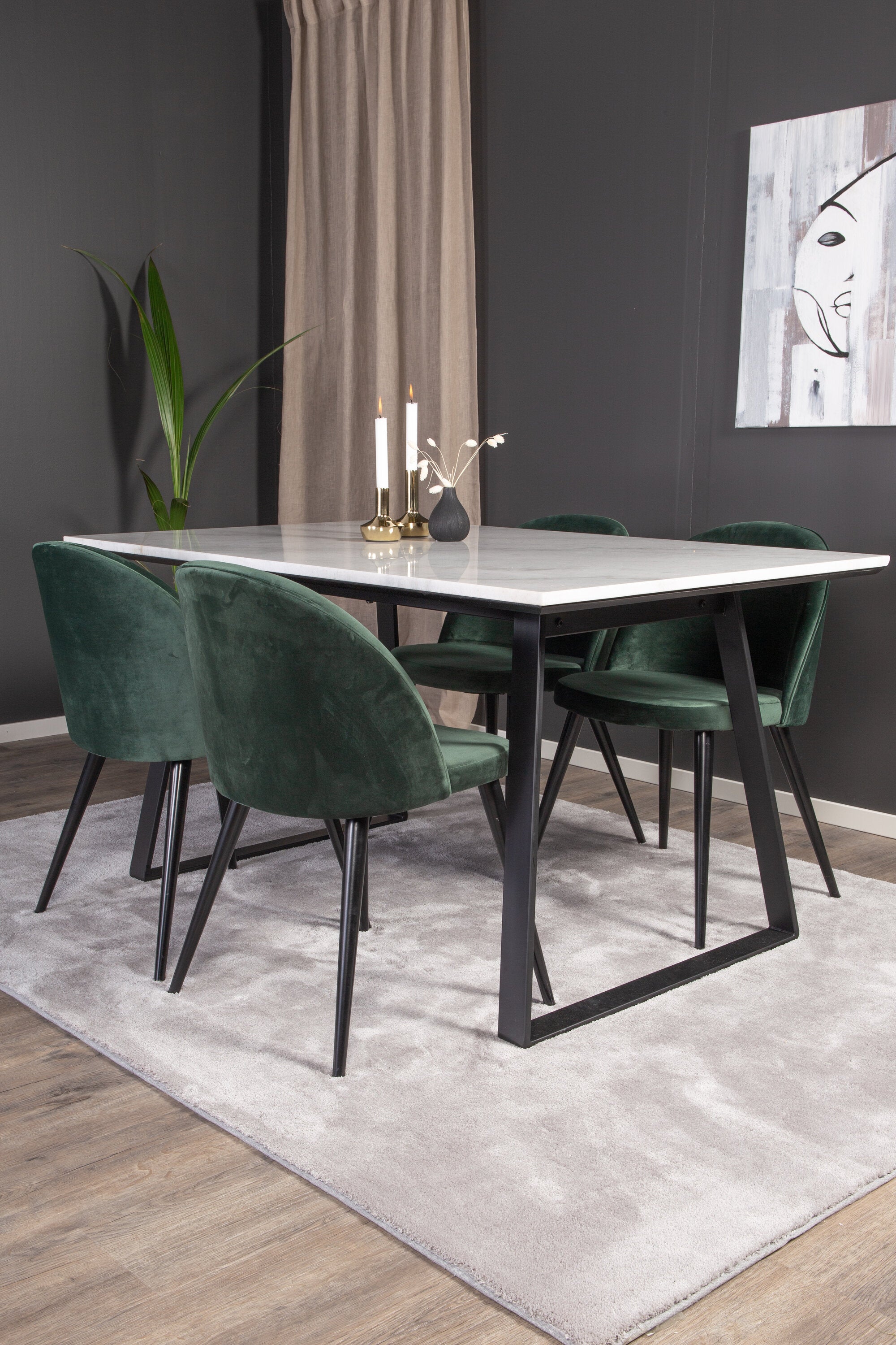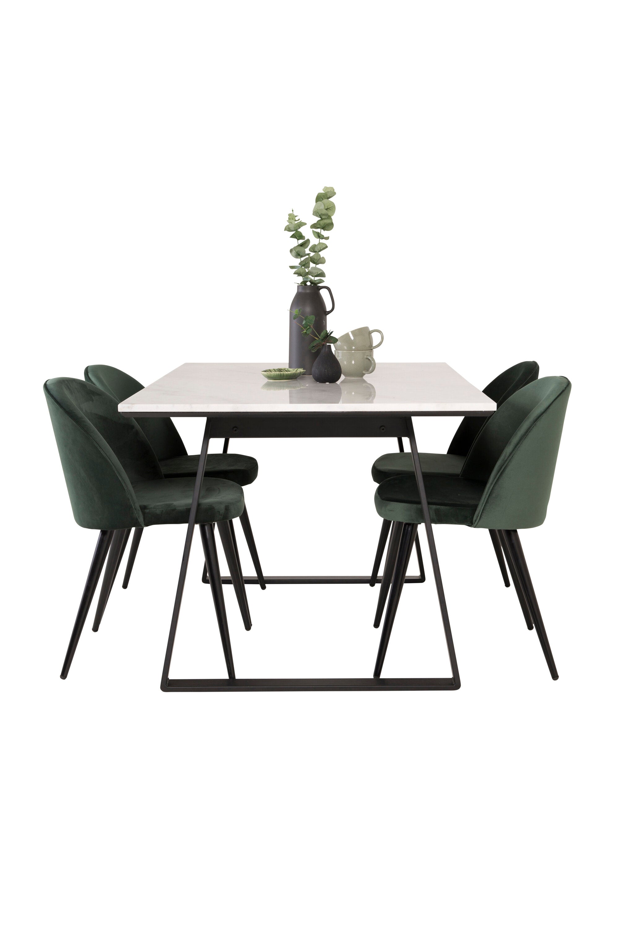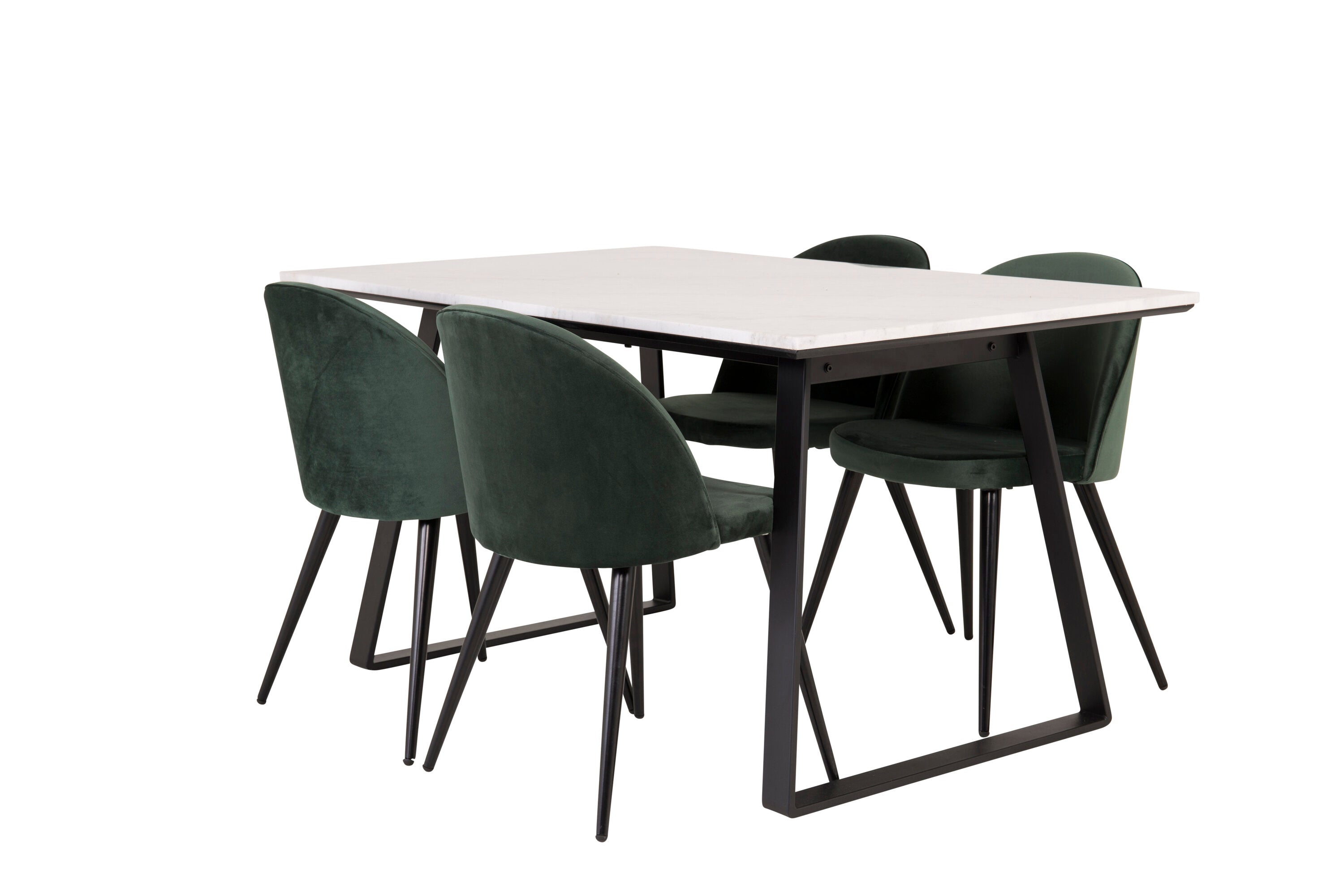 Jídelní stůl Estelle 140*90 – bílý mramor / černé nohy – sametová jídelní židle – zelená / černá 4
