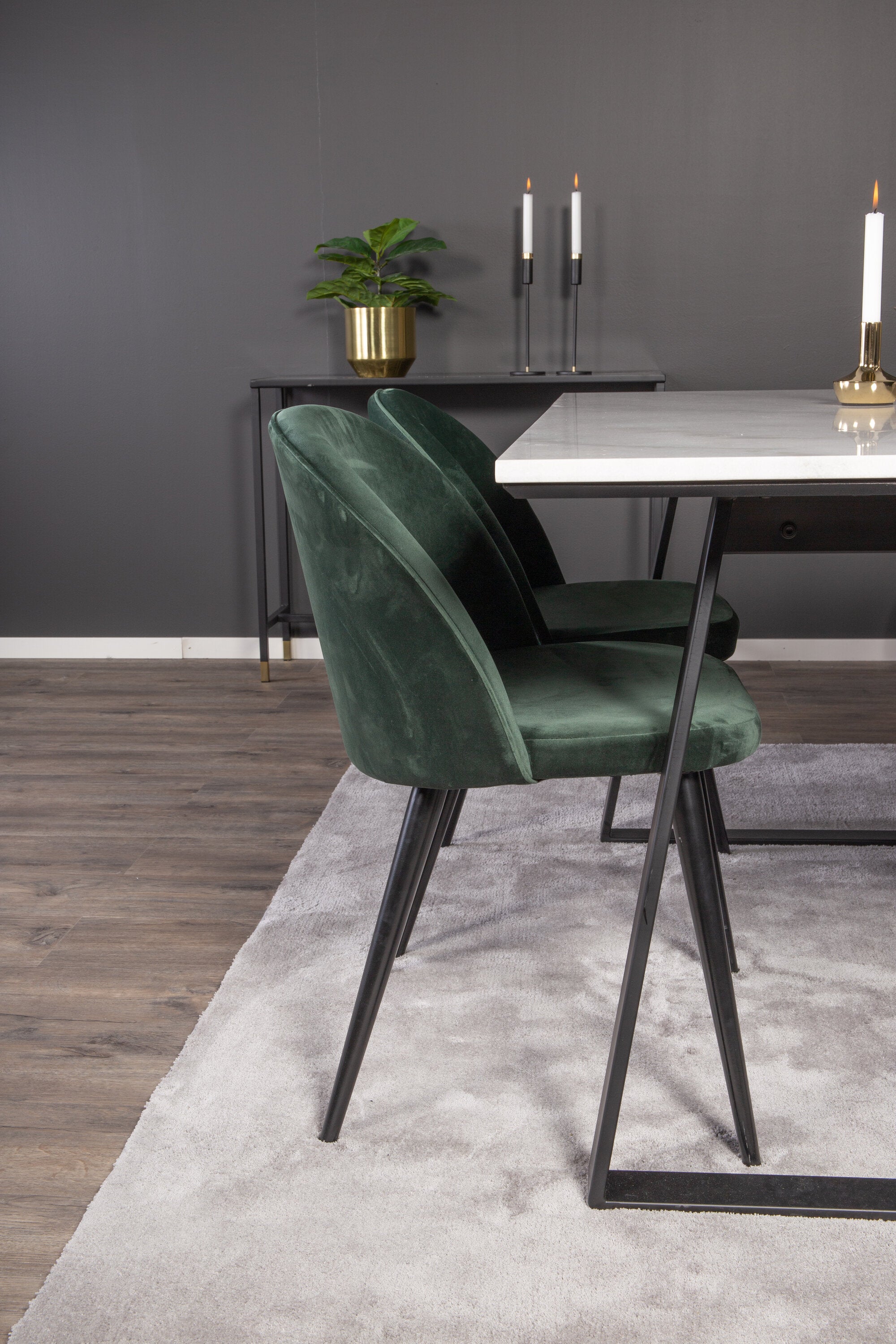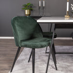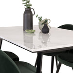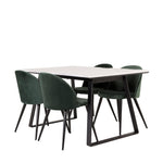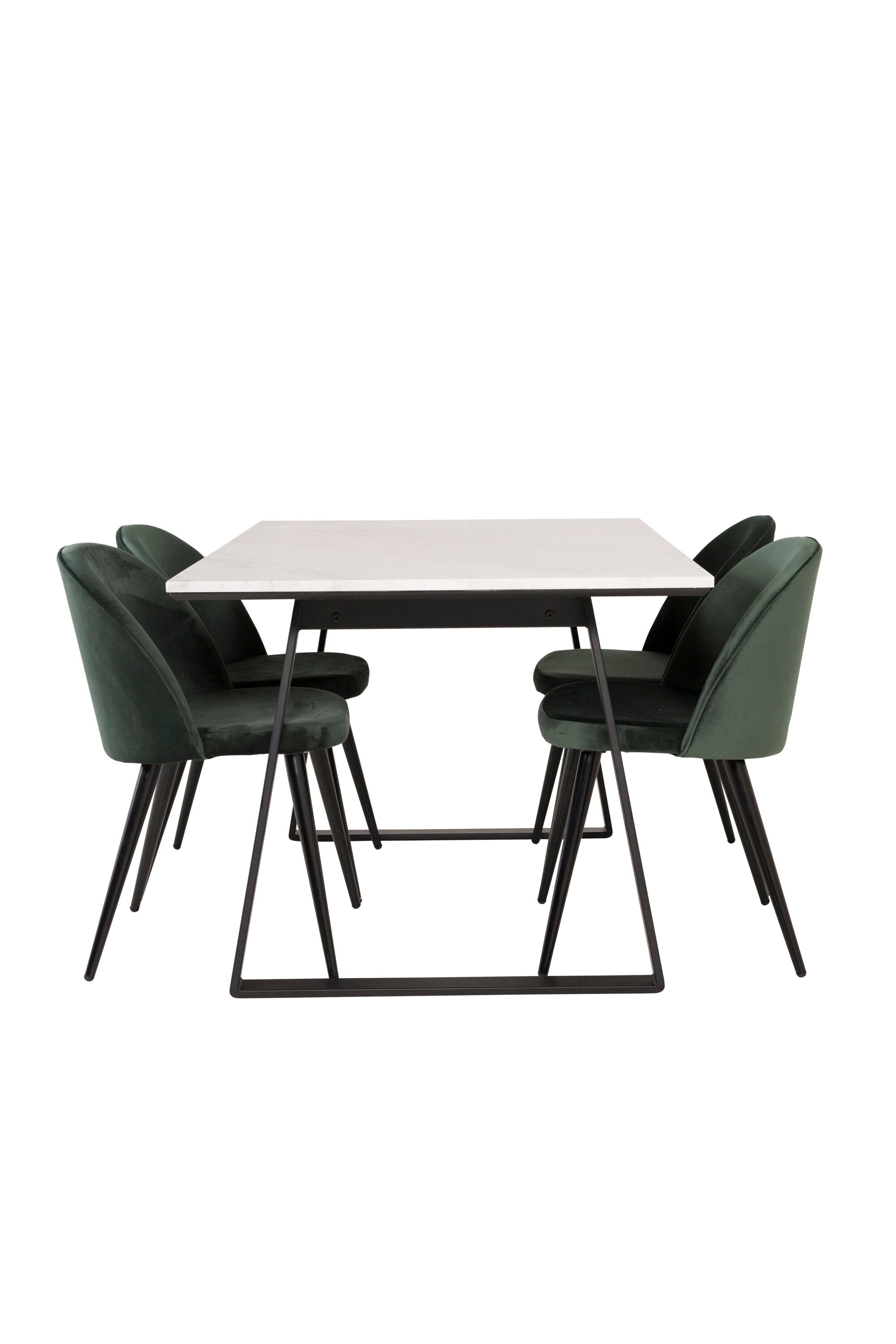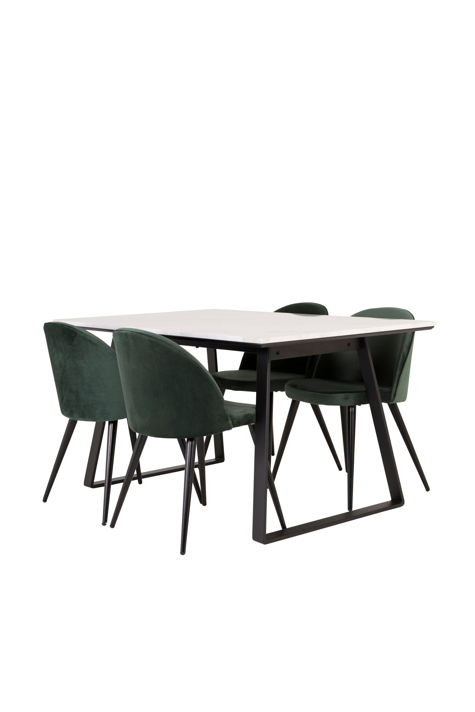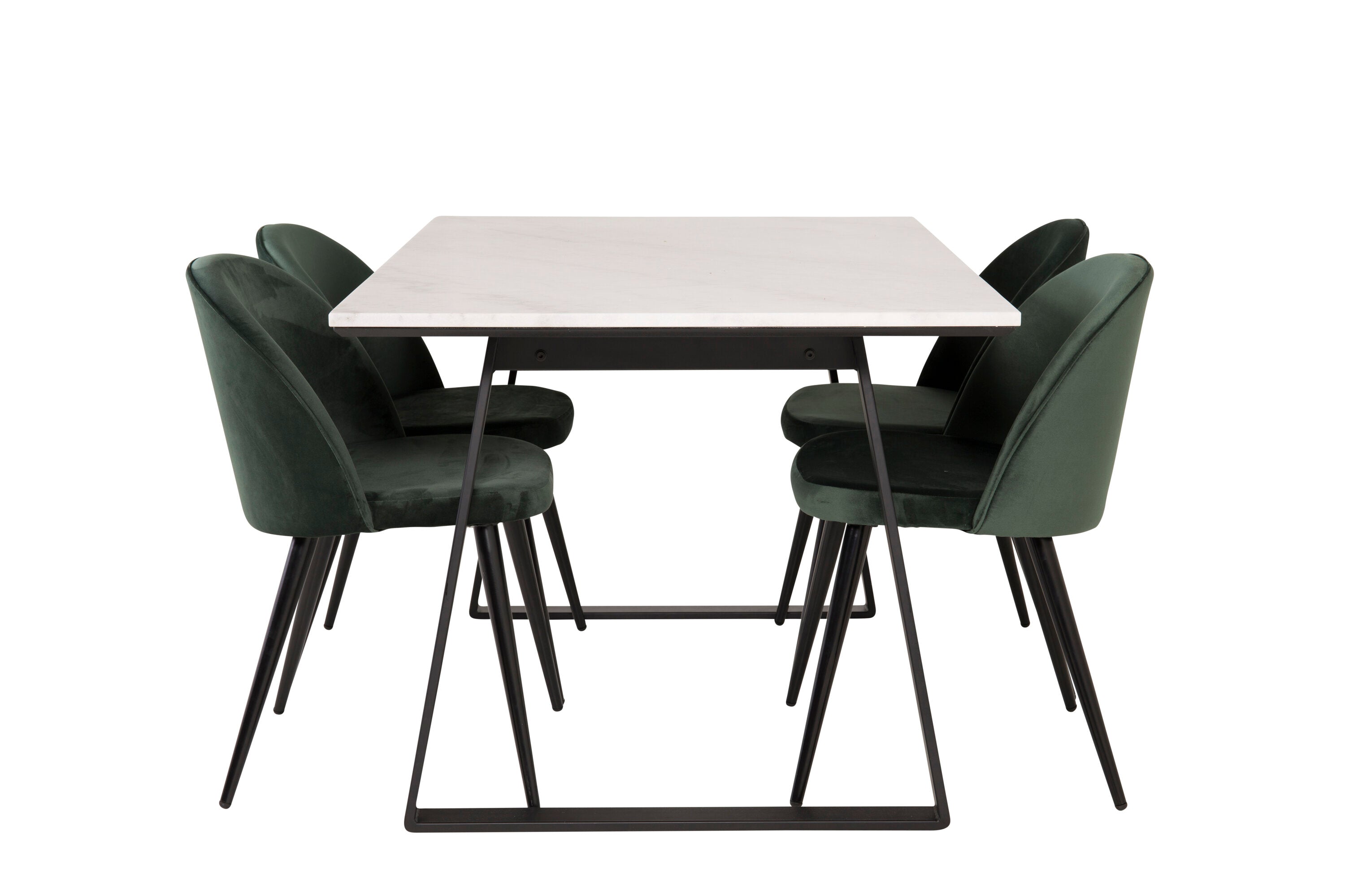 Jídelní stůl Estelle 140*90 – bílý mramor / černé nohy – sametová jídelní židle – zelená / černá 4