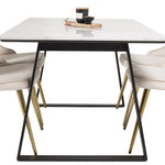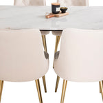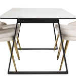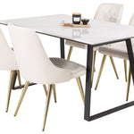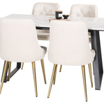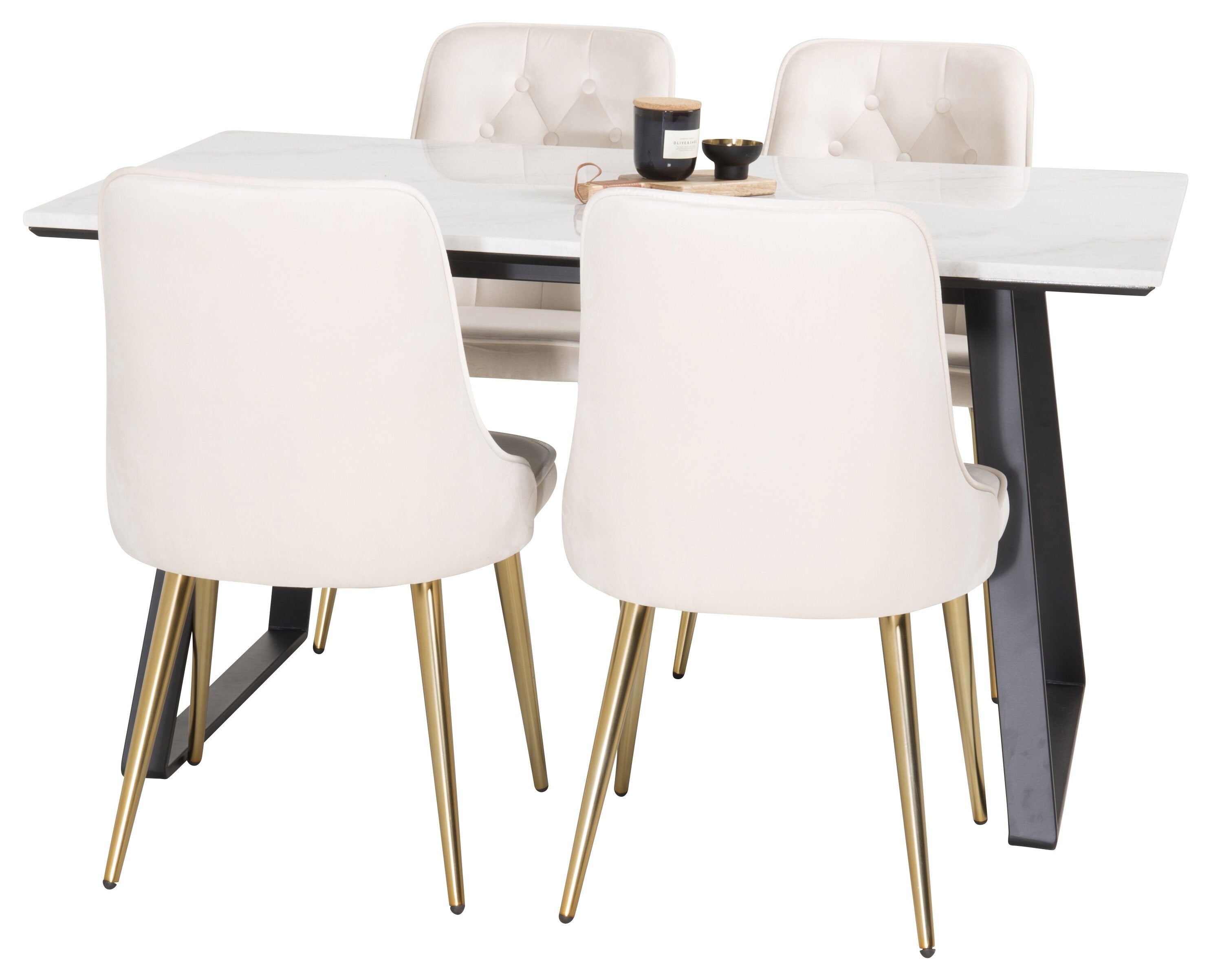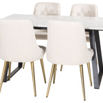 Jídelní stůl Estelle 140*90 – bílý mramor / černé nohy + sametový jídelní stůl Deluxe C