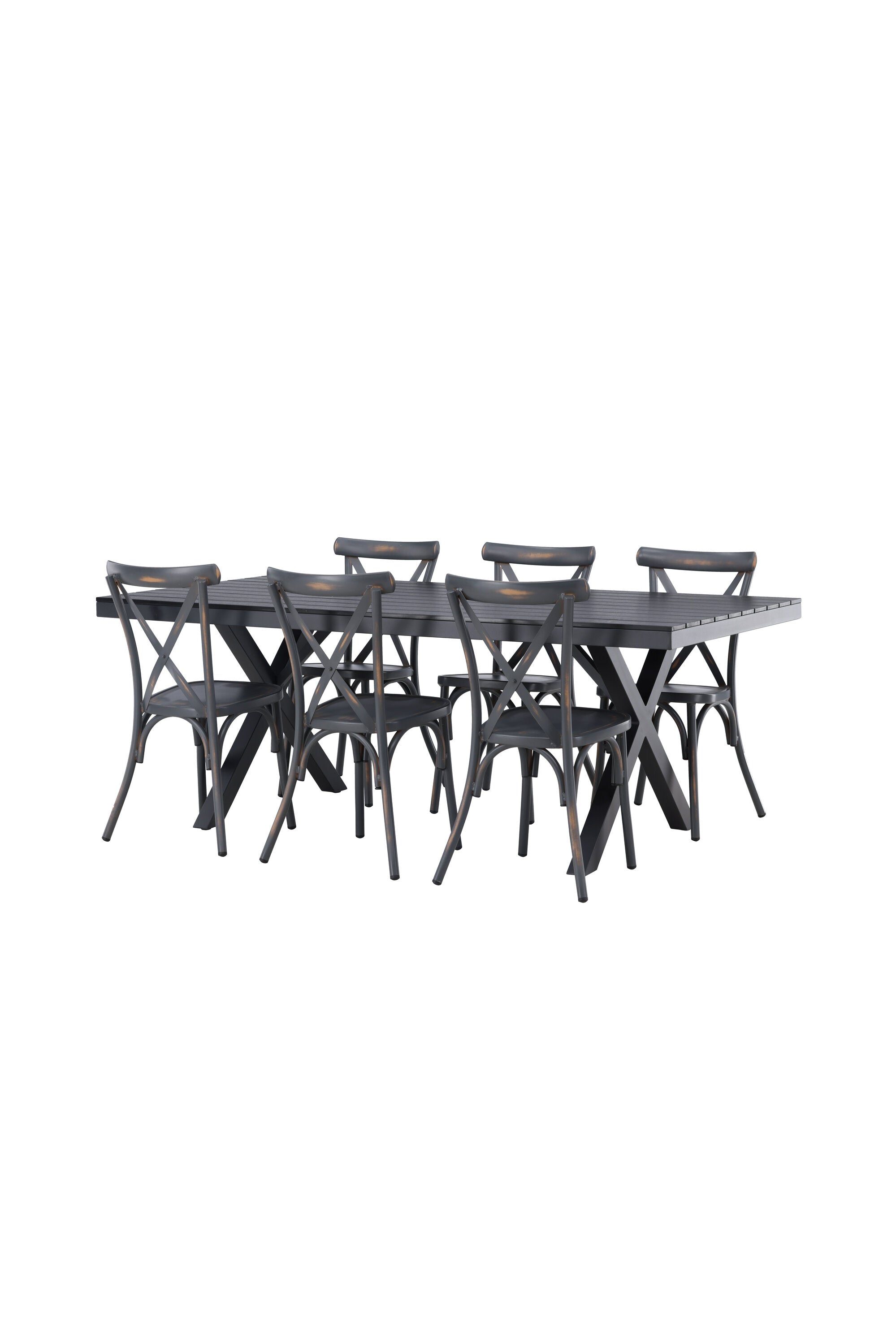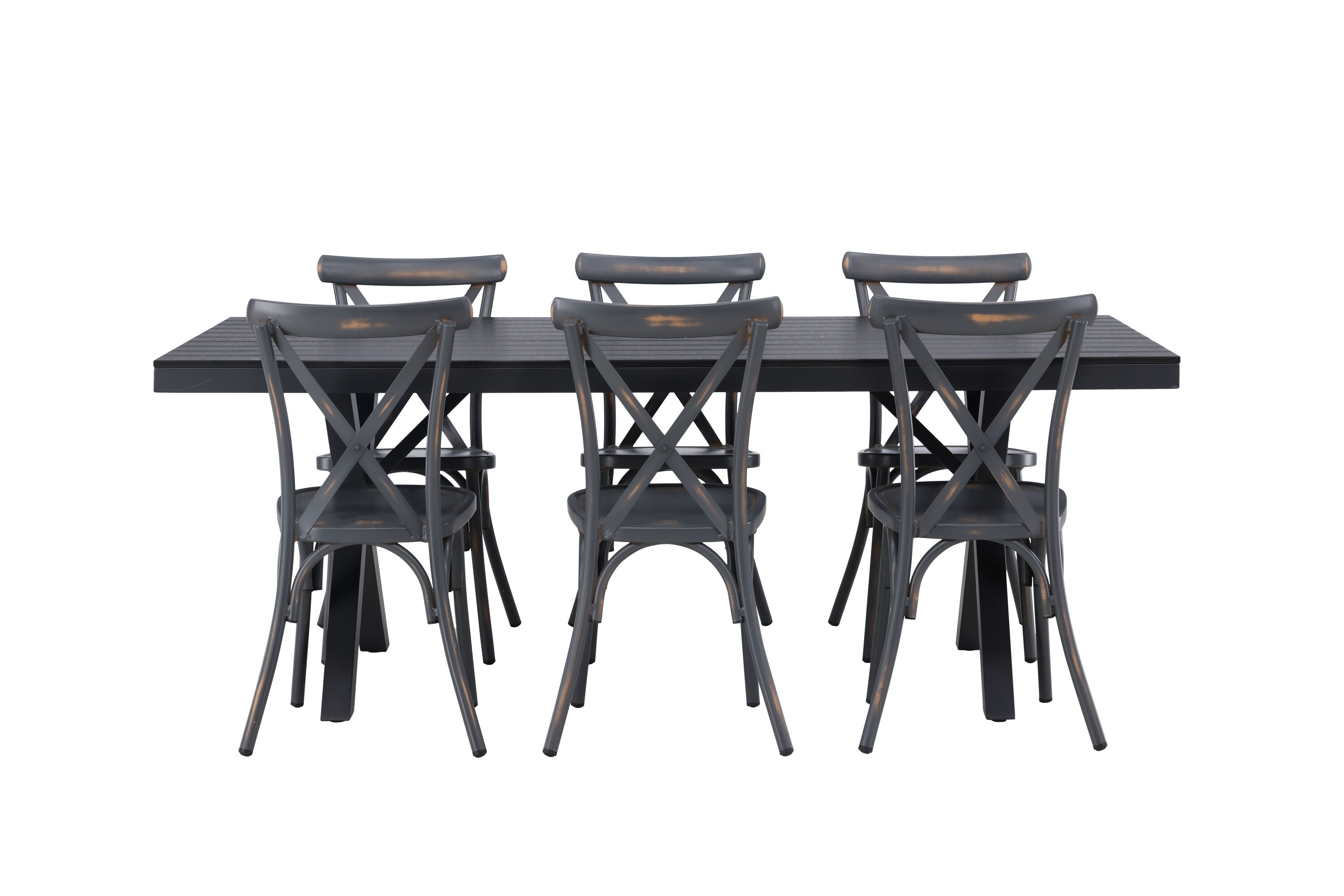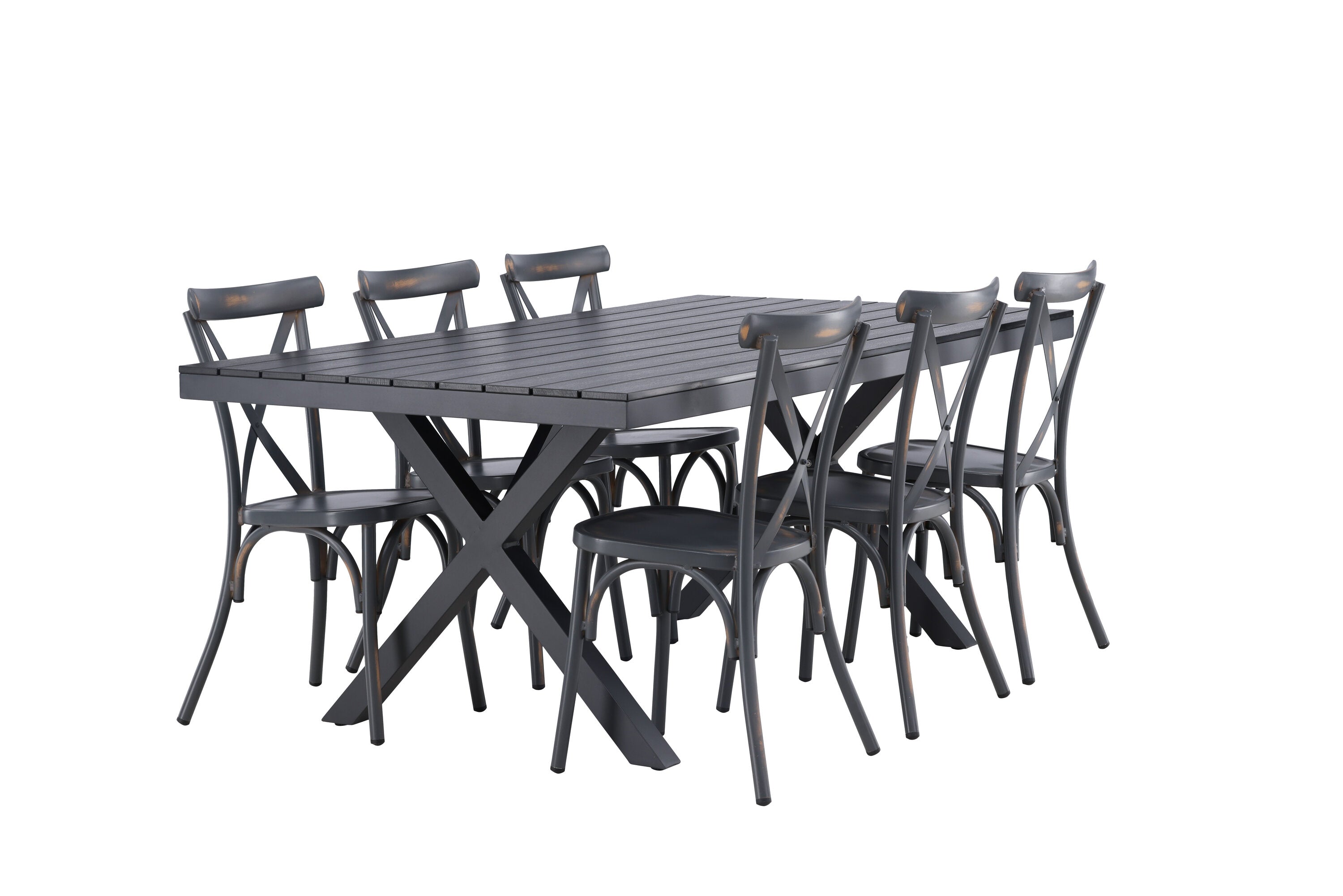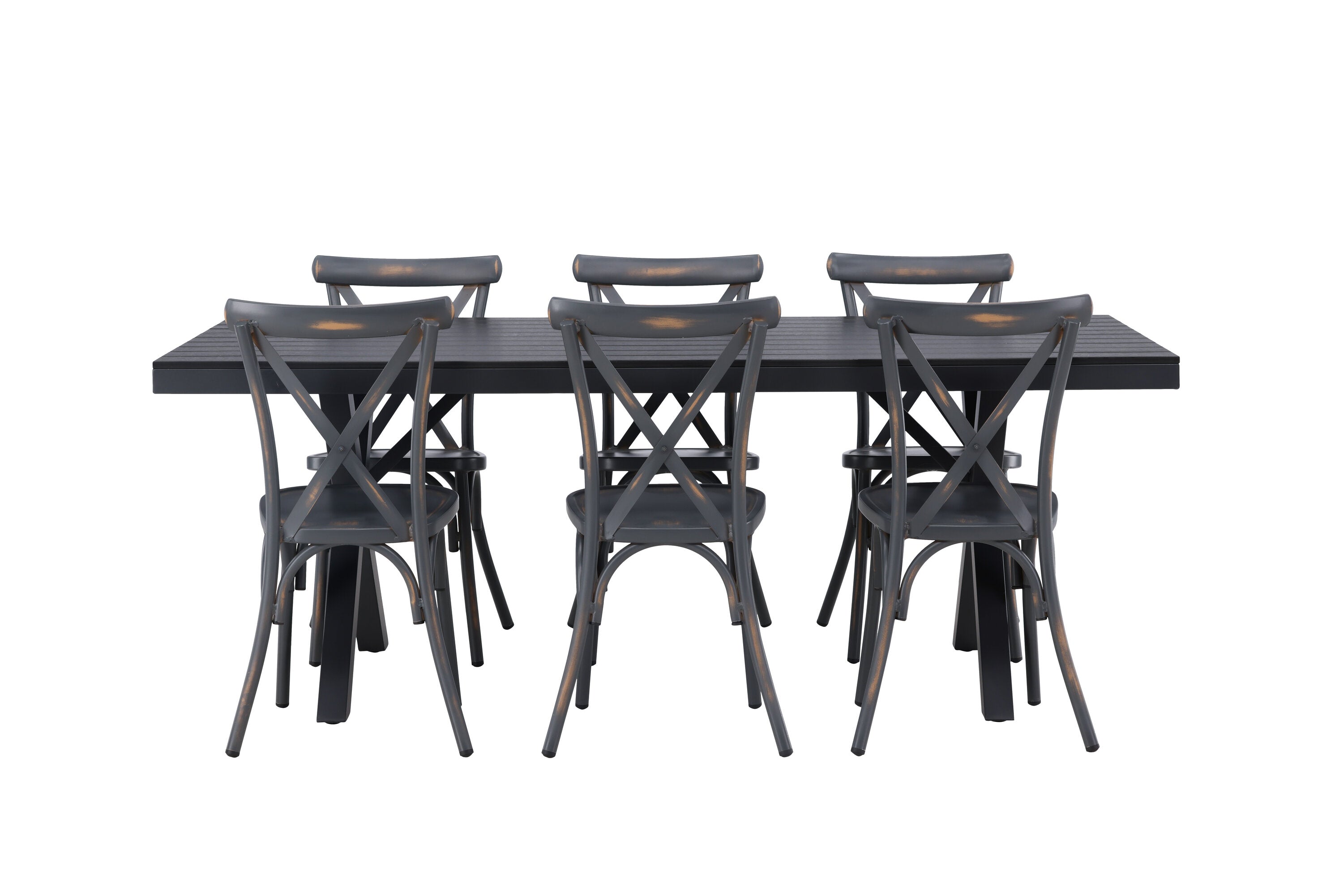 Jídelní stůl Garcia Alumnium – černý / obdélníkový 100*200* + hliníková jídelní židle Tablas – černá / _6