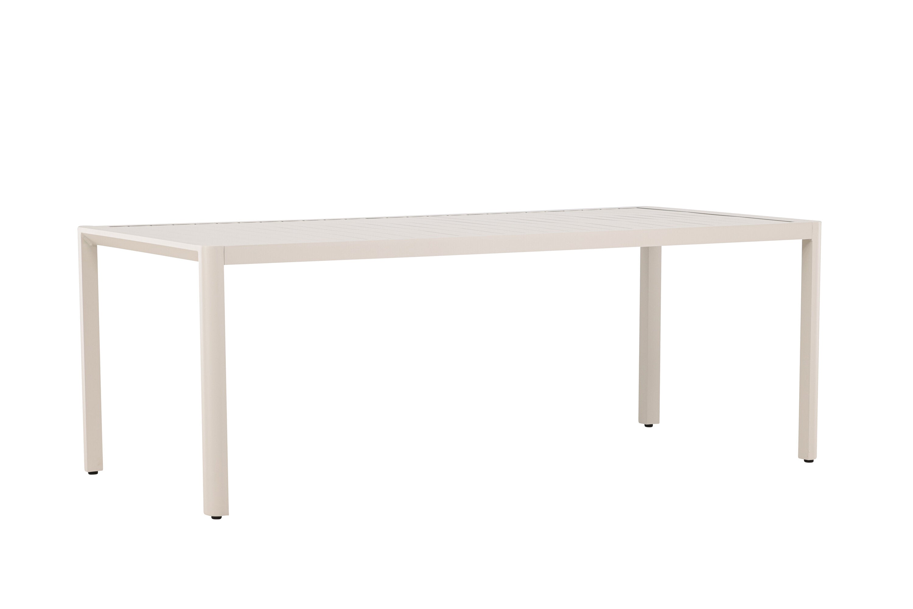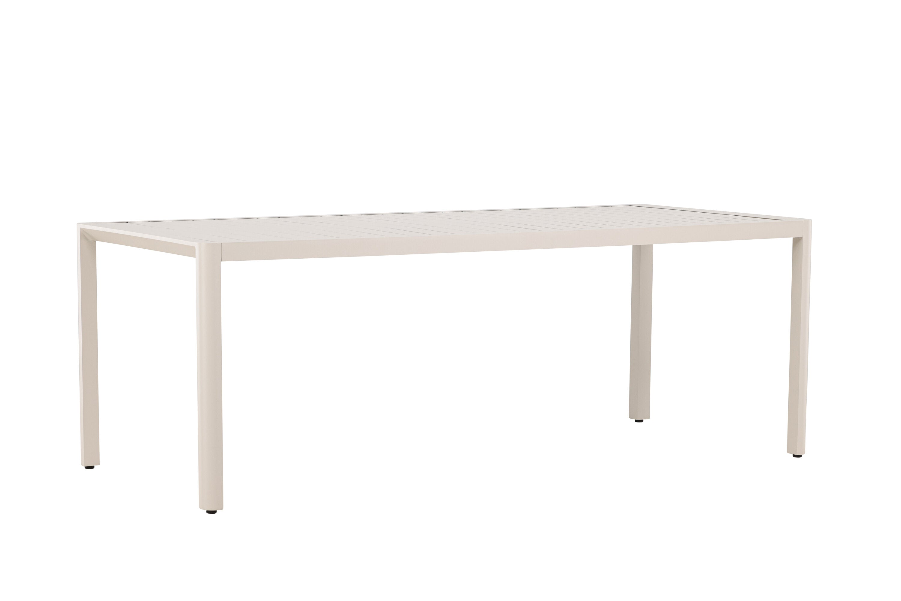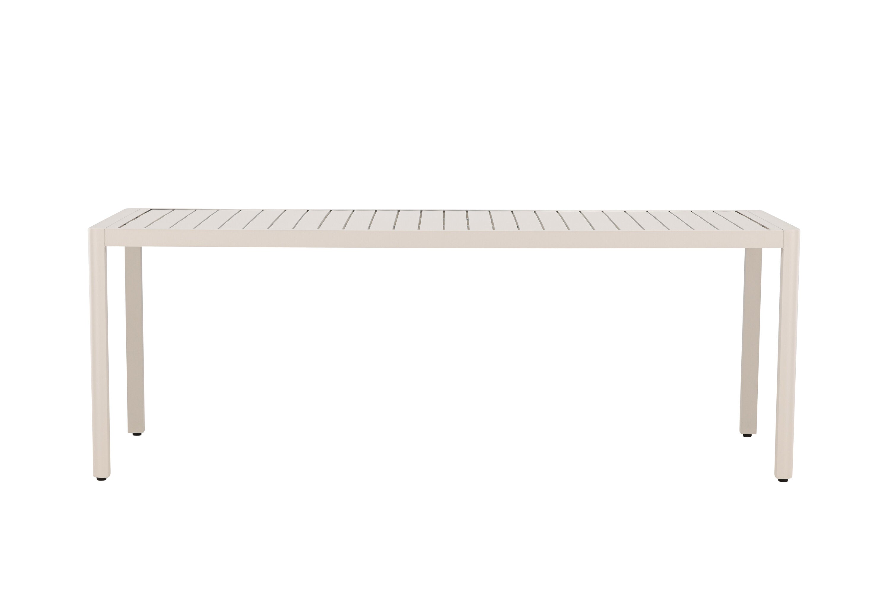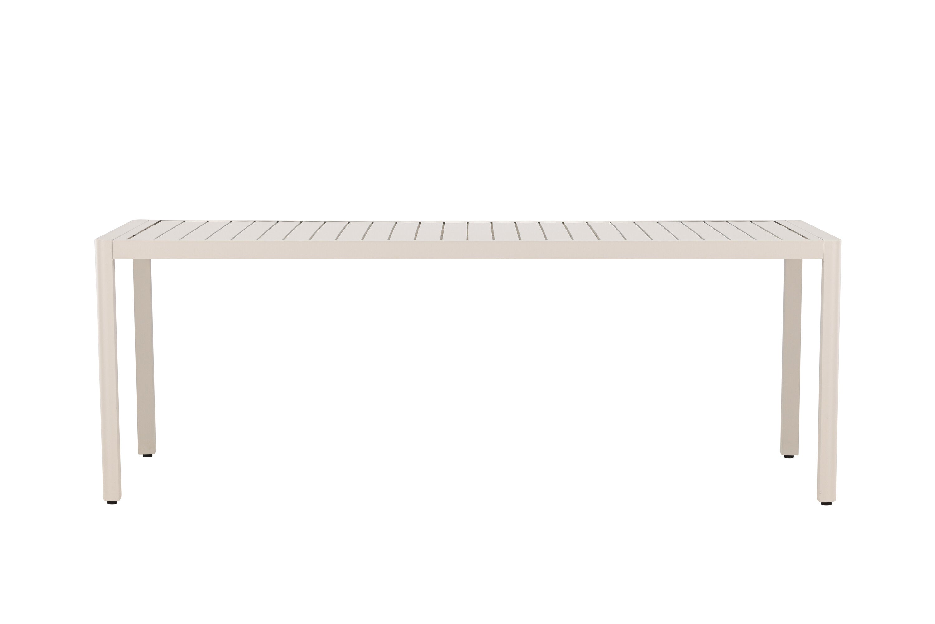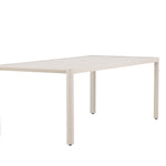 Dodejte své terase moderní vylepšení s Giardini – elegantním jídelním stolem, který kombinuje design a funkčnost tím nejlepším způsobem. Tento béžový stůl je vyroben z odolného hliníku a je lehký a odolný vůči počasí a větru. Jeho obdélníkový tvar vytváří prostornou plochu, ideální pro vše od každodenních večeří až po větší setkání.