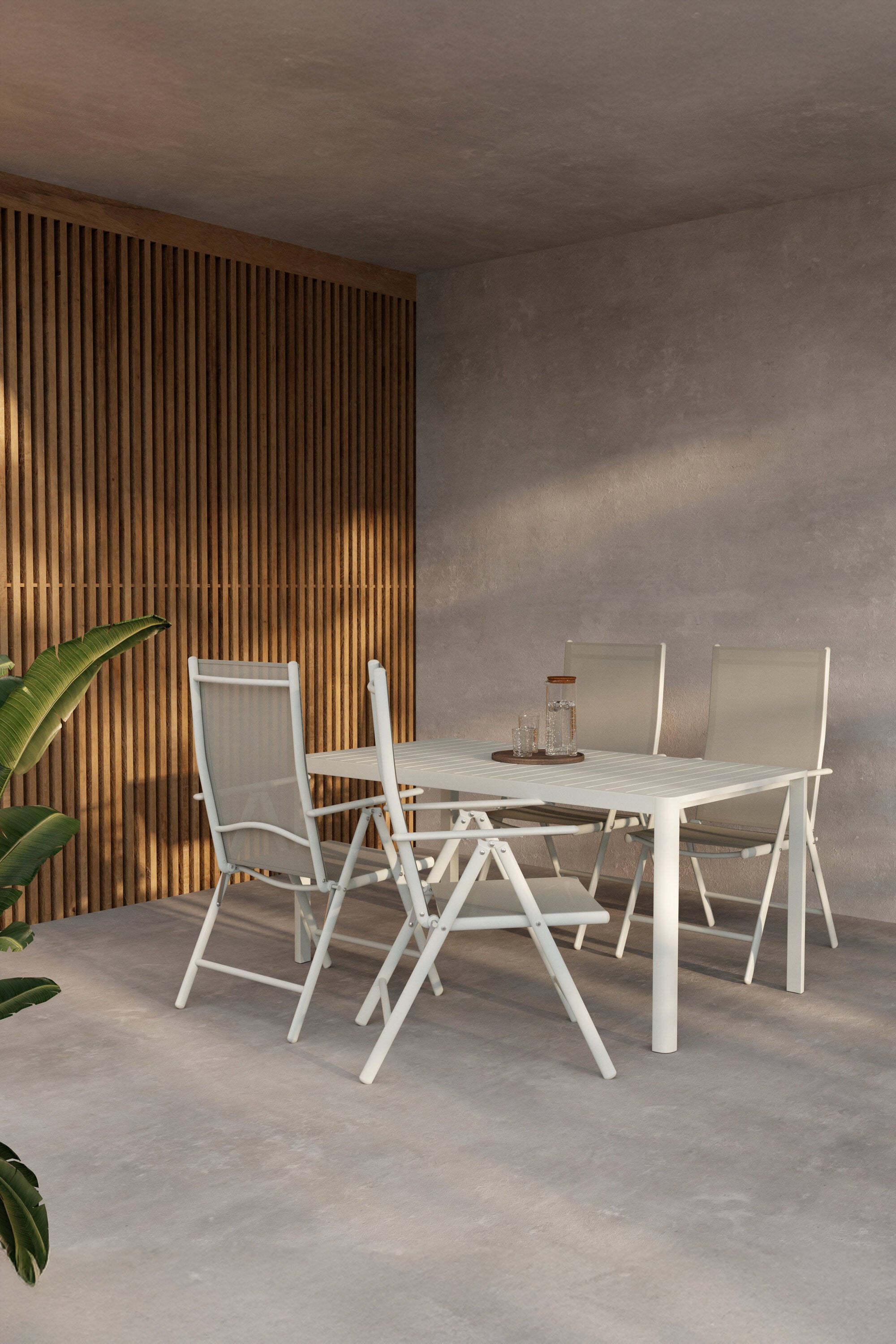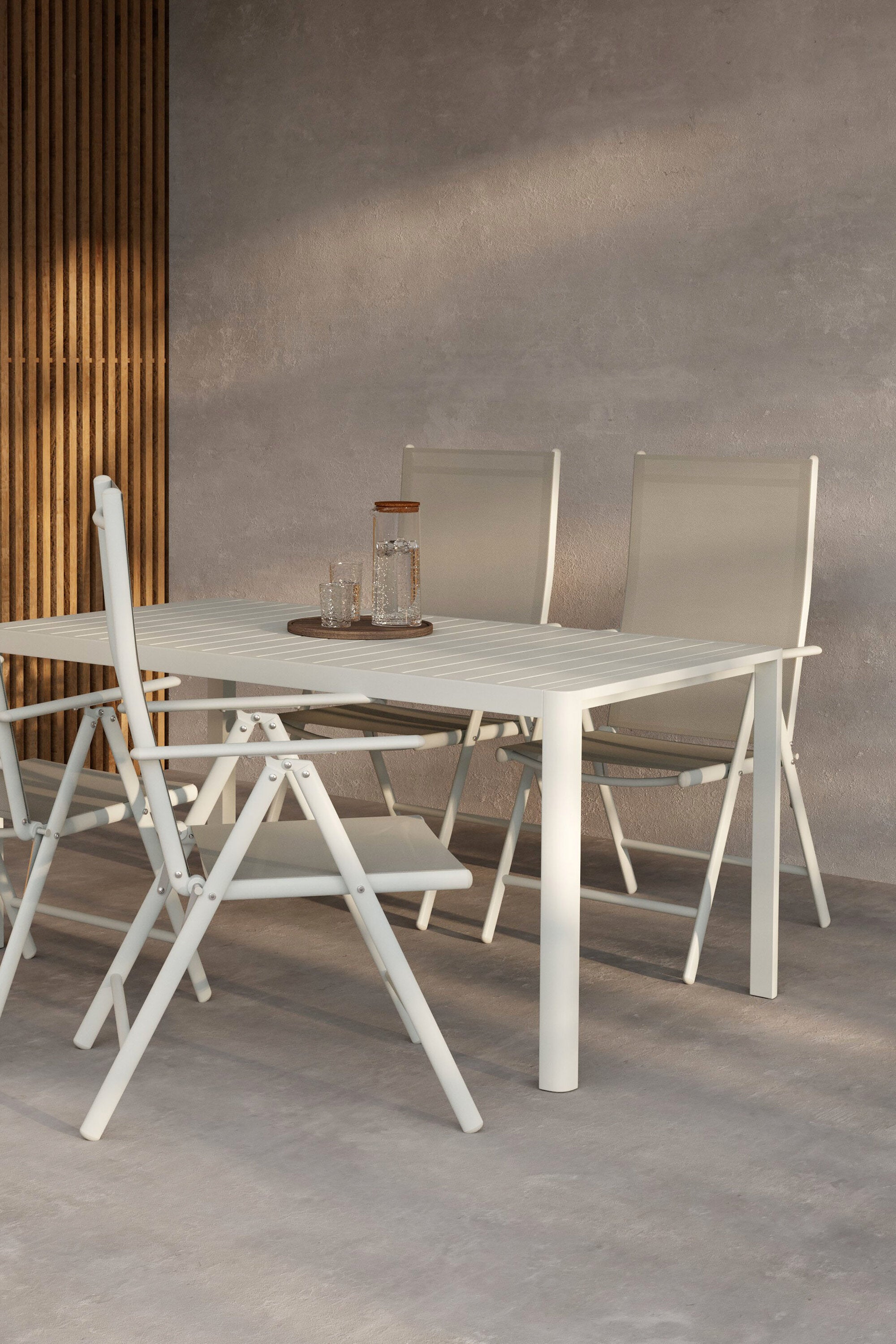 Se svým harmonickým barevným schématem a promyšleným designem je jídelní set Giardini vynikající volbou pro ty, kteří hledají stylové, odolné a praktické řešení venkovního stolování.