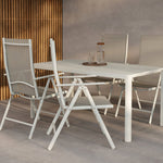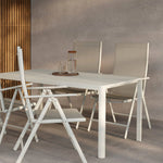 Jídelní stůl Giardini je vyroben z béžového hliníku, díky čemuž je nenáročný na údržbu a je odolný vůči povětrnostním vlivům. Odolné vlastnosti hliníku zajišťují stabilní a dlouhodobou konstrukci, zatímco jemná béžová barva působí elegantním a lákavým dojmem. Jeho minimalistický design mu umožňuje bezproblémově zapadnout do různých venkovních prostředí a bez námahy sladit různé styly.