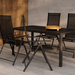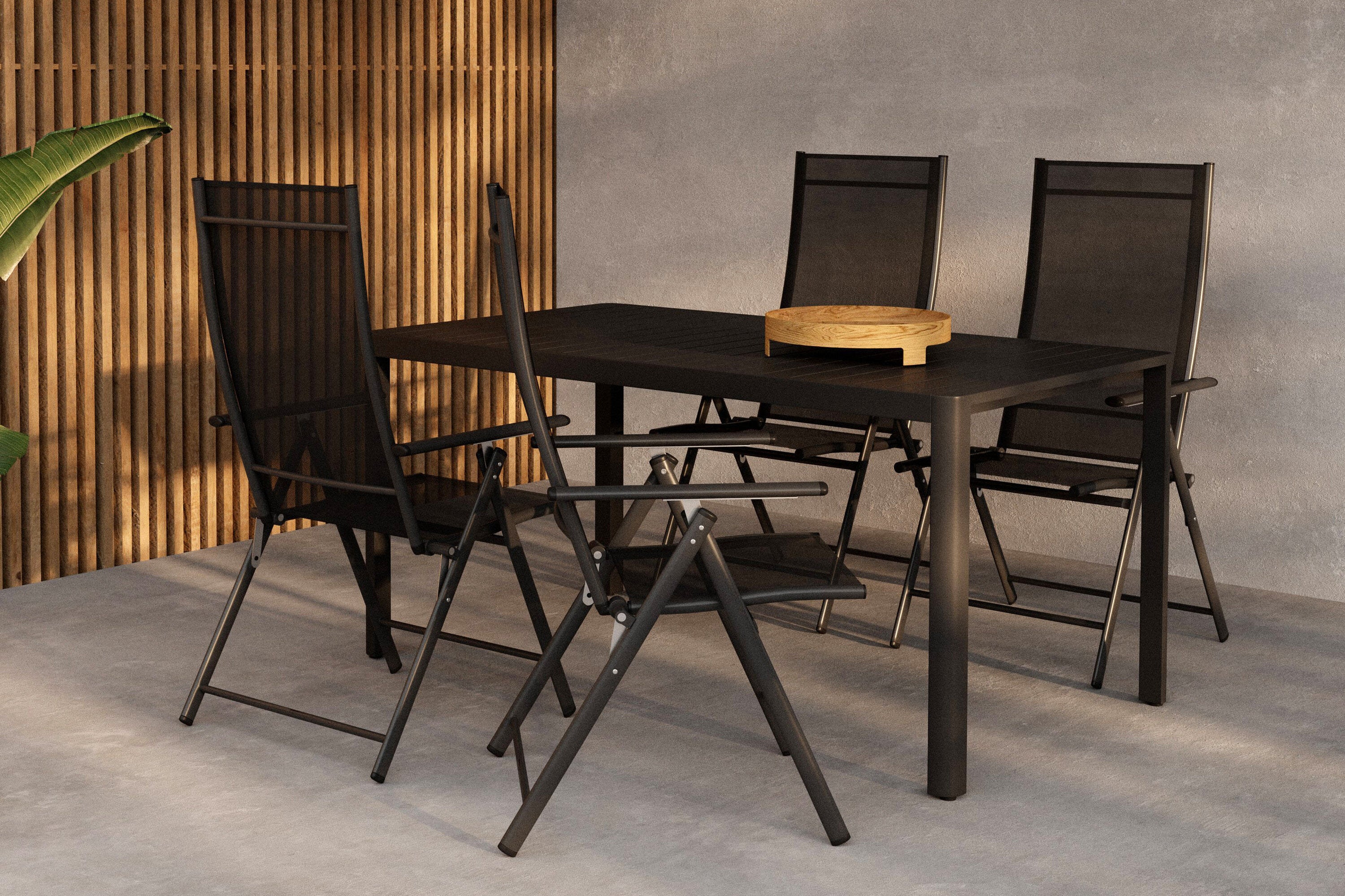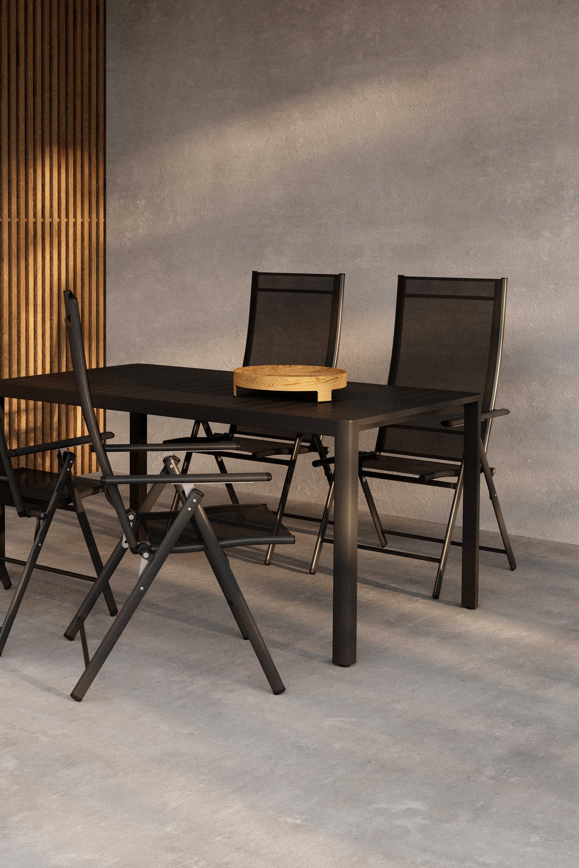 Se svým nadčasovým černým barevným provedením a odolnými materiály je jídelní set Giardini vynikající volbou pro ty, kteří hledají moderní venkovní stolování s dlouhou životností a nenáročností na údržbu.