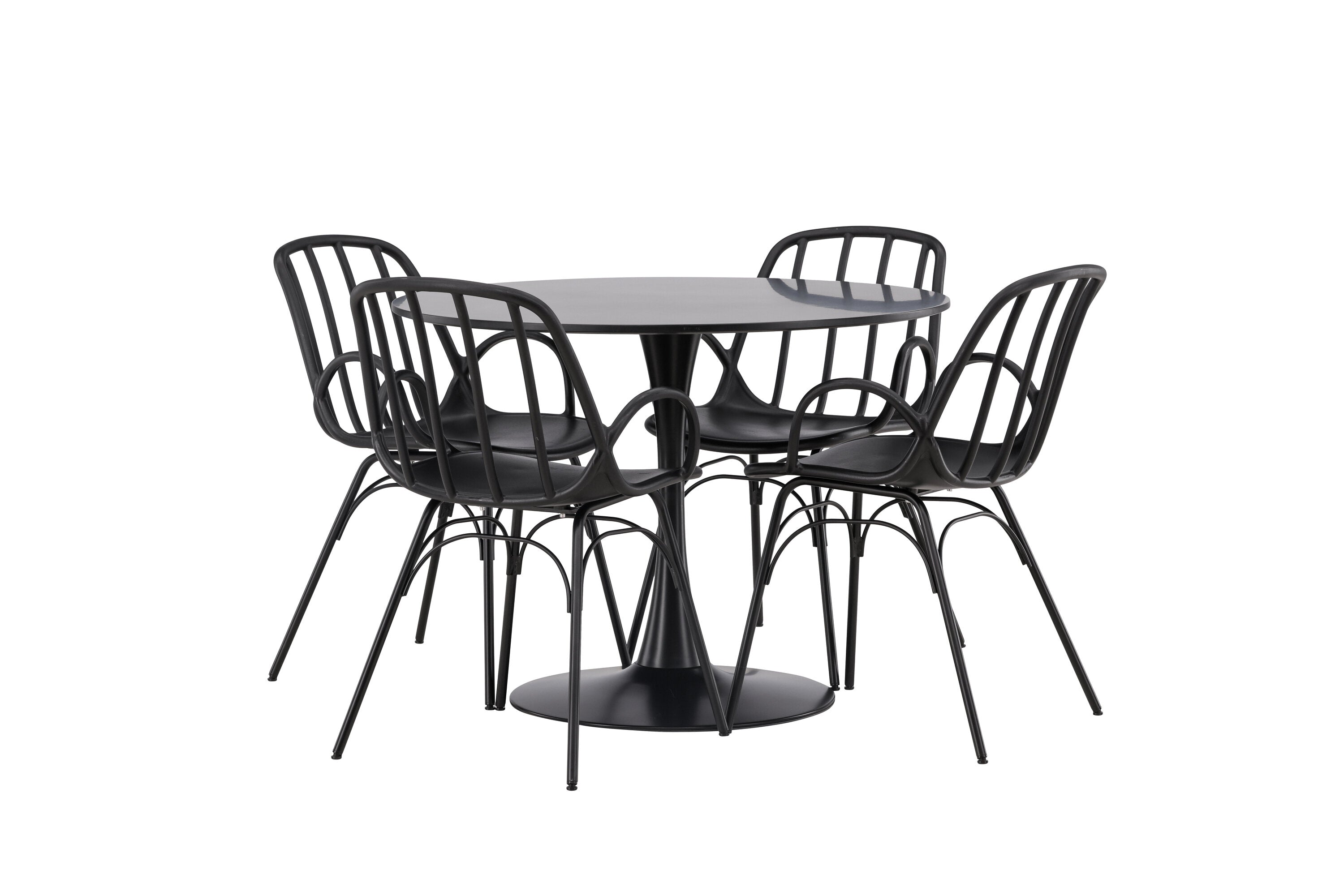 Jídelní stůl Glade – černá / černá MDF + jídelní židle Dyrön – černý polypropylen _4