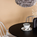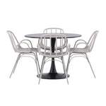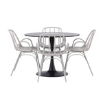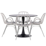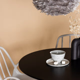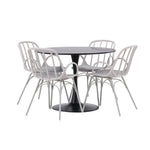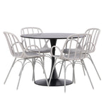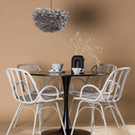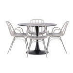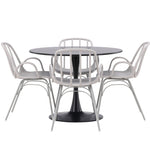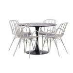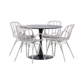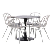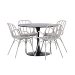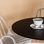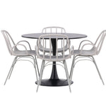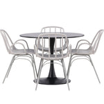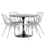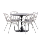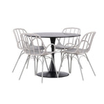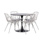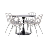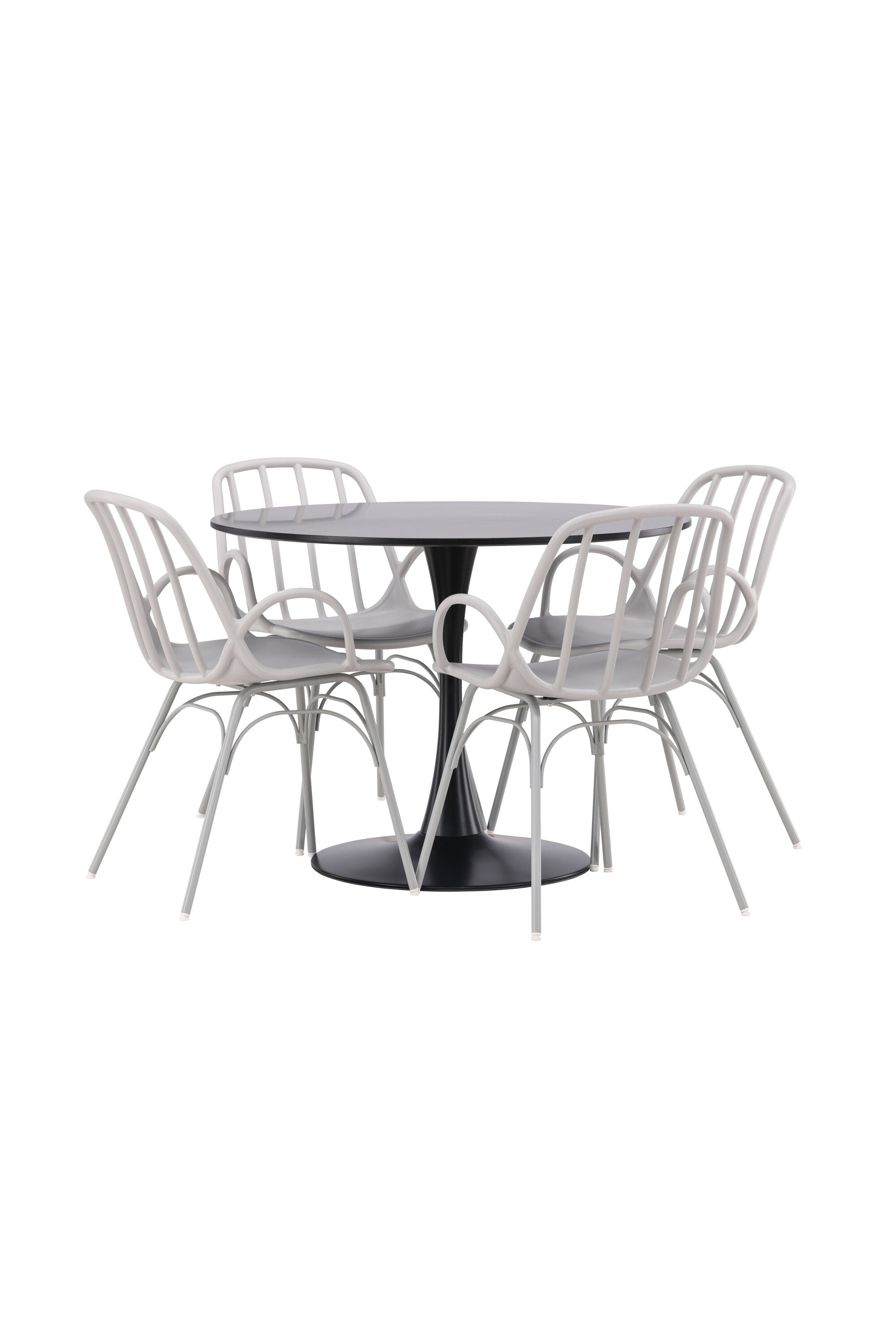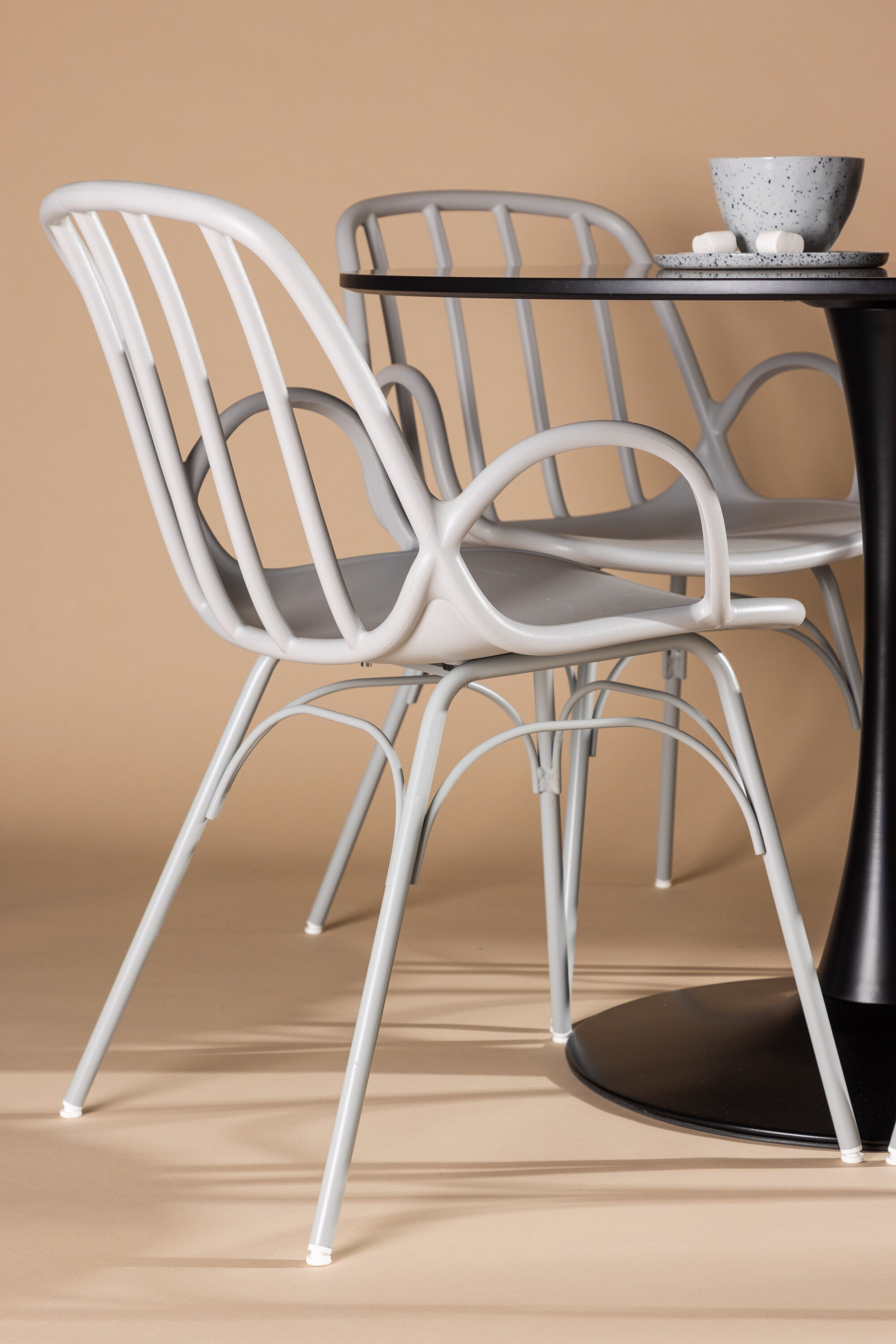 Jaká stylová barevná kombinace! Jídelní stůl Glade má stylový skandinávský design se štíhlou trumpetovou nohou z černé oceli a černou desku stolu z MDF. Zde s našimi oblíbenými jídelními židlemi ze série Dyrön. Židle je stylová i praktická, vyrobena z šedého plastu a oceli. Sedák má integrované područky a žebrovaný design v mírně zaoblené zadní části. Nohy židle jsou stylově úzké a mírně rozšířené ve skandinávském designu. Zde získáte stylový středobod, který shromáždí celou rodinu! Rozměry stolu: 100 cm.