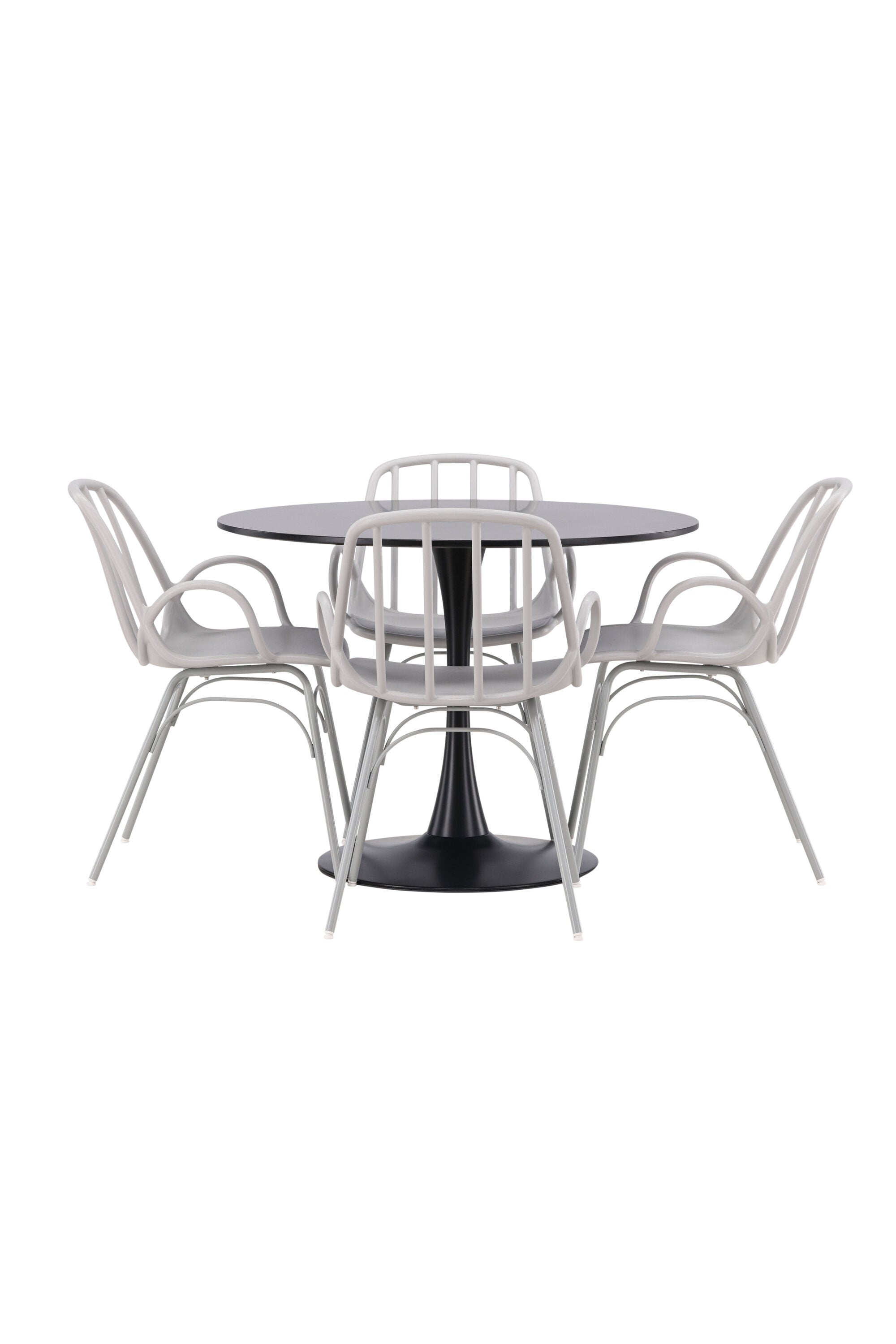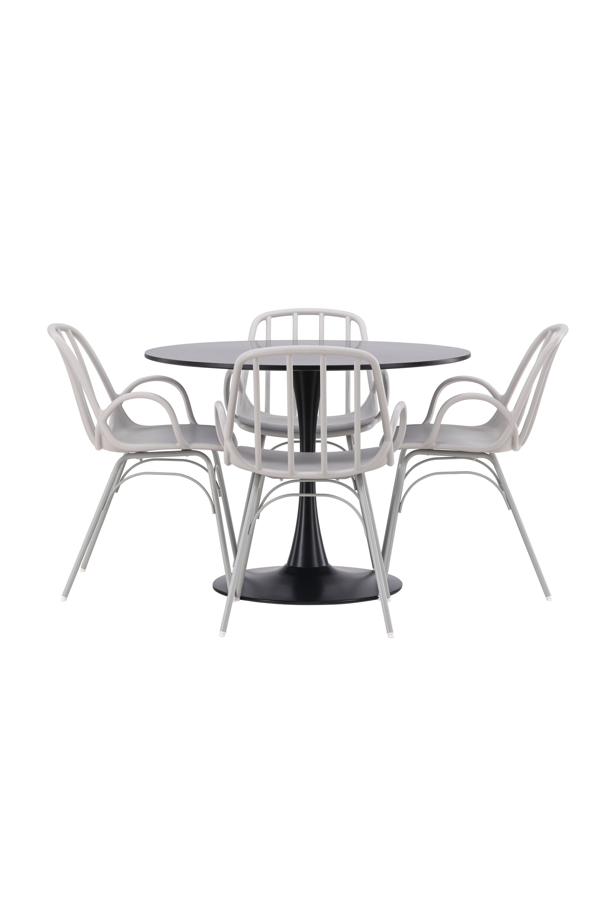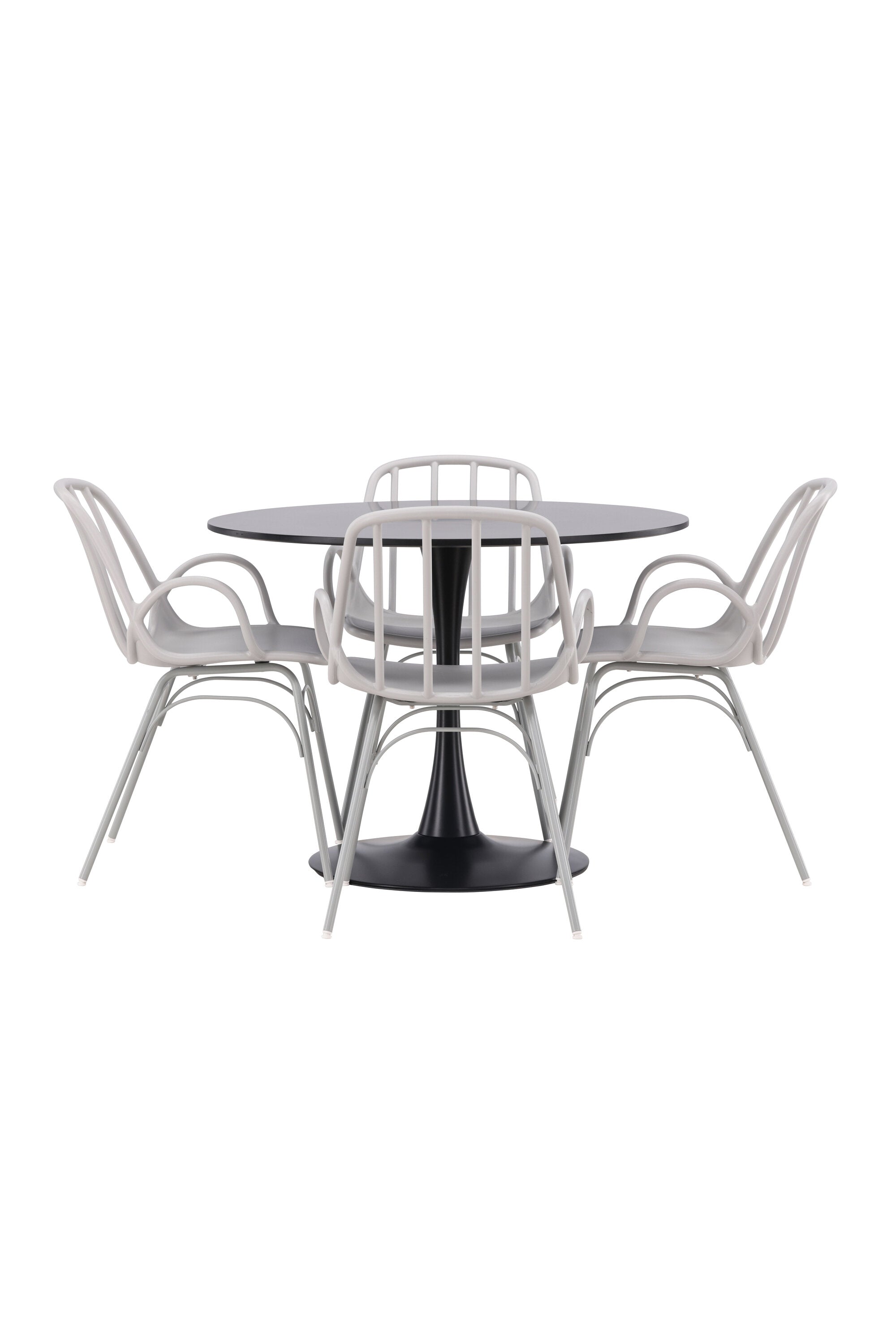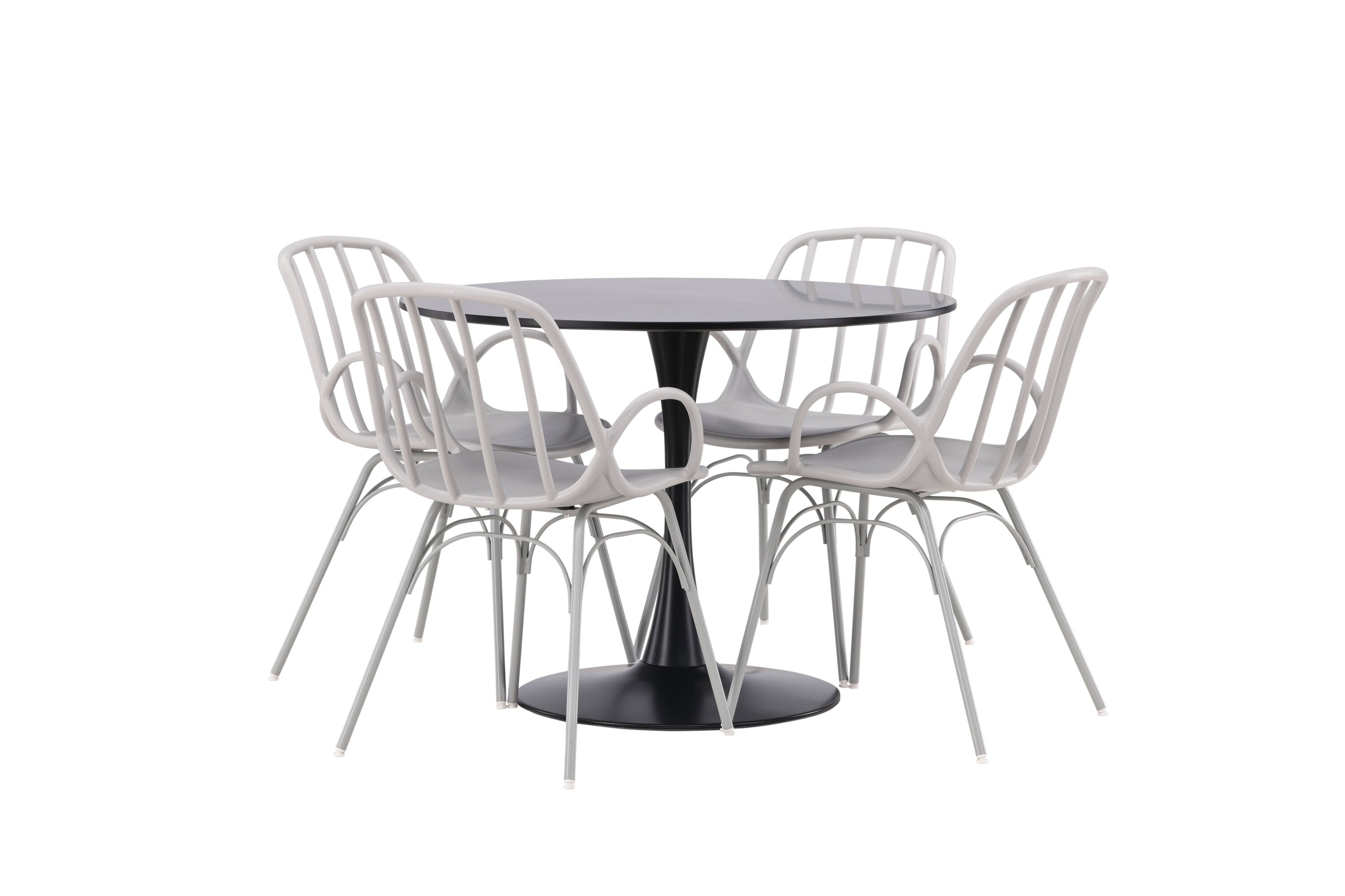 Jídelní stůl Glade - Černá / Černá MDF + Jídelní židle Dyrön - Greige Polypropylen _4