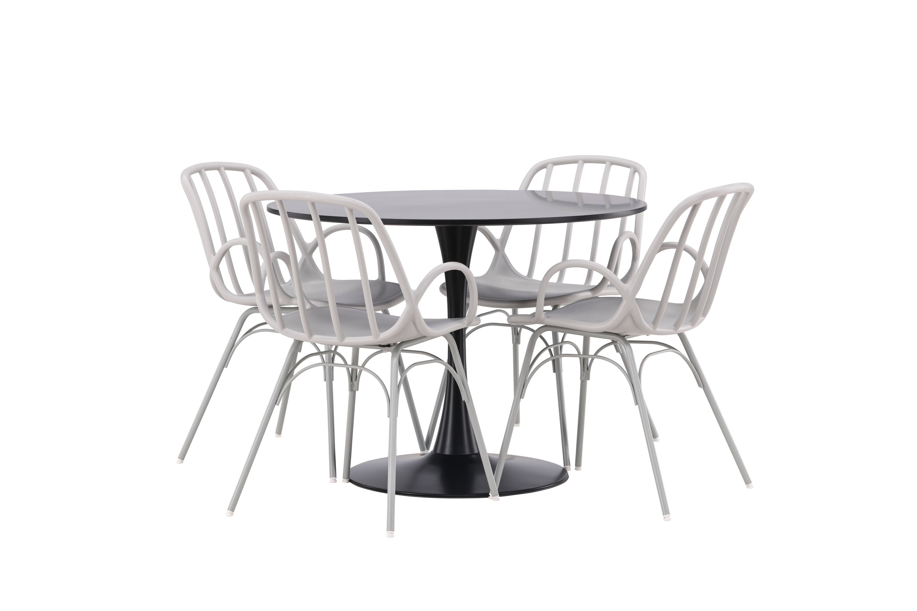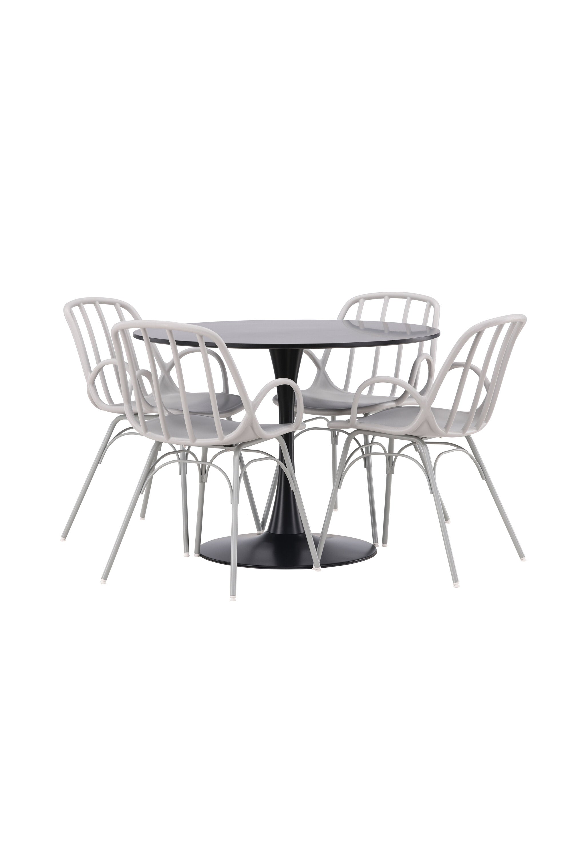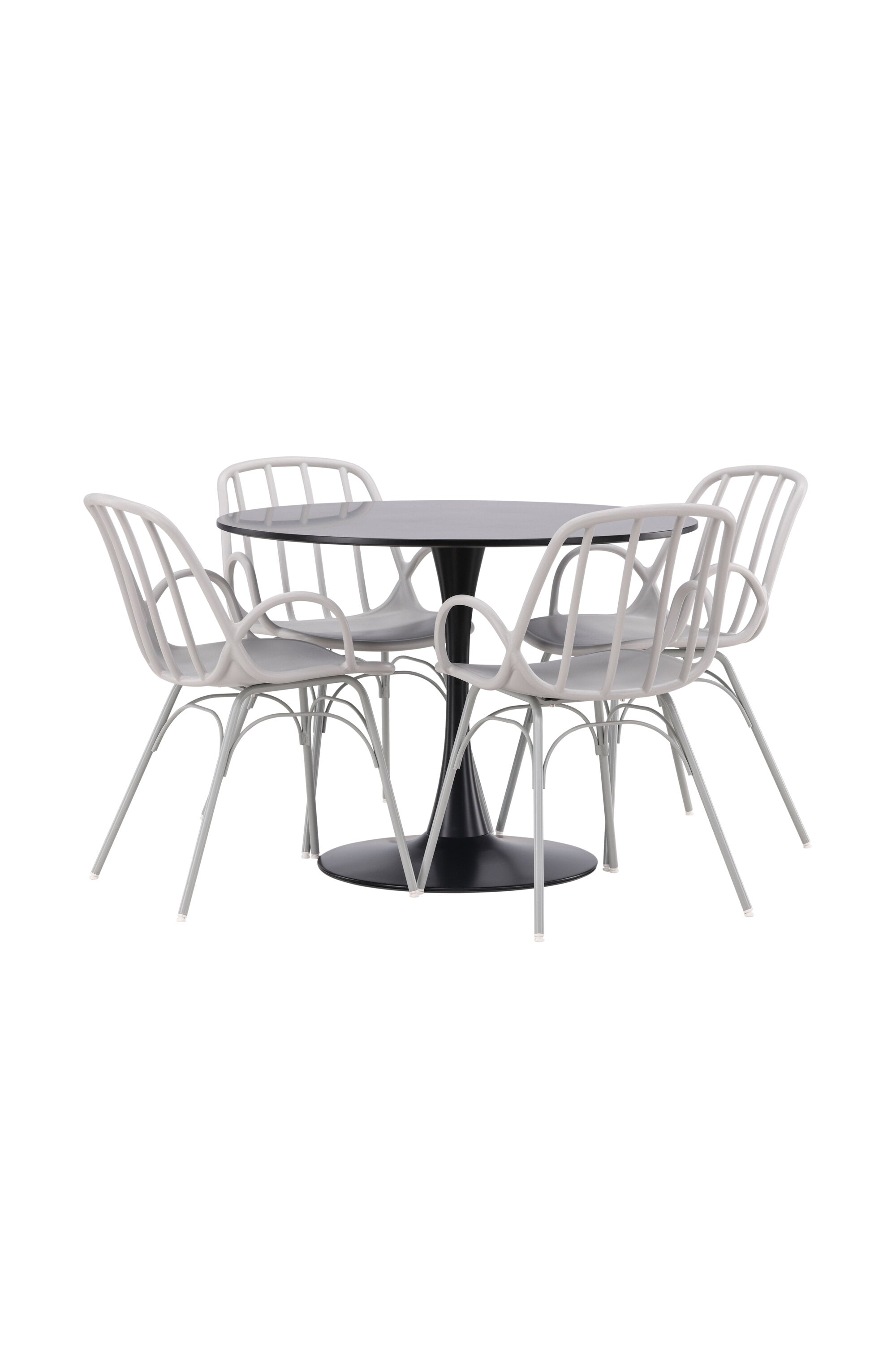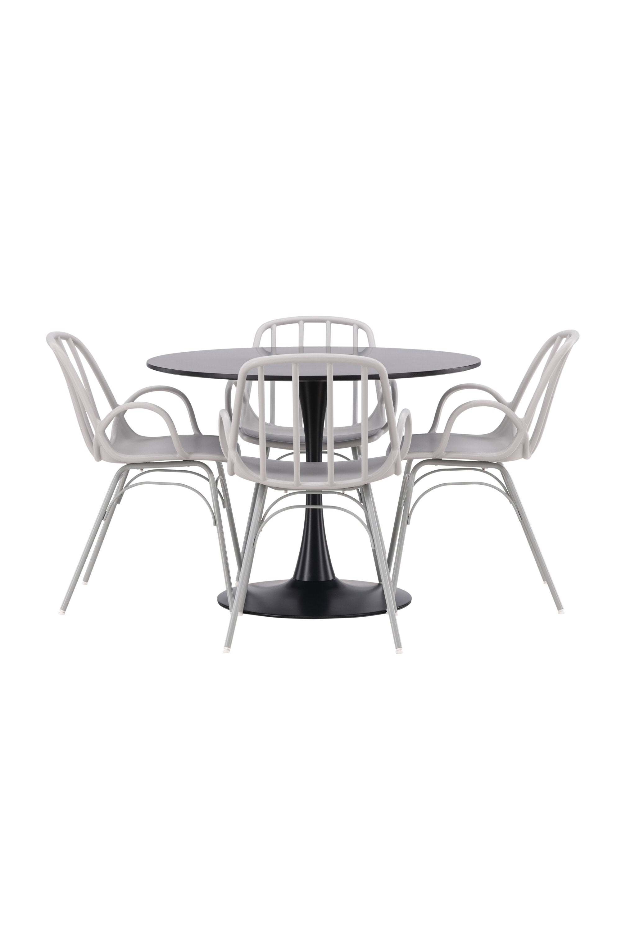 Jídelní stůl Glade - Černá / Černá MDF + Jídelní židle Dyrön - Greige Polypropylen _4