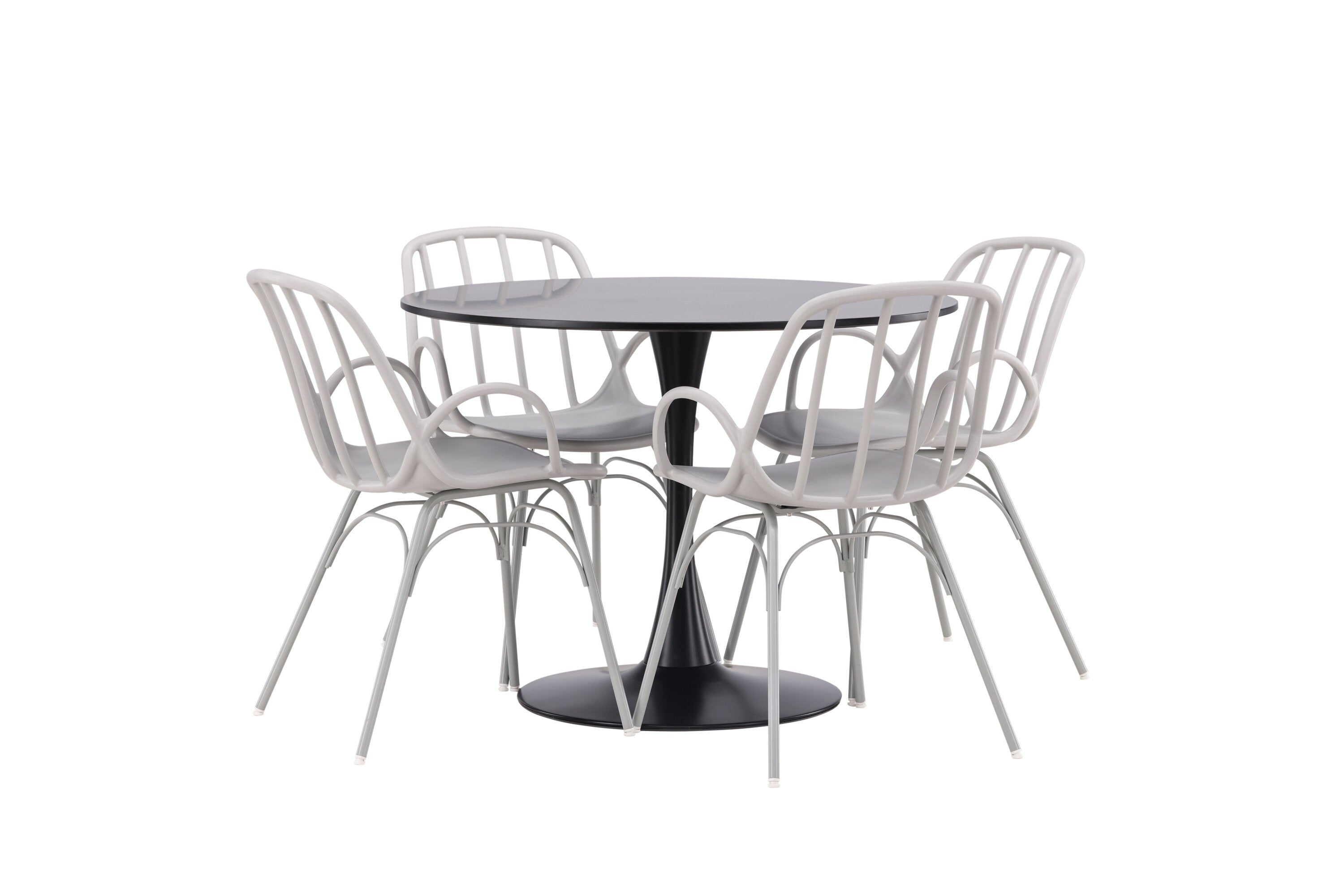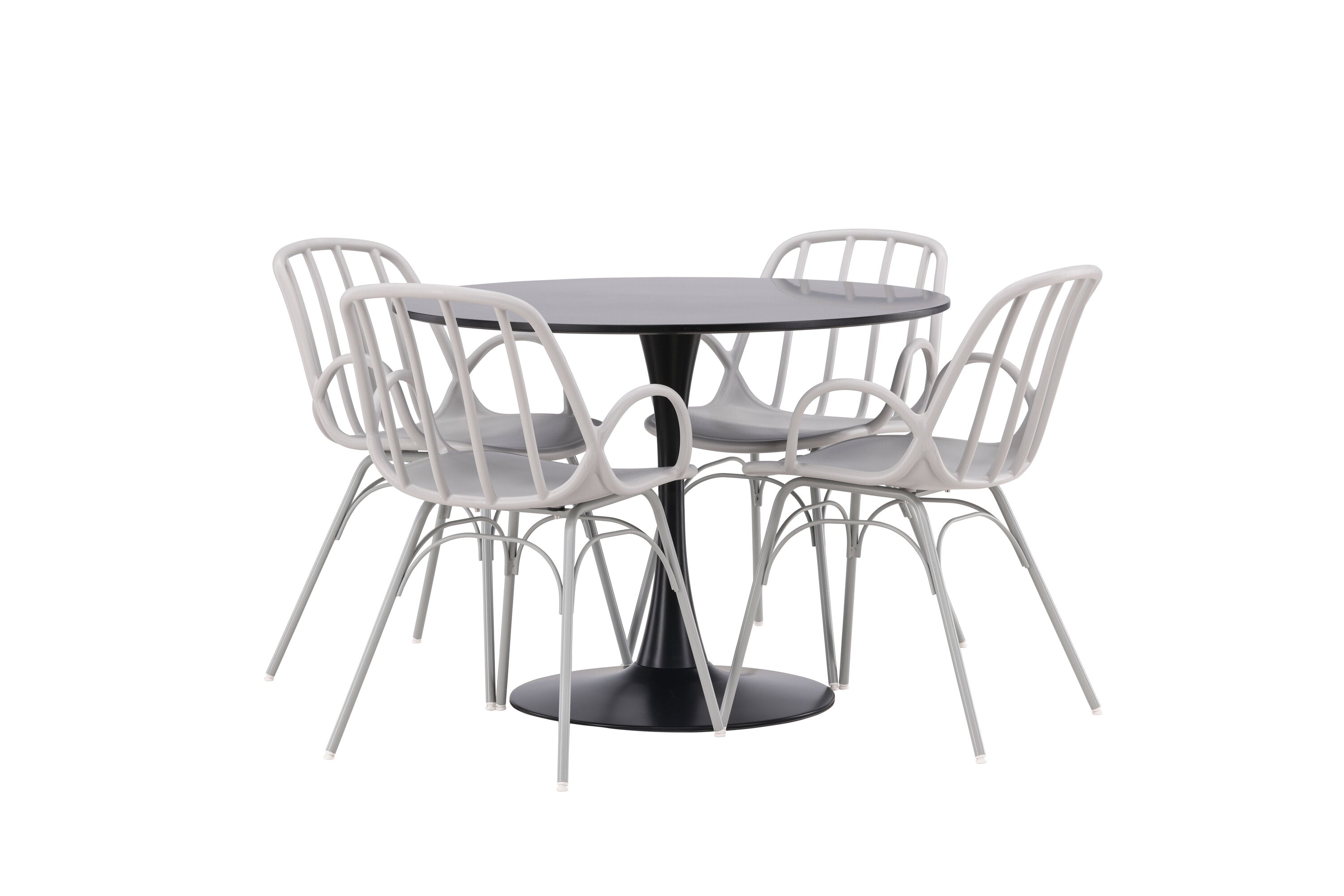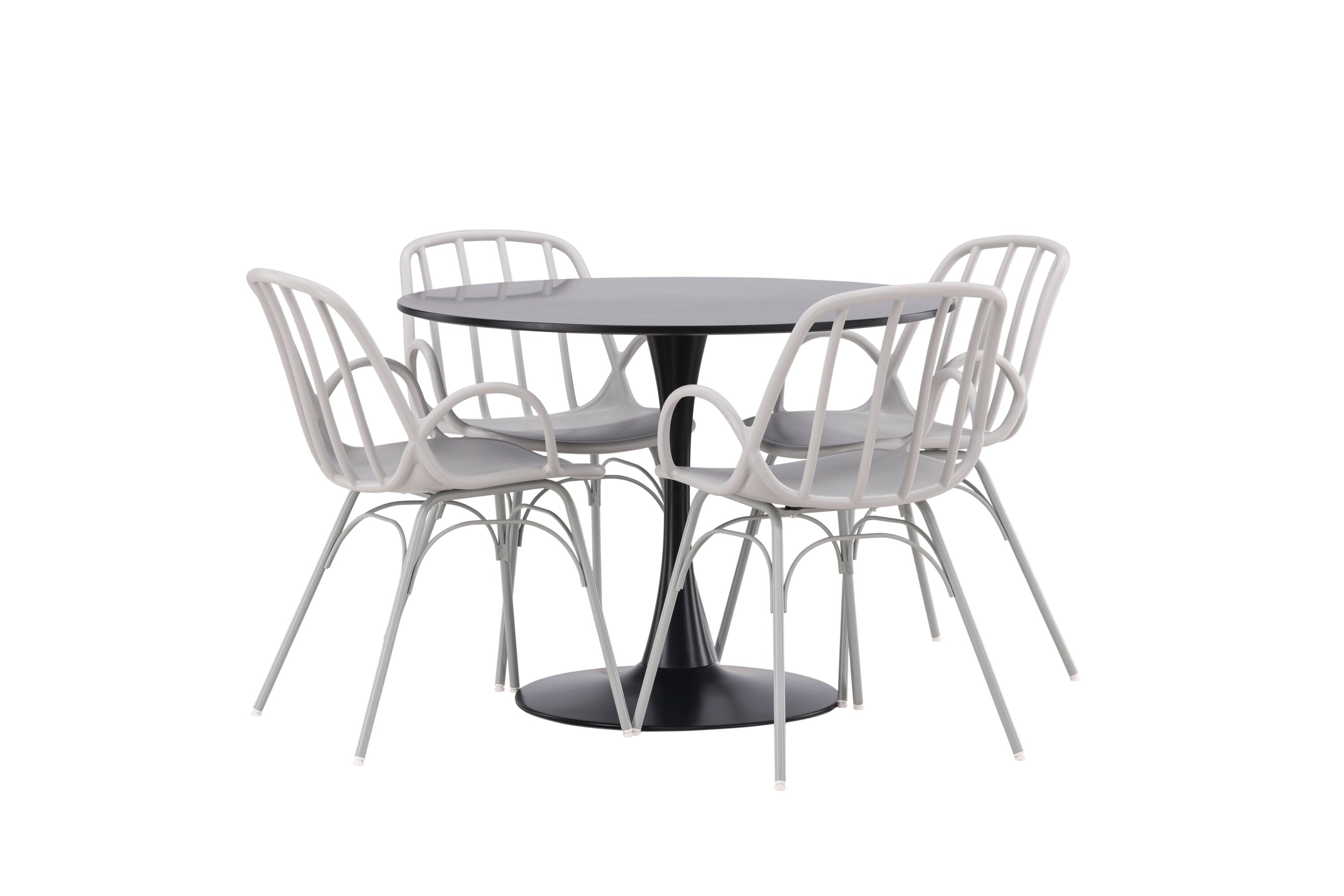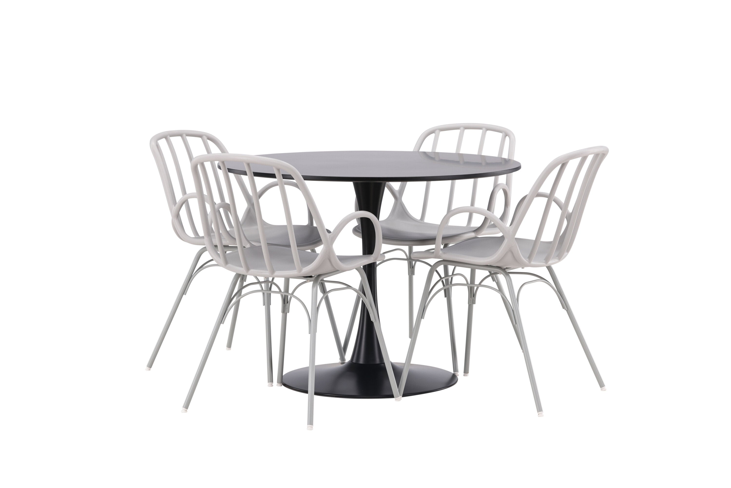 Jídelní stůl Glade - Černá / Černá MDF + Jídelní židle Dyrön - Greige Polypropylen _4