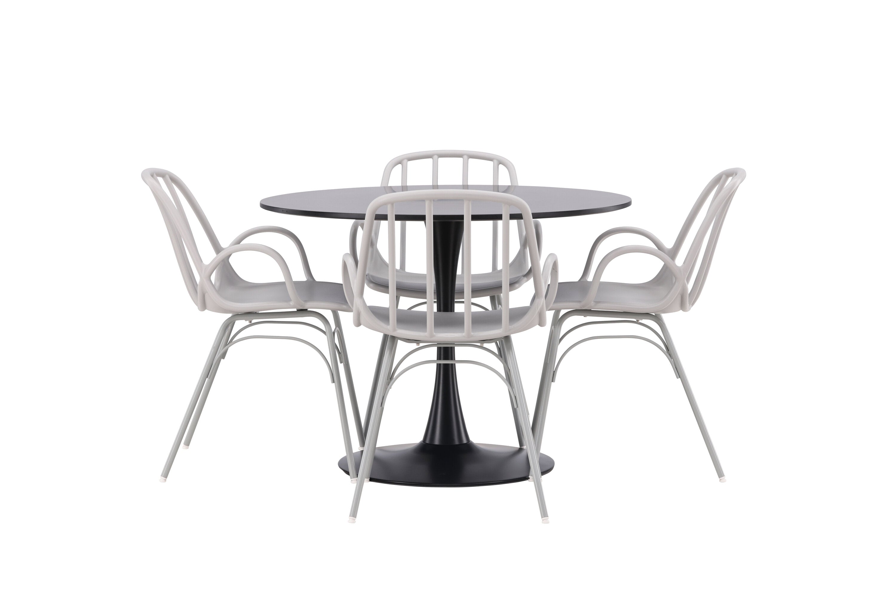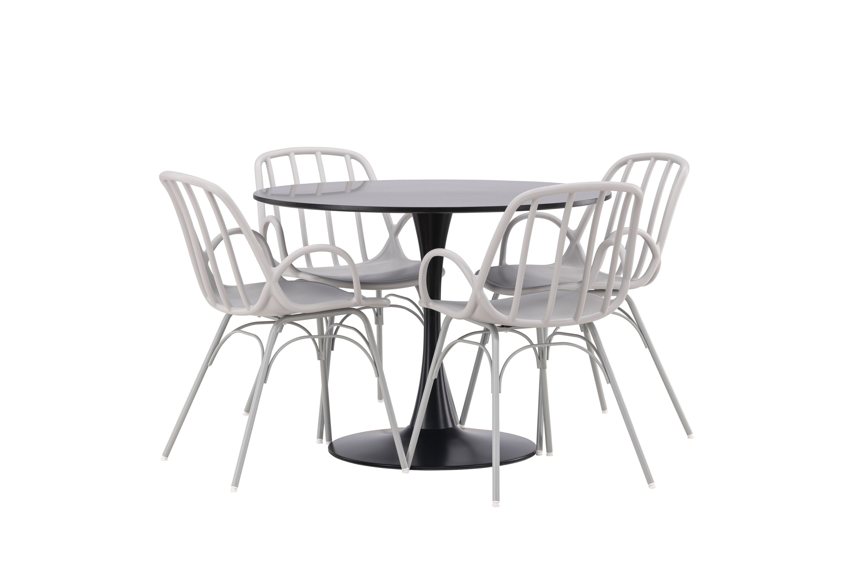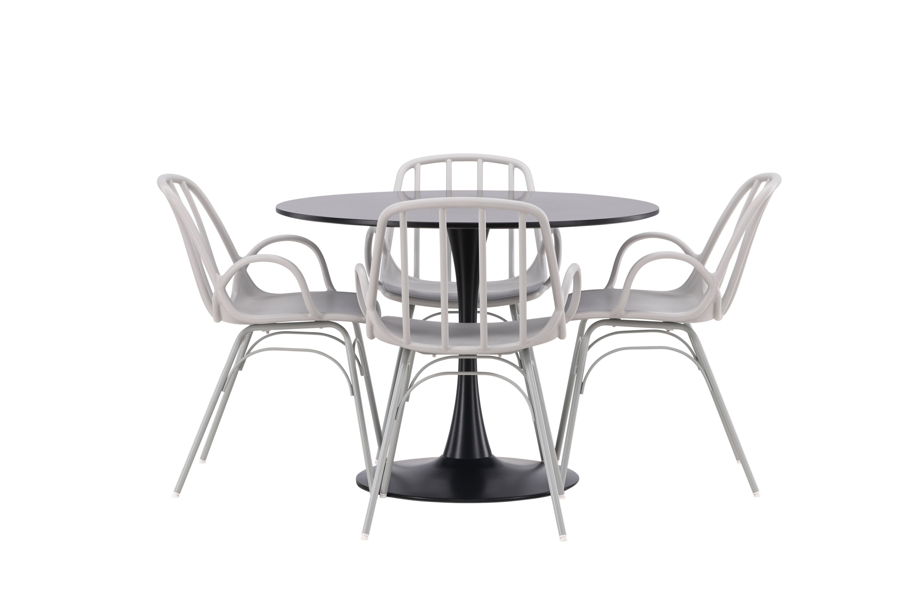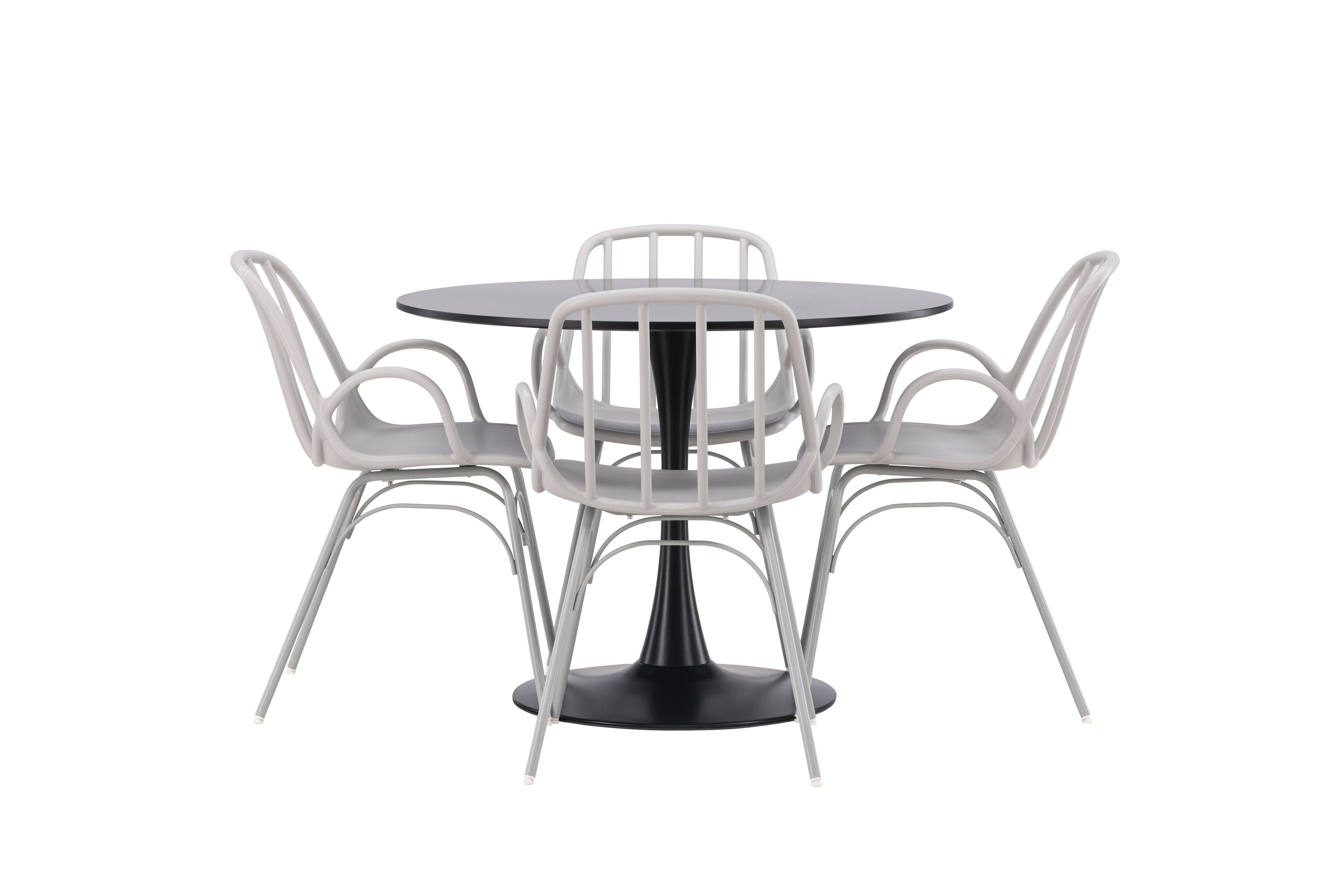 Jídelní stůl Glade - Černá / Černá MDF + Jídelní židle Dyrön - Greige Polypropylen _4