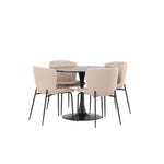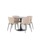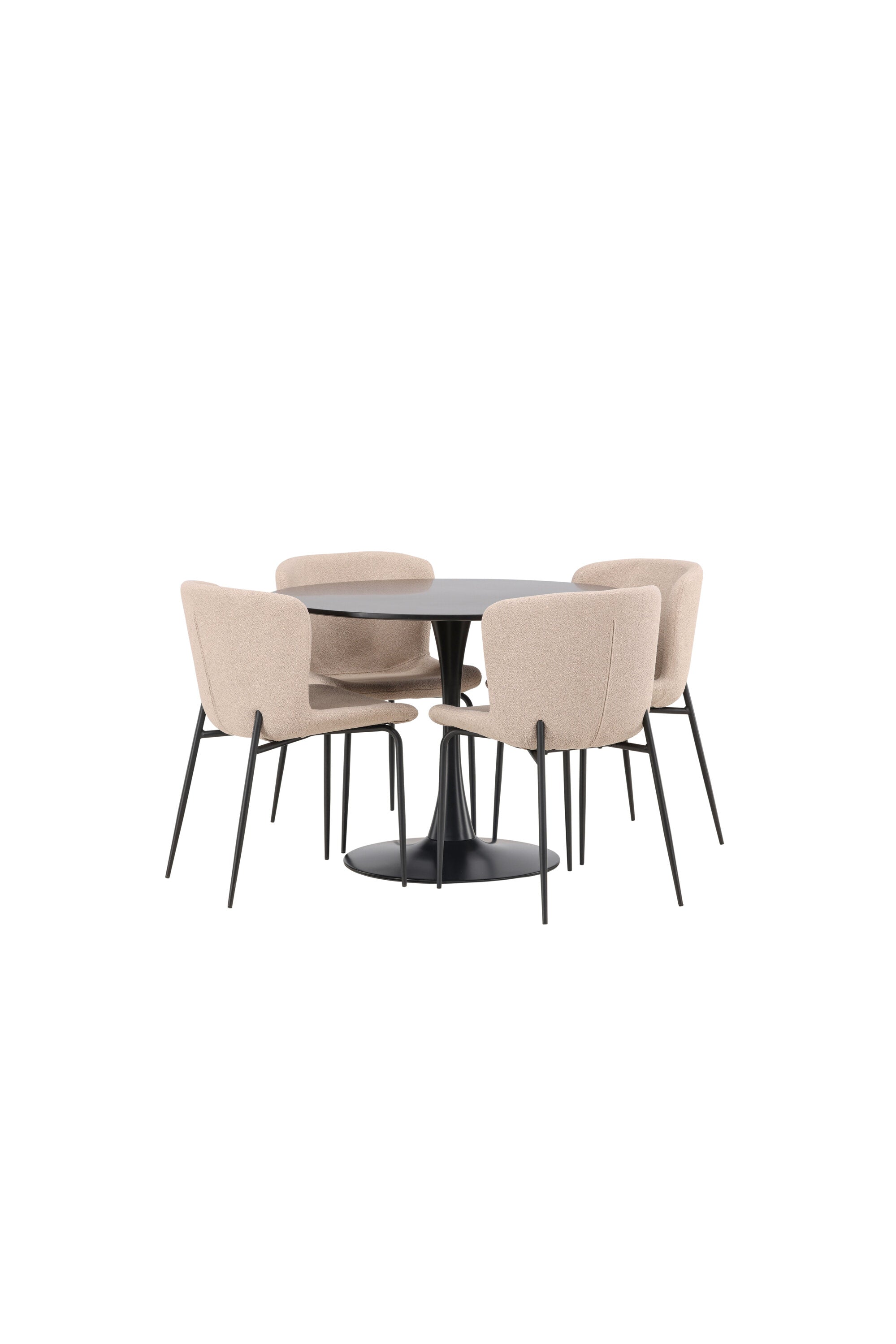 Moderní a lákavé! Jídelní stůl Glade má stylový skandinávský design se štíhlou trumpetovou nohou z černé oceli a černou desku stolu z MDF. Zde v dokonalé kombinaci s našimi šedými jídelními židlemi ze série Modesto. Židle je celočalouněná šedou chlupatou látkou se stylovými úzkými nohami v černém kovu. Mírně zaoblená záda a čalouněný sedák poskytují extra pohodlí a rozšiřují příjemné jídlo kolem jídelního stolu. Mělo by to být příjemné sedět u dobrého jídla! Rozměry stolu: 100 cm.