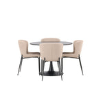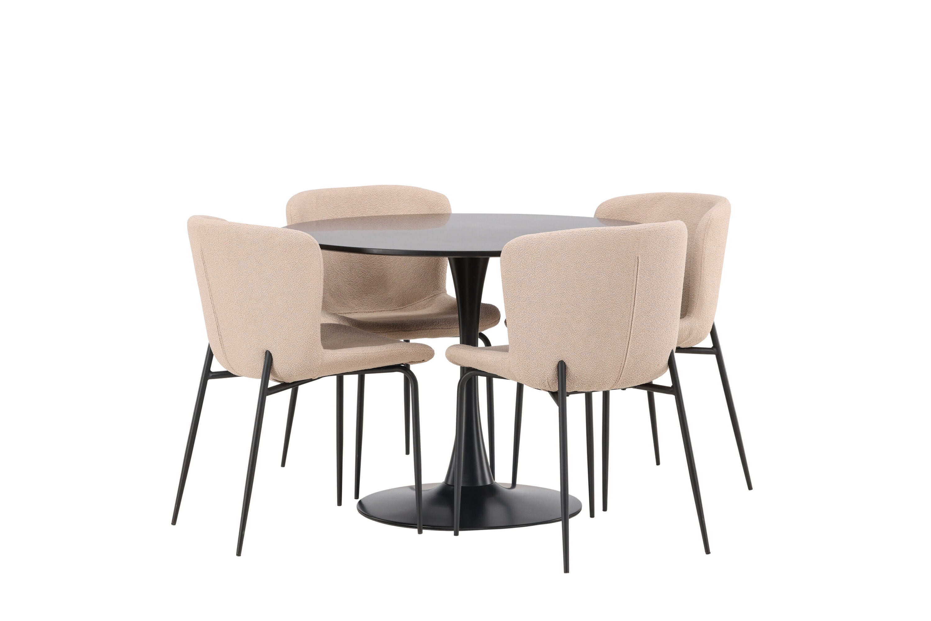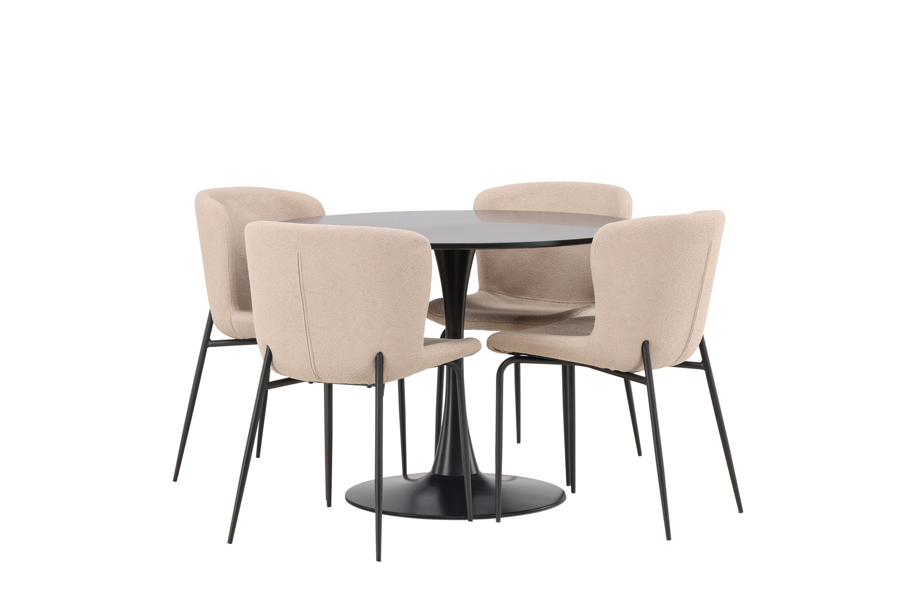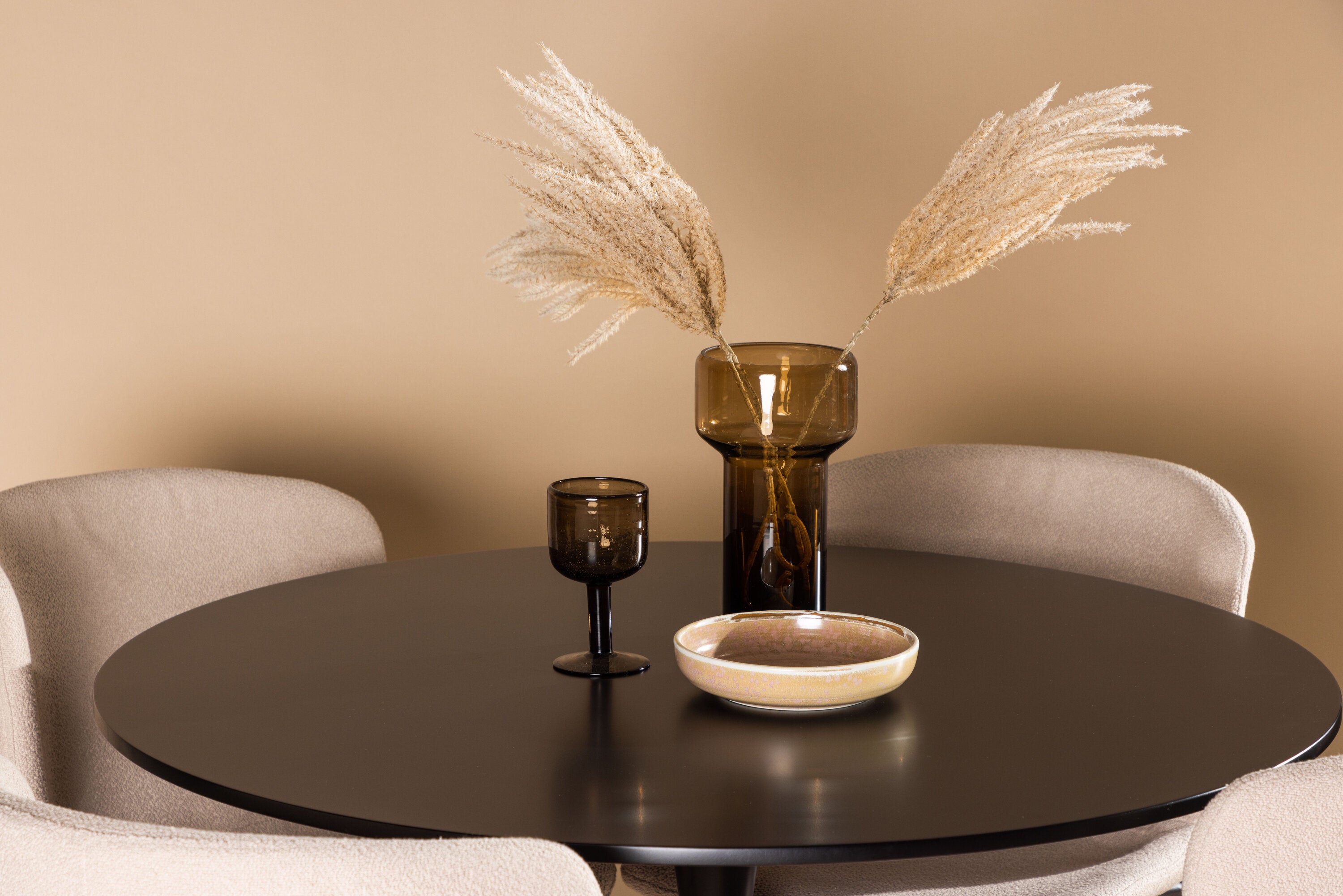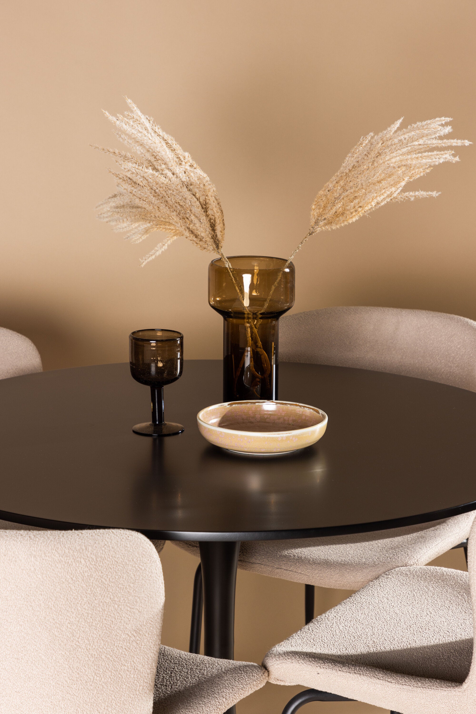 Jídelní stůl Glade – černá / černá MDF + jídelní židle Modesto – šedá / kouřová černá Boucle _4