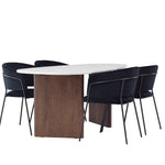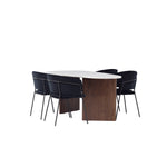 Dovolte nám představit kouzelnou jídelní skupinu, která kombinuje styl s pohodlím tím nejlepším možným způsobem! Náš oválný jídelní stůl Grönvik má nepravidelnou desku ze světle šedé MDF s mramorovým vzhledem. Konstrukce stolu se skládá ze dvou tenkých dřevěných panelů v moderním tmavě hnědém odstínu, který podporuje krásnou horní plochu. Tyto prvky vytvářejí dokonalou rovnováhu mezi elegancí a přirozeností a dodávají jídelní skupině jedinečný a exkluzivní nádech. Rozměry stolu: 180x75cm.