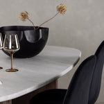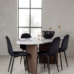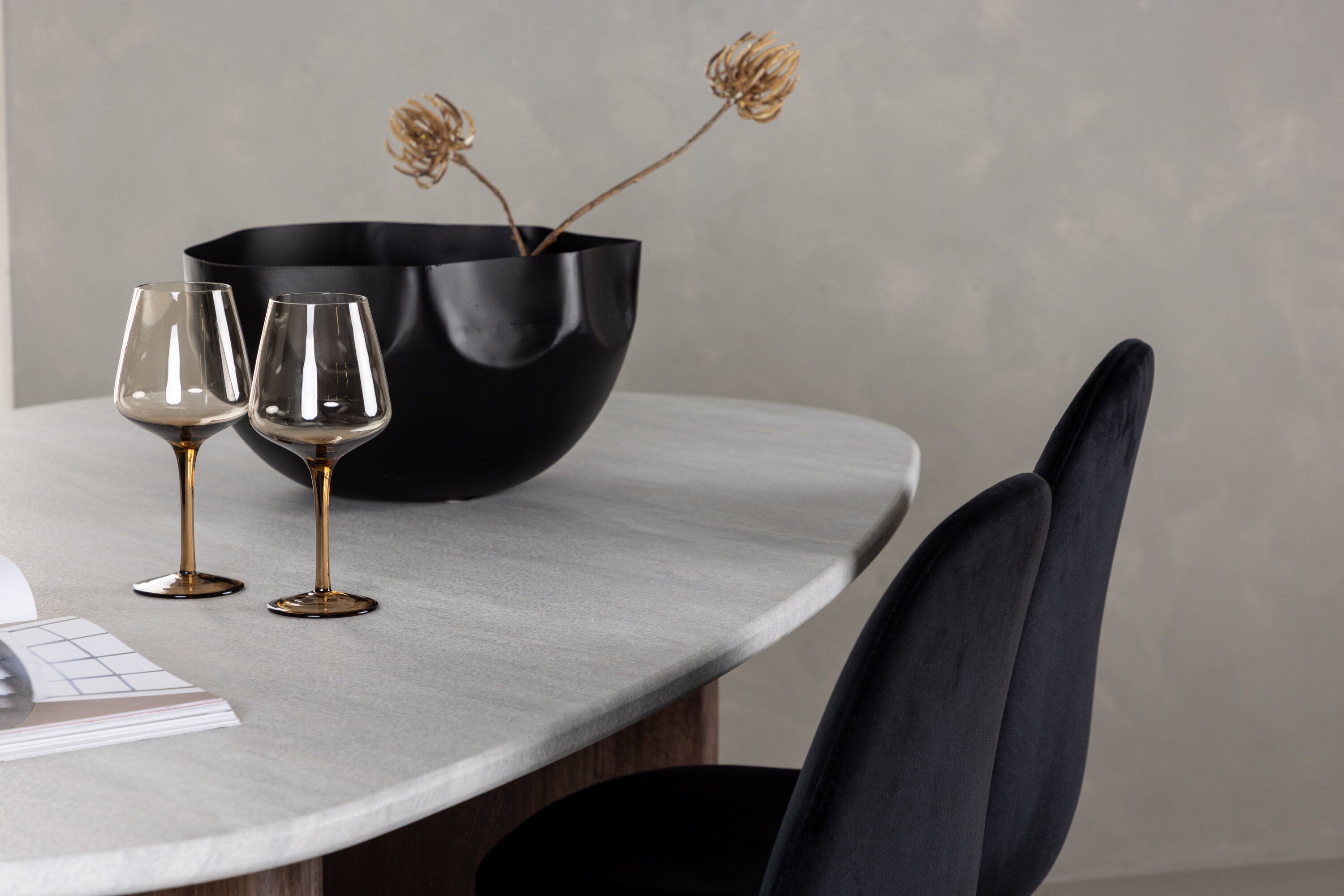 Pro vytvoření dokonalé kompozice jsme ji spárovali s našimi černými židlemi ze série Polar. Tyto židle zaujmou svým celočalouněným designem, klasickými nohami z černého kovu s práškovým nástřikem a opěradlem a sedákem z měkké černé sametové látky. Velkorysé polstrování poskytuje extra pohodlí a umožňuje vám sedět u jídelního stolu celé hodiny, aniž byste chtěli vstát. Zde získáte vše, co potřebujete, abyste mohli v budoucnu pozvat rodinu a přátele na příjemné večeře. Uvařte něco lahodného, ​​pěkně prostřete stůl a posaďte se na krásné chvíle spolu!