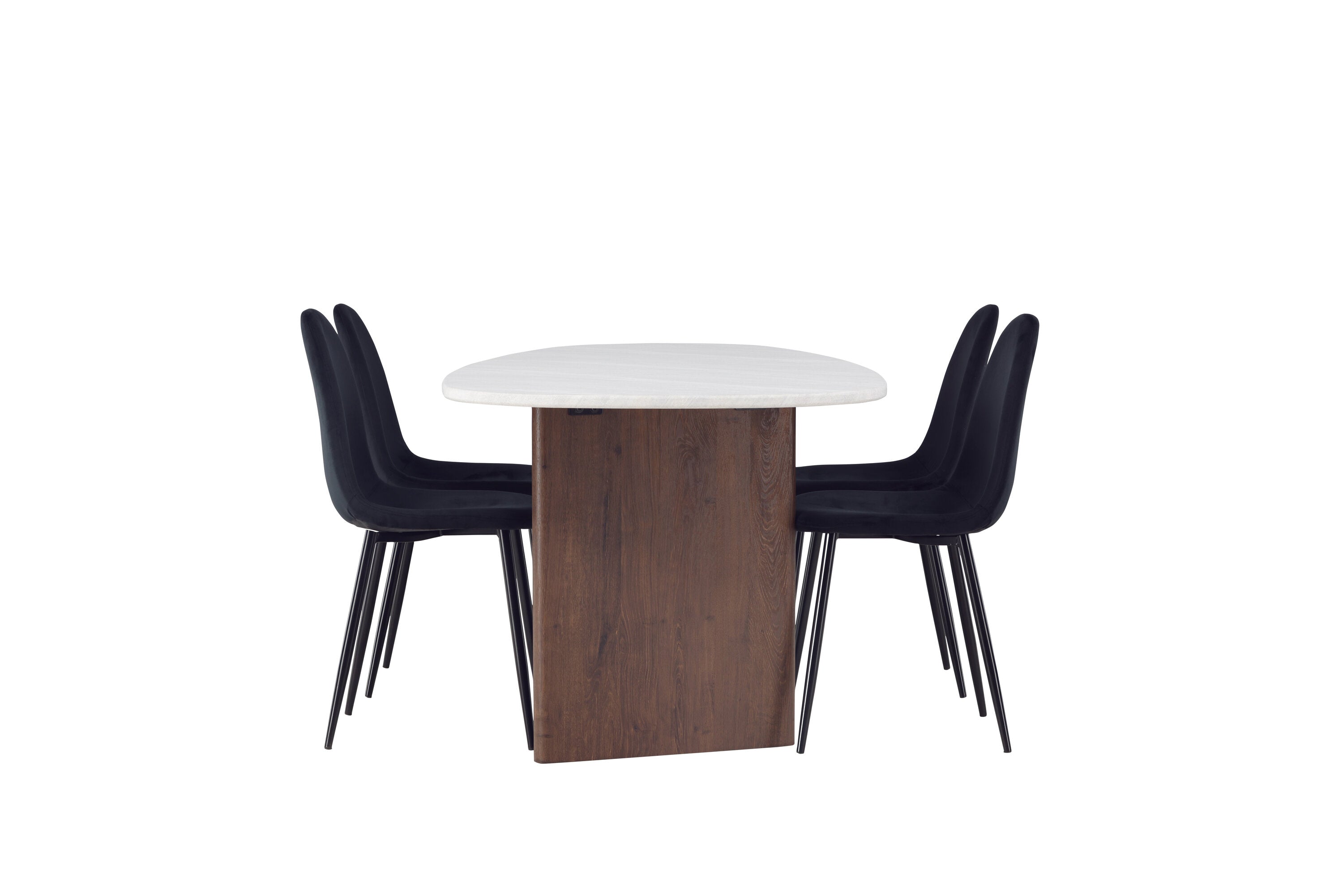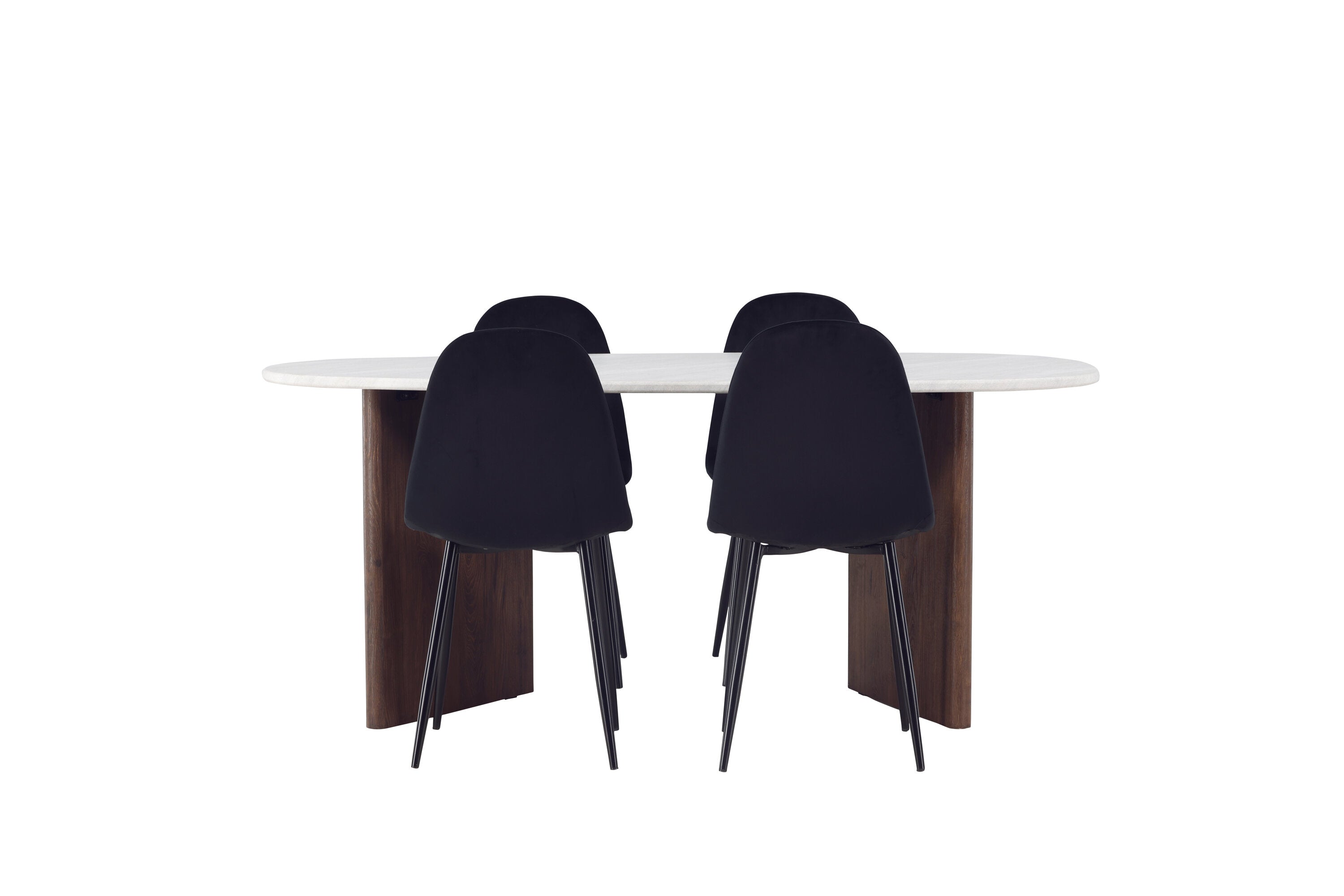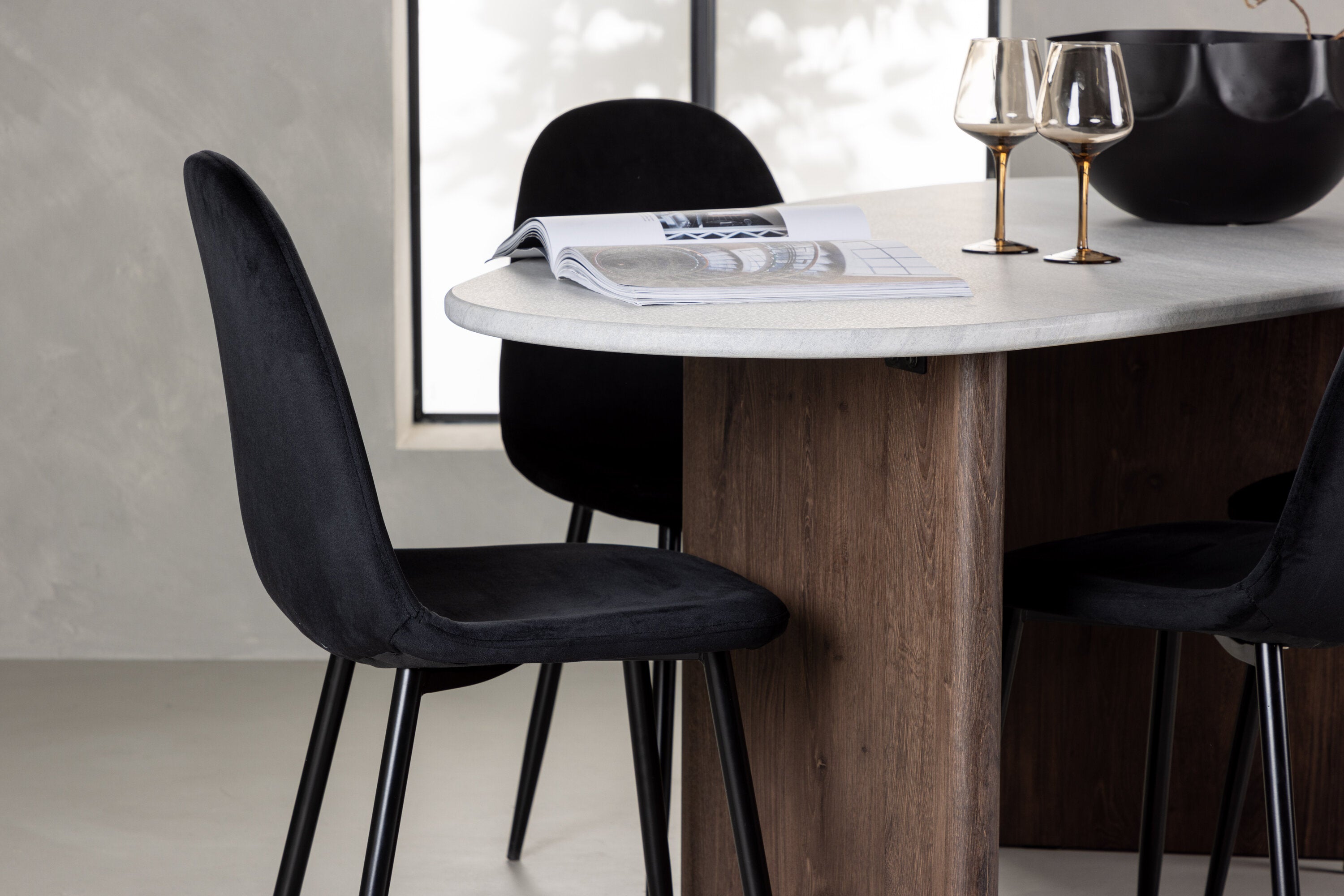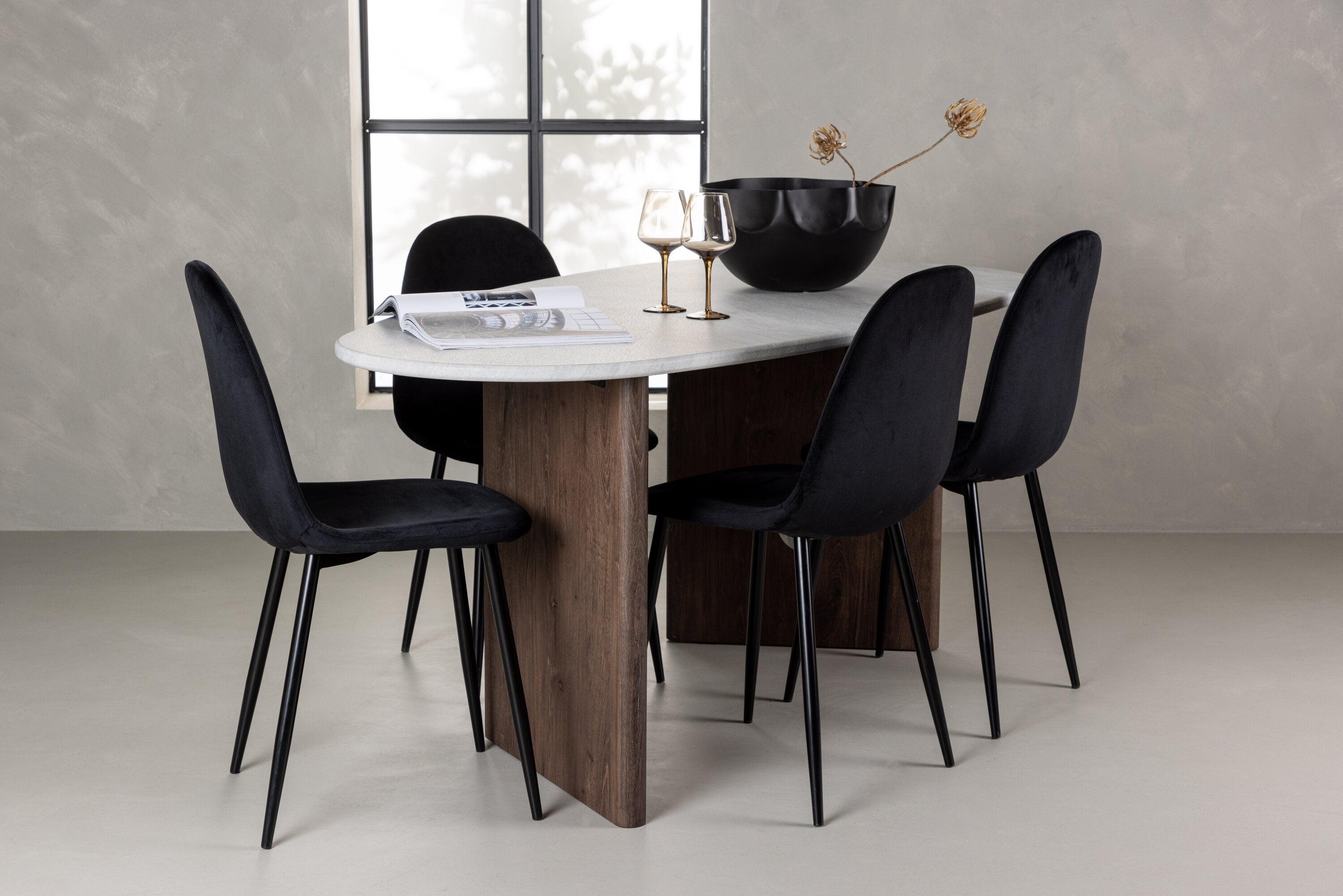 Jídelní stůl Grönvik 180*75 - Mocca / Offwhite Concretelook MDF + Polar Jídelní židle - Černé nohy / Black Velvet _4