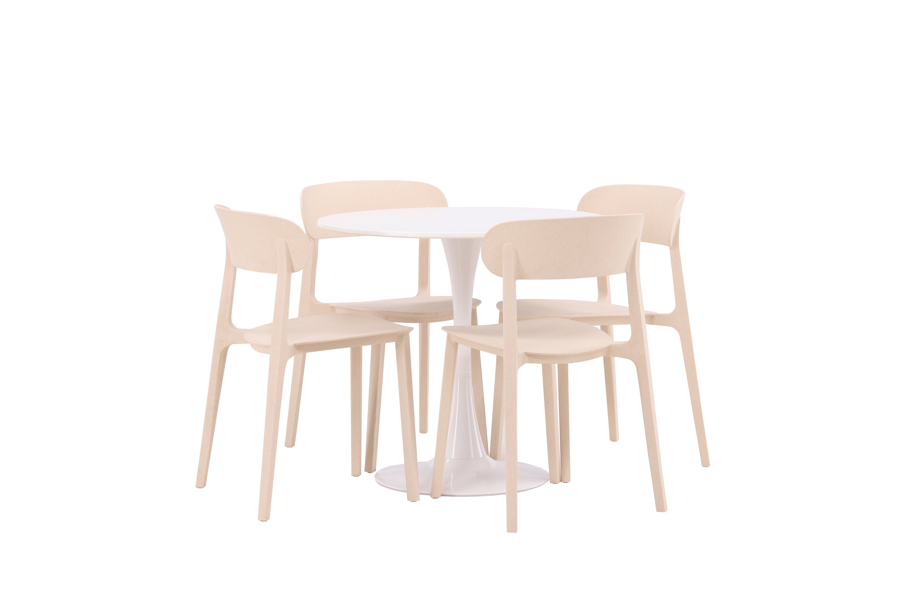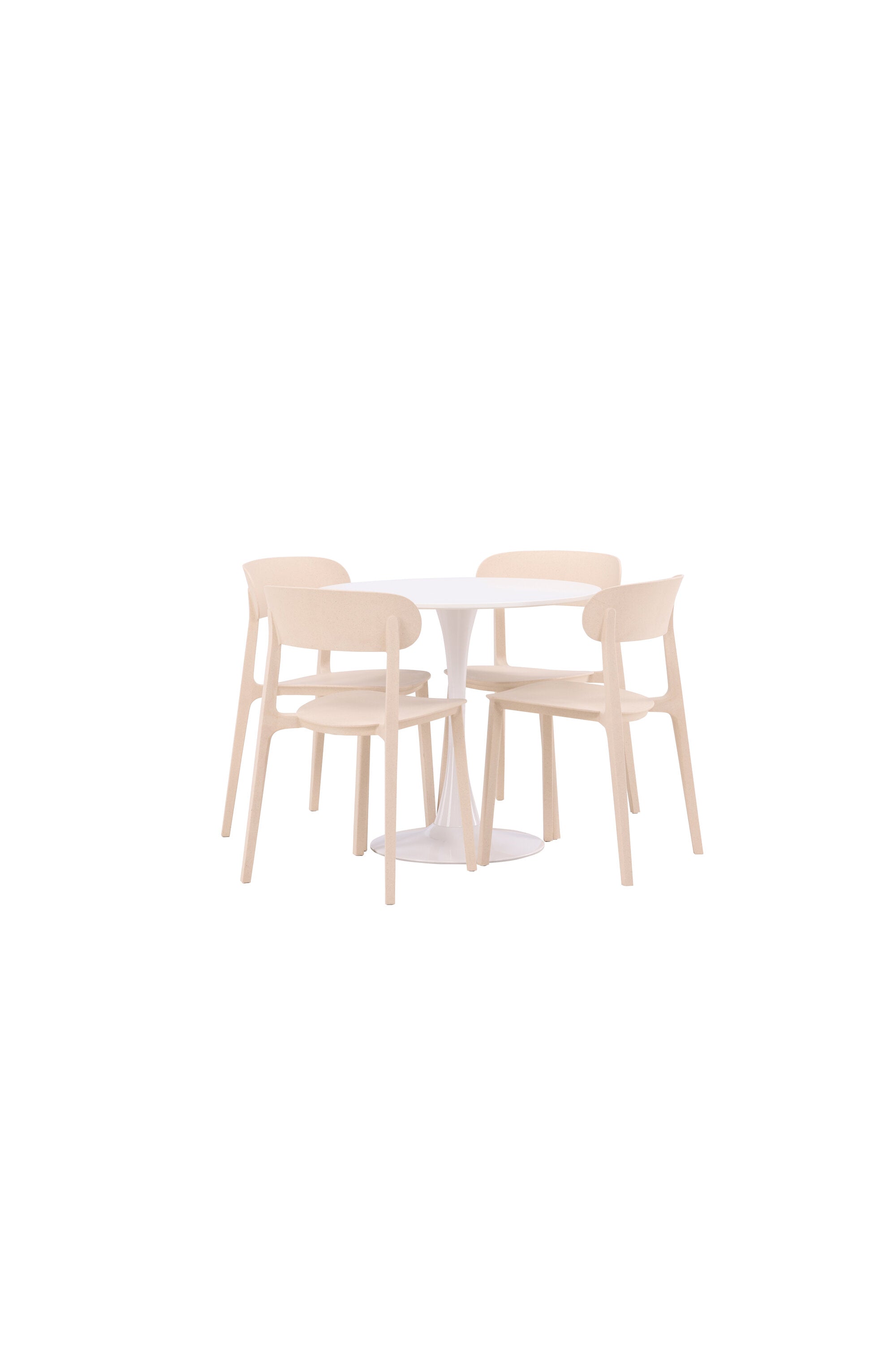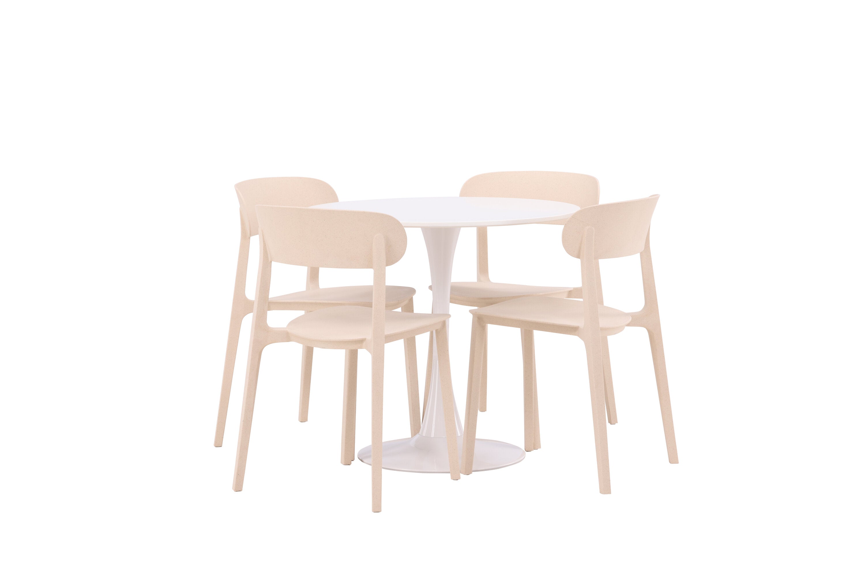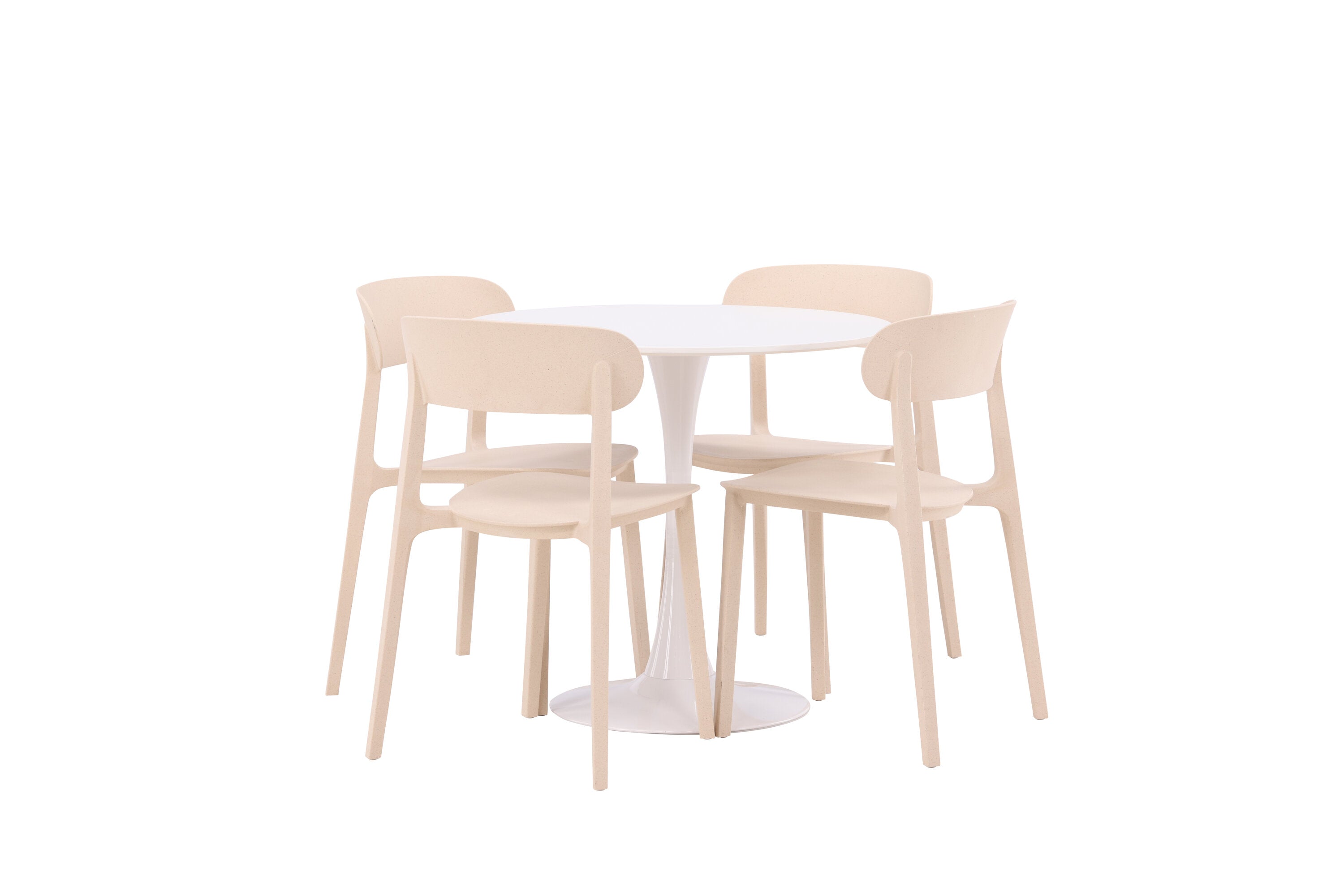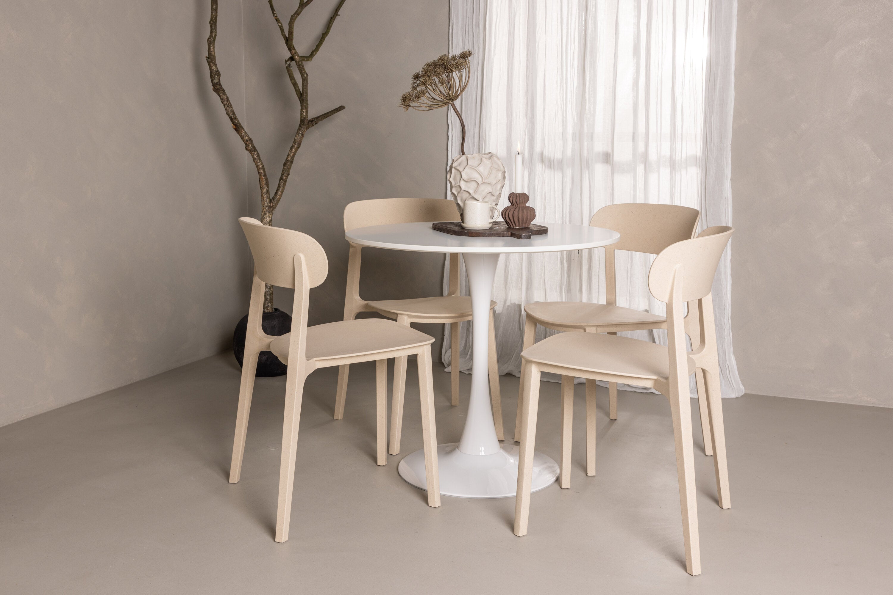 Jídelní stůl Hamden - Bílá Jídelní židle MDF+Åstol - Přírodní Dřevoplastový kompozit_4