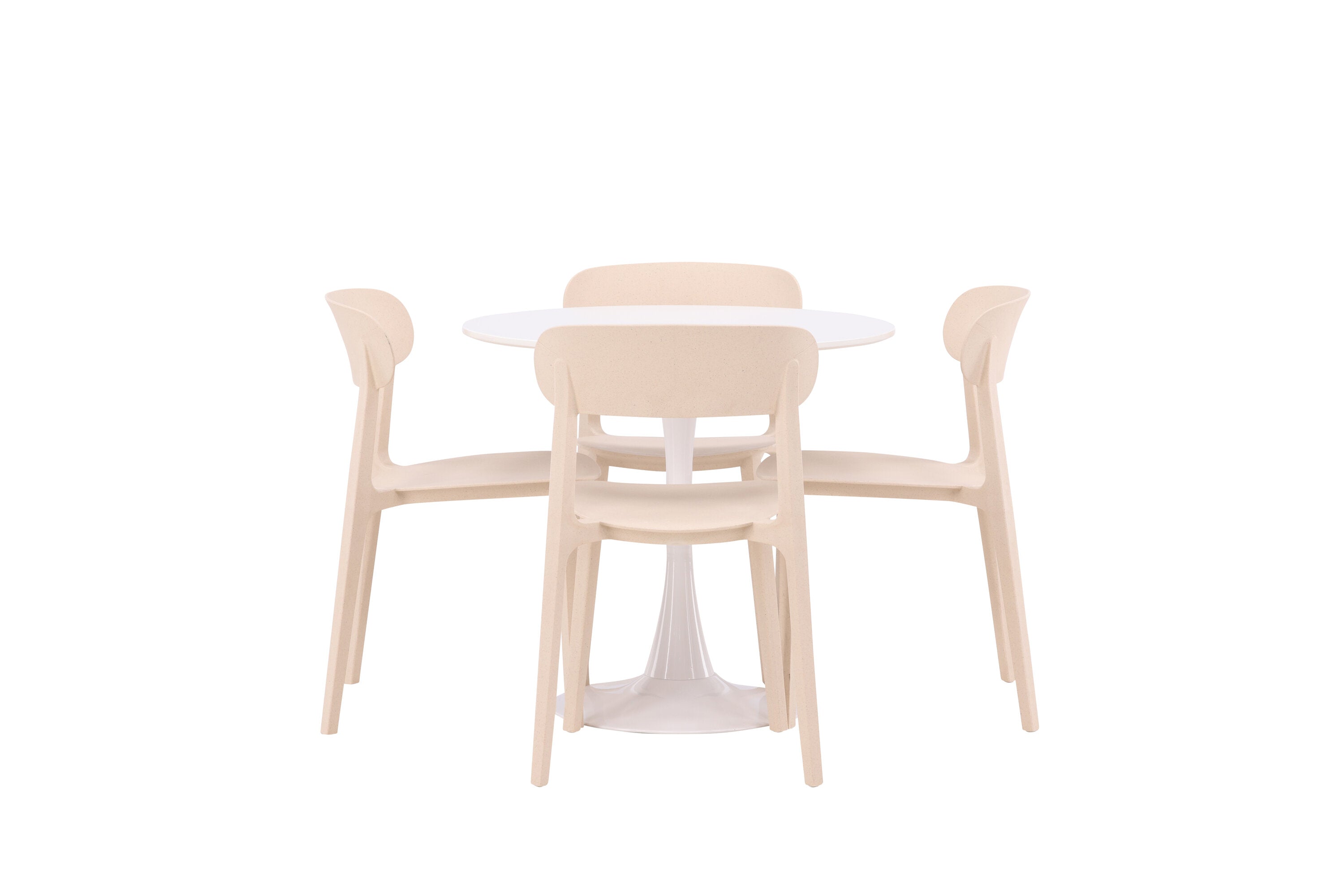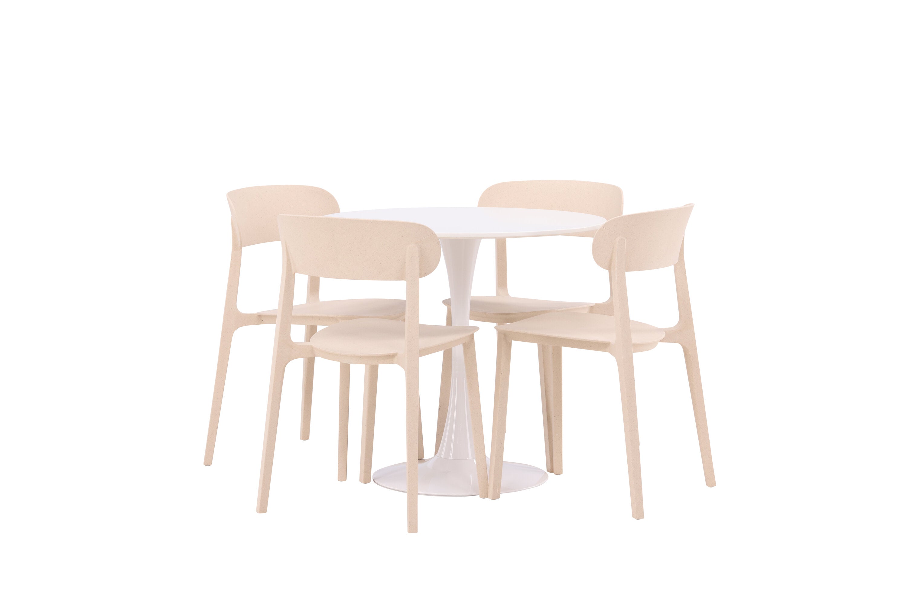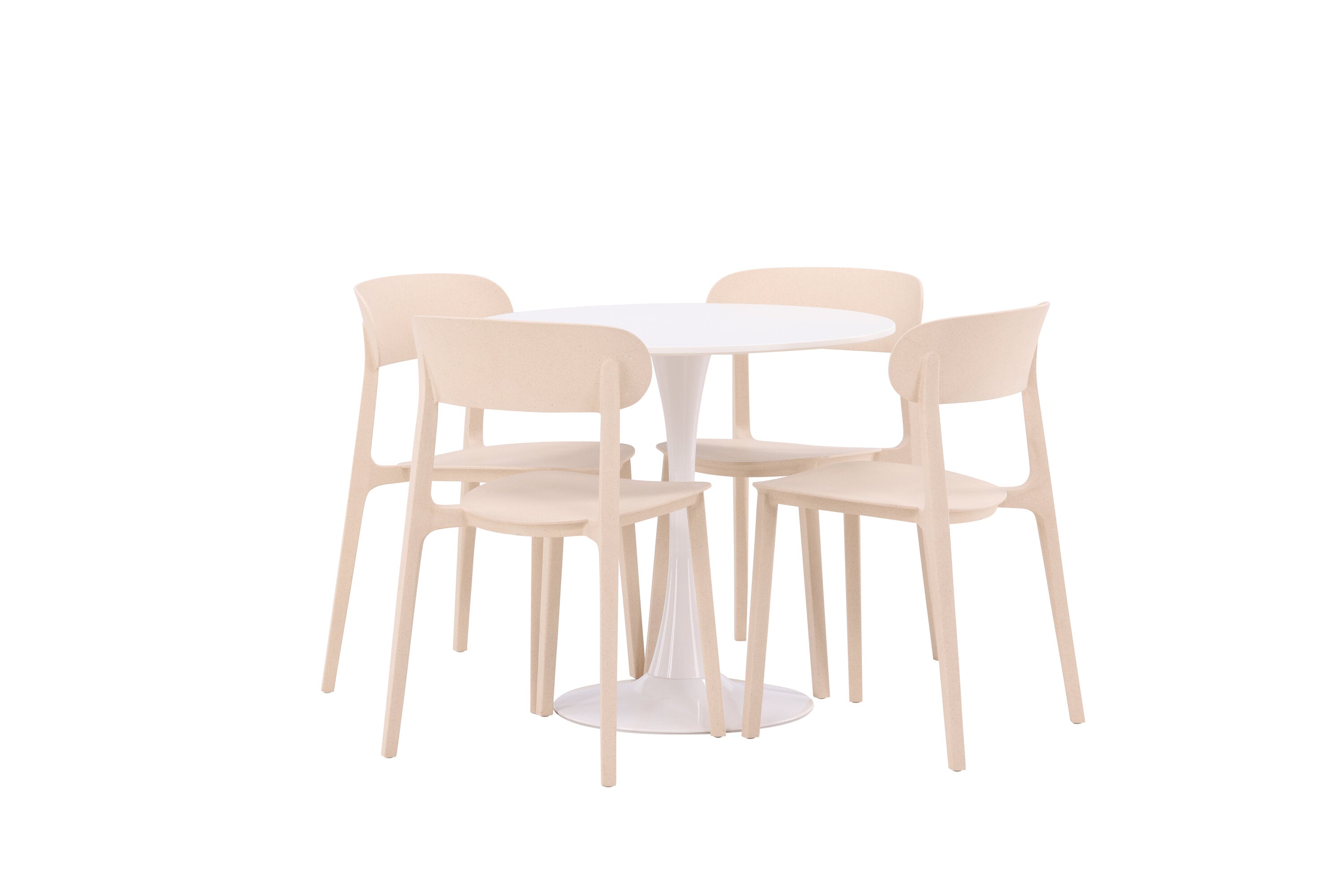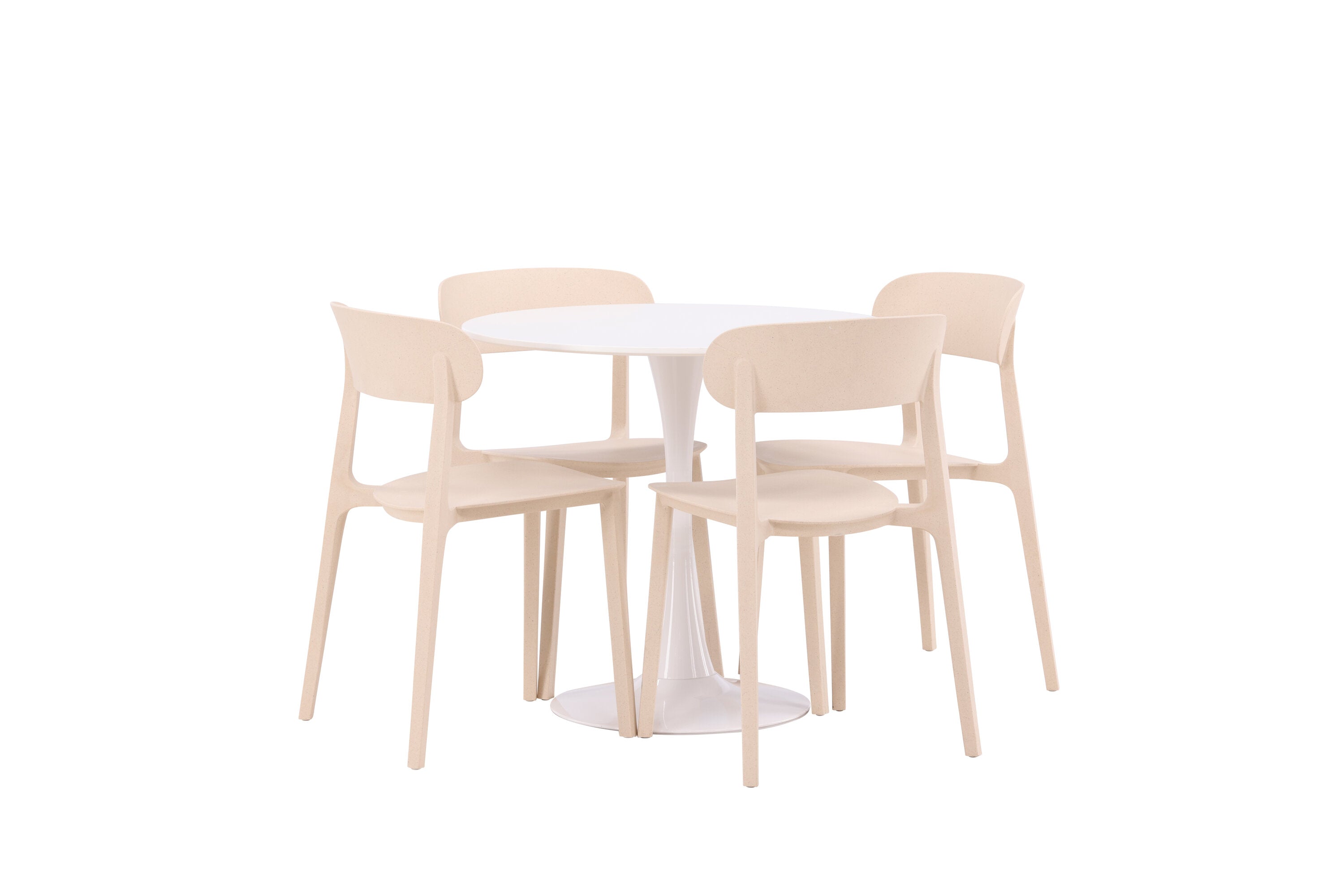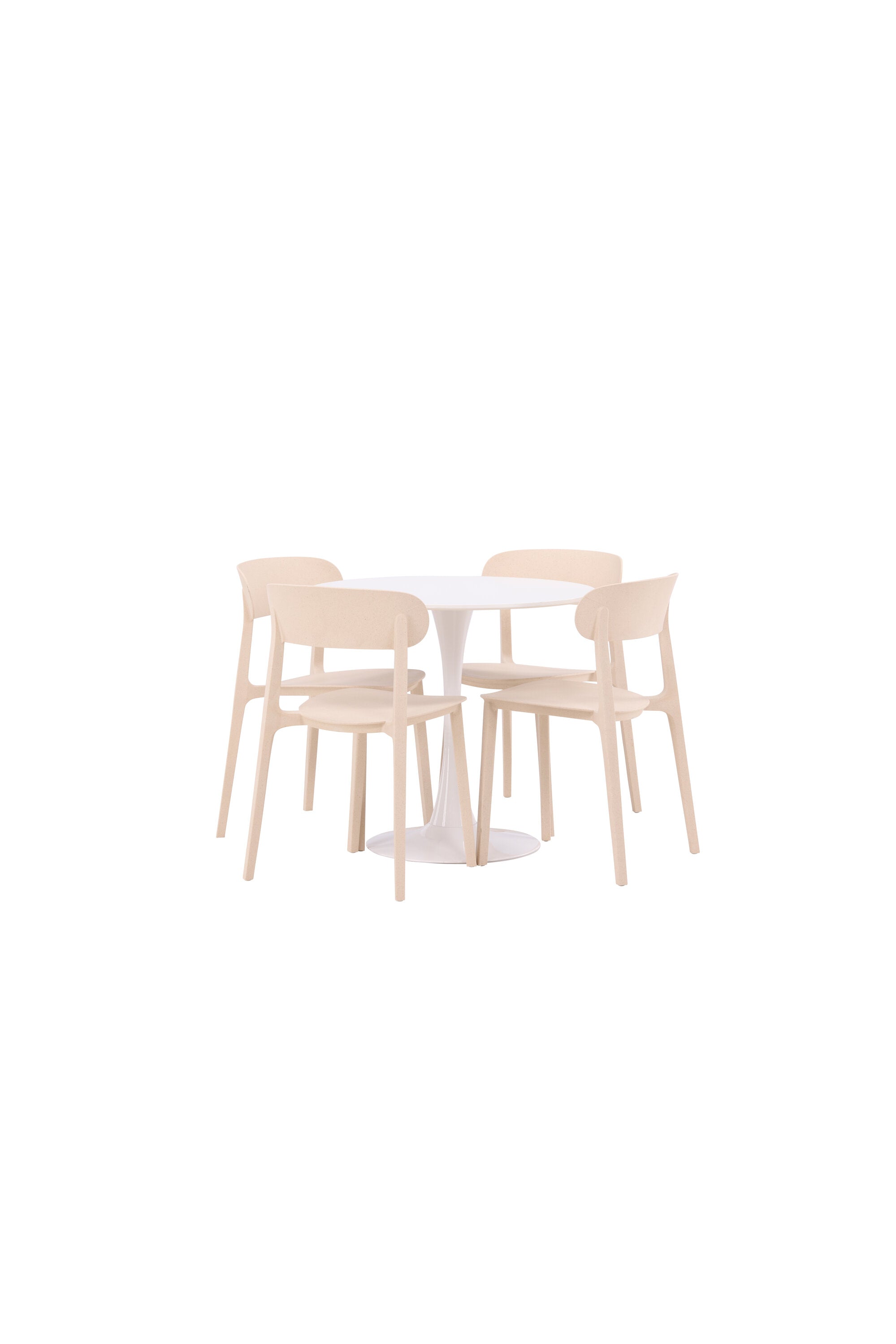 Jídelní stůl Hamden - Bílá Jídelní židle MDF+Åstol - Přírodní Dřevoplastový kompozit_4