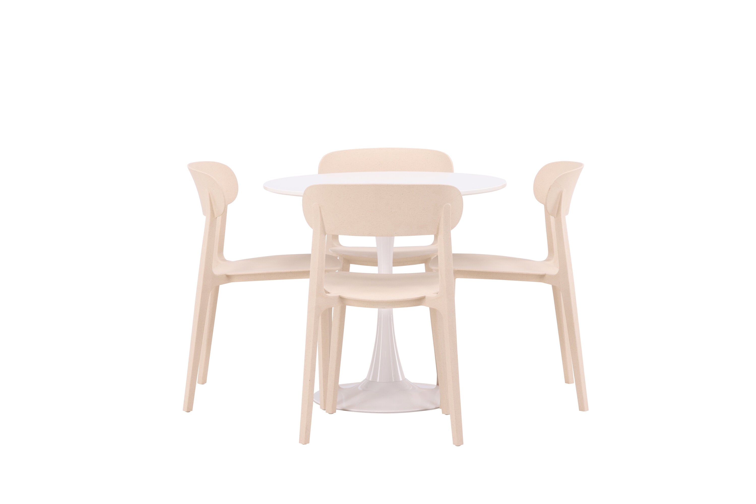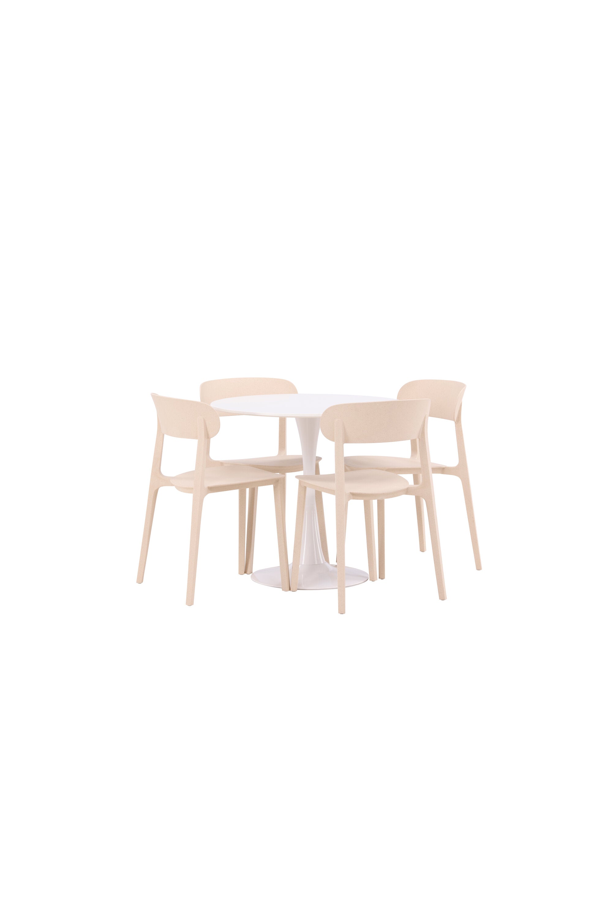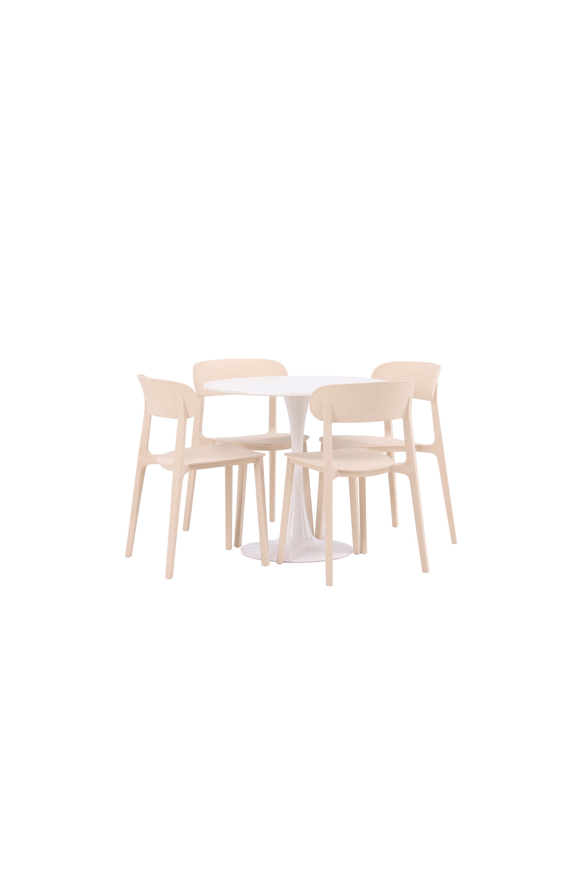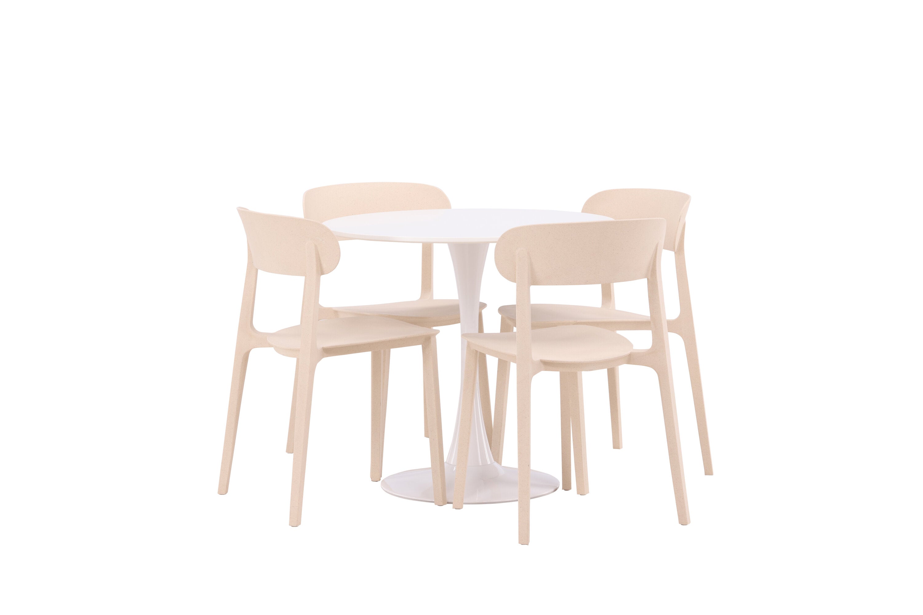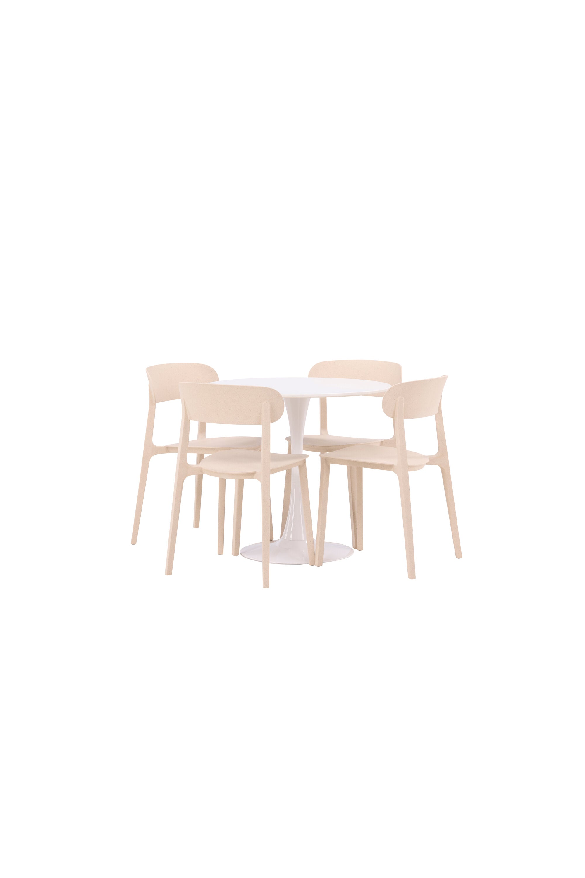 Jídelní stůl Hamden - Bílá Jídelní židle MDF+Åstol - Přírodní Dřevoplastový kompozit_4