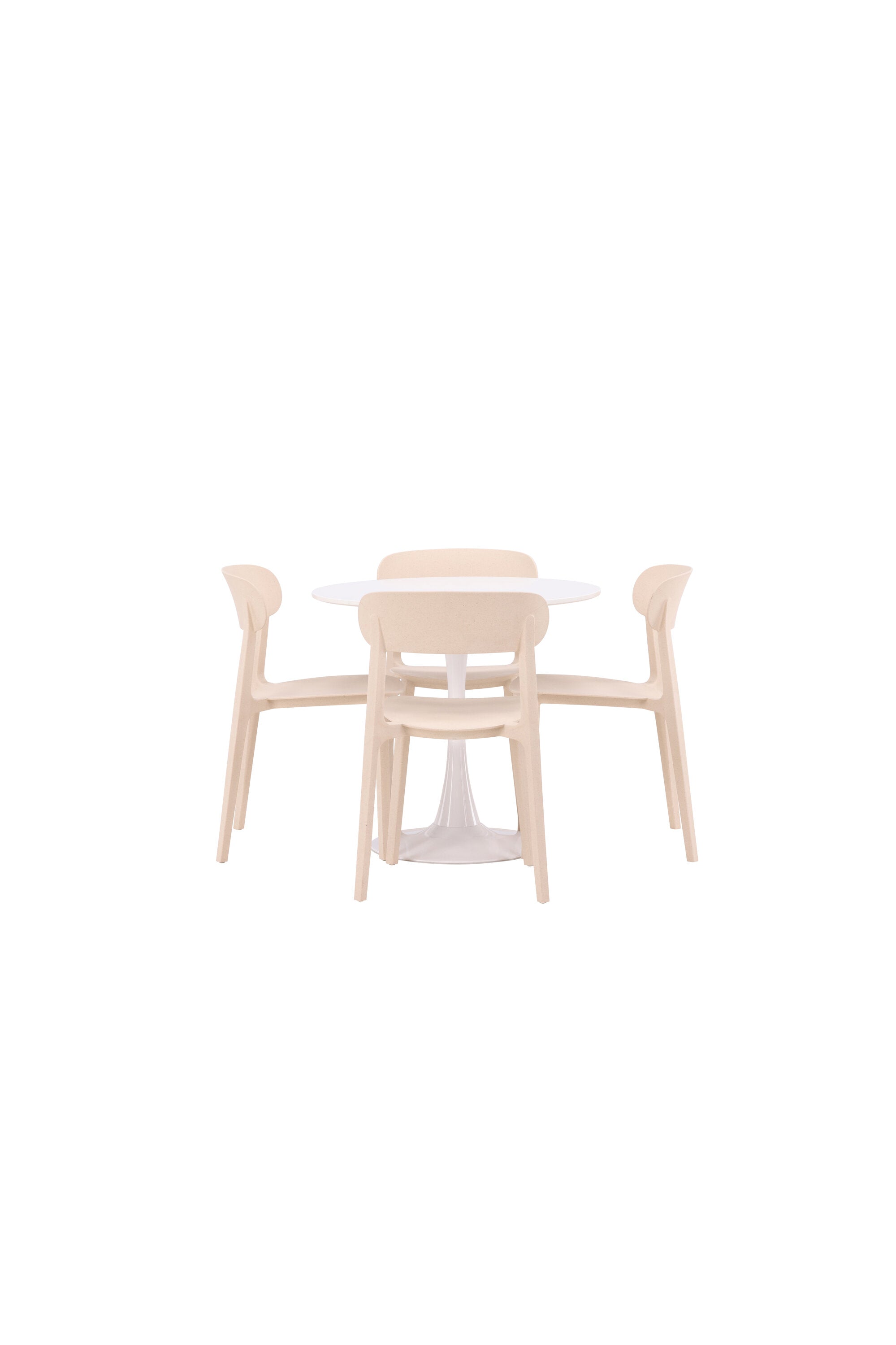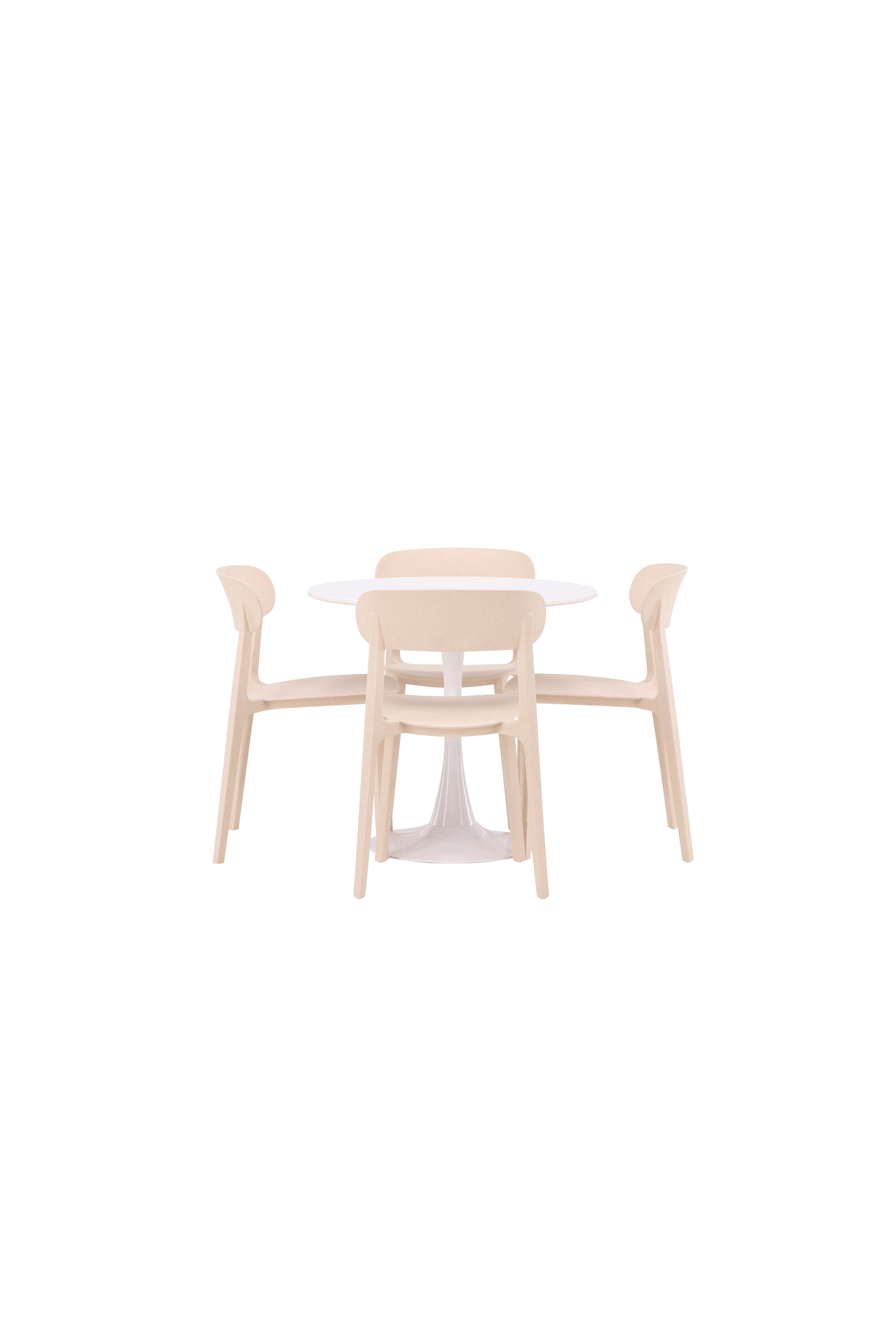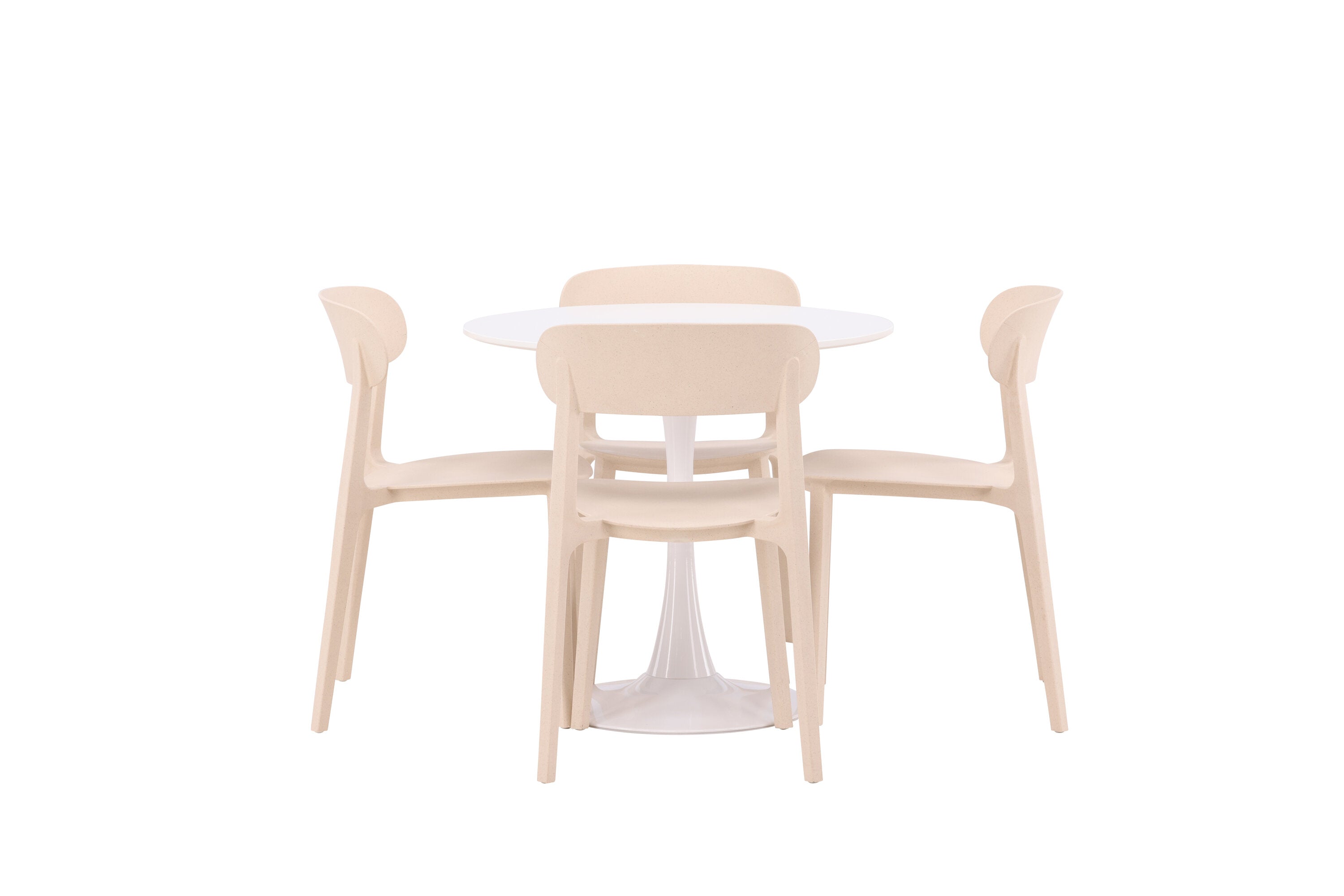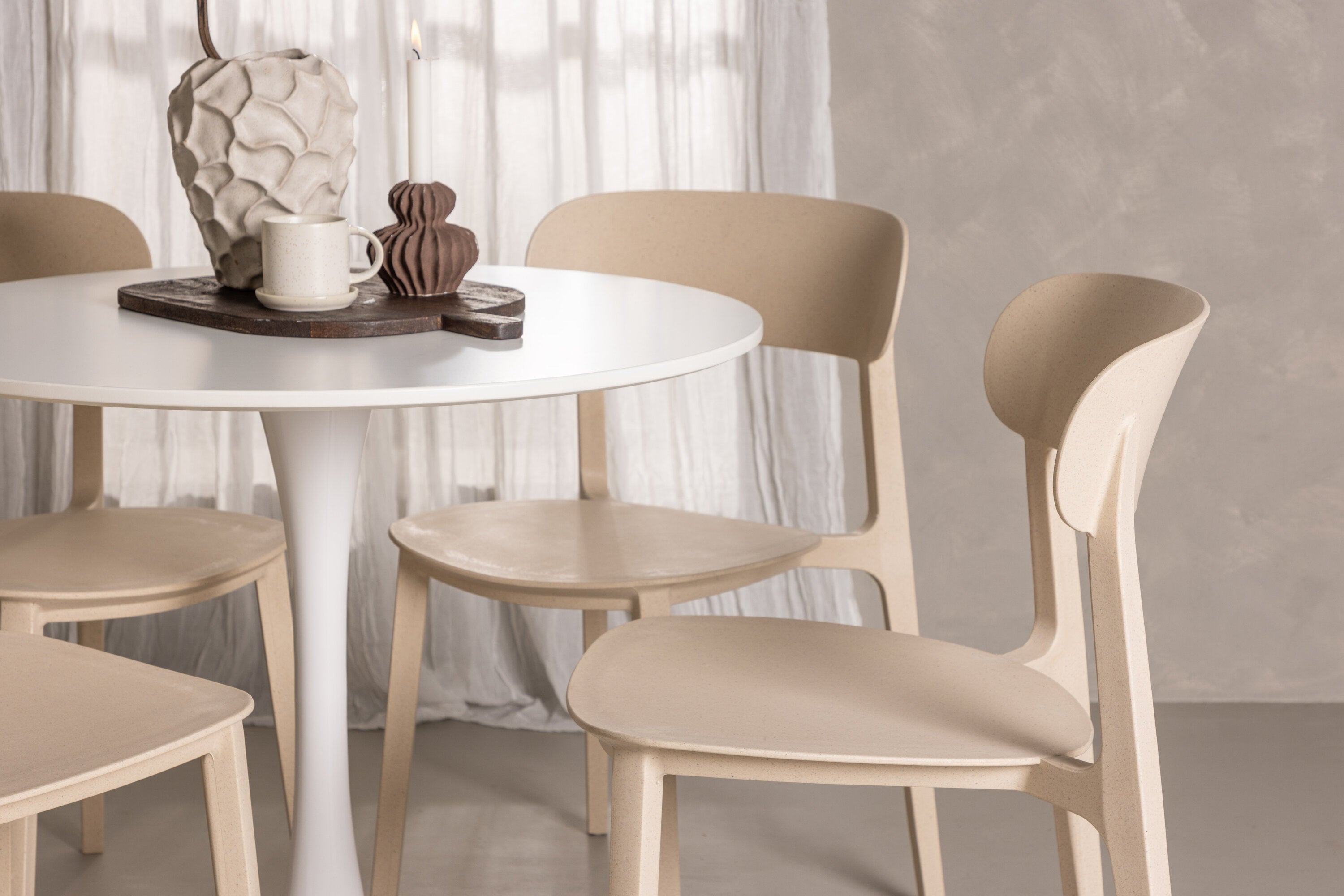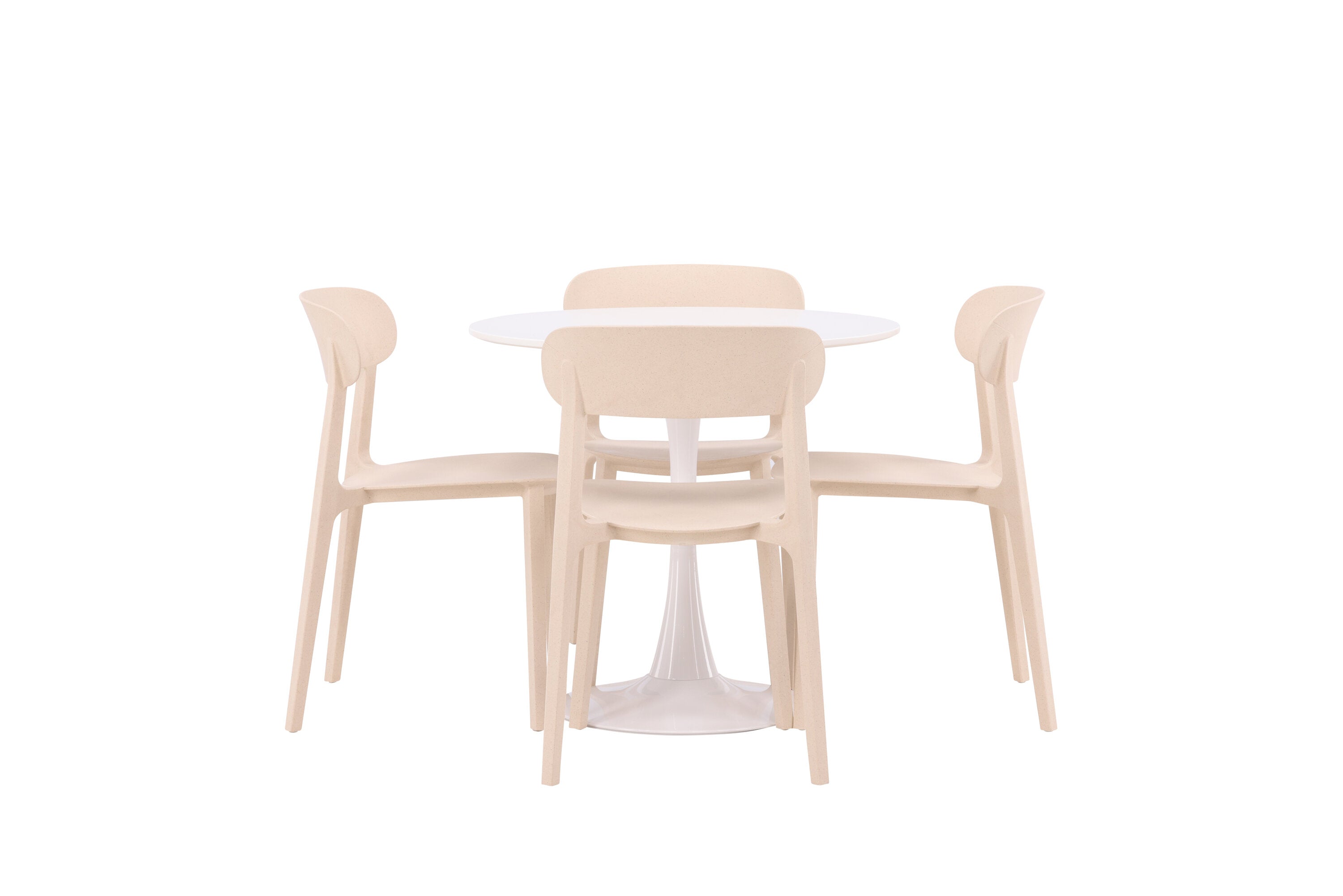 Jídelní stůl Hamden - Bílá Jídelní židle MDF+Åstol - Přírodní Dřevoplastový kompozit_4