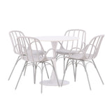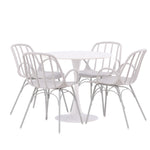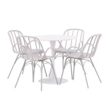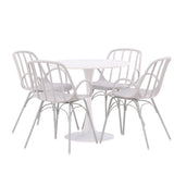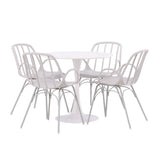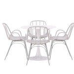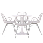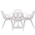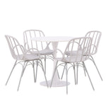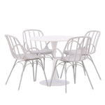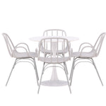 Se čtyřmi přiloženými židlemi je tato sada ideální pro setkávání rodiny a přátel u jídelního stolu. Jeho jednoduchý design a materiály, které se snadno udržují, usnadňují udržování úhledného a čistého. Po jídle můžete povrch stolu snadno otřít, abyste zachovali jeho krásu a lesk.