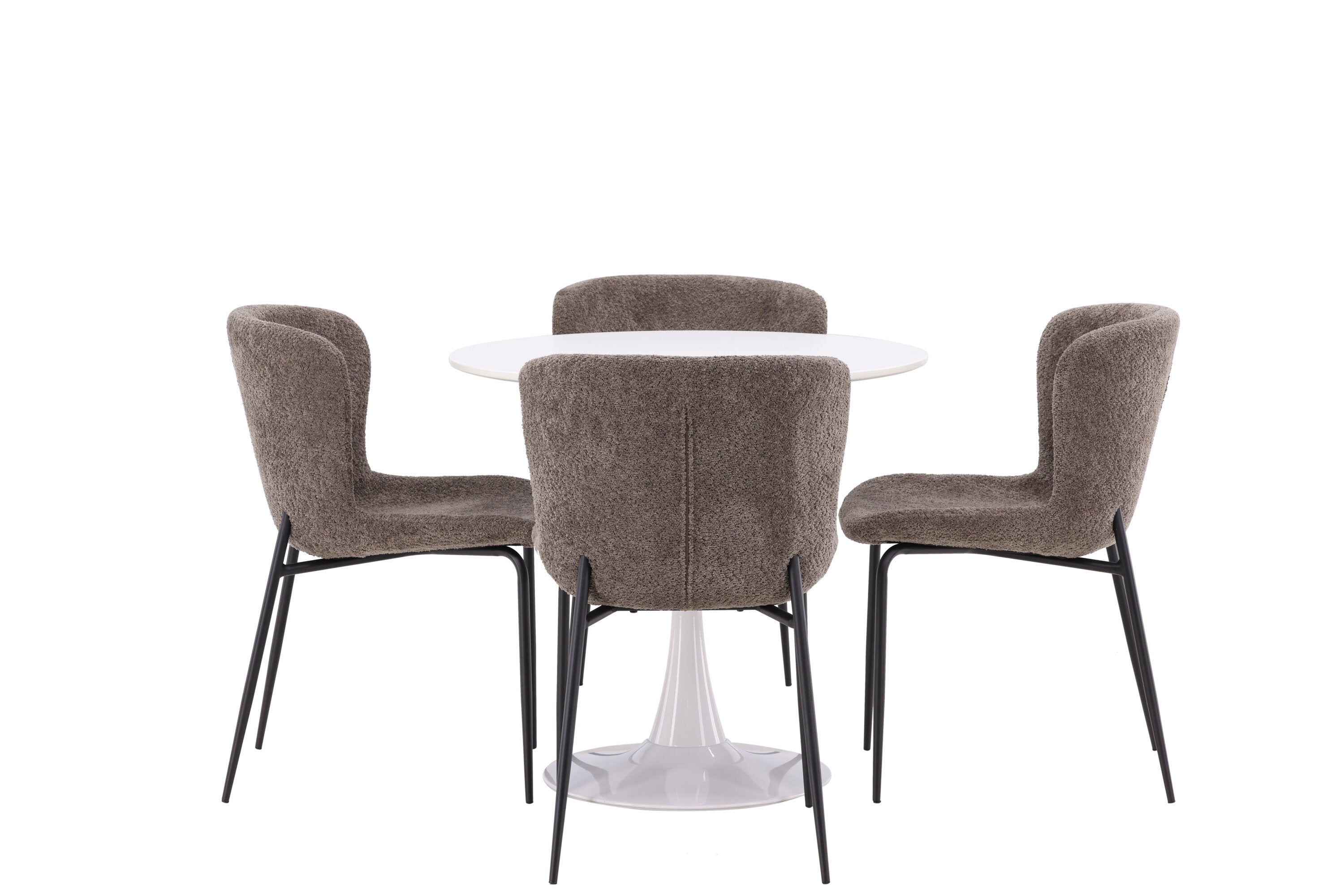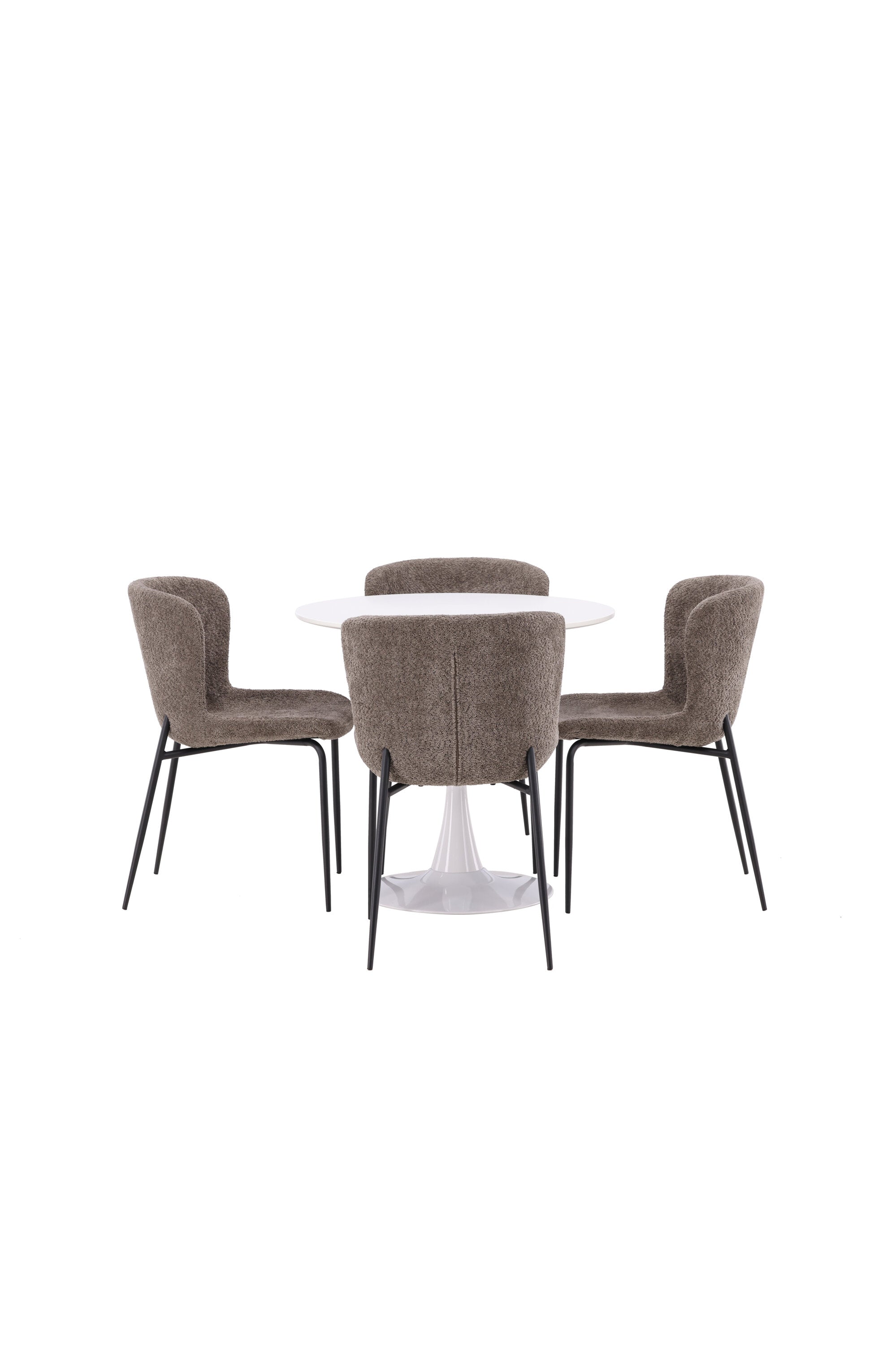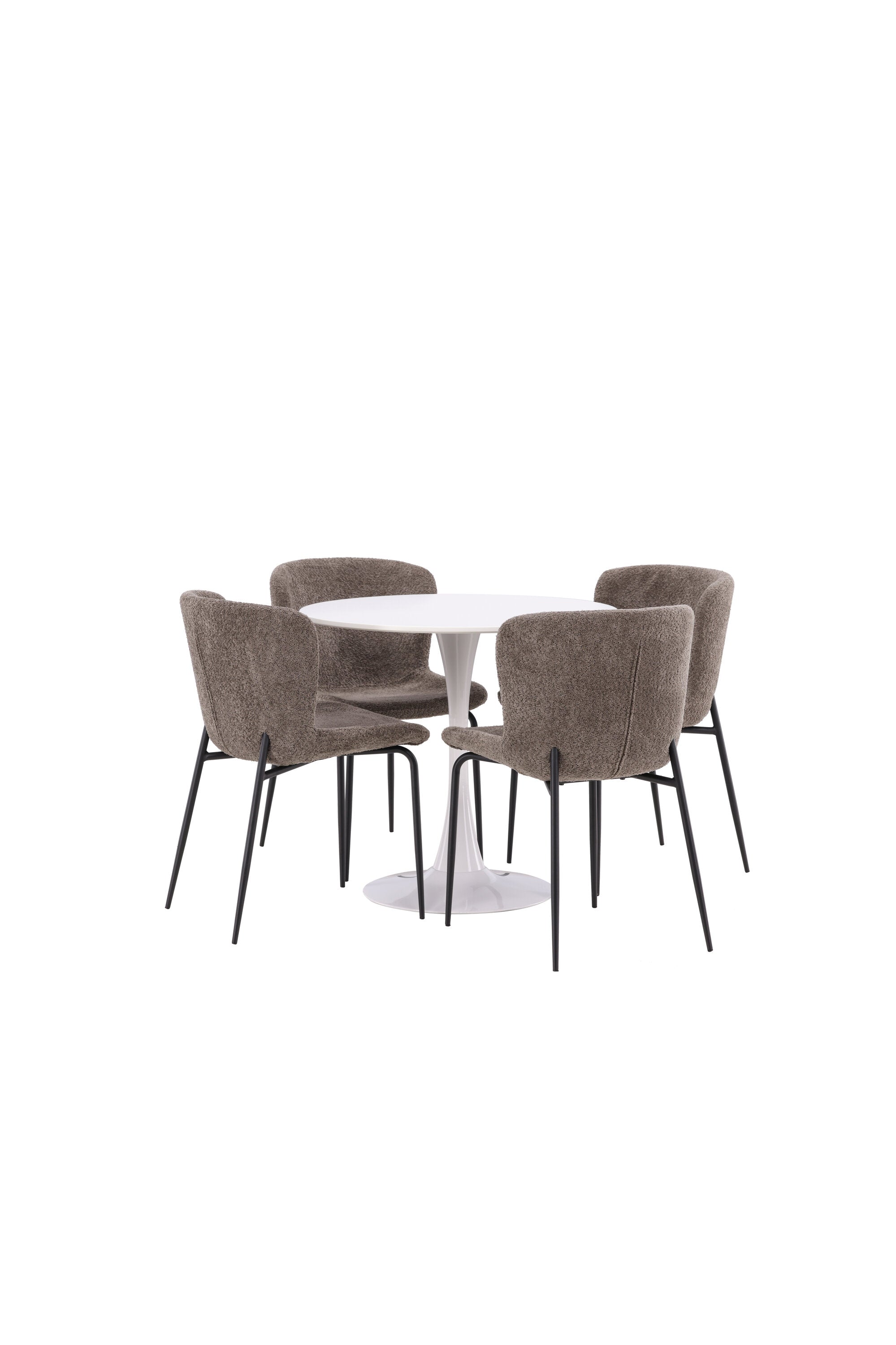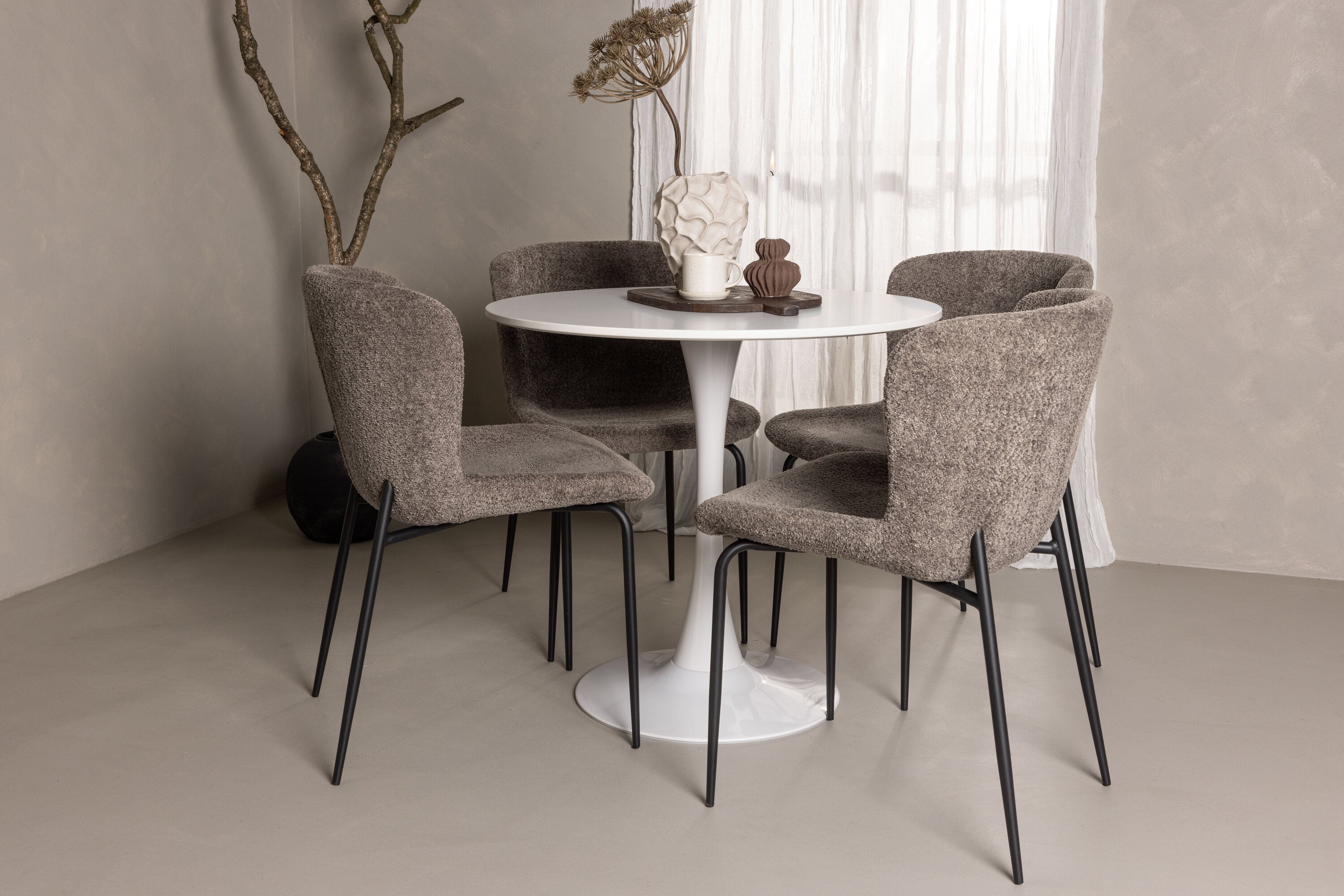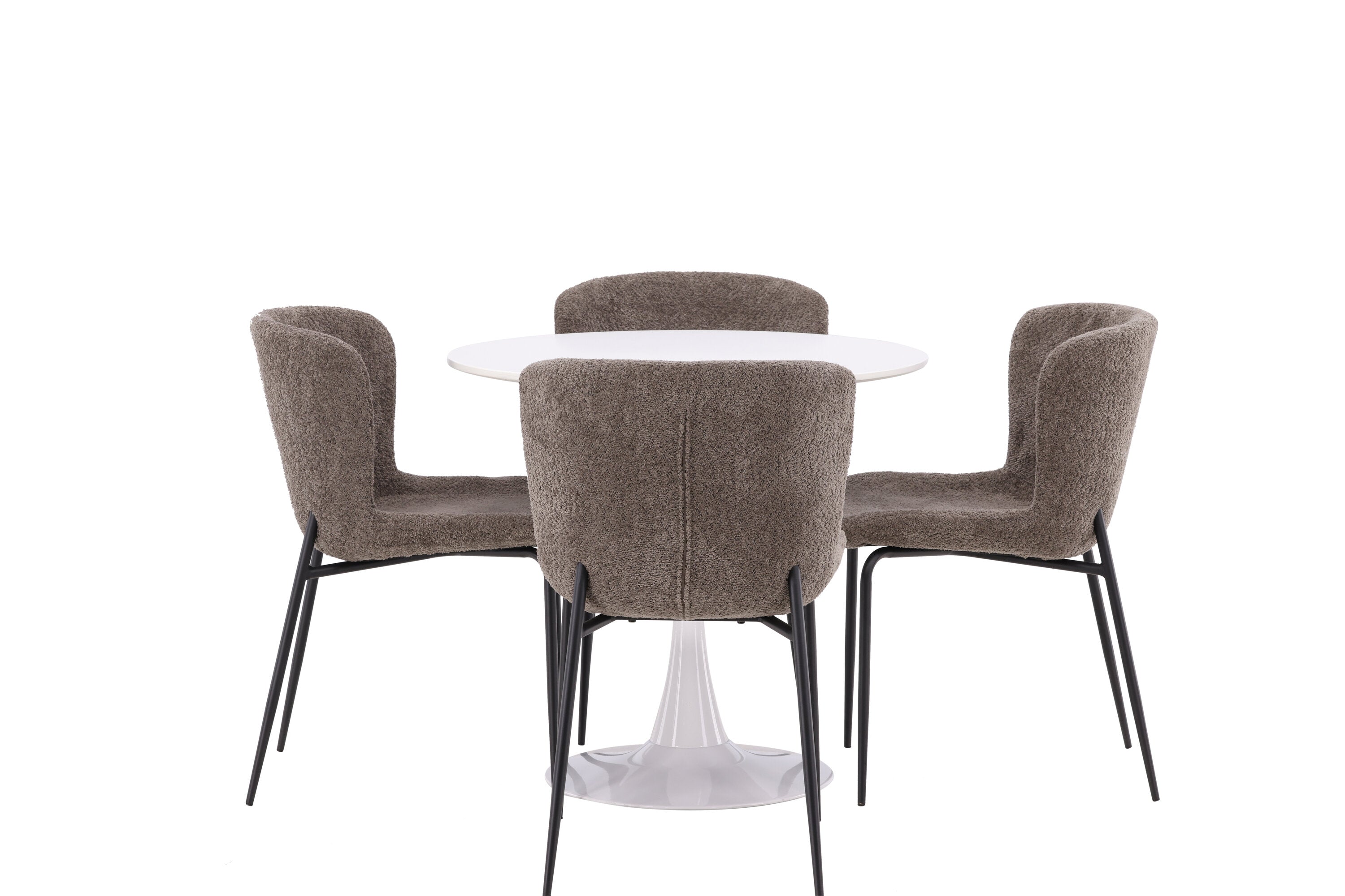 Vytvořte dokonalou atmosféru pro jídlo a setkání s naší jídelní sadou, která je skutečným klenotem. Stůl Hamden stojící ve výšce 75 cm a průměru 80 cm dodá vašemu prostoru punc elegance. Čistá bílá barva dodává pocit prostornosti a svěžesti.