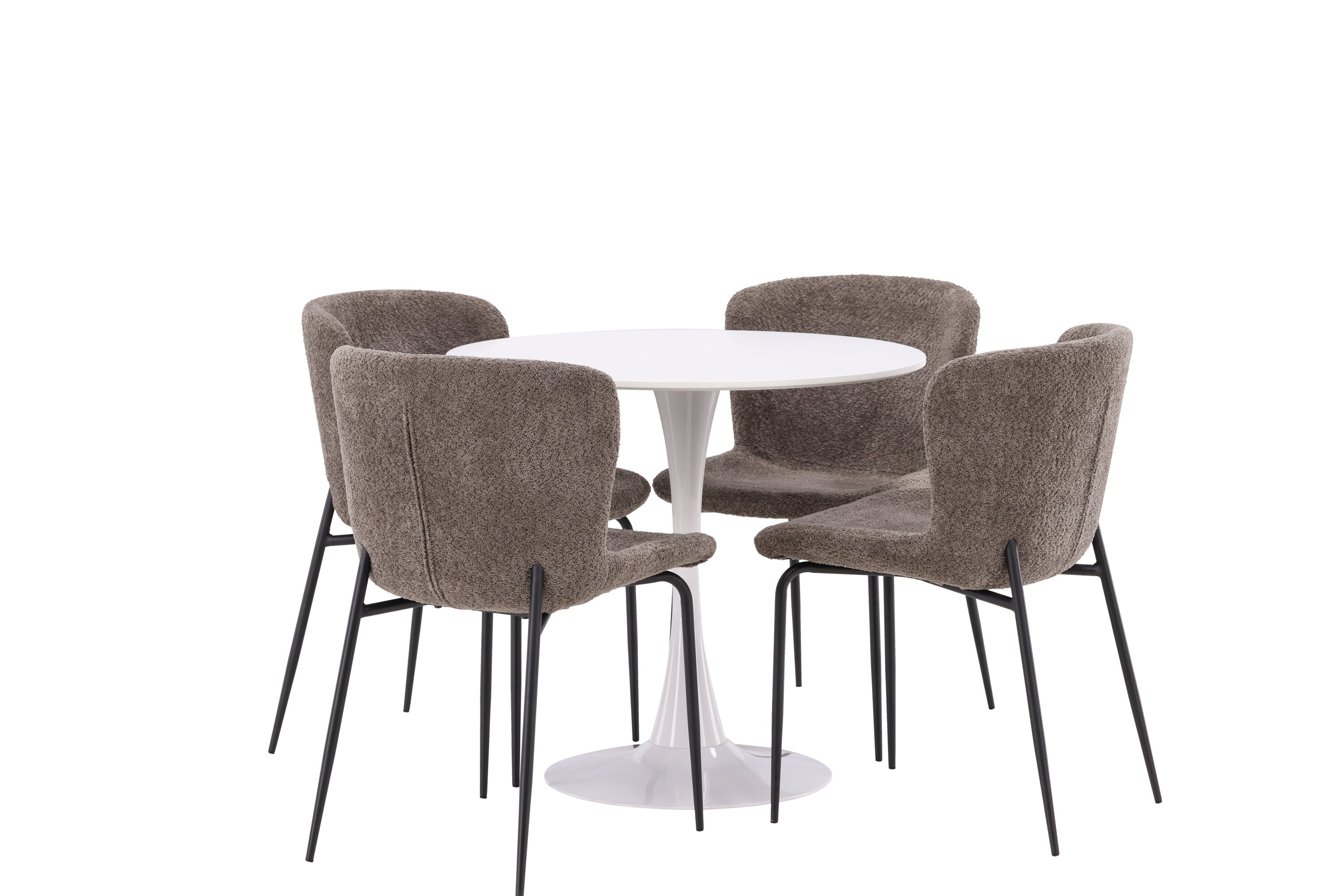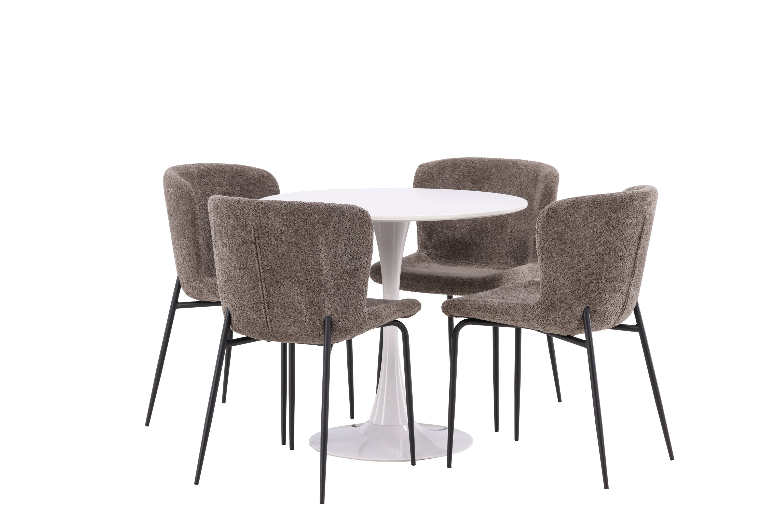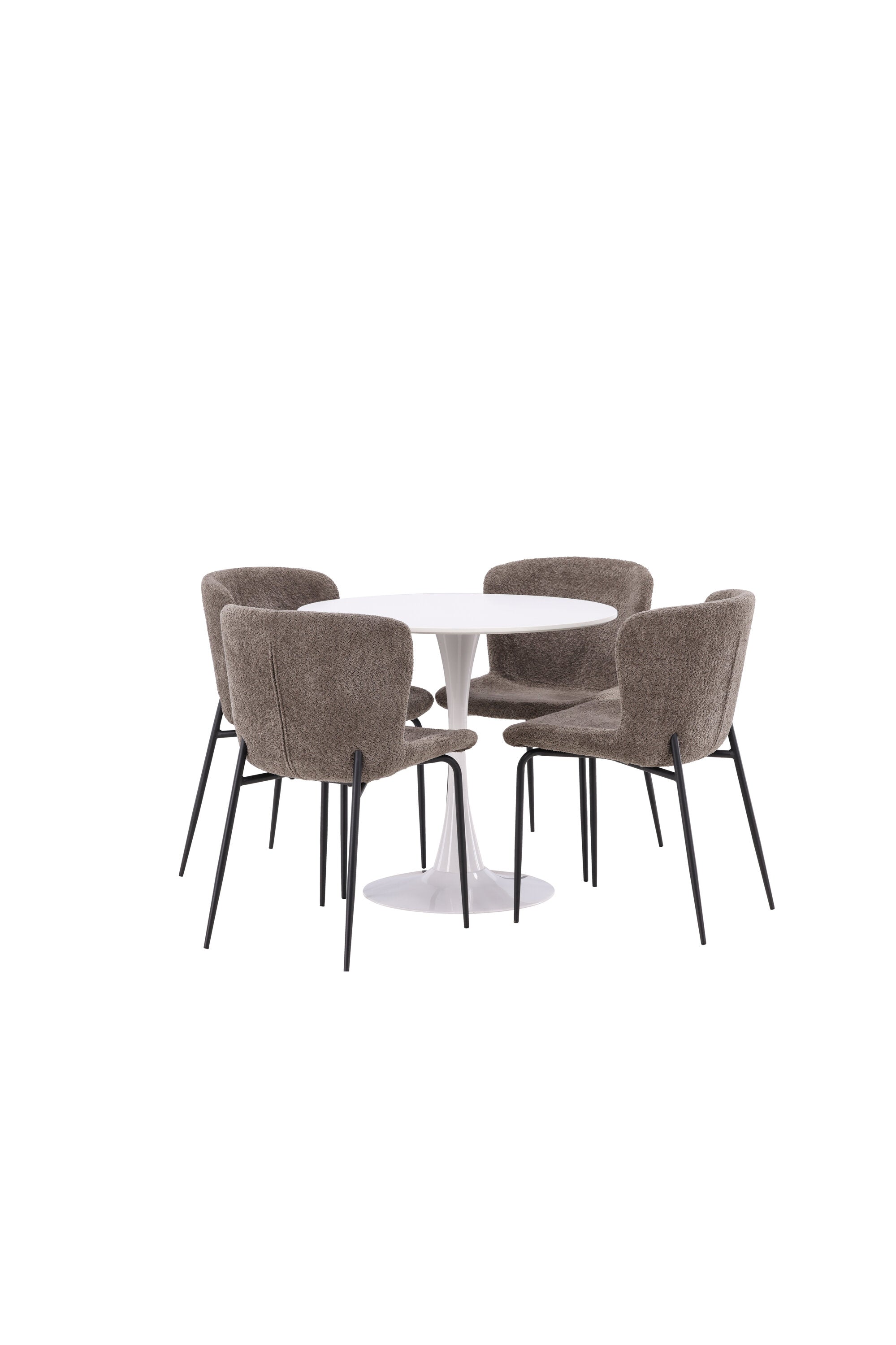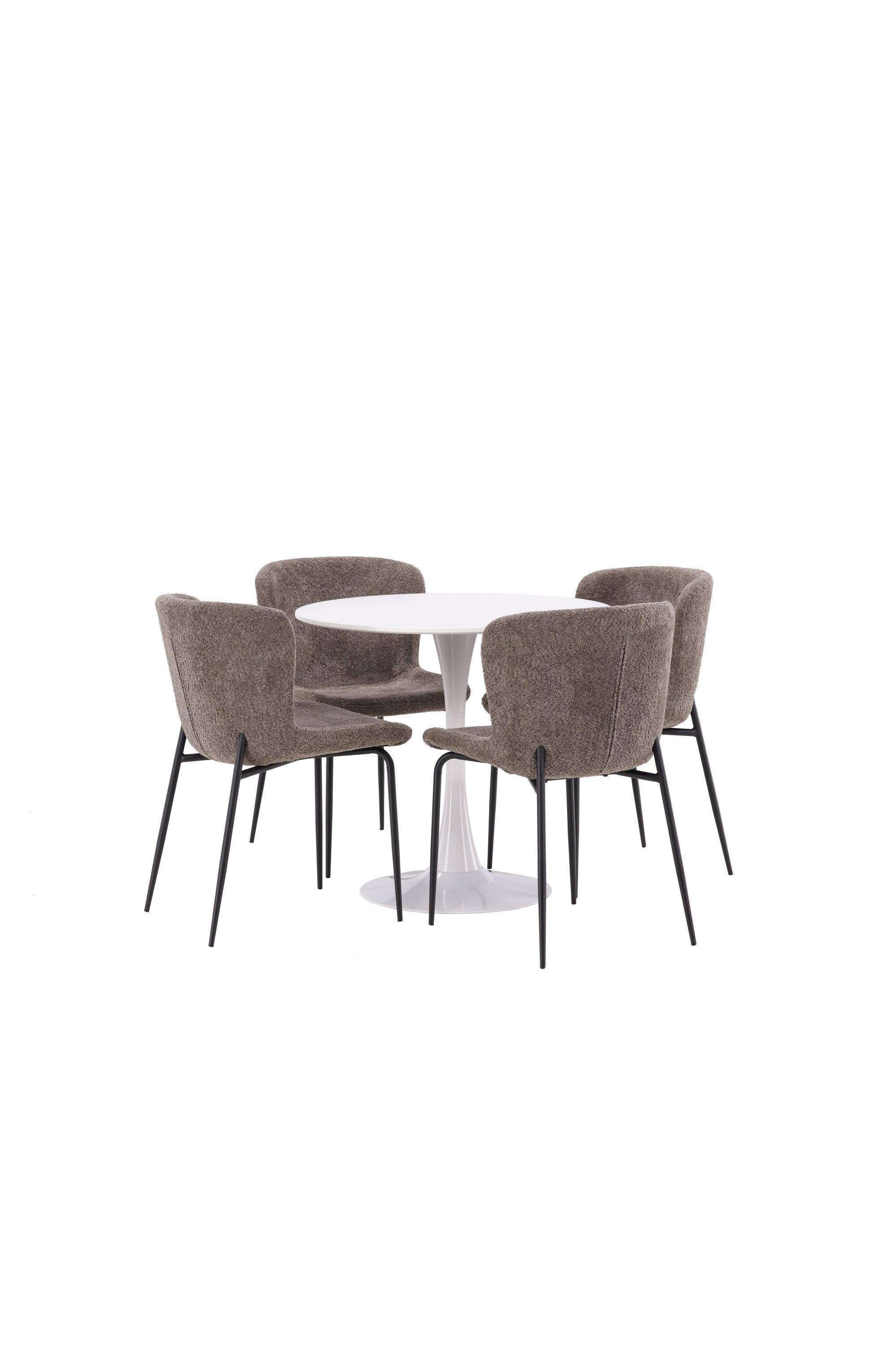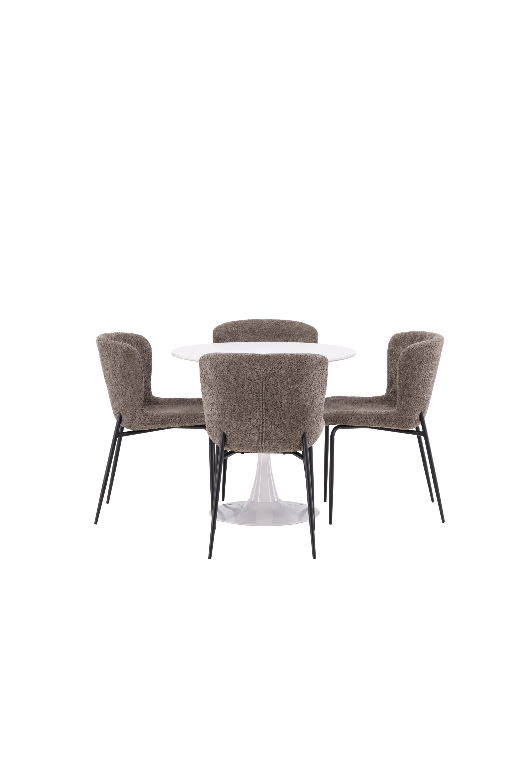 Vytvořte dokonalou atmosféru pro jídlo a setkání s naší jídelní sadou, která je skutečným klenotem. Stůl Hamden stojící ve výšce 75 cm a průměru 80 cm dodá vašemu prostoru punc elegance. Čistá bílá barva dodává pocit prostornosti a svěžesti.
