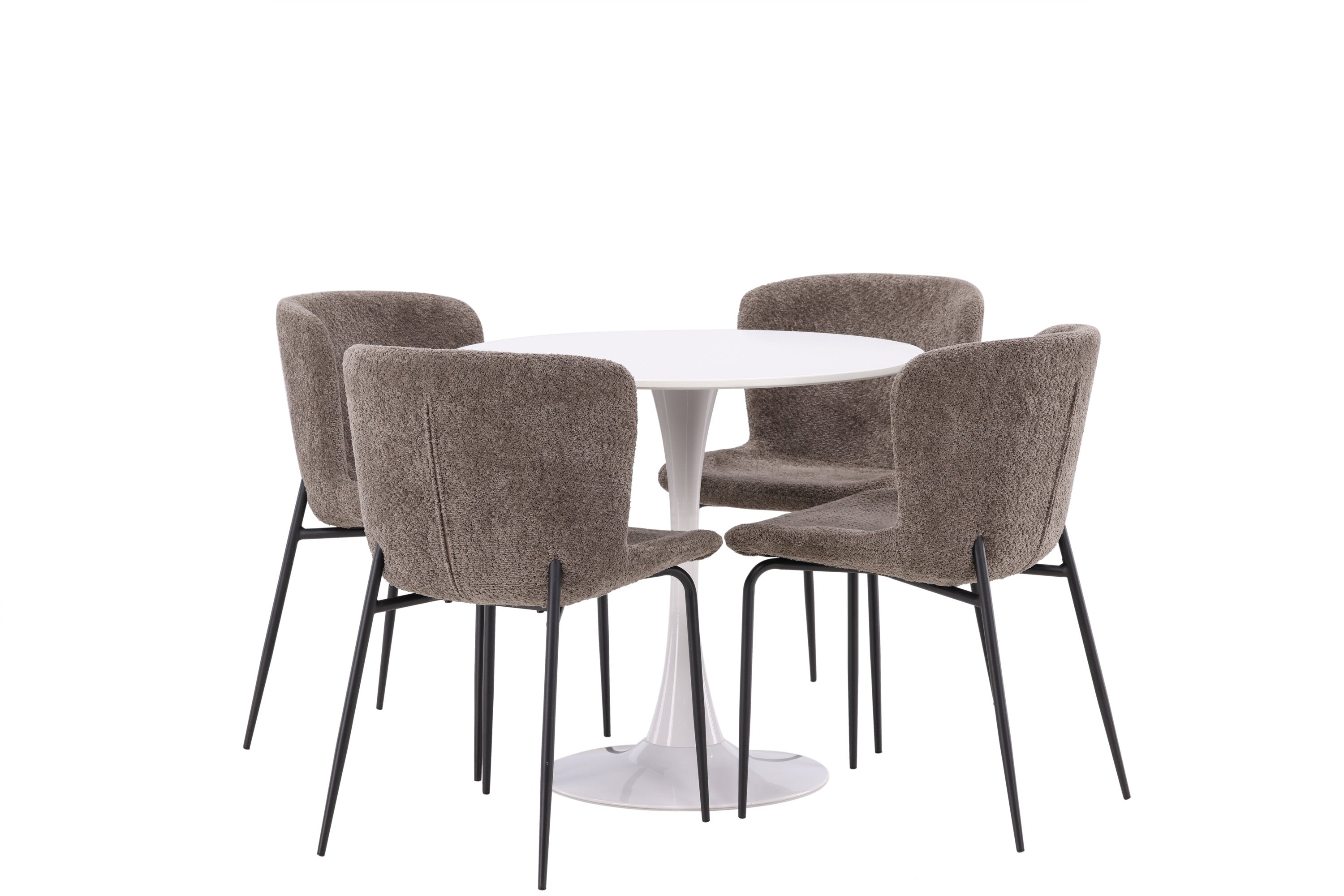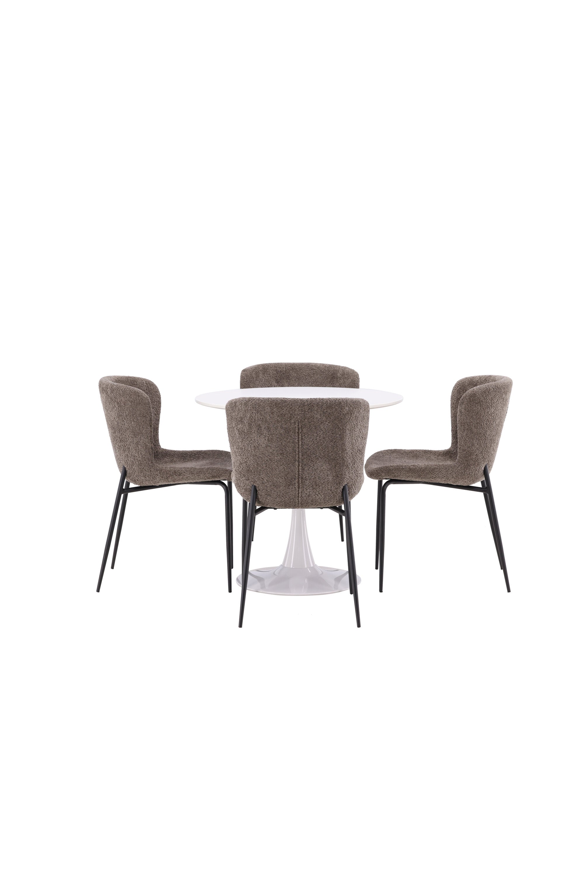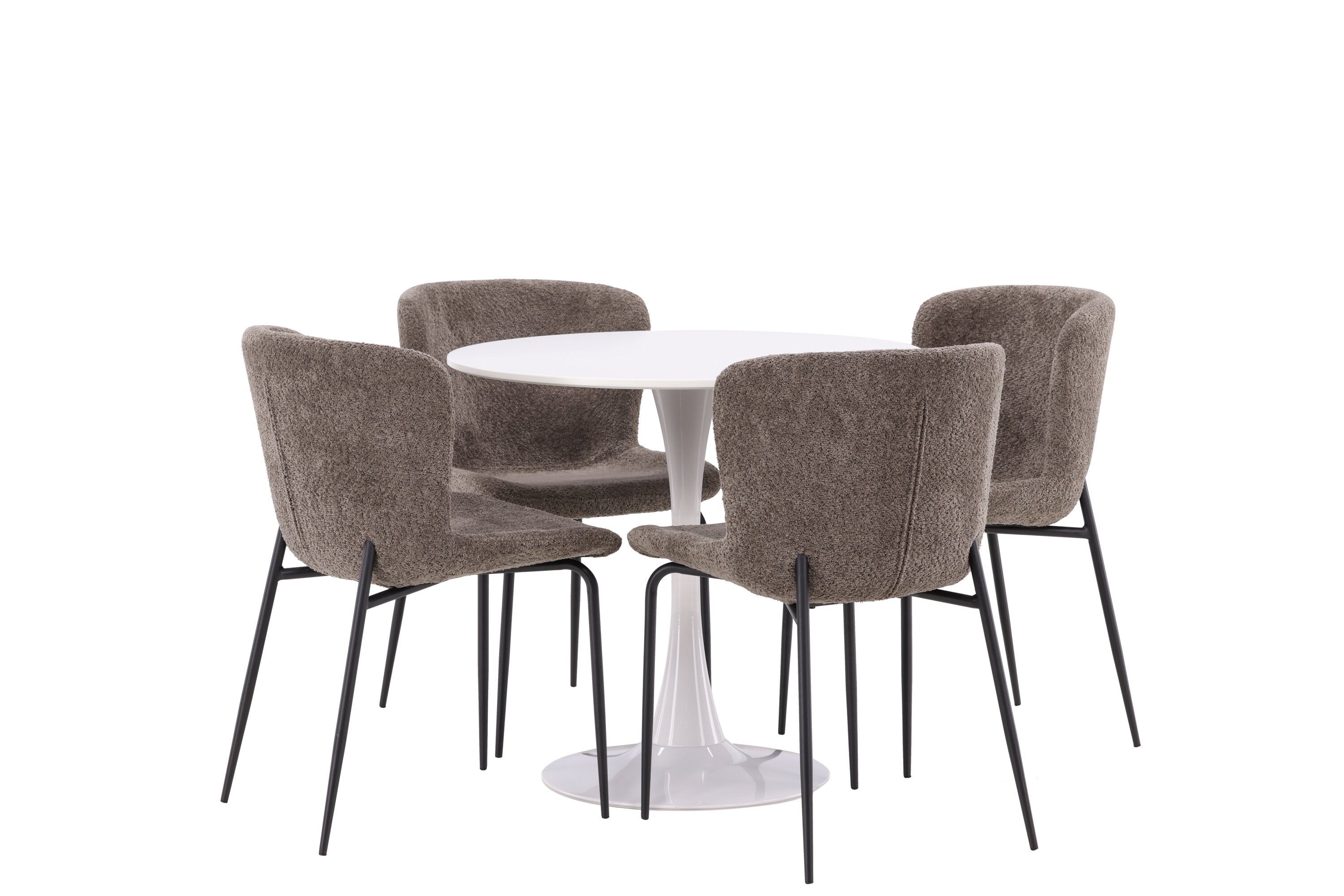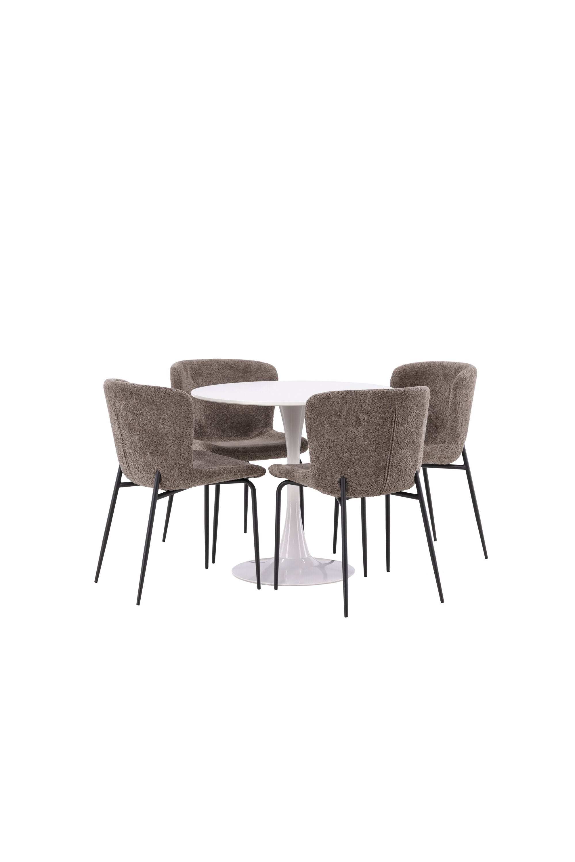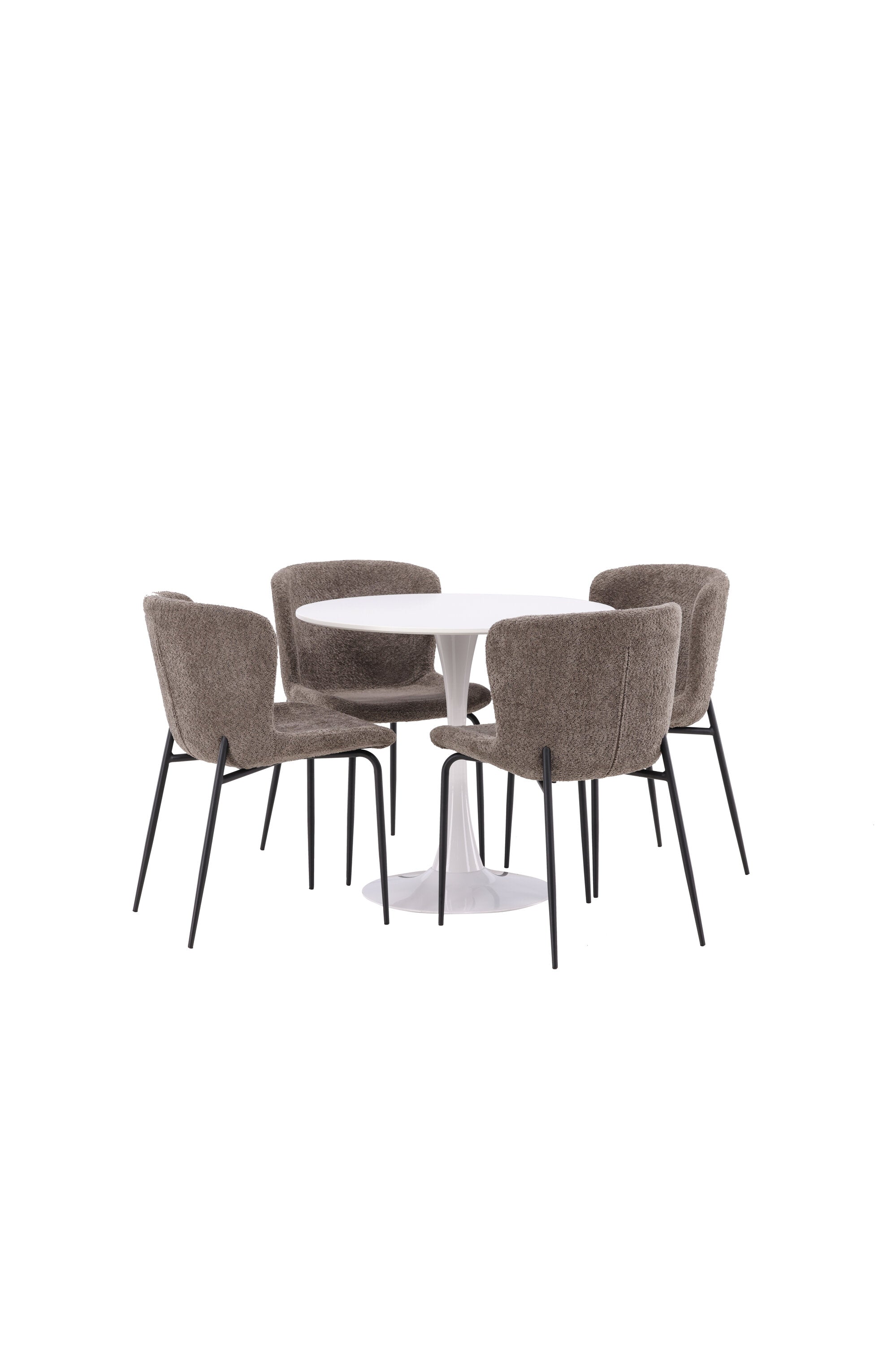 Vytvořte dokonalou atmosféru pro jídlo a setkání s naší jídelní sadou, která je skutečným klenotem. Stůl Hamden stojící ve výšce 75 cm a průměru 80 cm dodá vašemu prostoru punc elegance. Čistá bílá barva dodává pocit prostornosti a svěžesti.