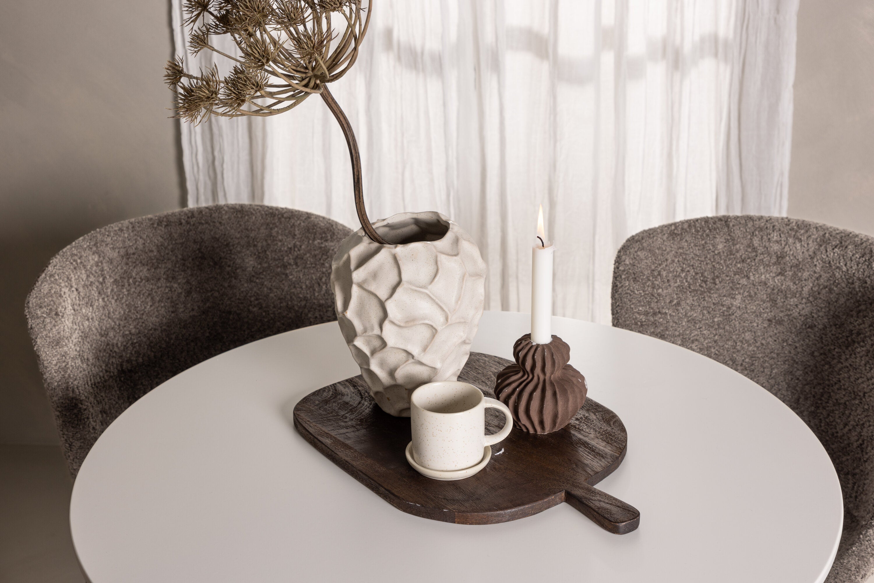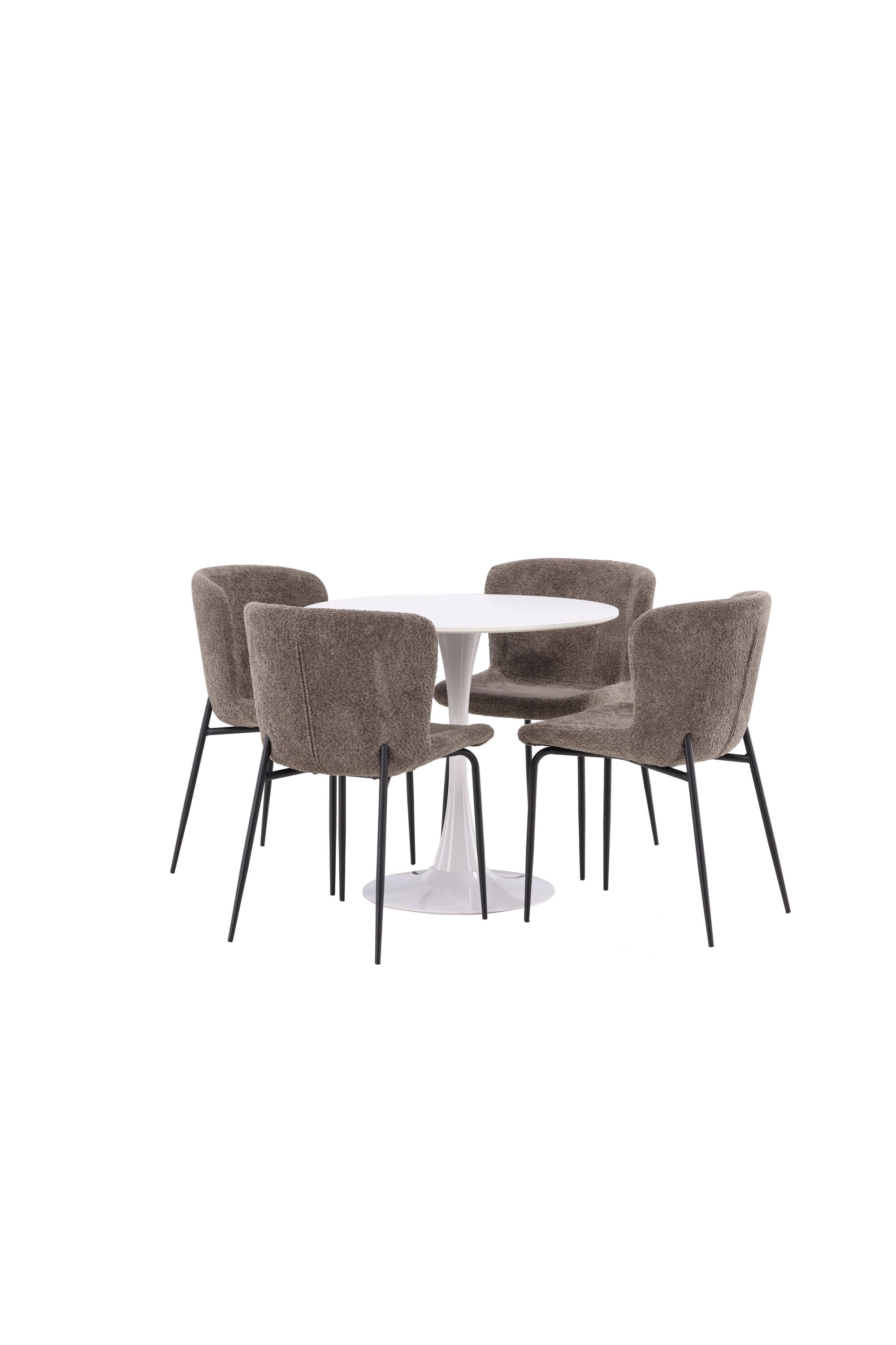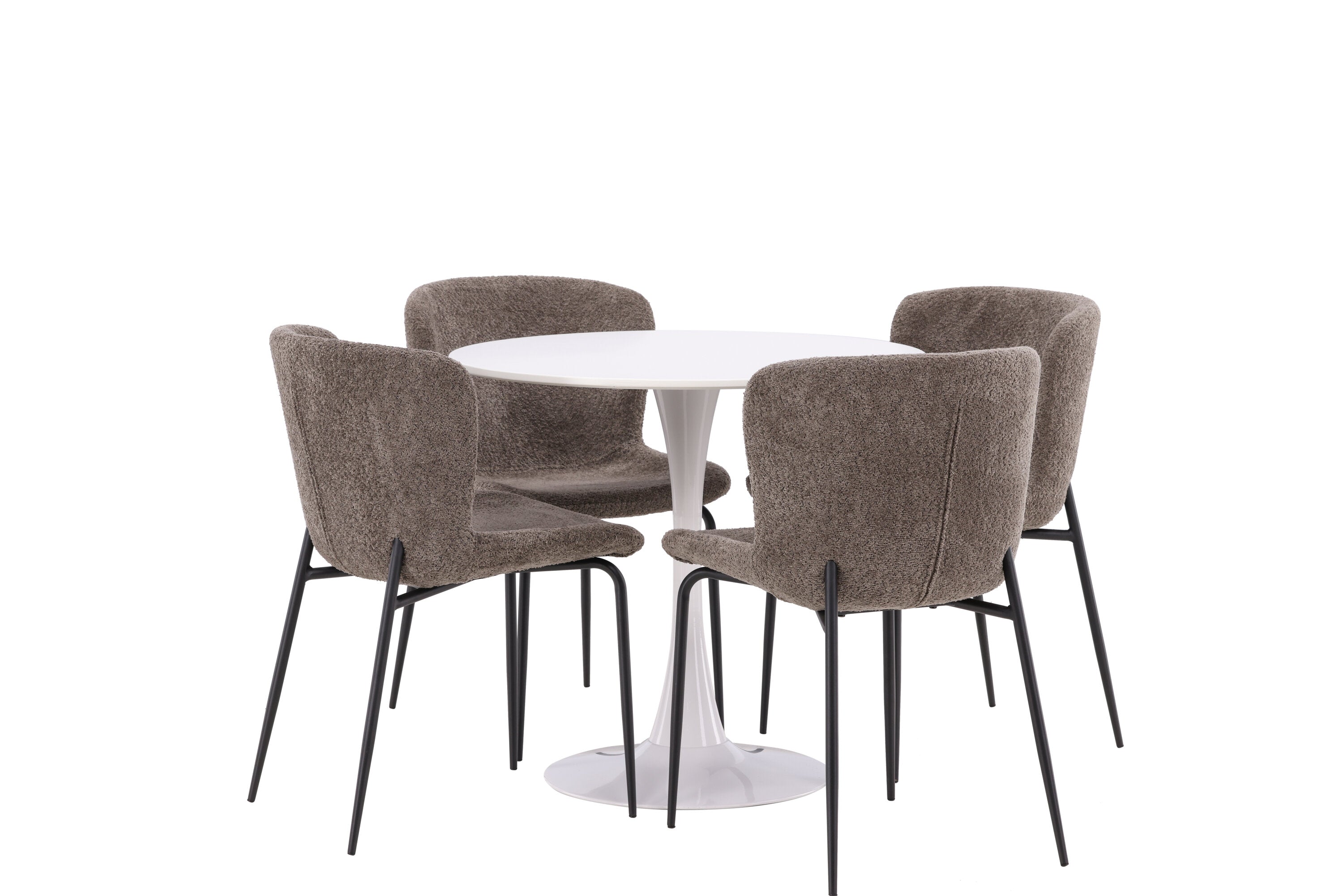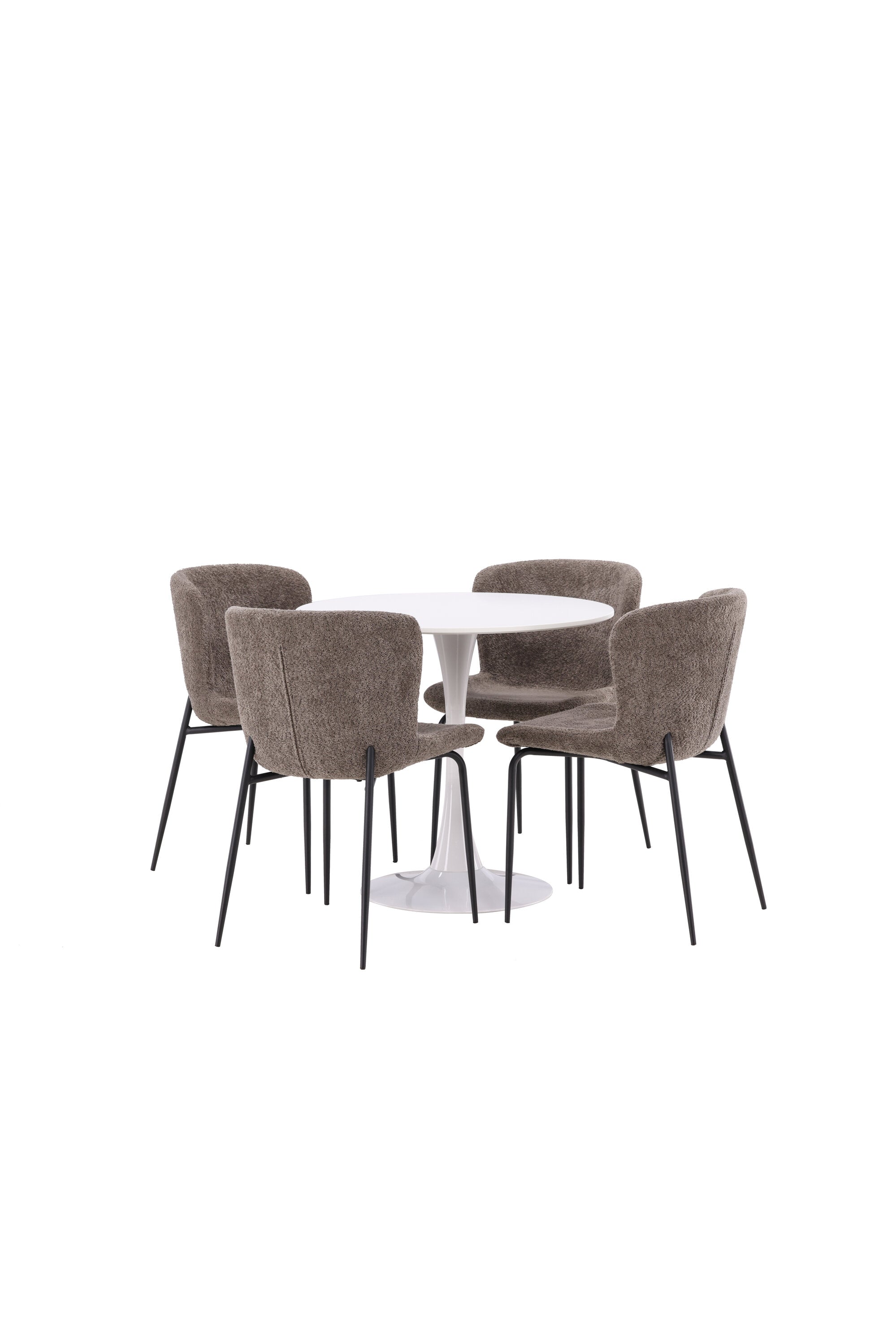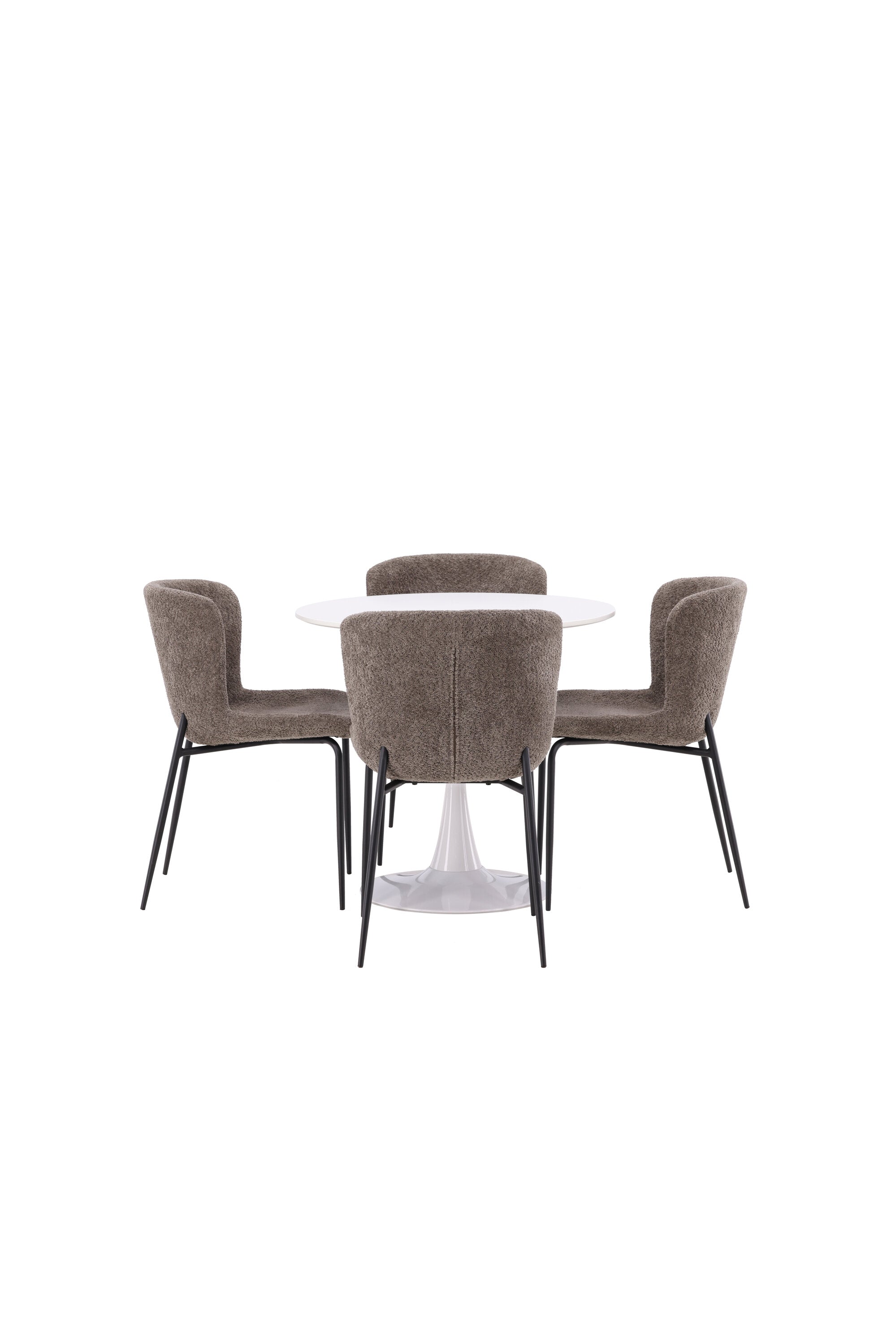 Vytvořte dokonalou atmosféru pro jídlo a setkání s naší jídelní sadou, která je skutečným klenotem. Stůl Hamden stojící ve výšce 75 cm a průměru 80 cm dodá vašemu prostoru punc elegance. Čistá bílá barva dodává pocit prostornosti a svěžesti.