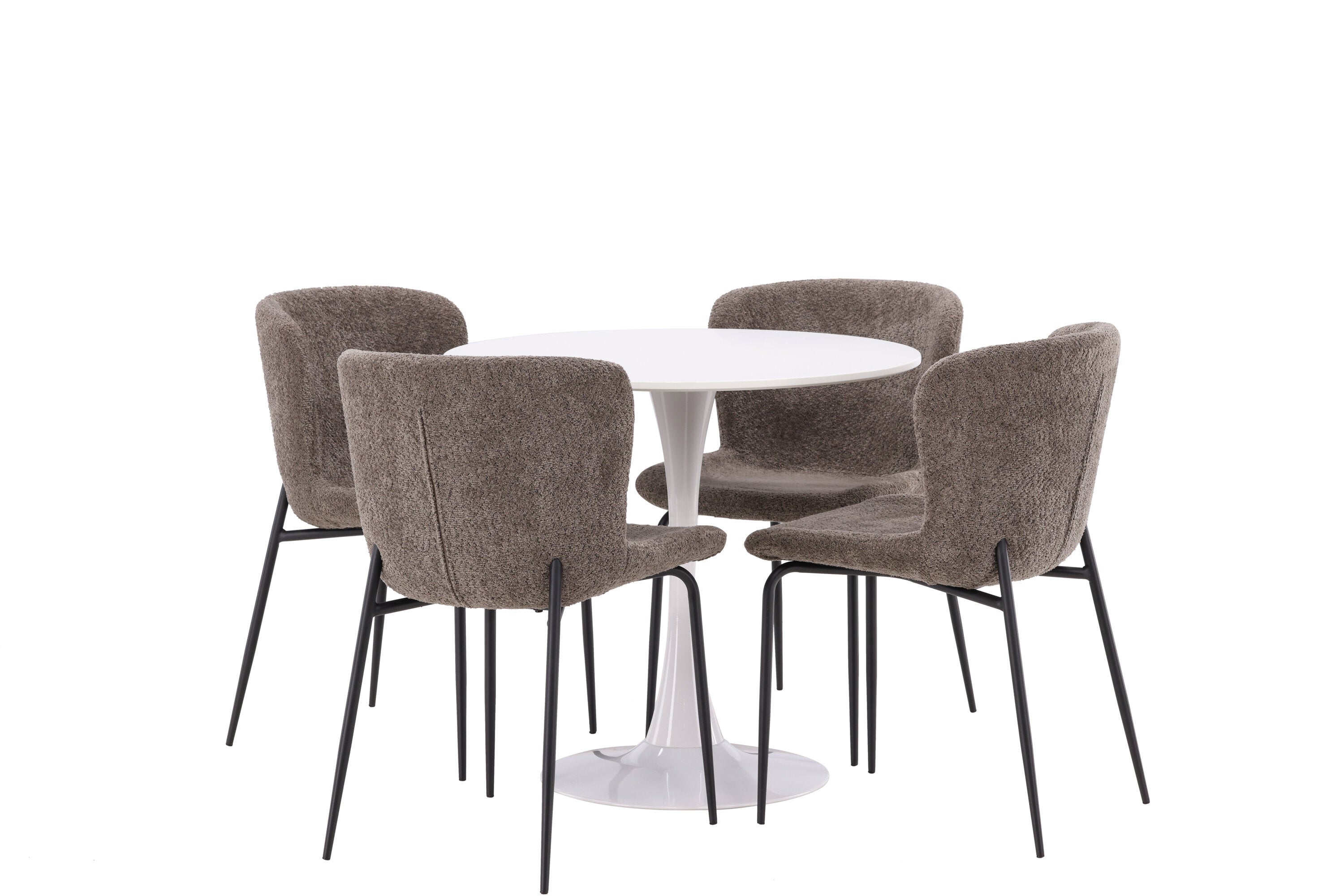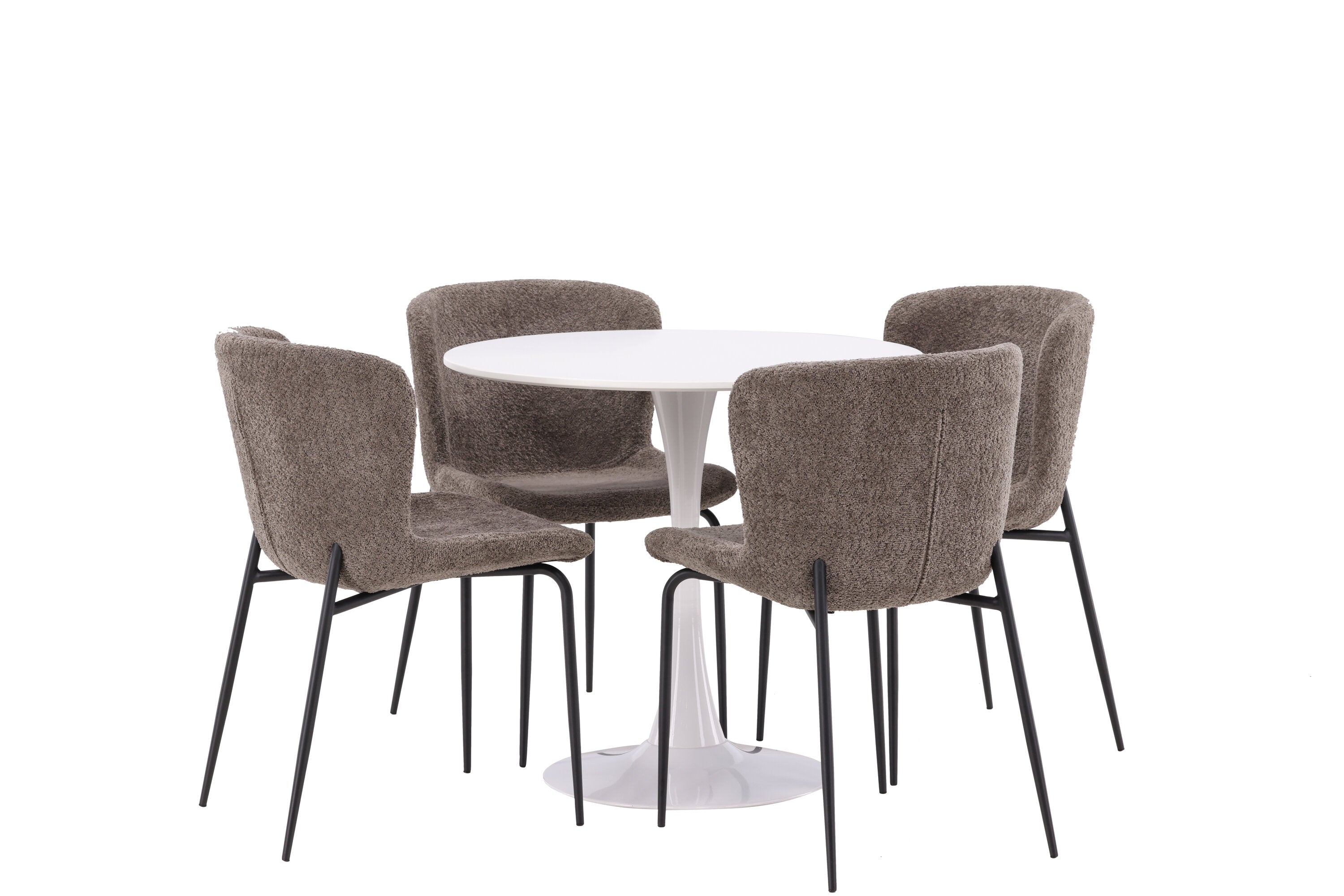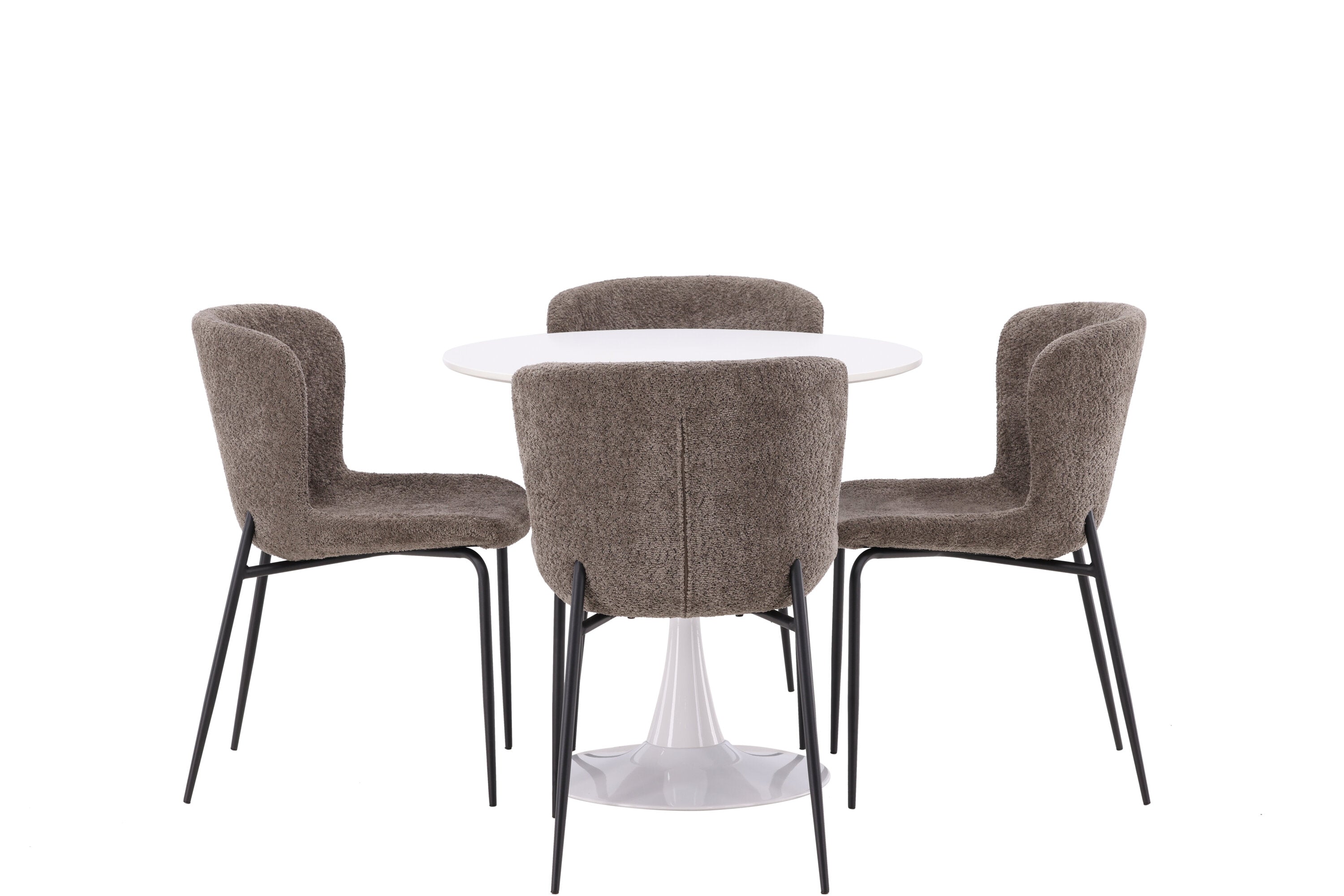 Jídelní stůl Hamden – bílá MDF+jídelní židle Modesto – šedá / kouřová černá Boucle_4