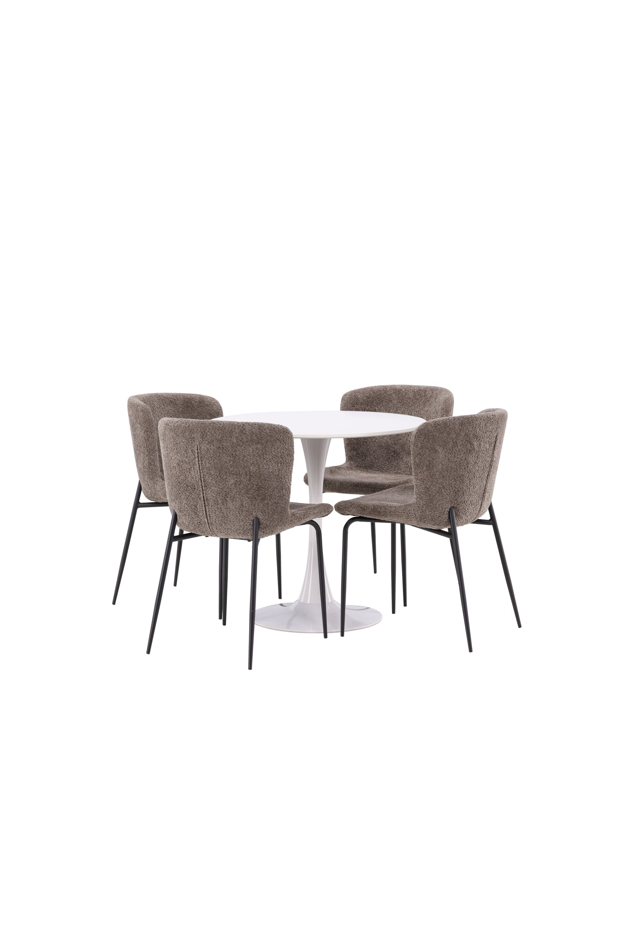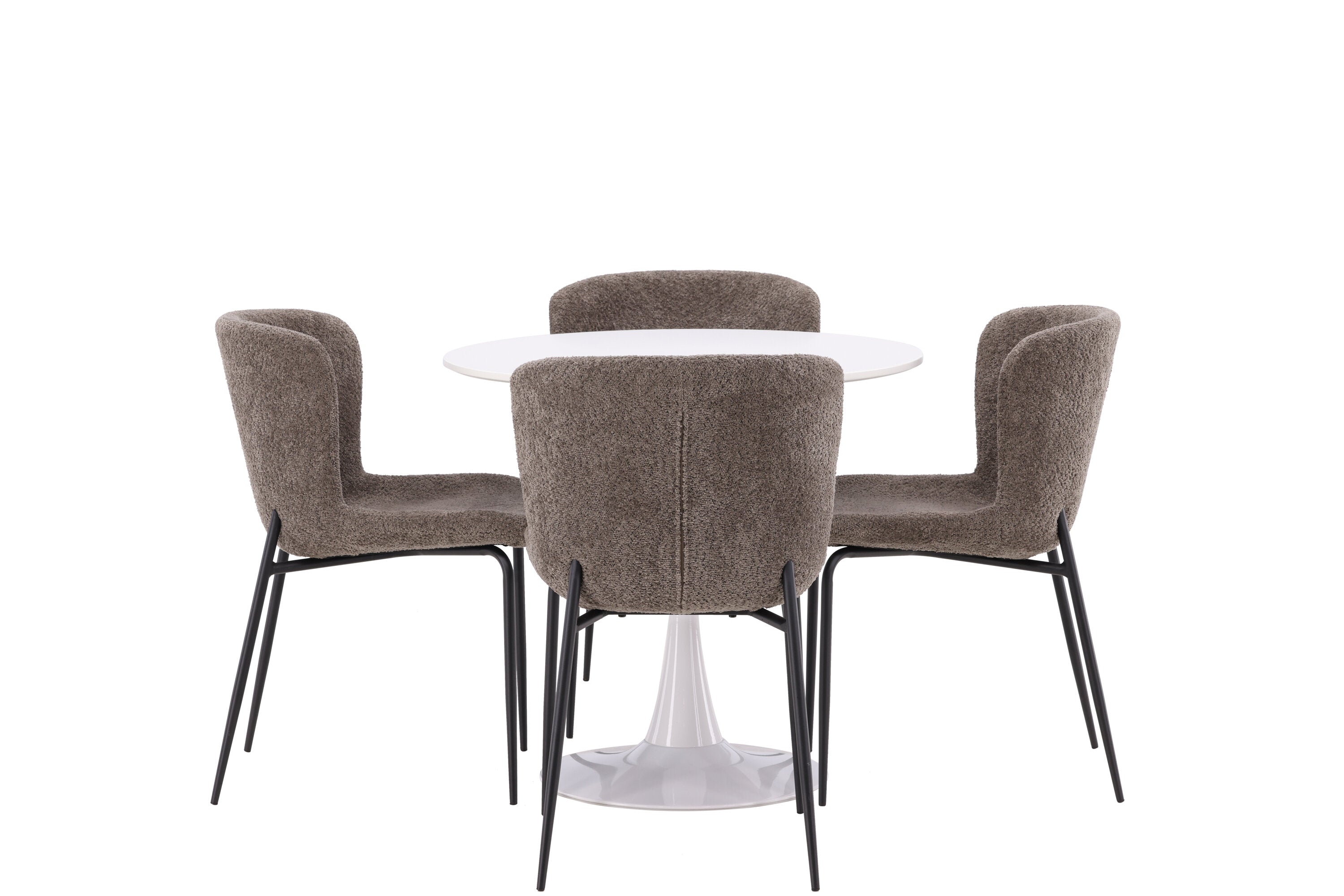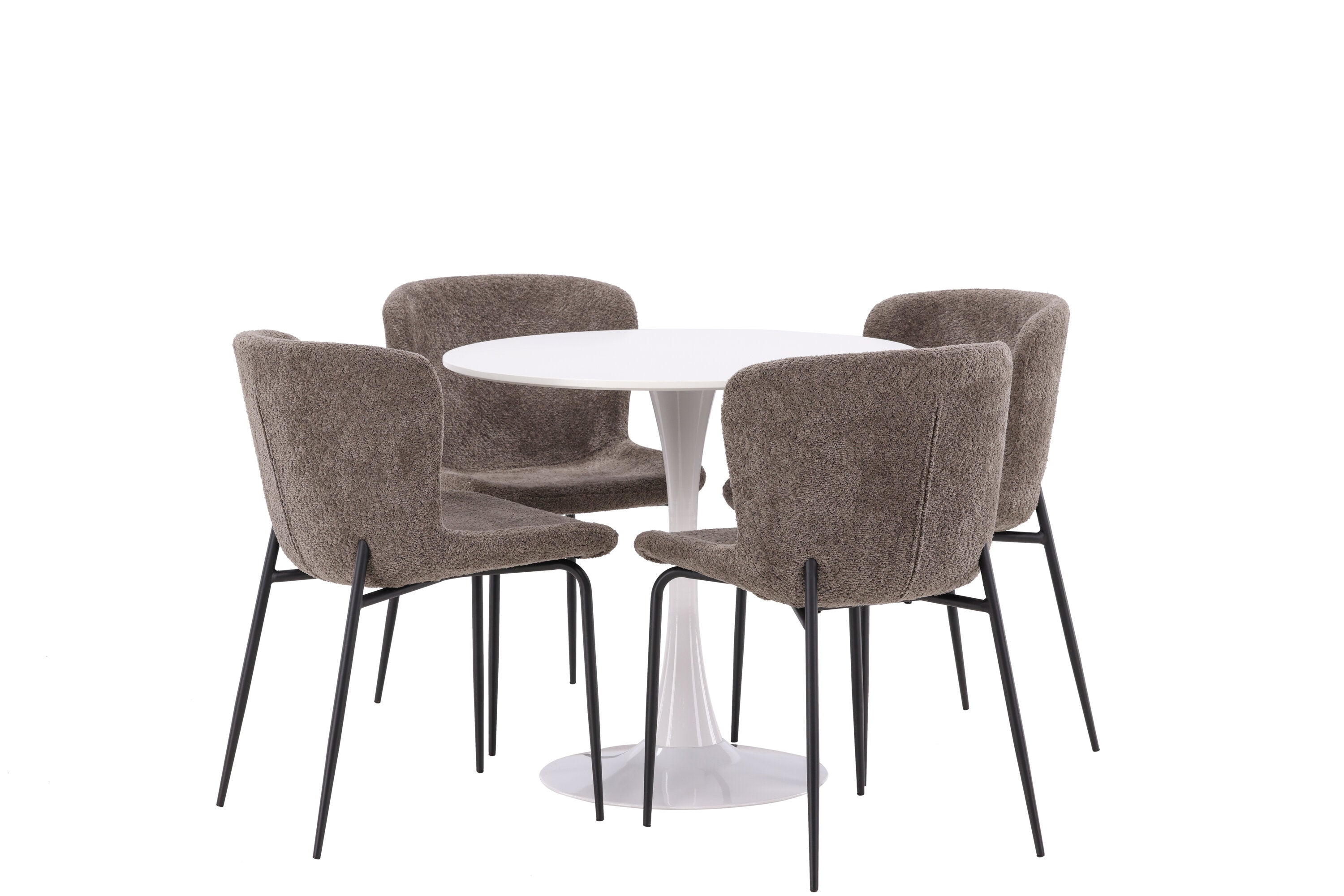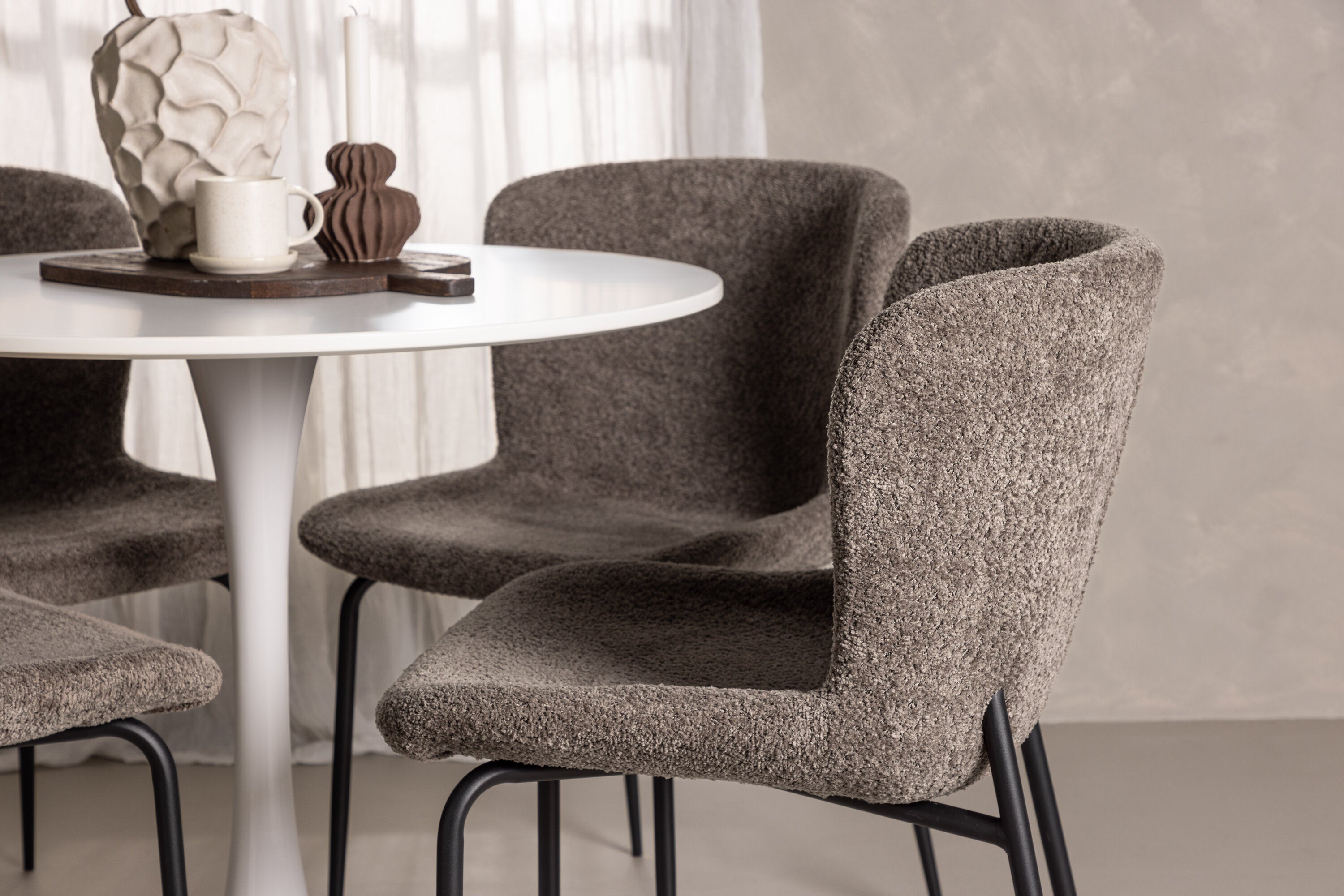 Jídelní stůl Hamden – bílá MDF+jídelní židle Modesto – šedá / kouřová černá Boucle_4