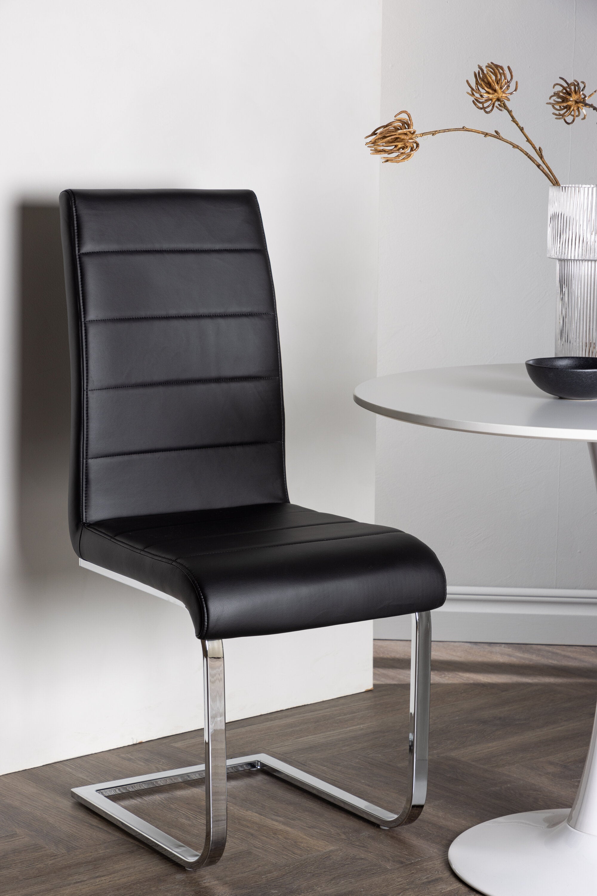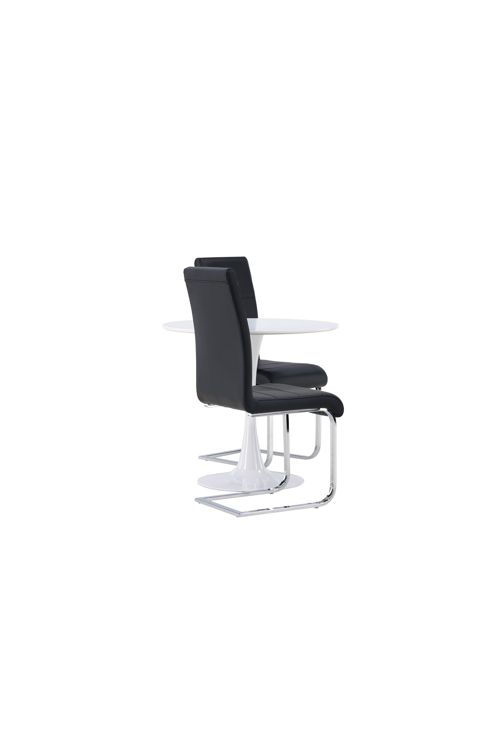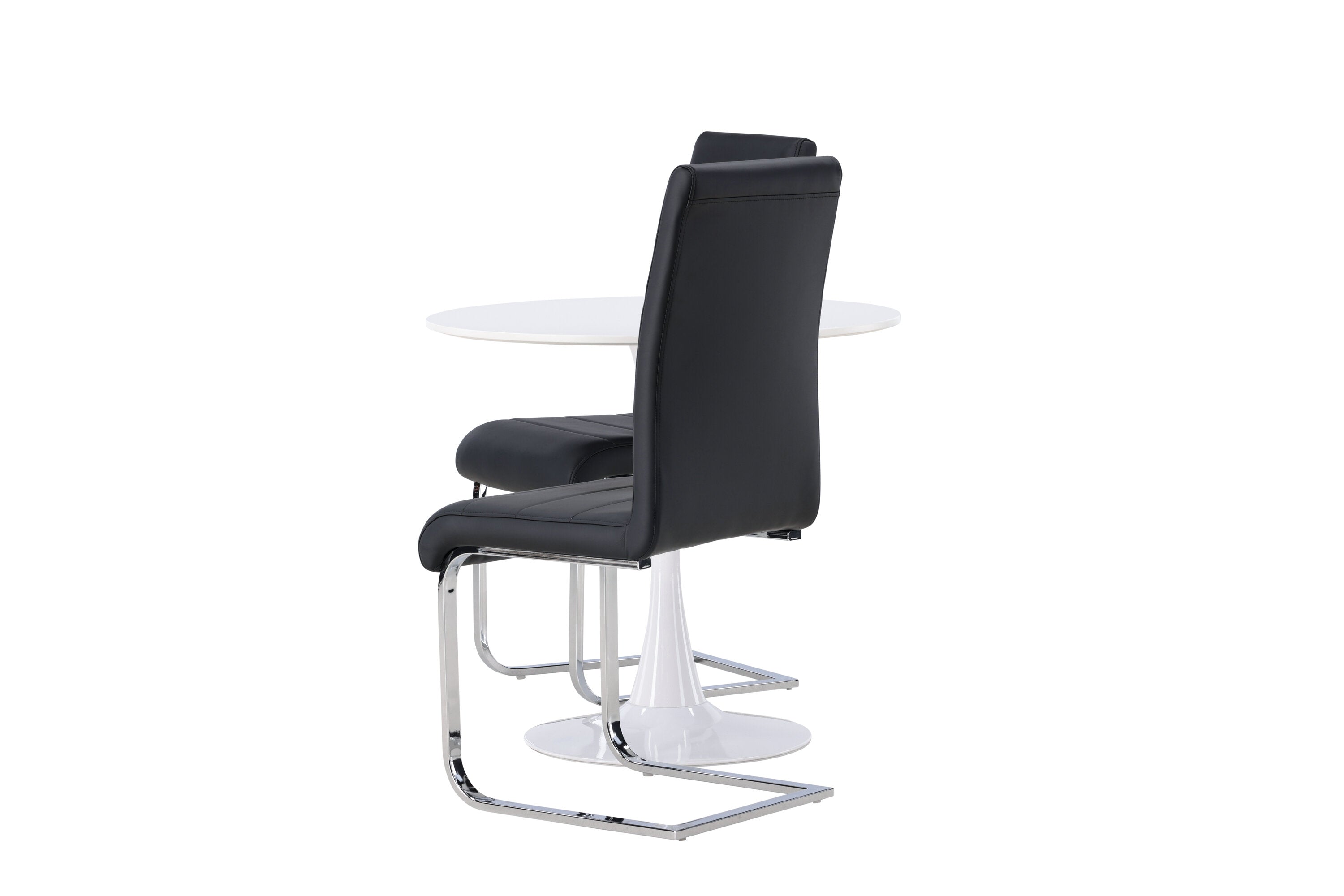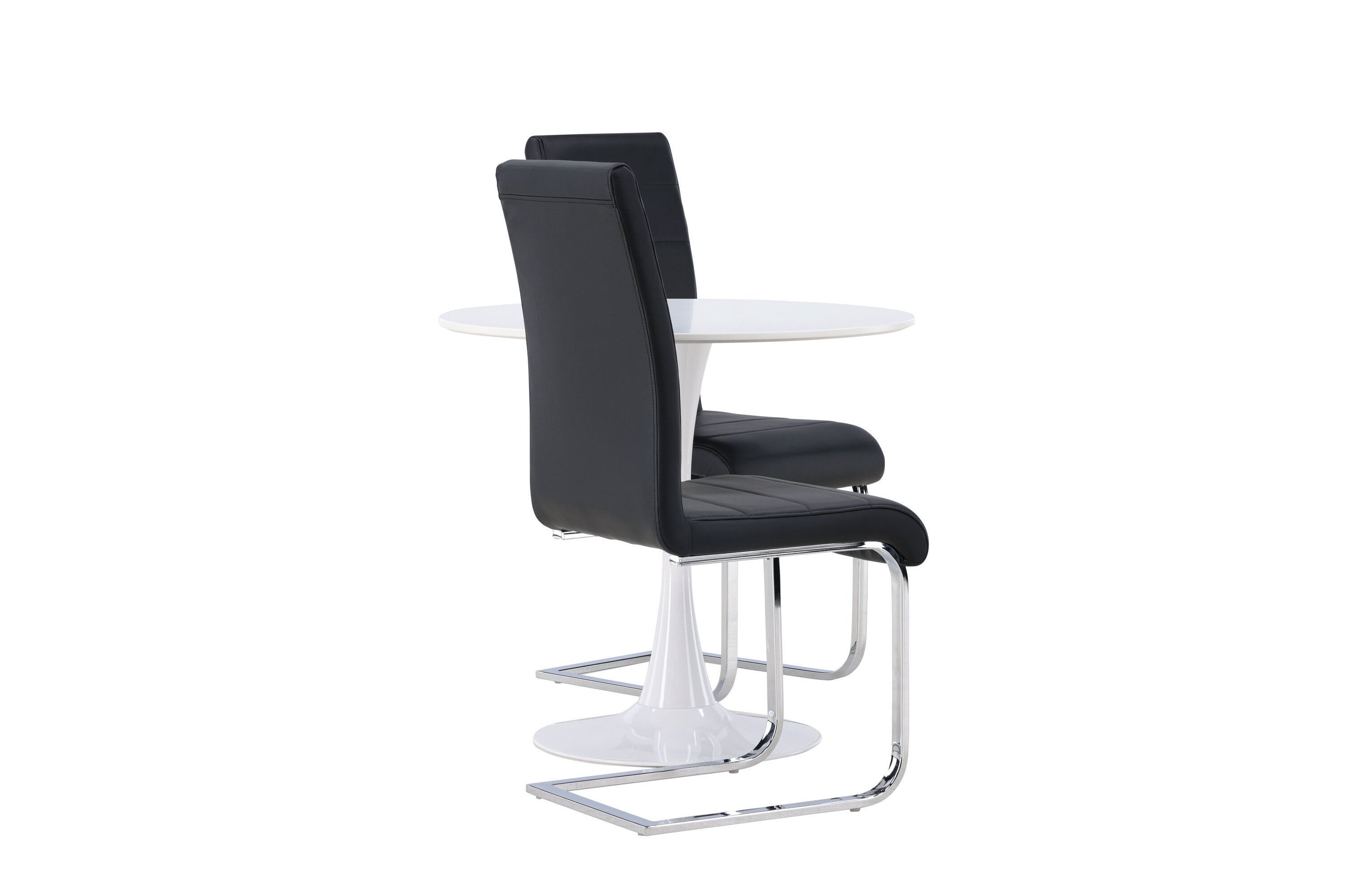 Jídelní stůl Hamden - Bílá MDF + Jídelní židle Tempo - Pochromovaná noha / Černá PU _2