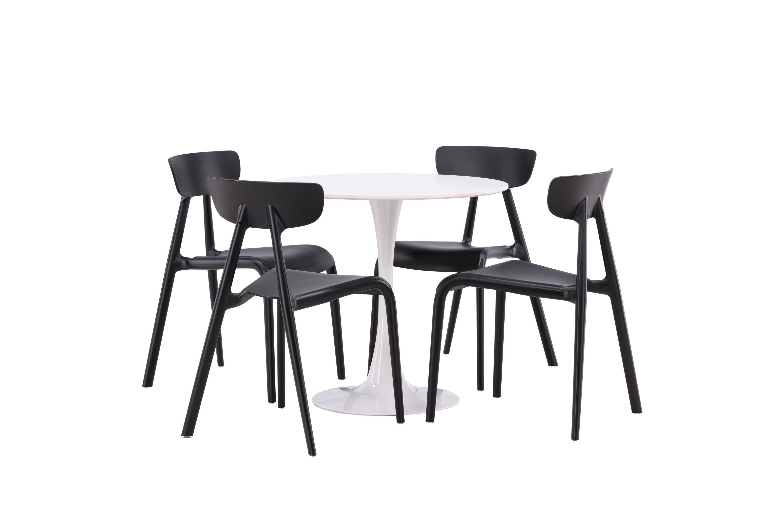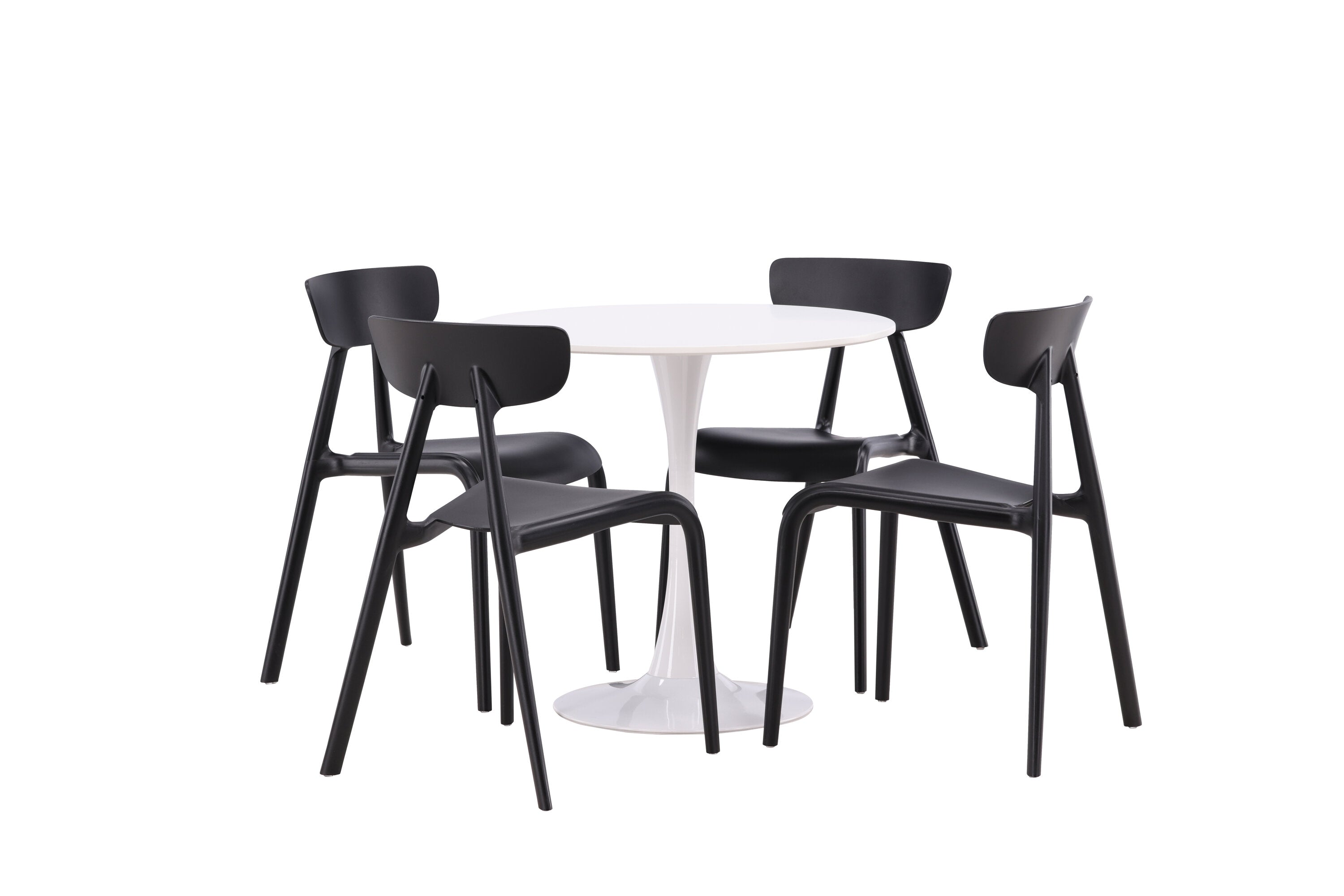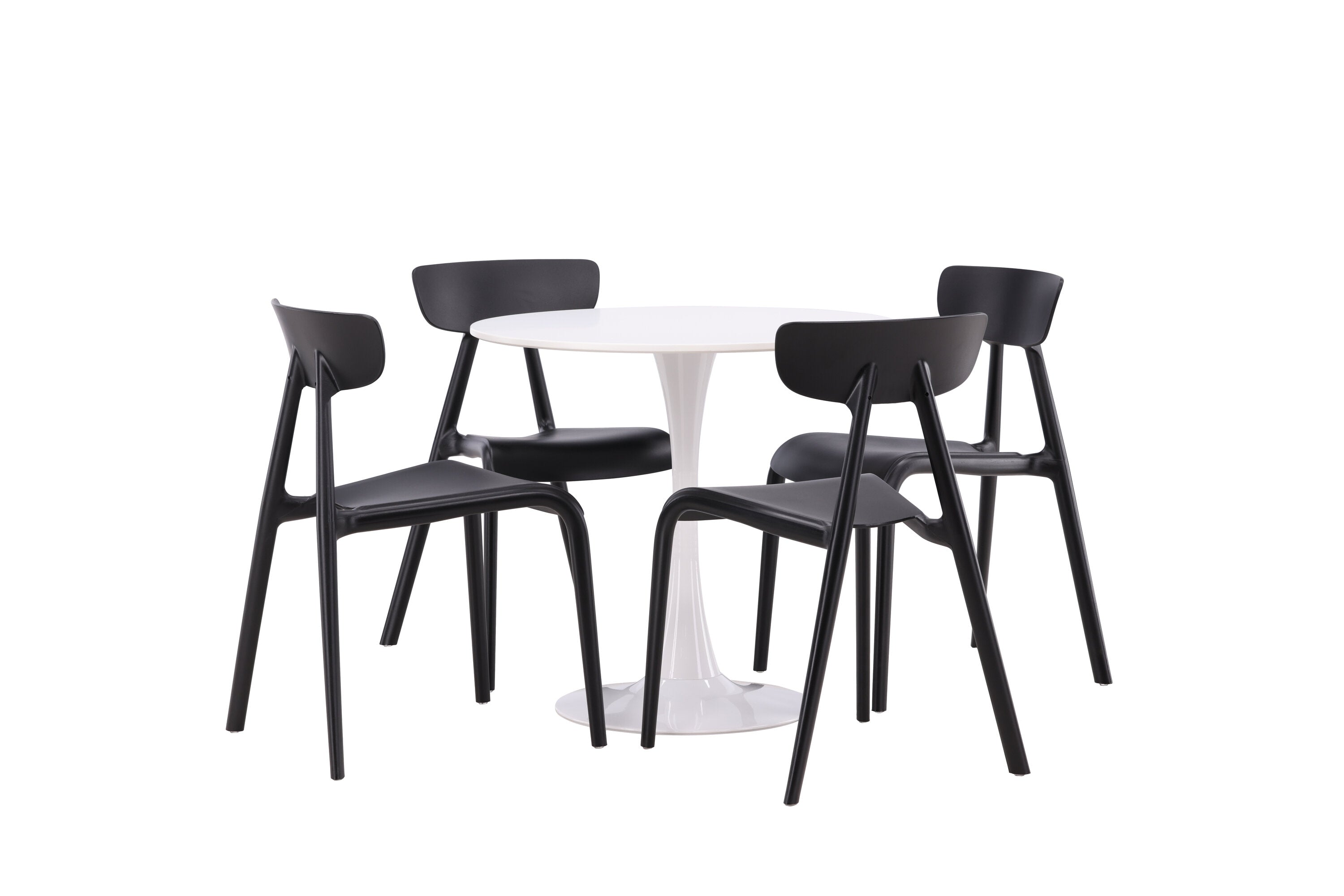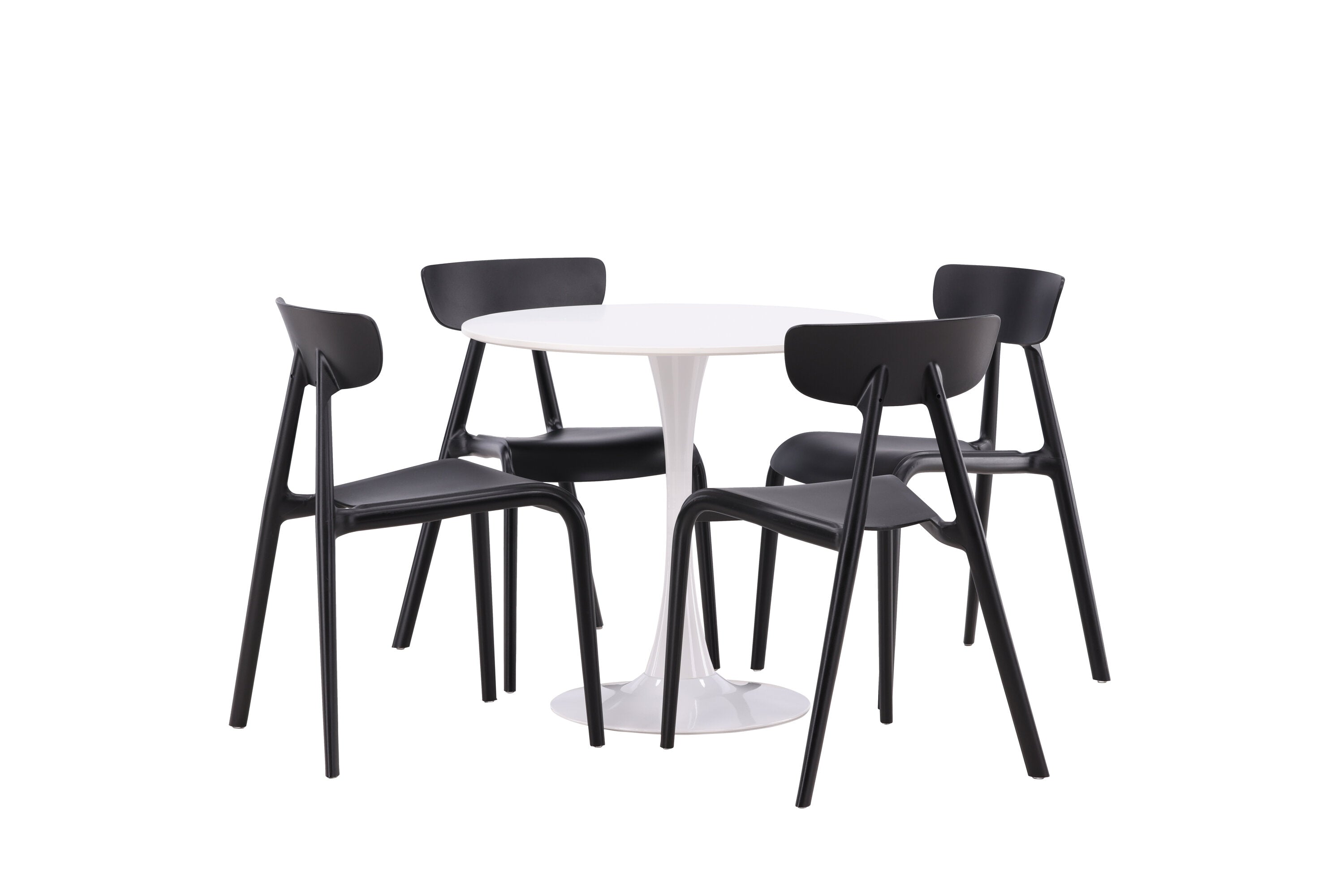 Jídelní stůl Hamden - Bílá MDF+Ursholmen Jídelní židle - Černá Polypropylen_4