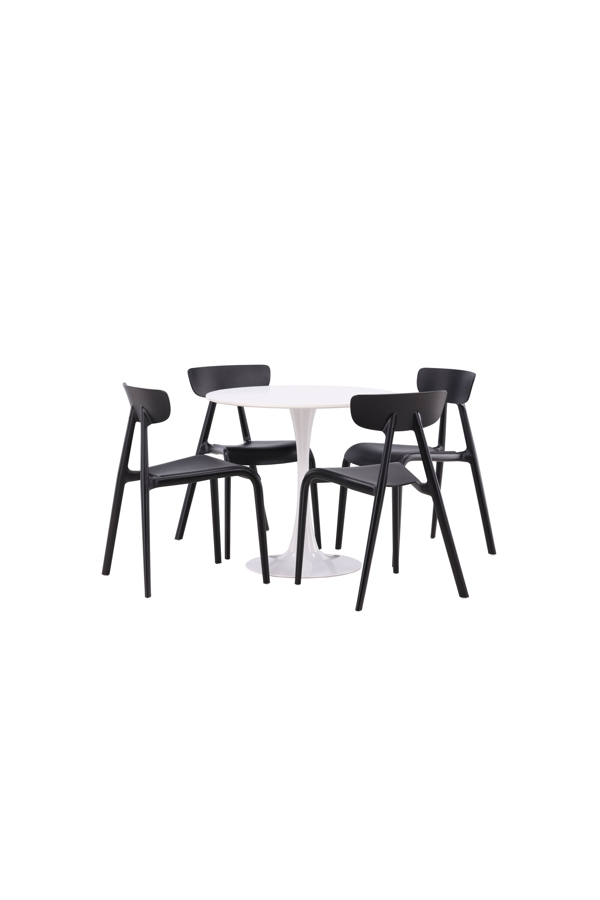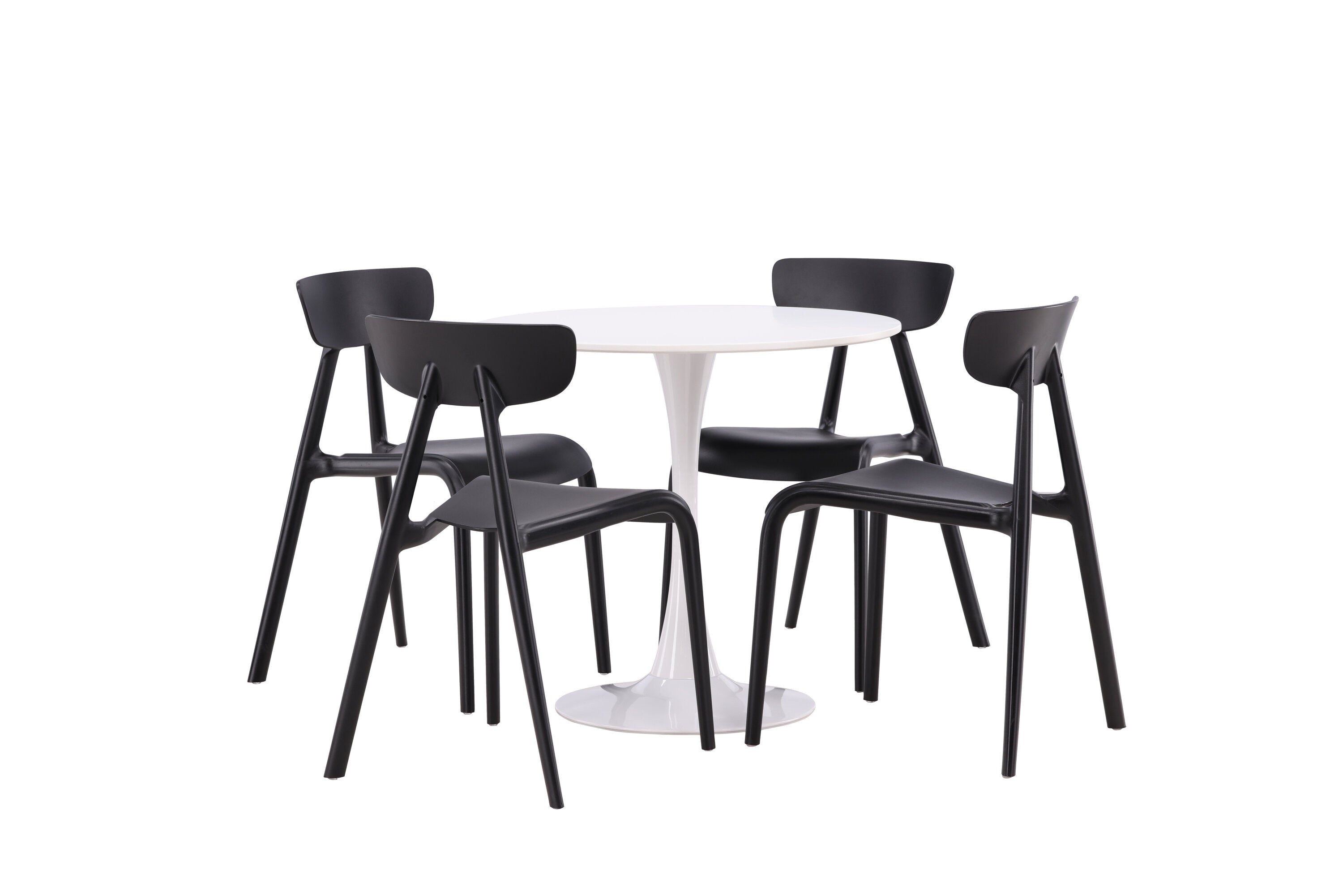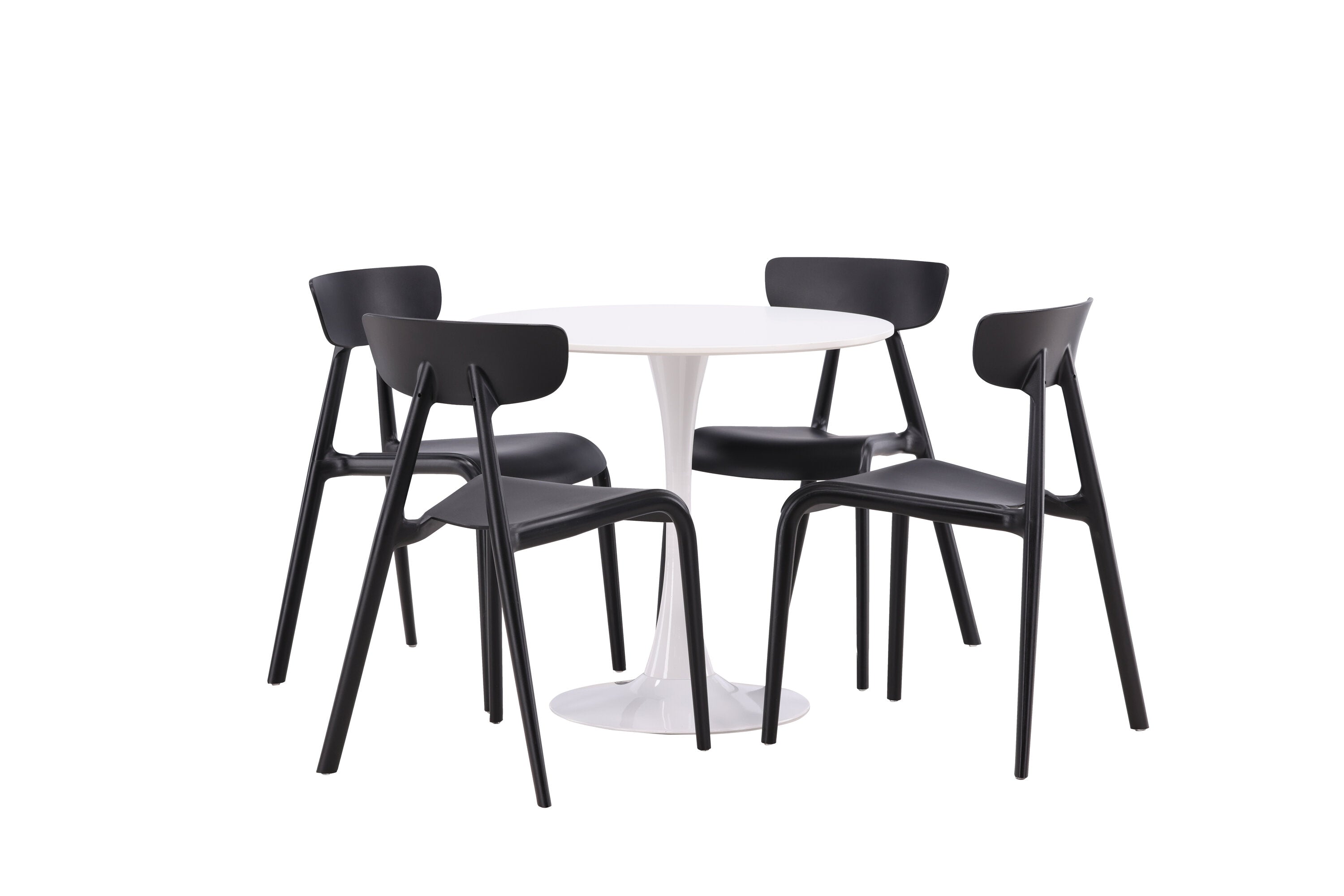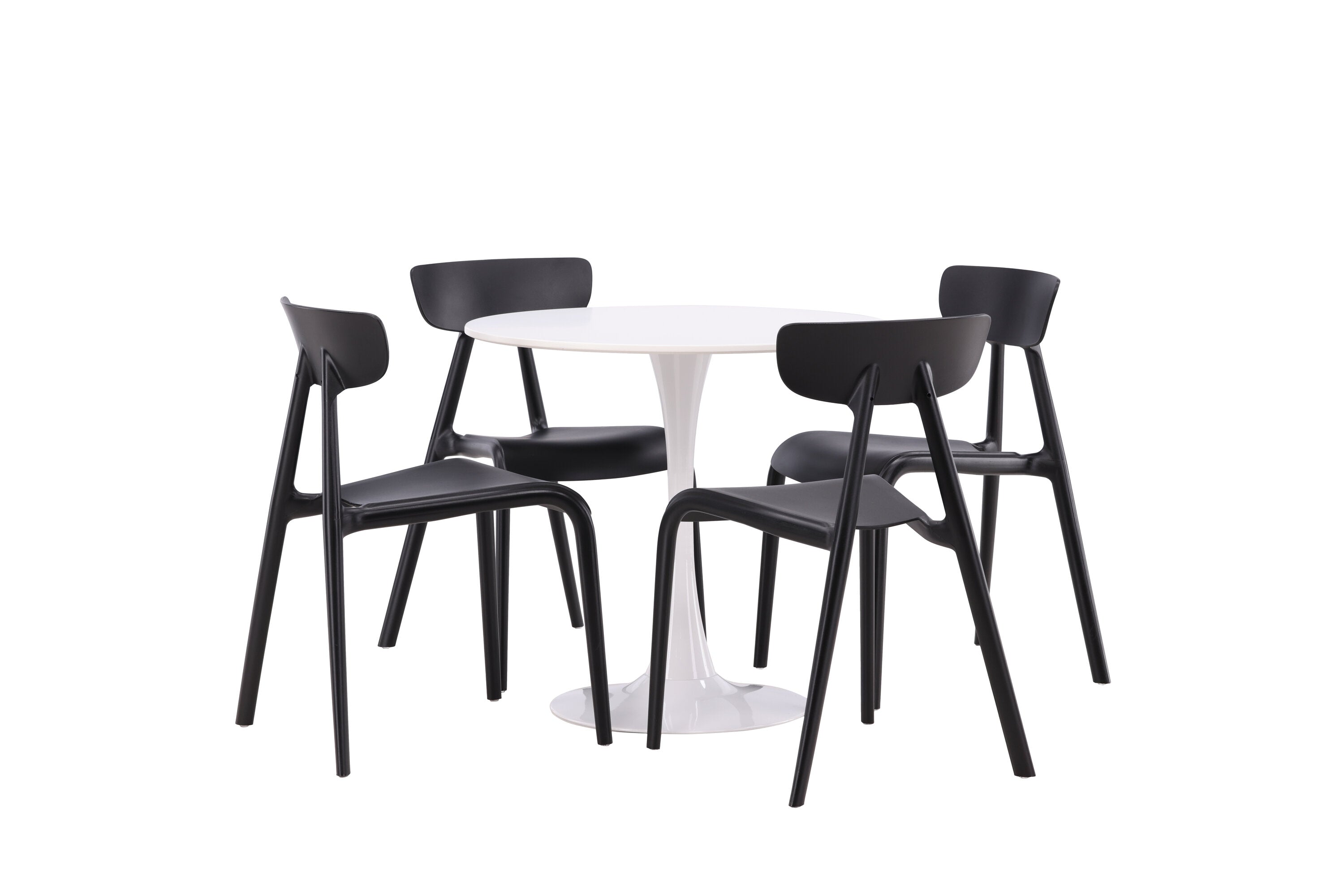 Jídelní stůl Hamden - Bílá MDF+Ursholmen Jídelní židle - Černá Polypropylen_4