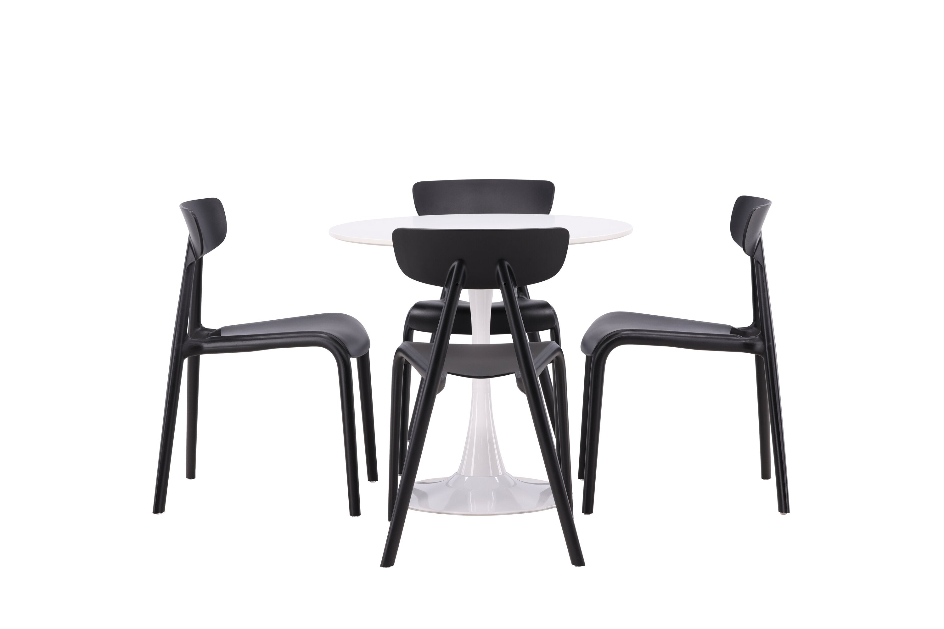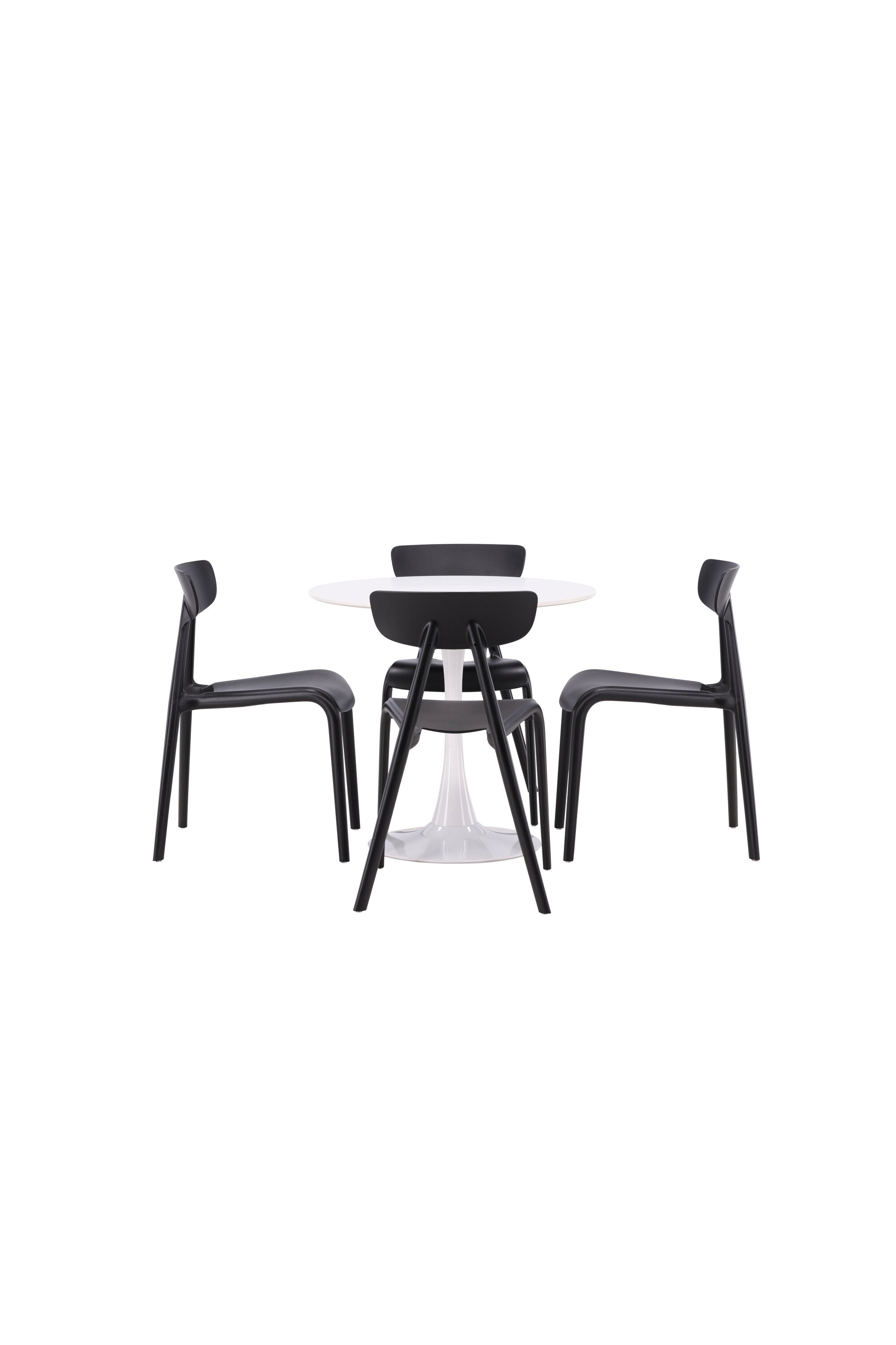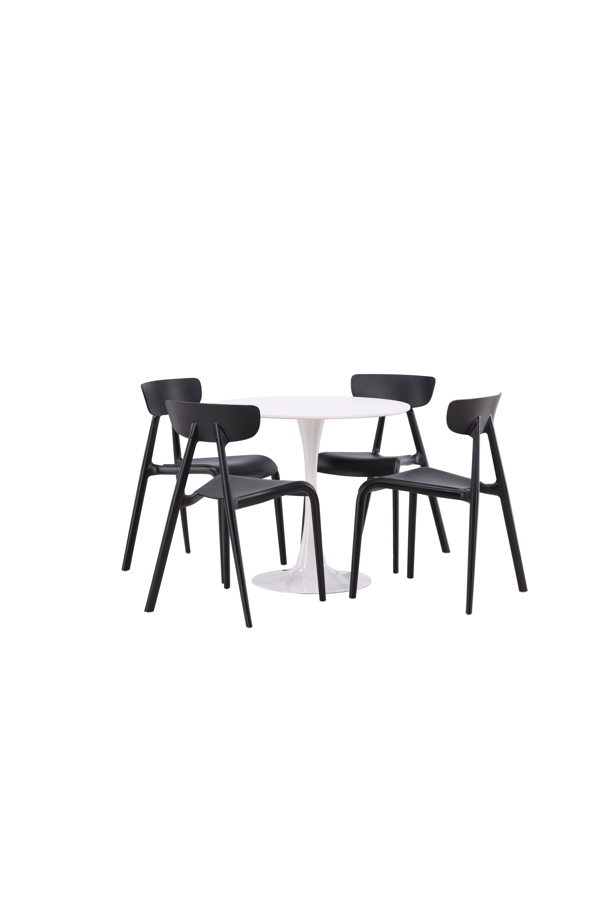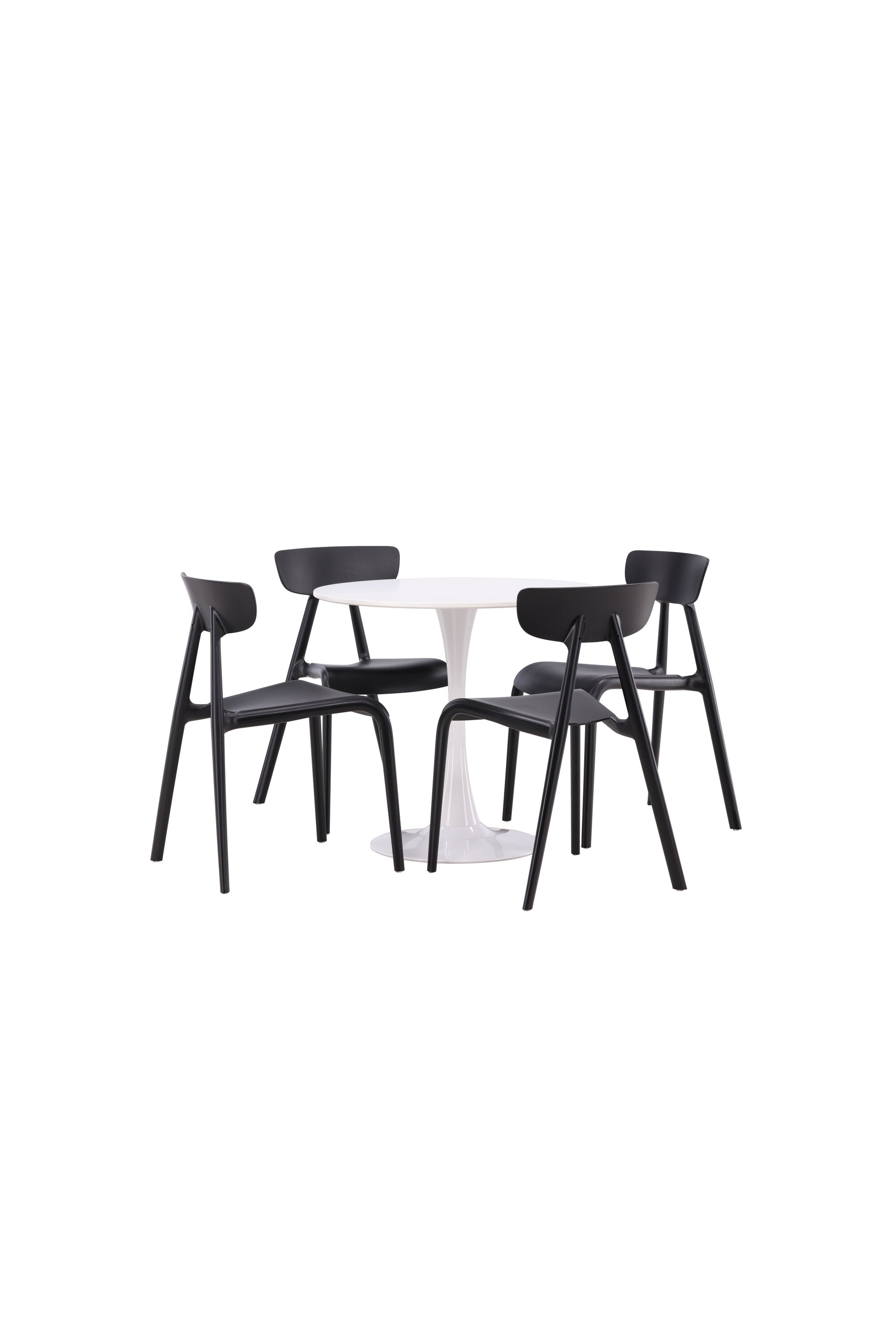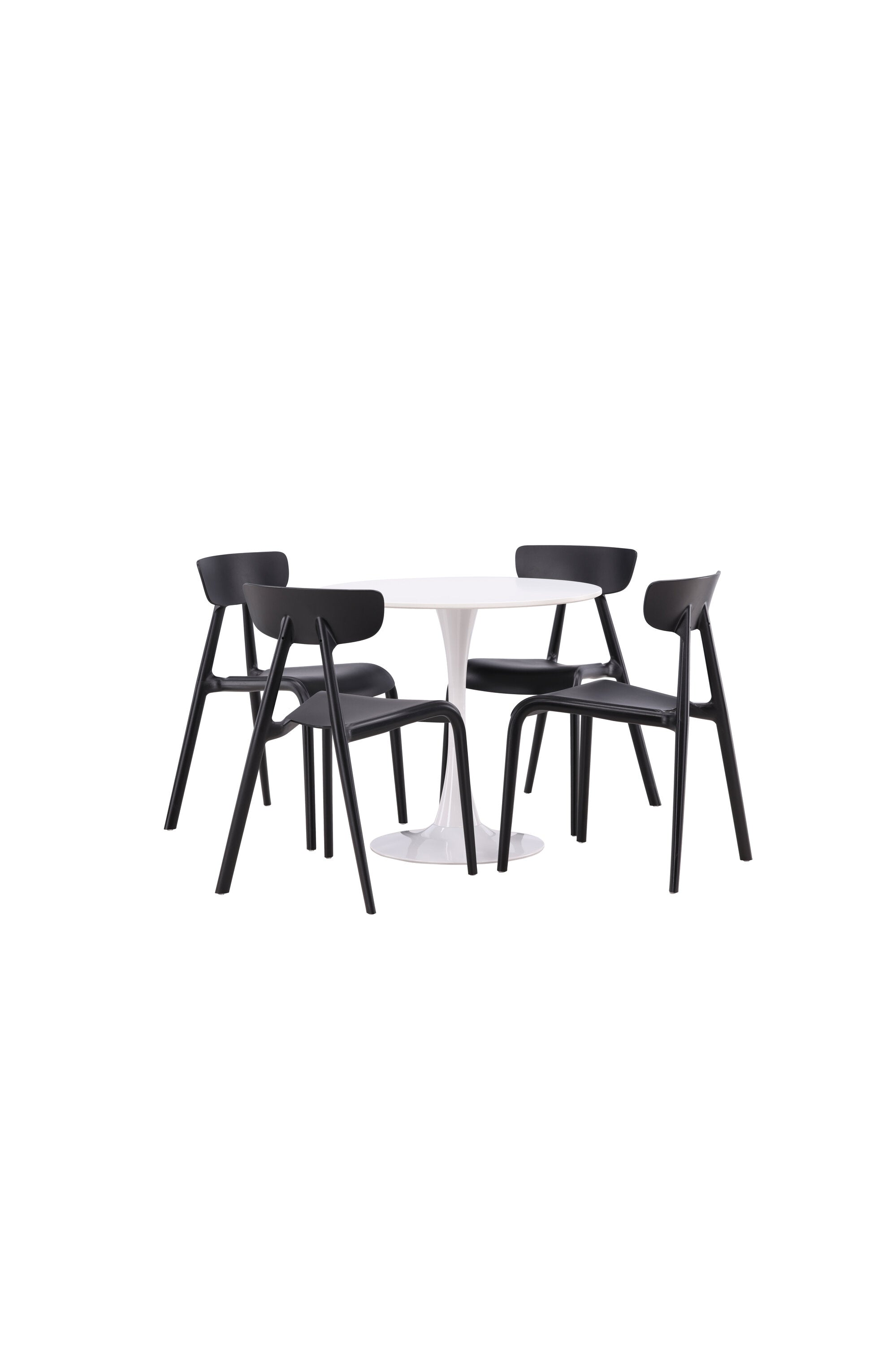 Jídelní stůl Hamden - Bílá MDF+Ursholmen Jídelní židle - Černá Polypropylen_4